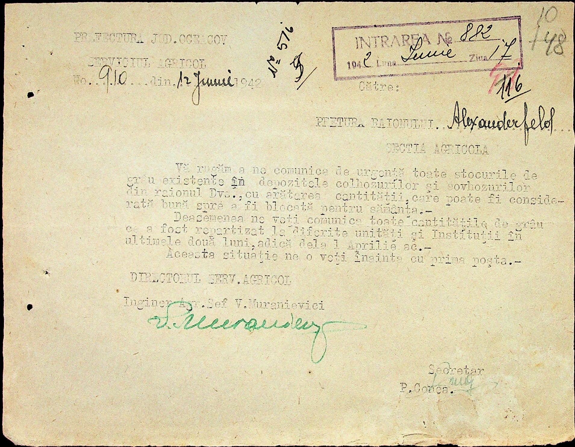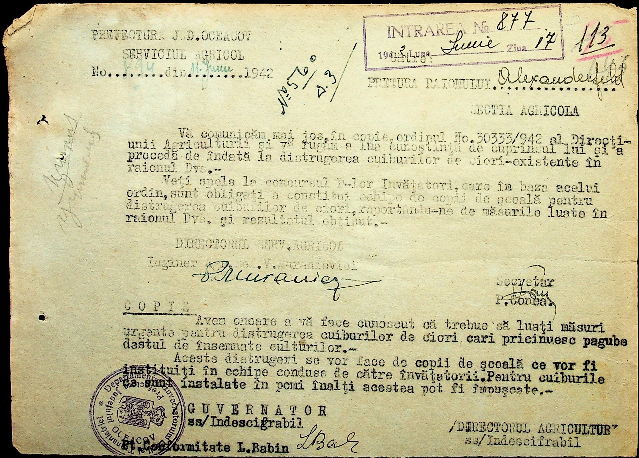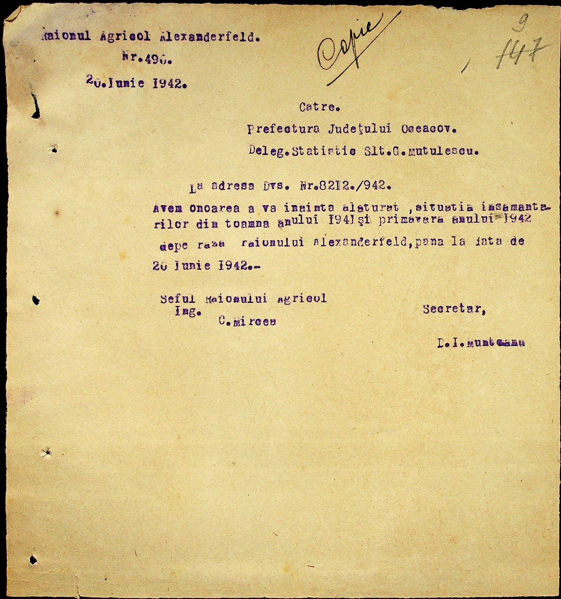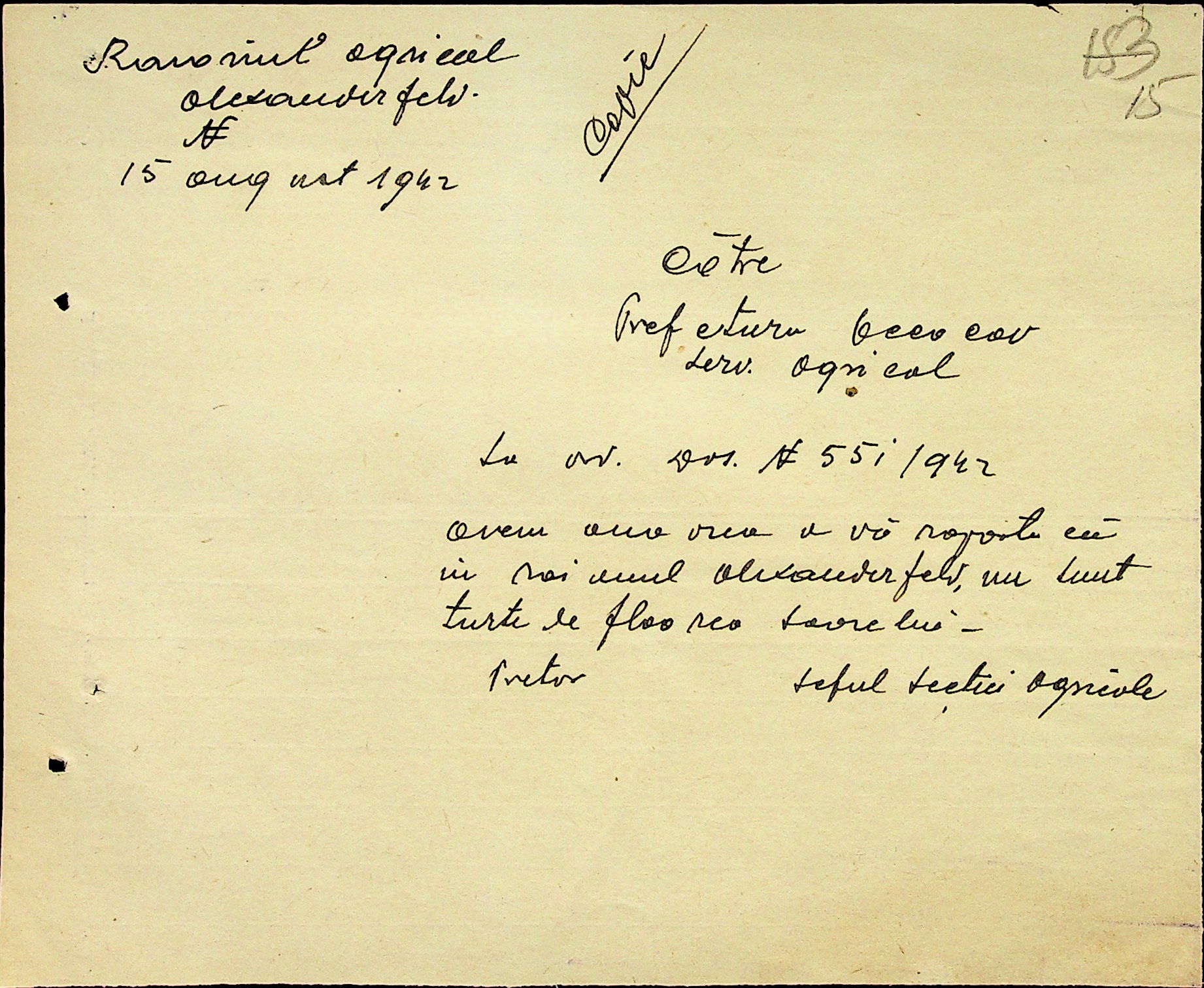 • • • • Справа № 50 “Постанови, інструкції та накази цивільного губернатора Трансністрії (копії), листування з сільськогосподарським відділом префектури про надання відомостей про засіяні площі, підготовку до весняної посівної кампанії, приведення льодовиків у належний порядок”