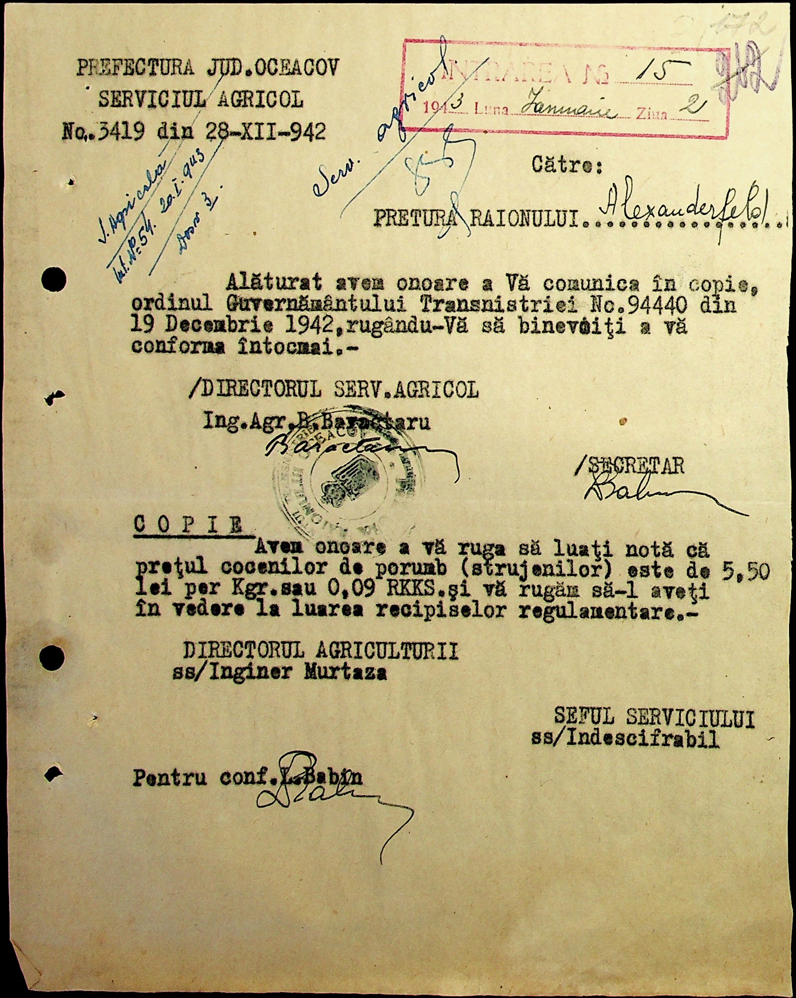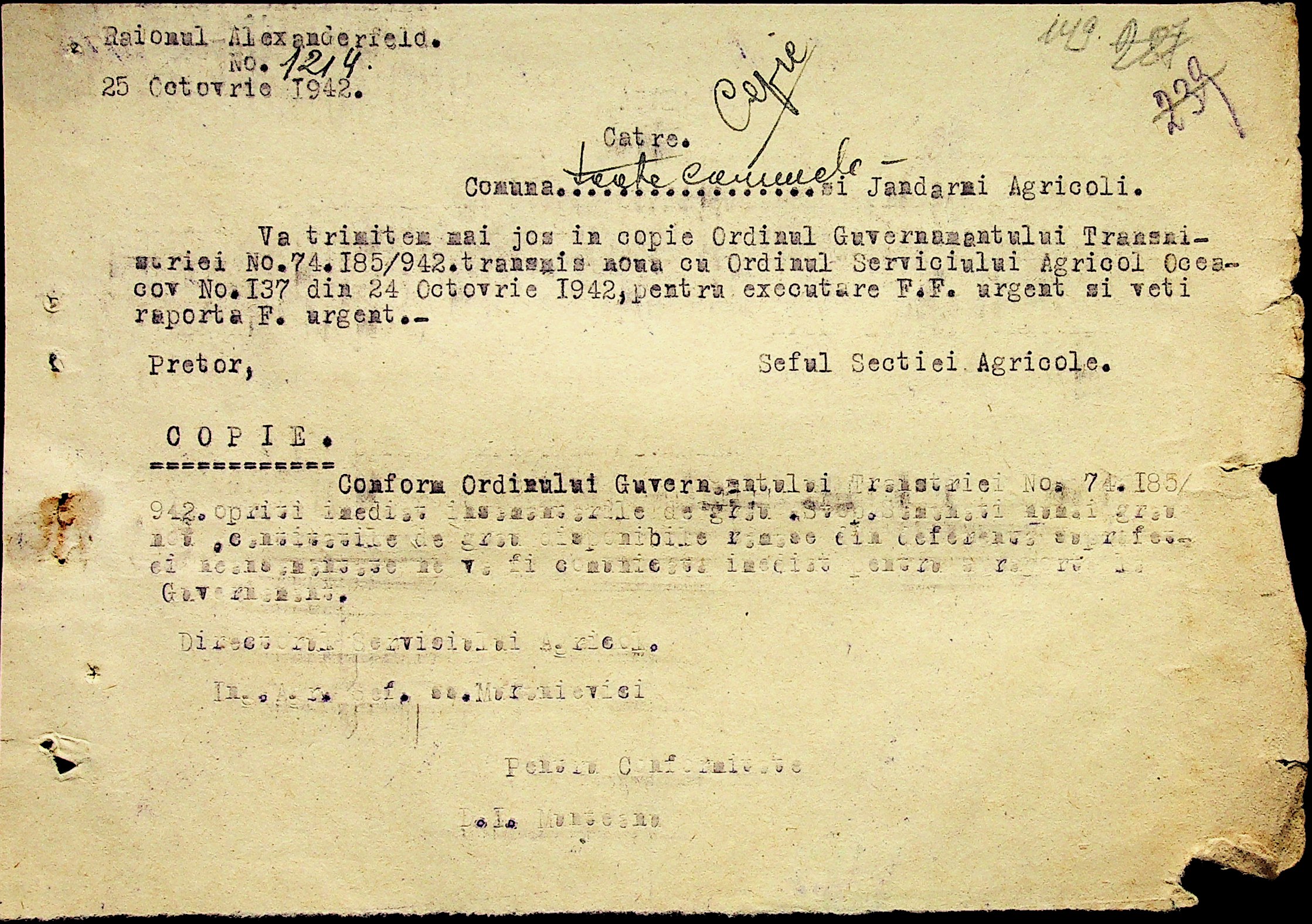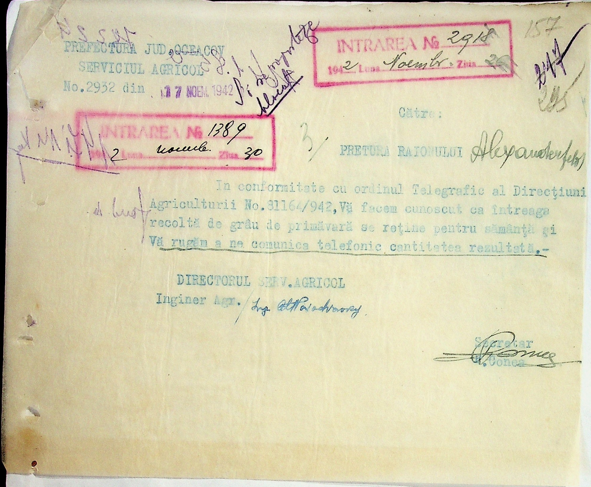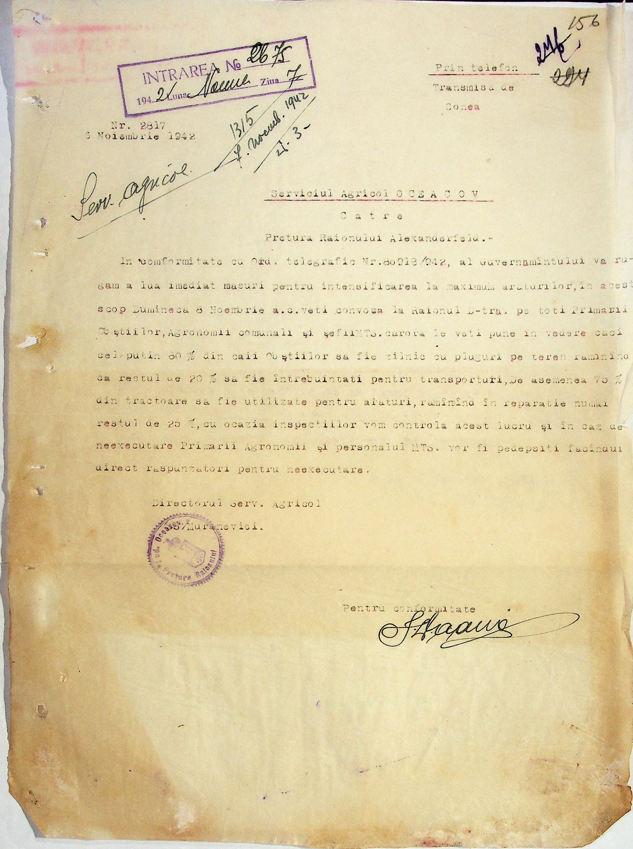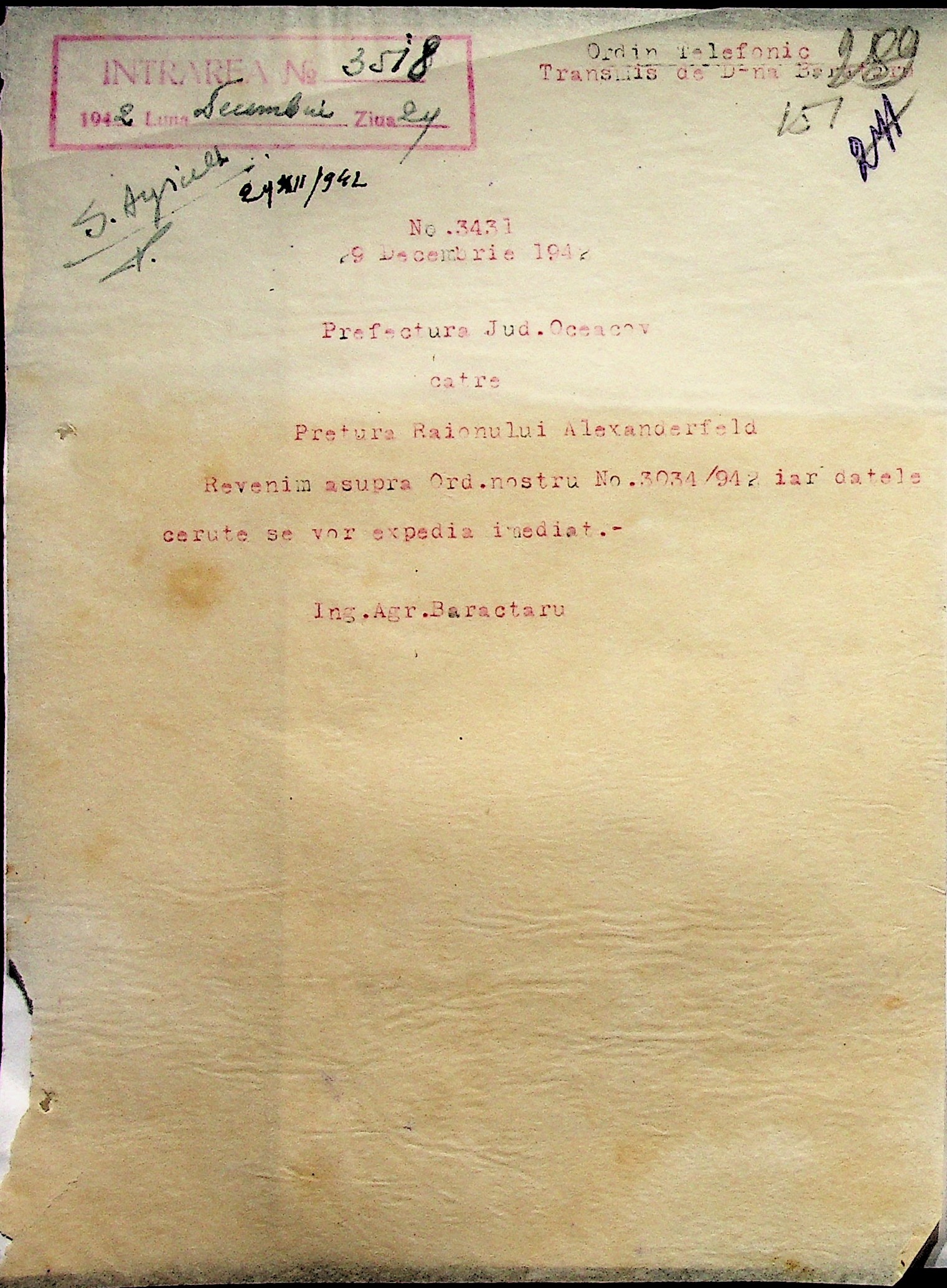 • • • • Справа № 50 “Постанови, інструкції та накази цивільного губернатора Трансністрії (копії), листування з сільськогосподарським відділом префектури про надання відомостей про засіяні площі, підготовку до весняної посівної кампанії, приведення льодовиків у належний порядок”