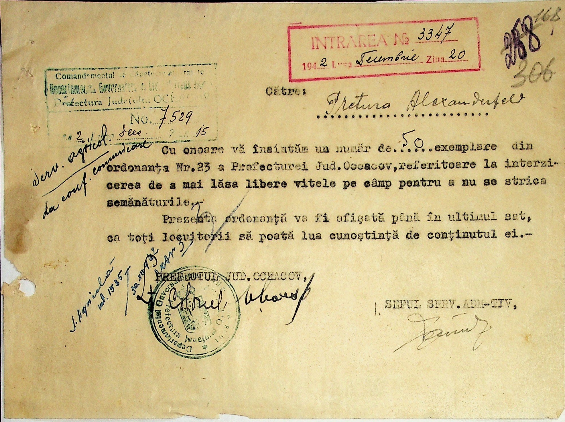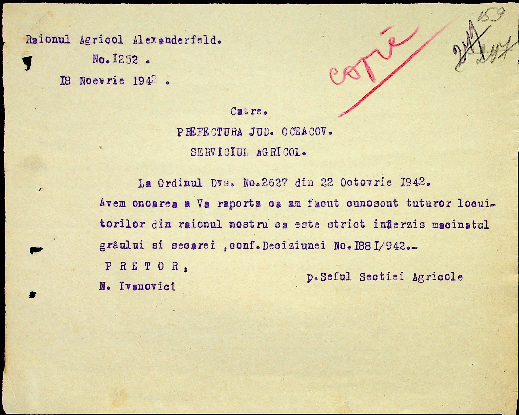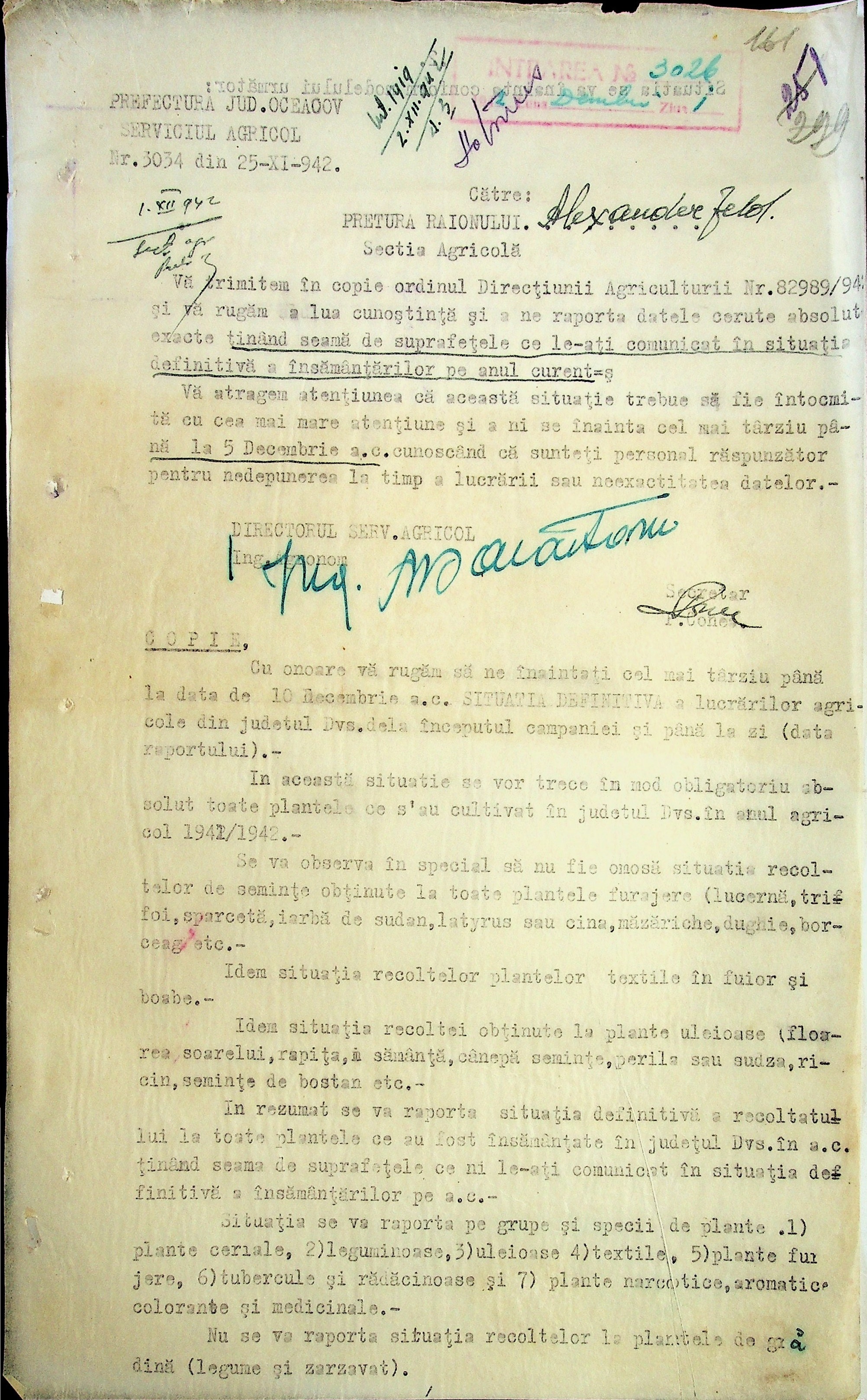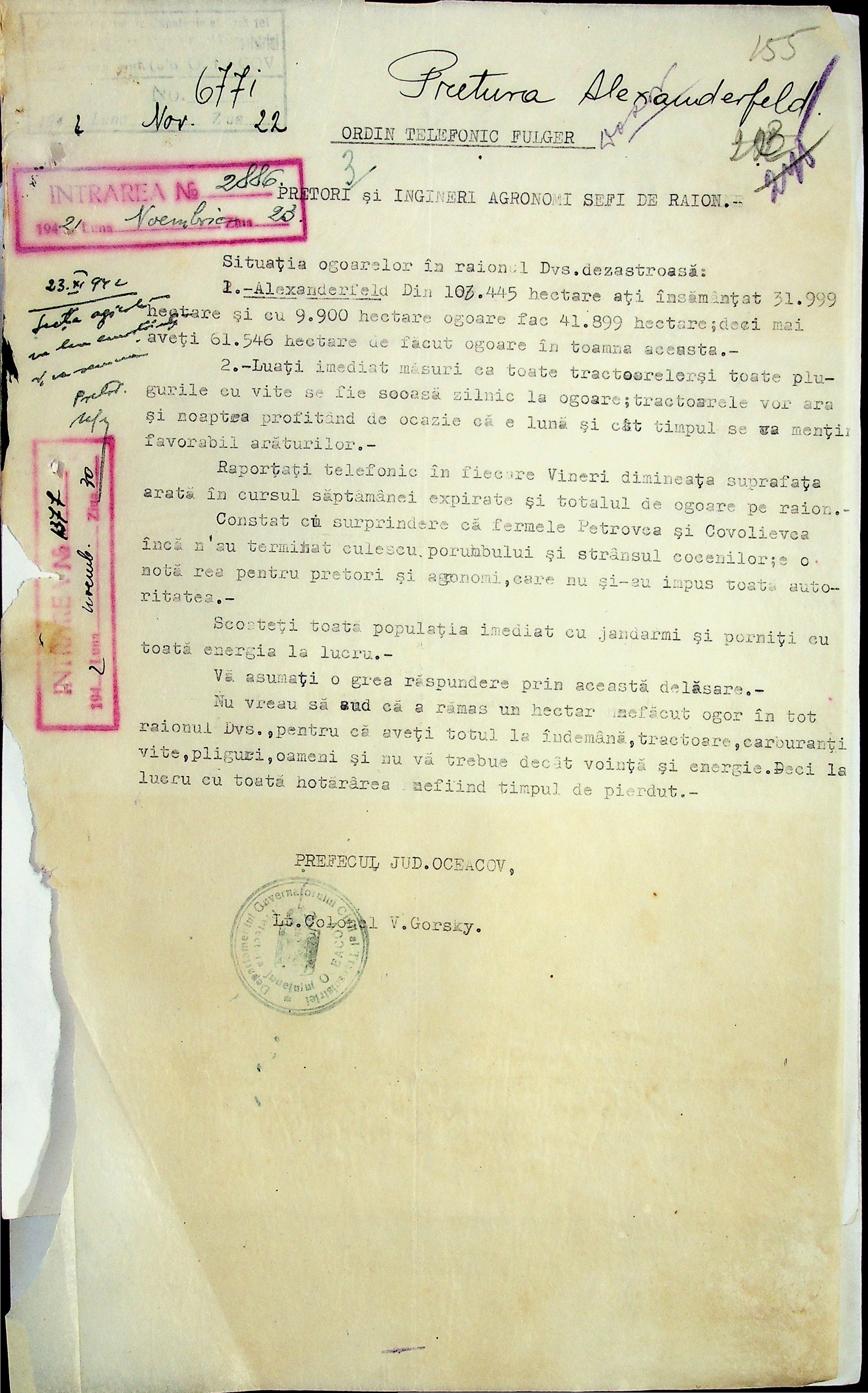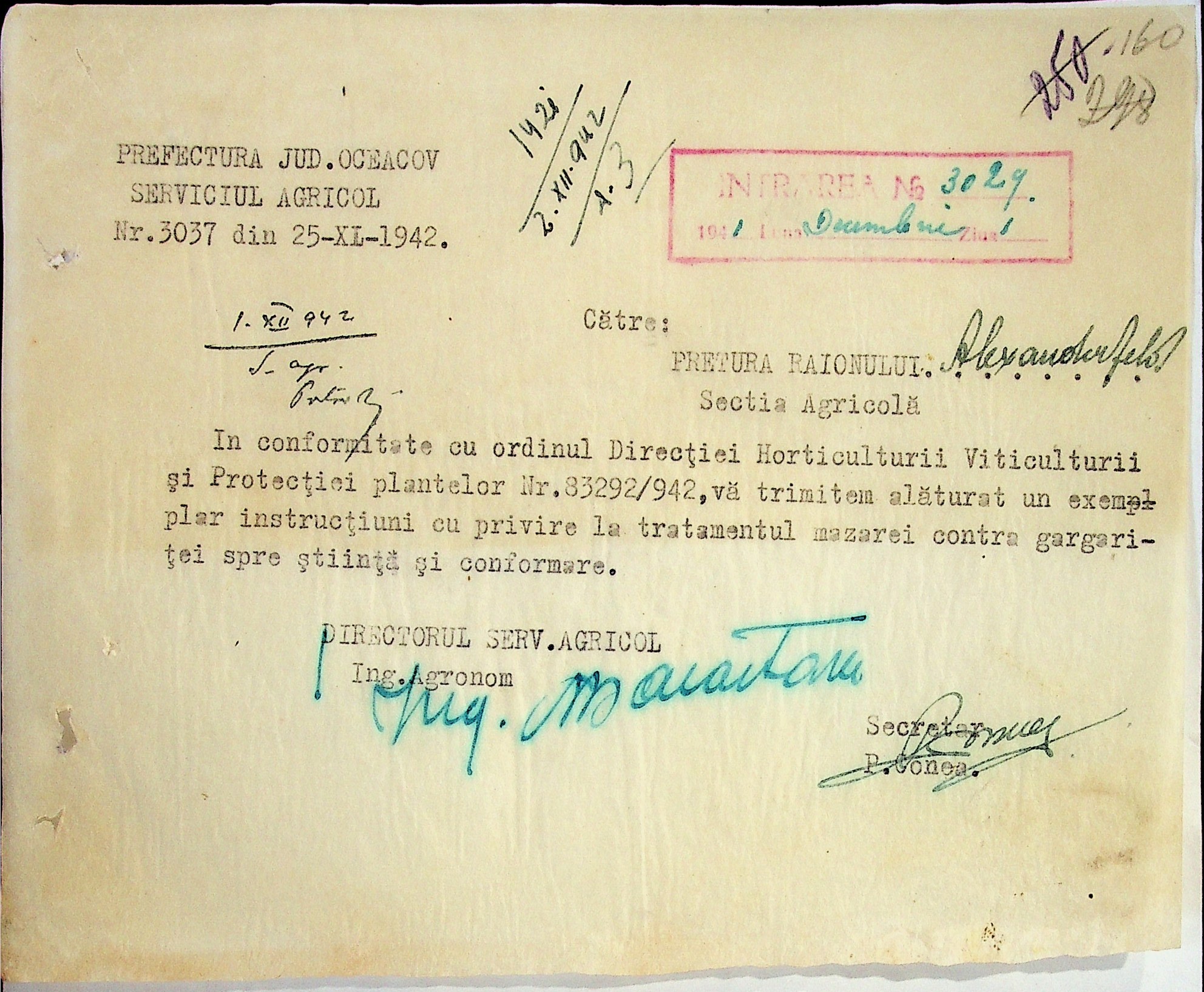 • • • • Справа № 50 “Постанови, інструкції та накази цивільного губернатора Трансністрії (копії), листування з сільськогосподарським відділом префектури про надання відомостей про засіяні площі, підготовку до весняної посівної кампанії, приведення льодовиків у належний порядок”