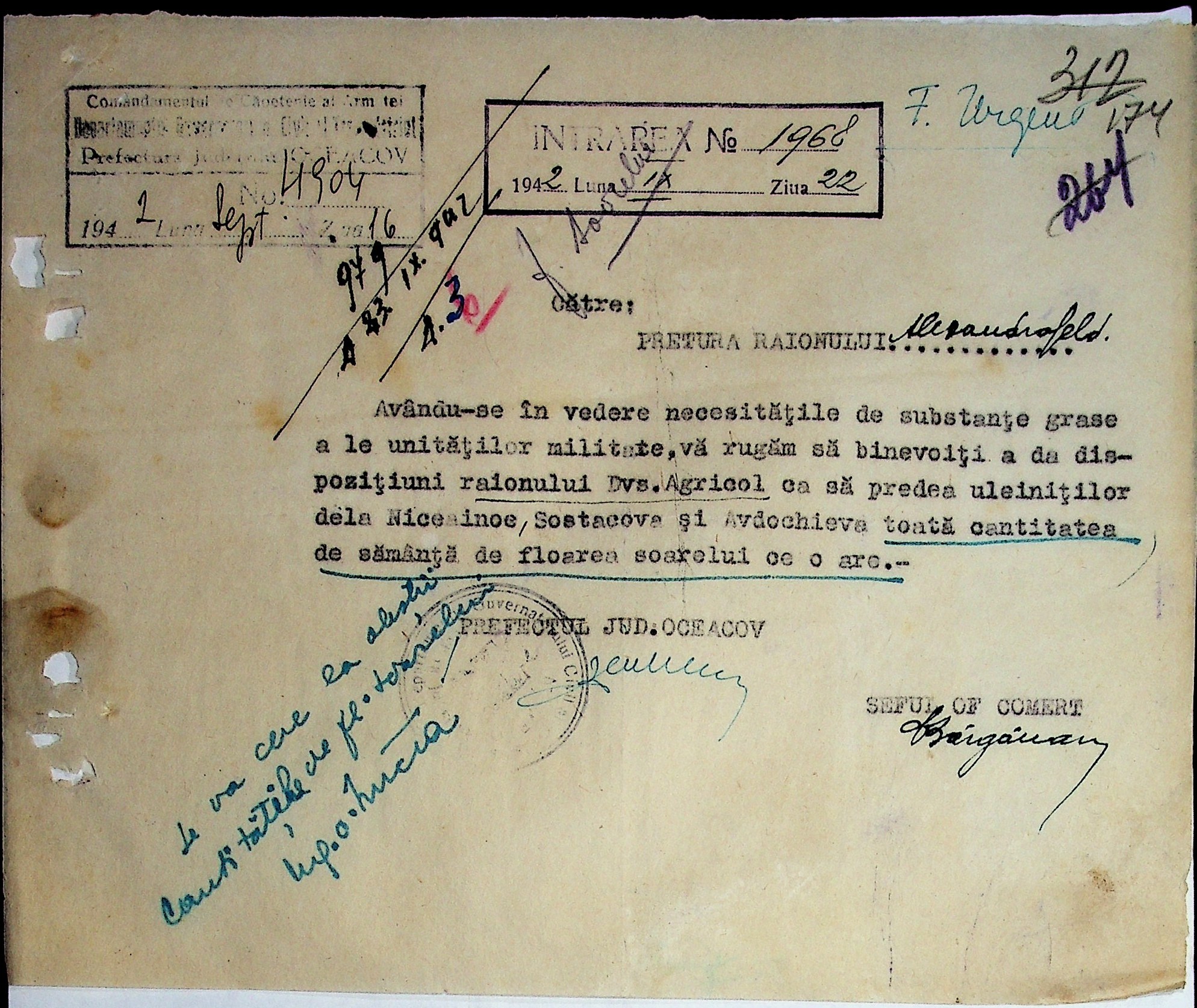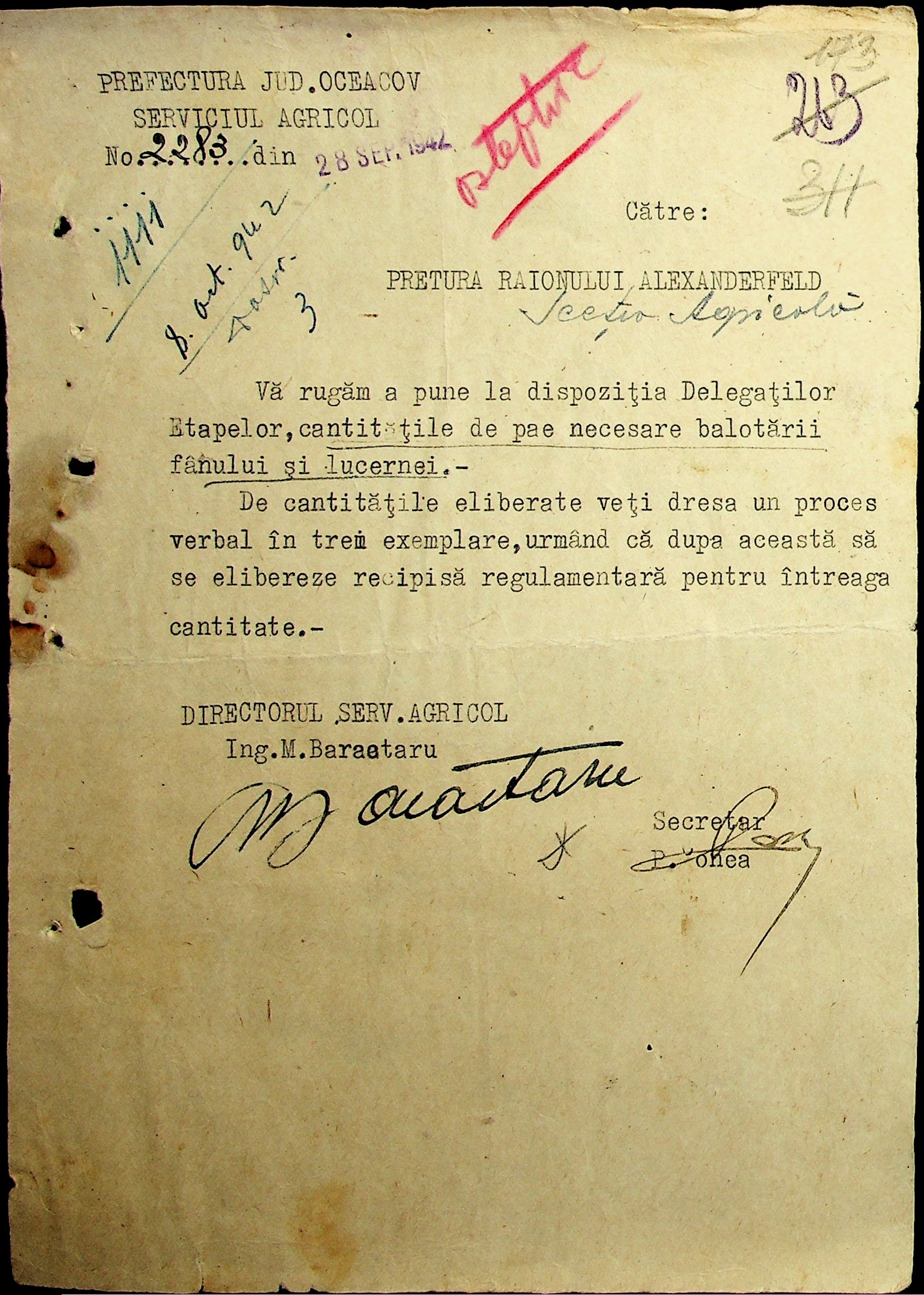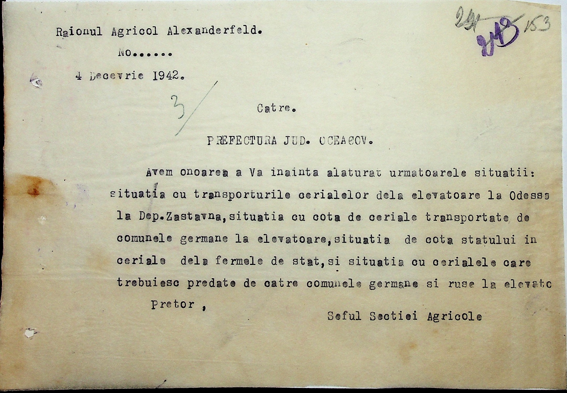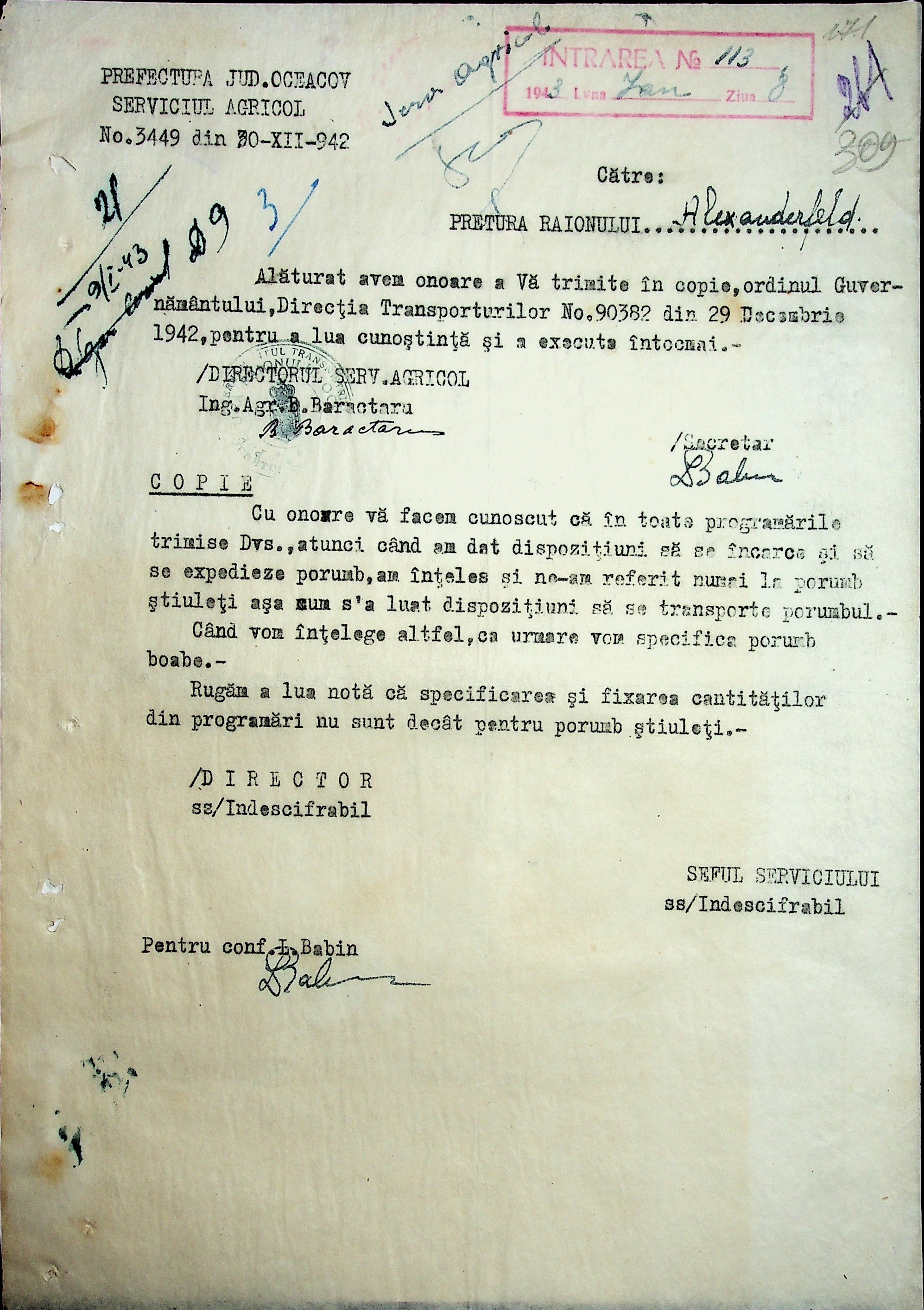 • • • • Справа № 50 “Постанови, інструкції та накази цивільного губернатора Трансністрії (копії), листування з сільськогосподарським відділом префектури про надання відомостей про засіяні площі, підготовку до весняної посівної кампанії, приведення льодовиків у належний порядок”