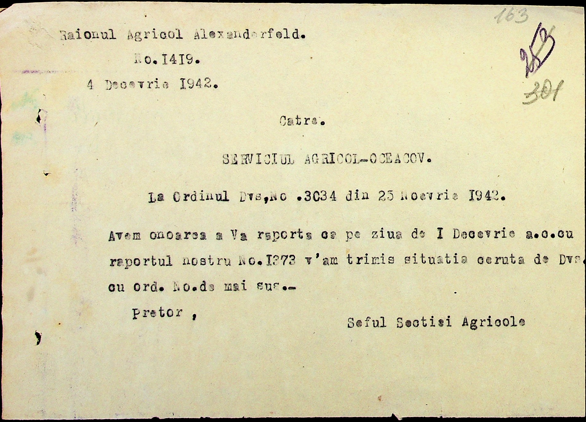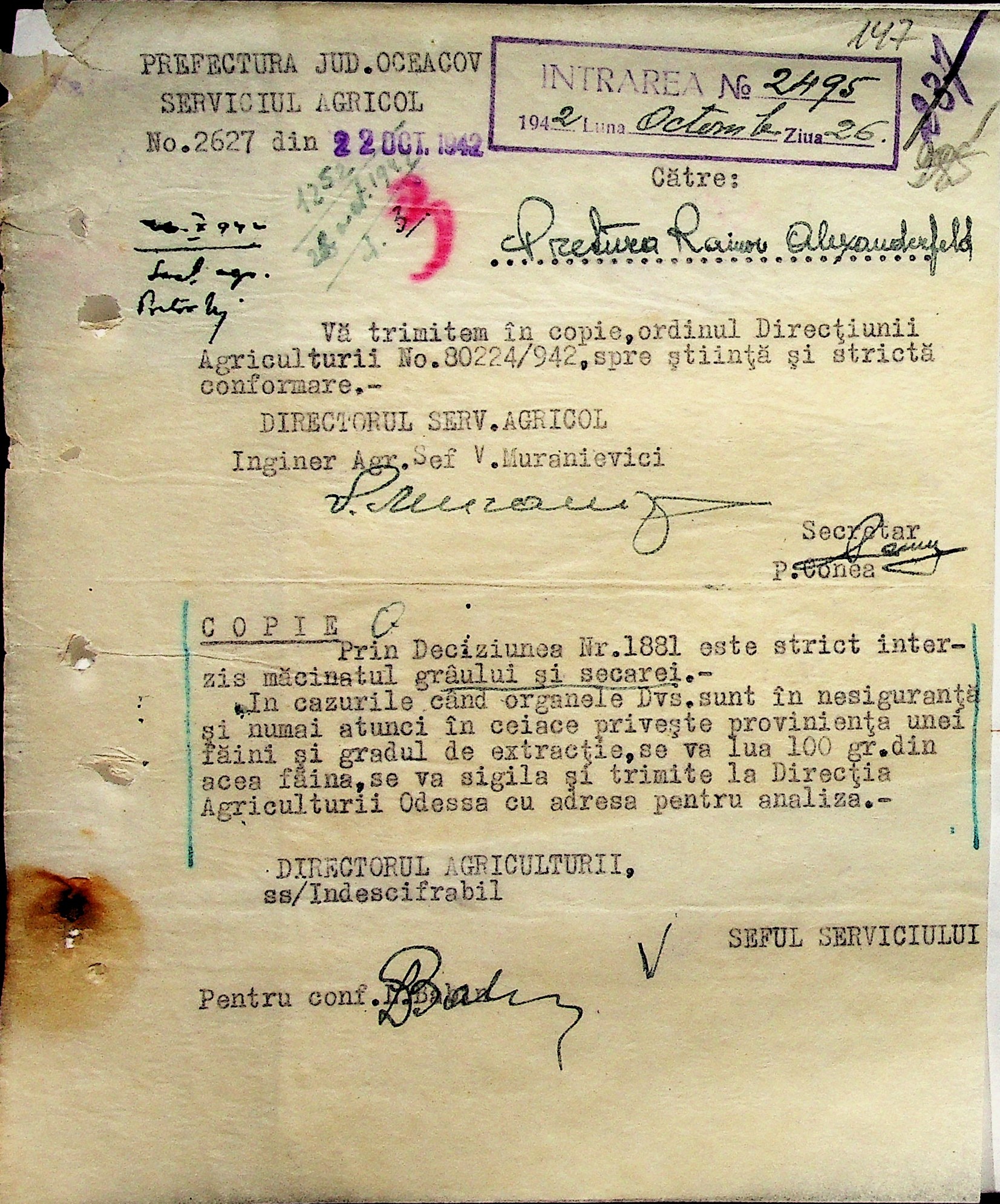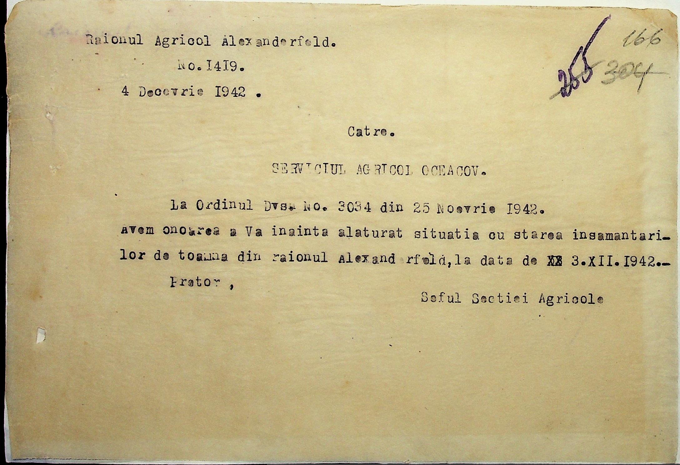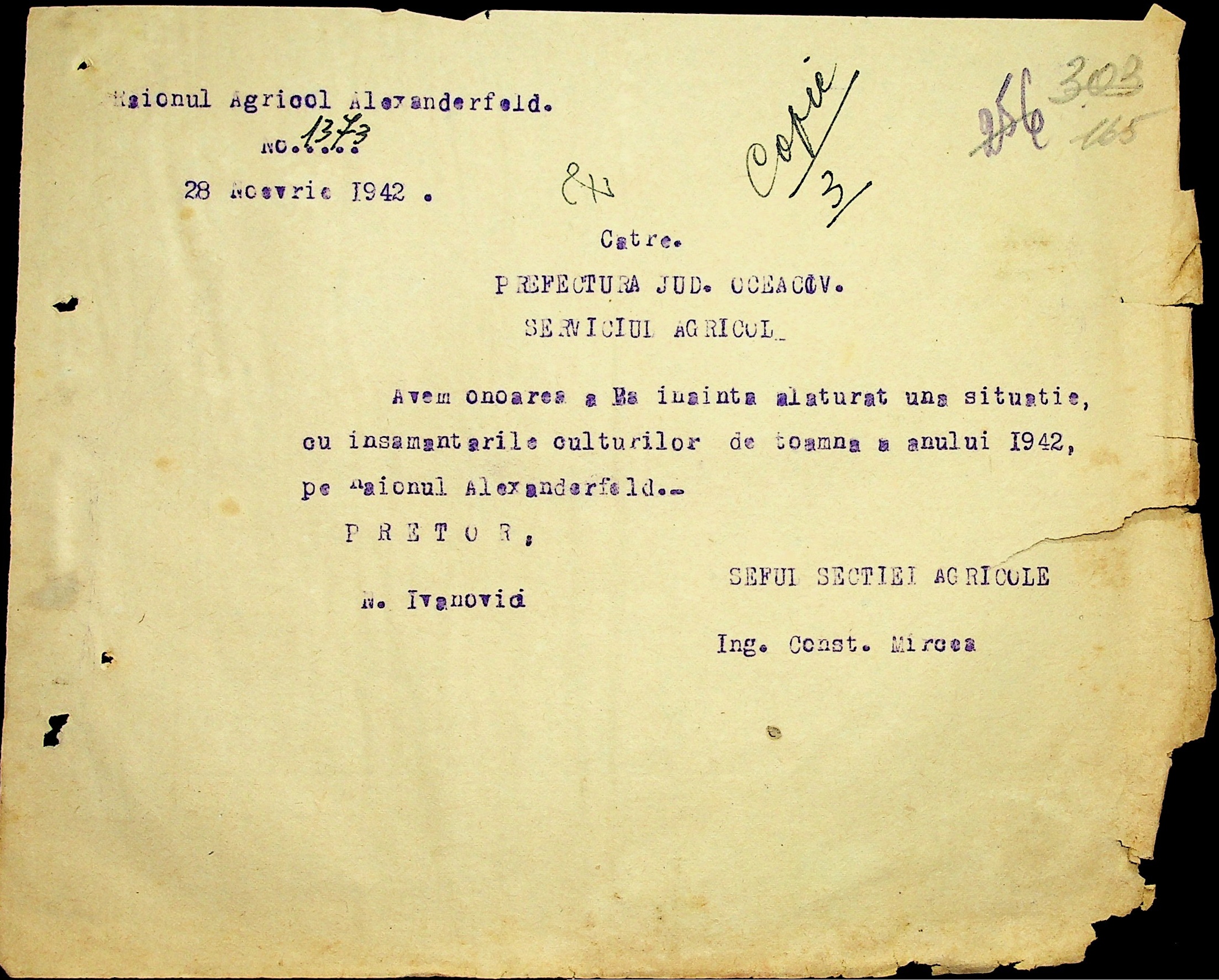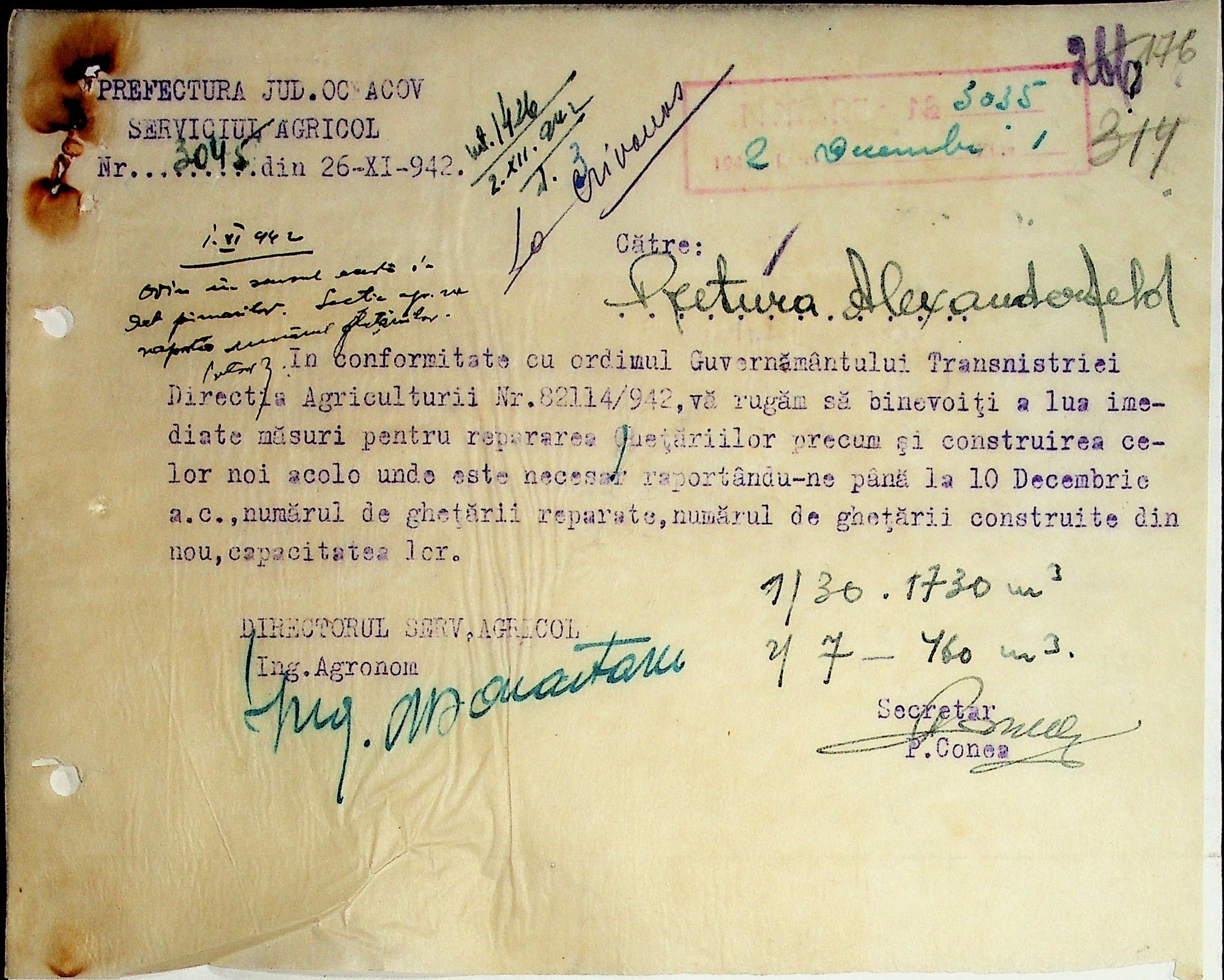 • • • • Справа № 50 “Постанови, інструкції та накази цивільного губернатора Трансністрії (копії), листування з сільськогосподарським відділом префектури про надання відомостей про засіяні площі, підготовку до весняної посівної кампанії, приведення льодовиків у належний порядок”