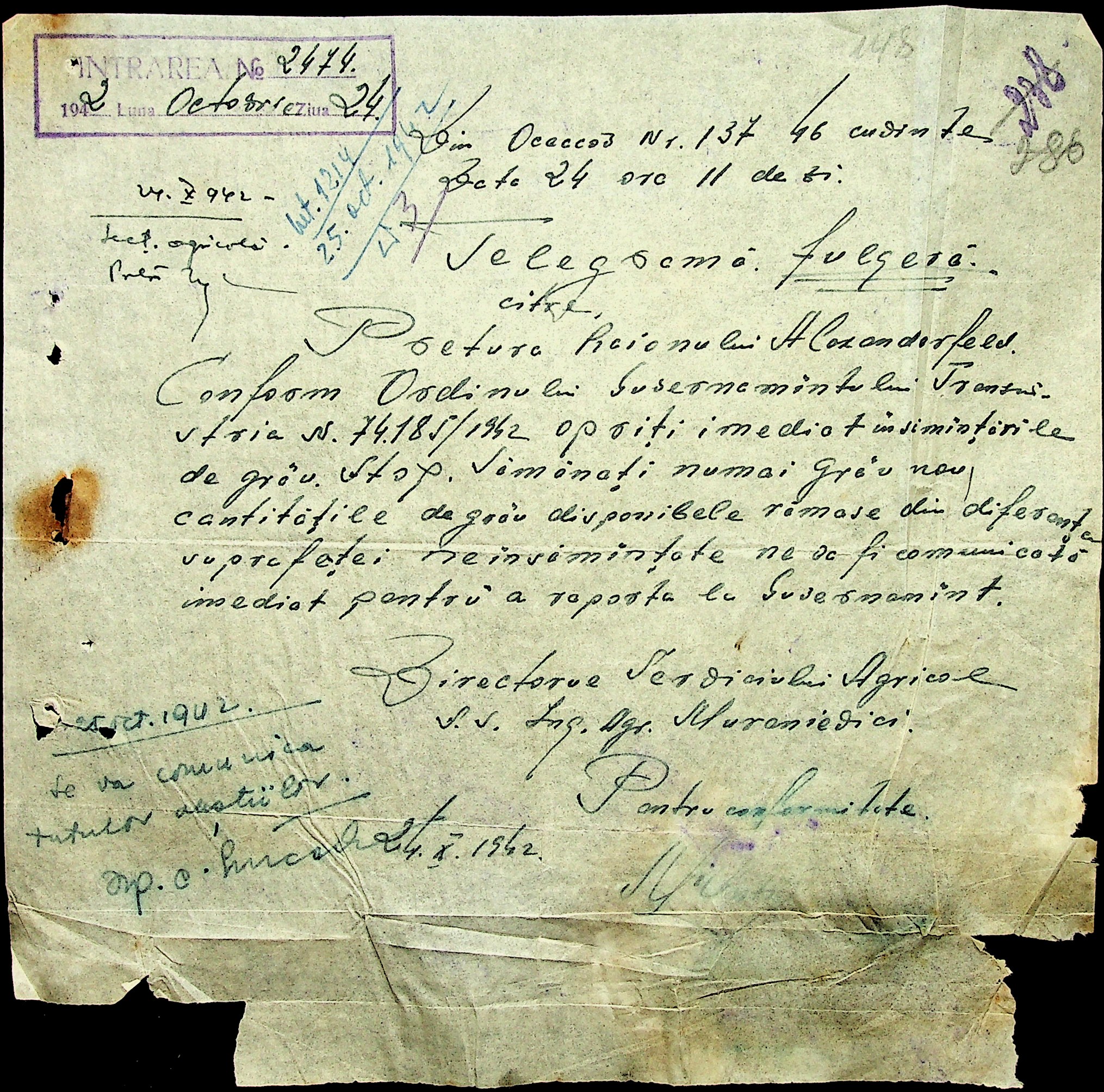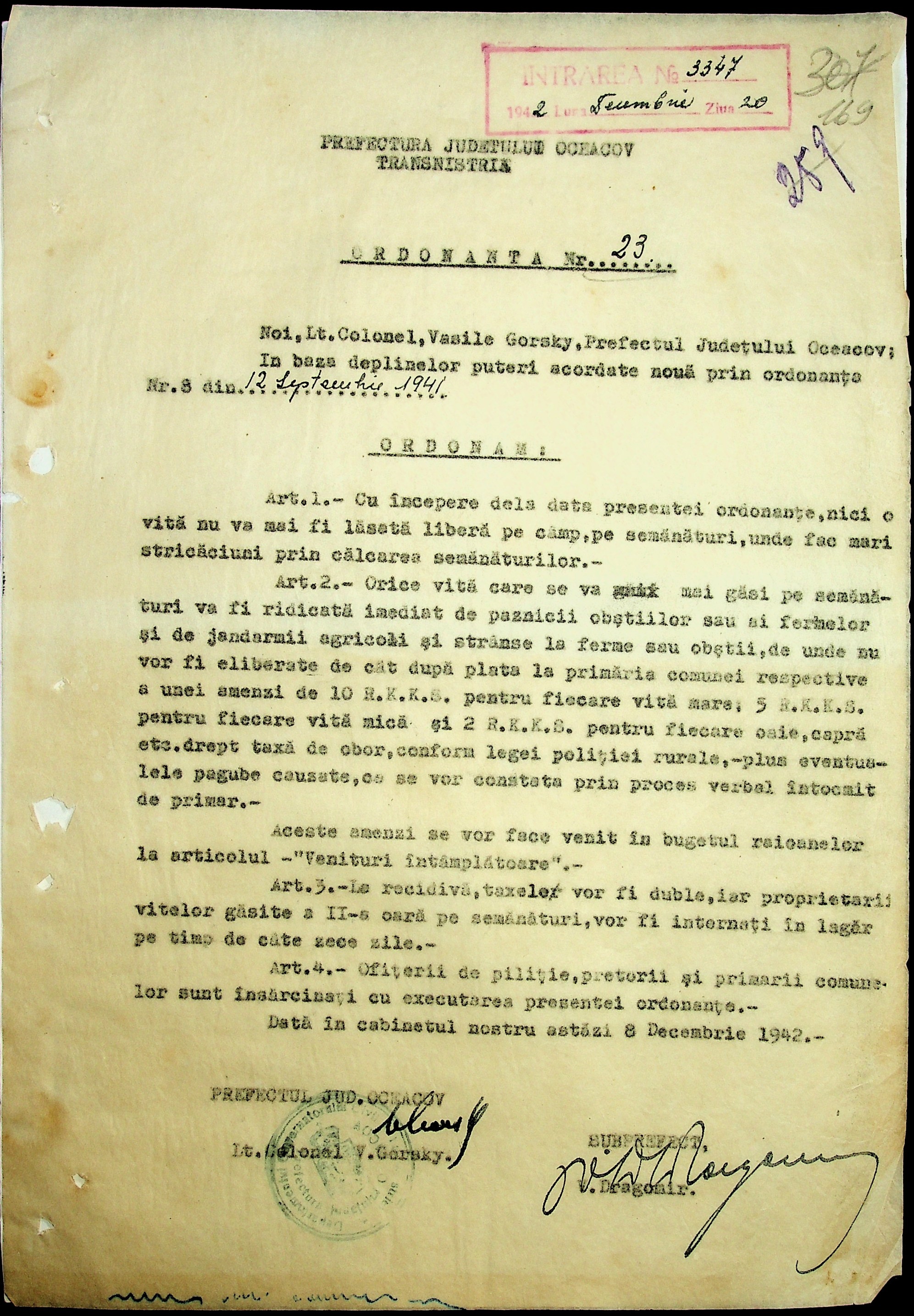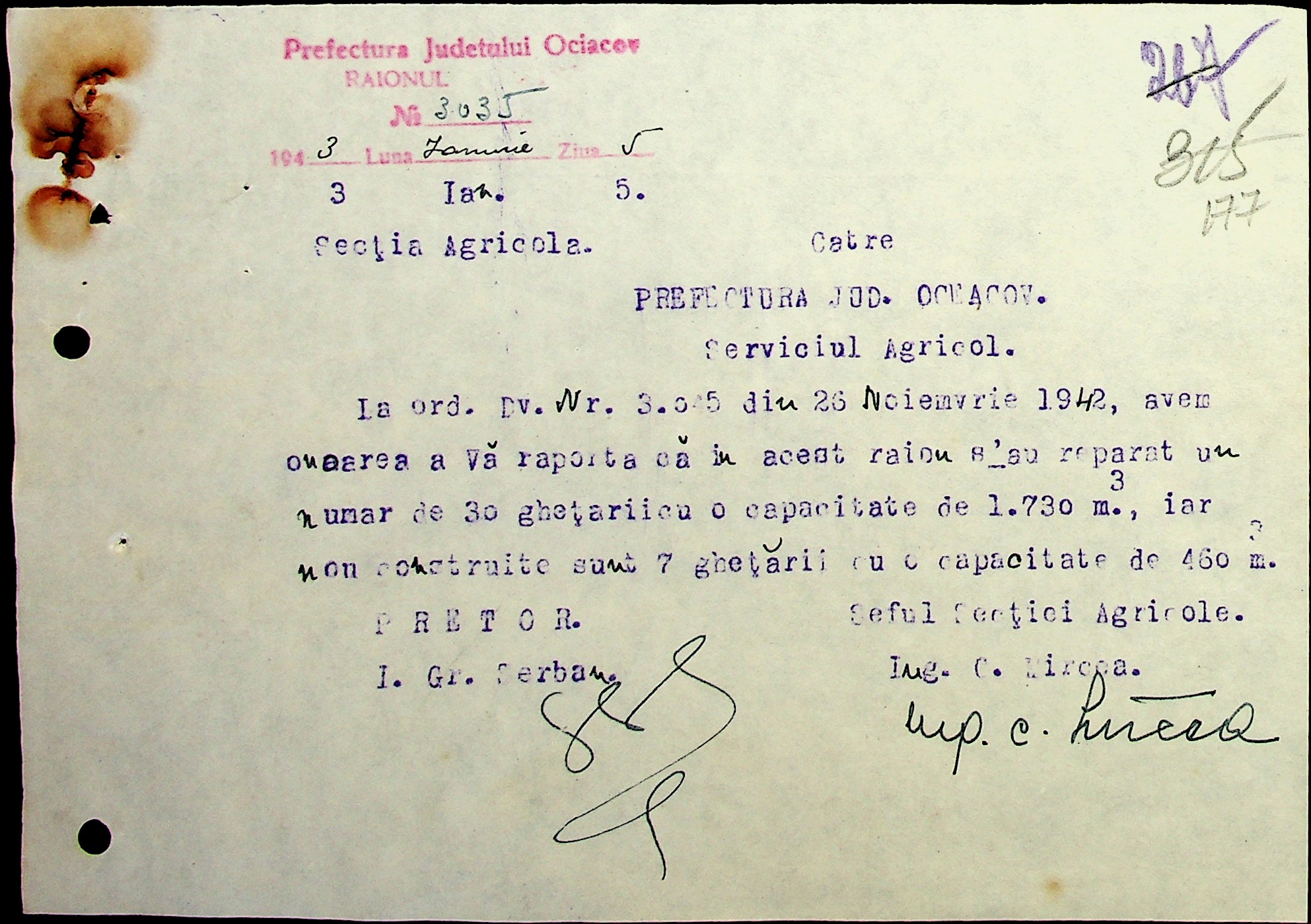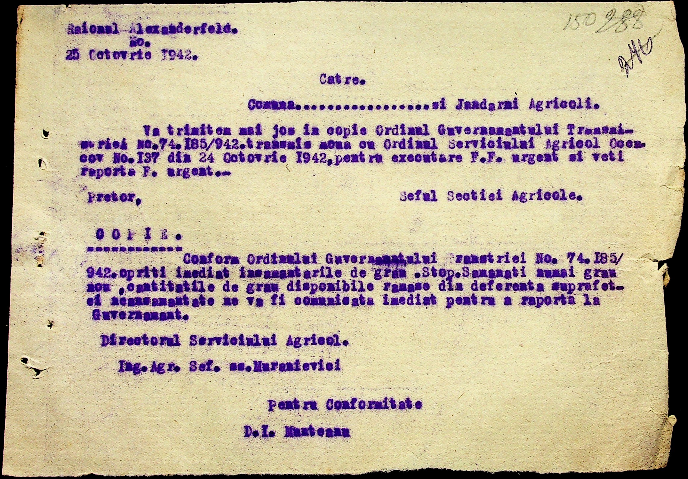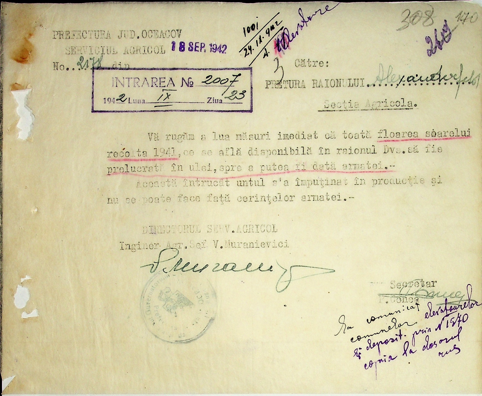 • • • • Справа № 50 “Постанови, інструкції та накази цивільного губернатора Трансністрії (копії), листування з сільськогосподарським відділом префектури про надання відомостей про засіяні площі, підготовку до весняної посівної кампанії, приведення льодовиків у належний порядок”