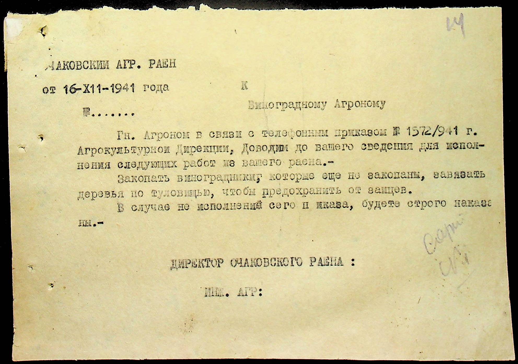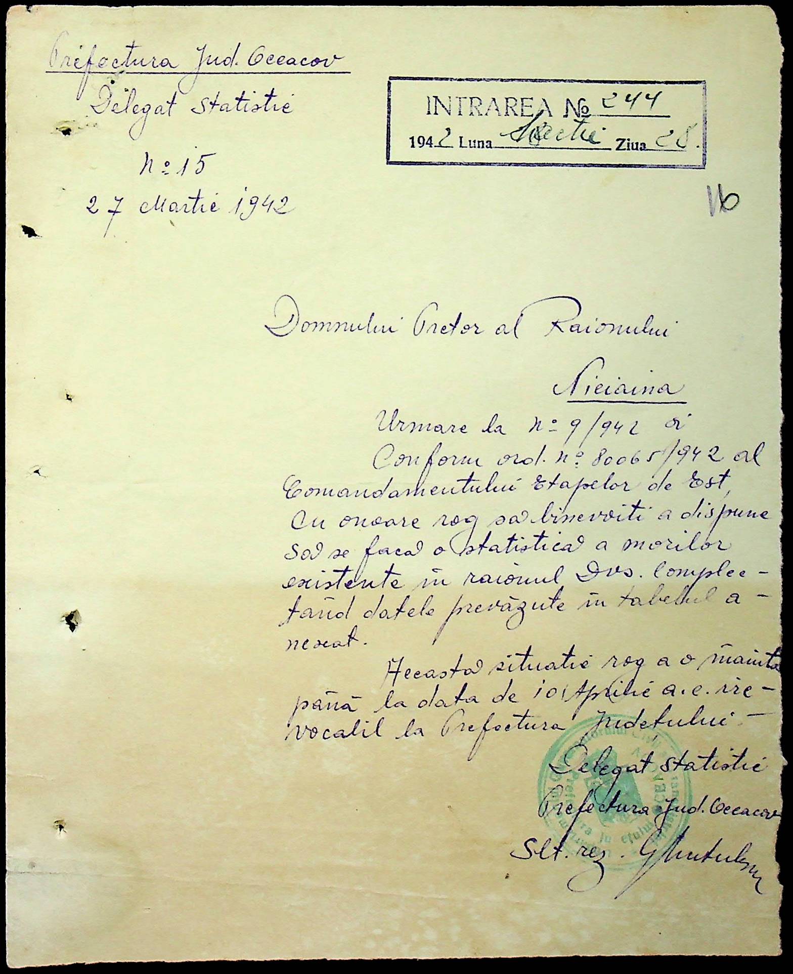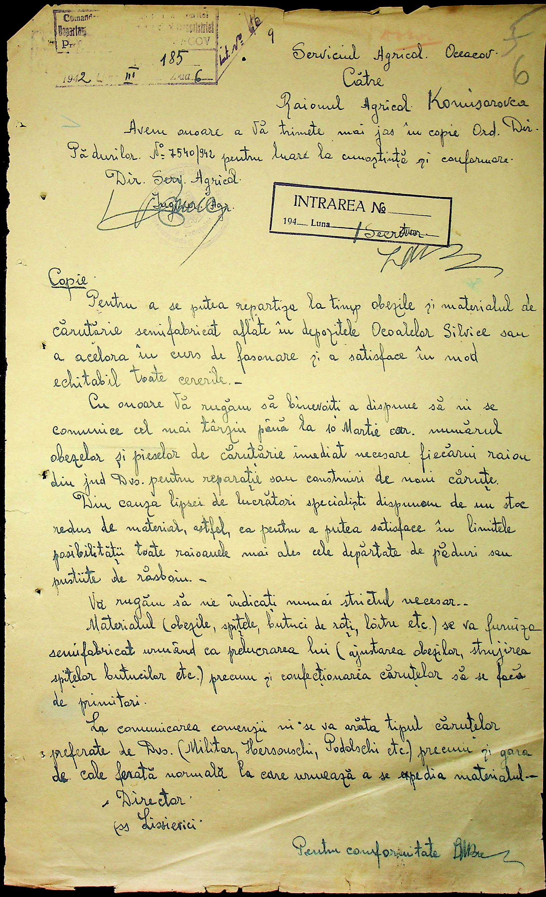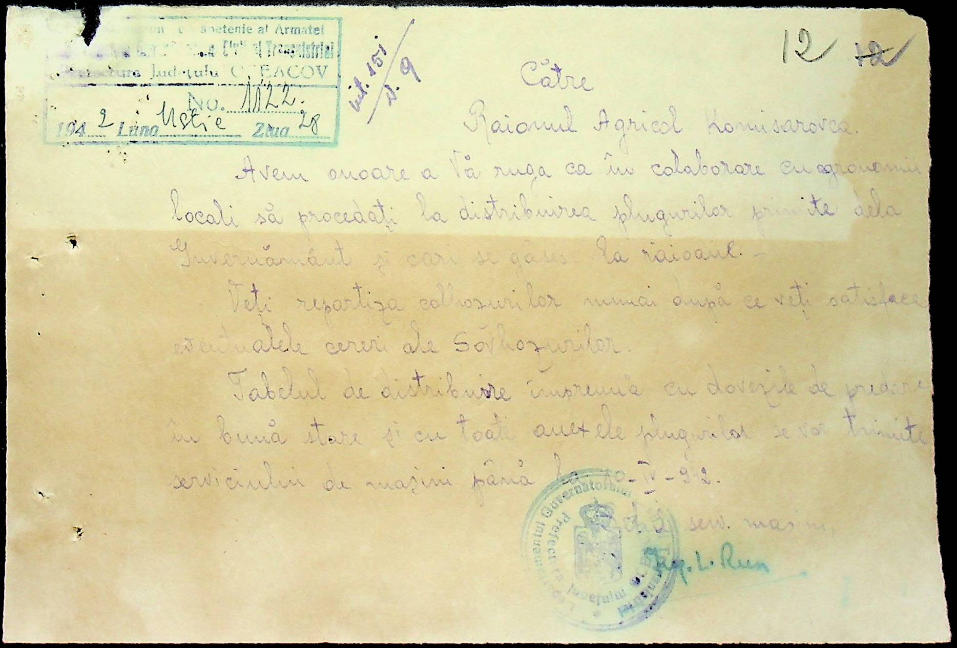 • • • • Справа № 54 “Листування з сільськогосподарським відділом префектури про надання відомостей про місцезнаходження метеорологічних станцій в районі”