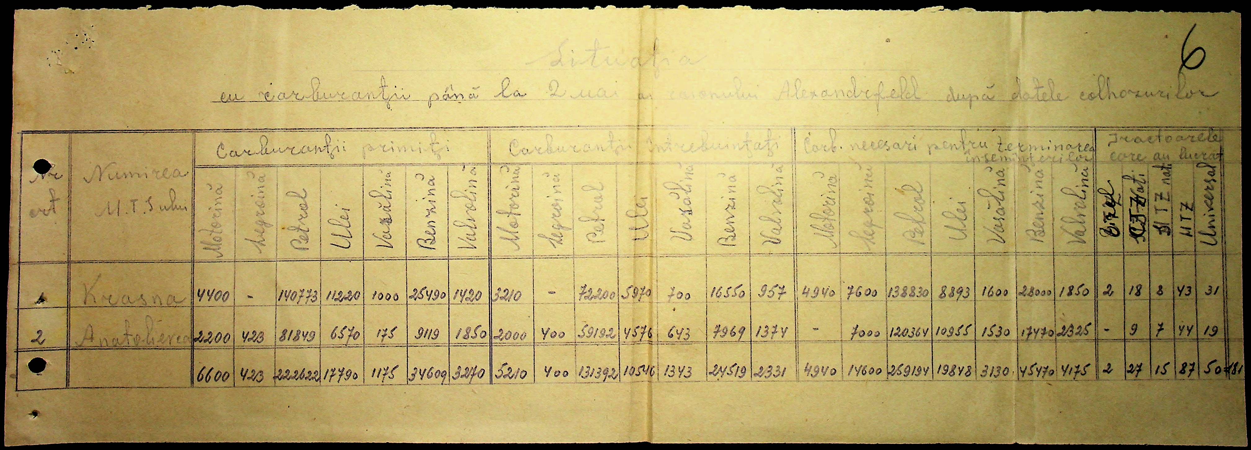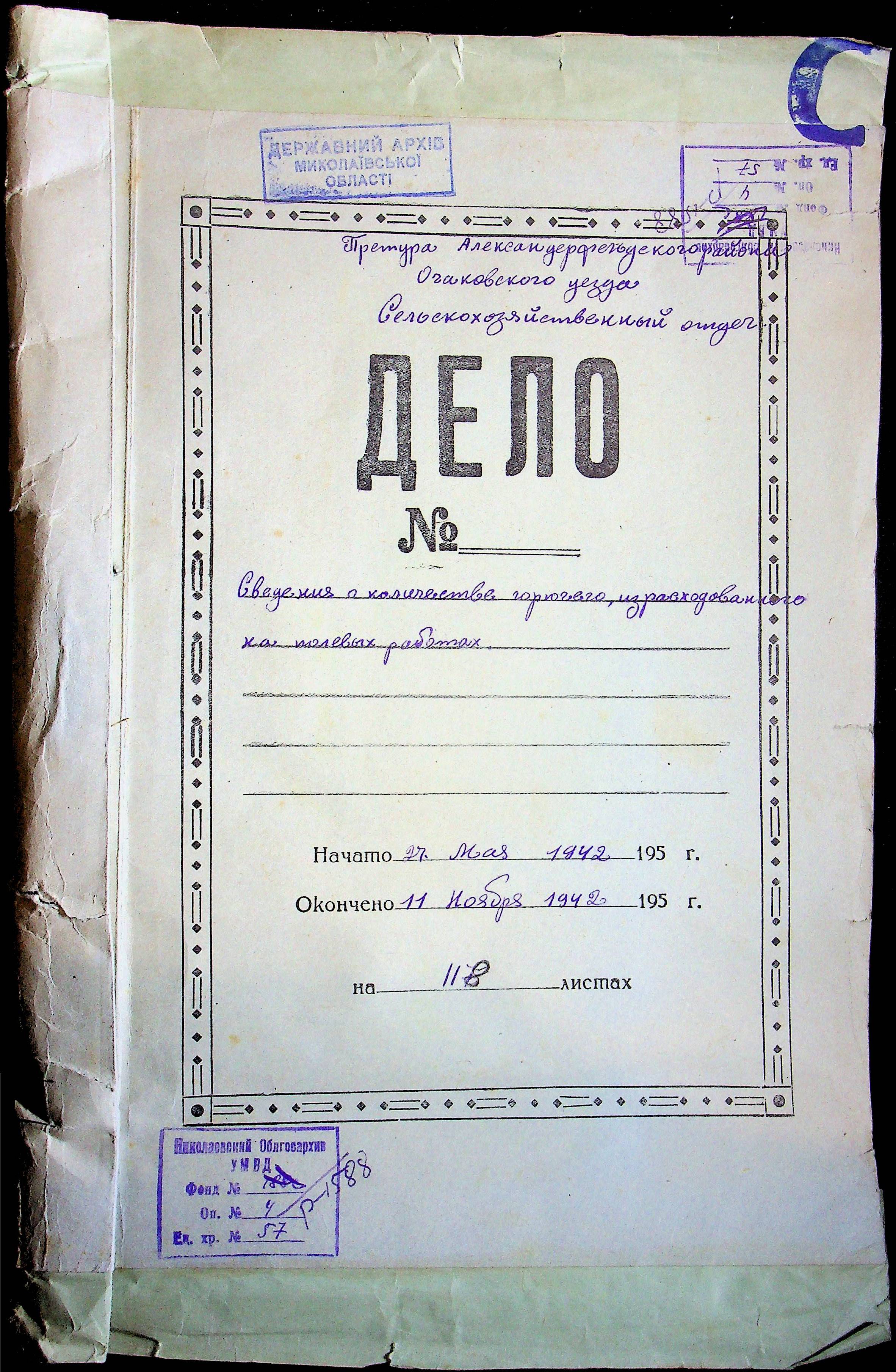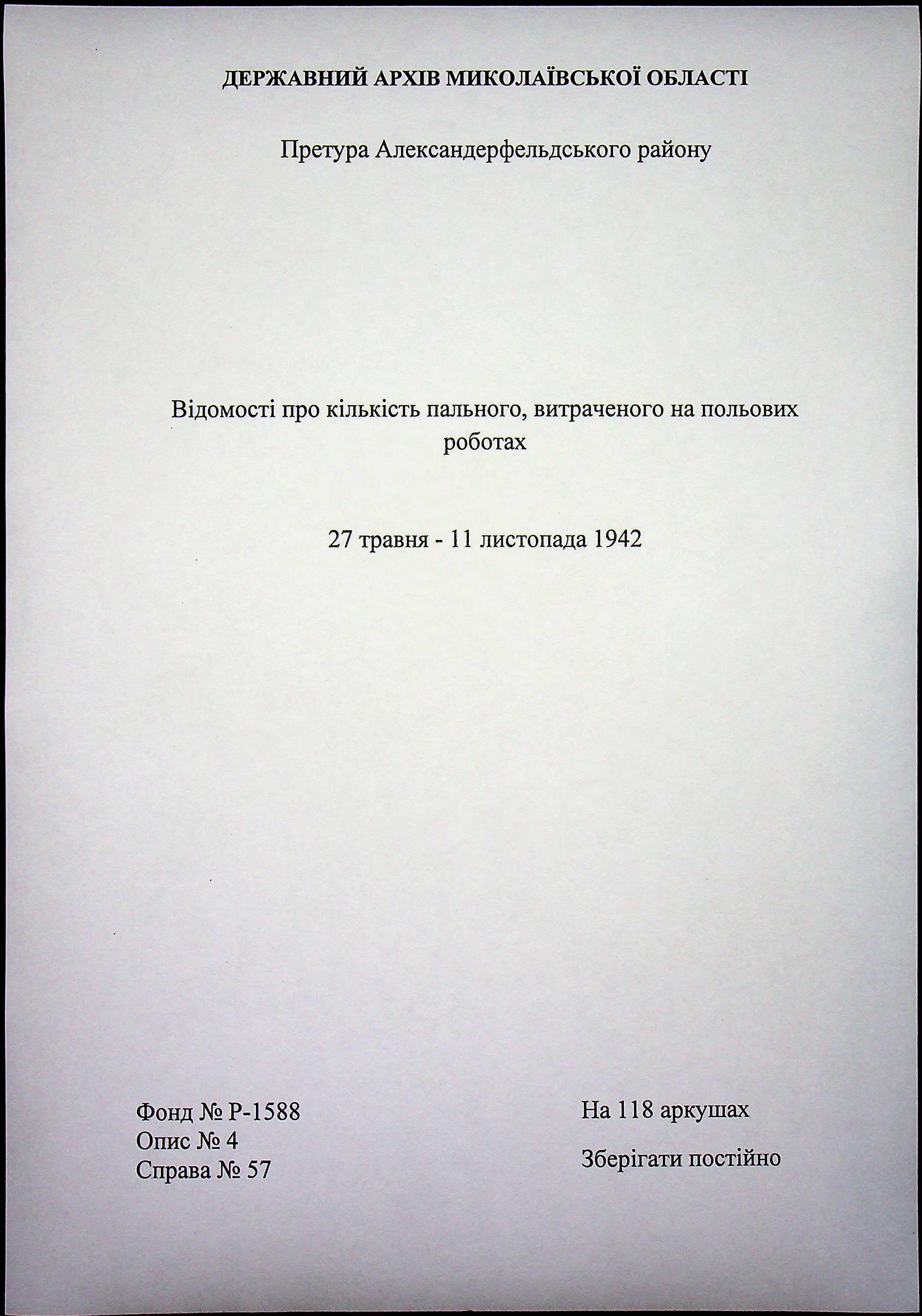 • • • • Справа № 57 “Відомості про кількість пального, витраченого на польових роботах”