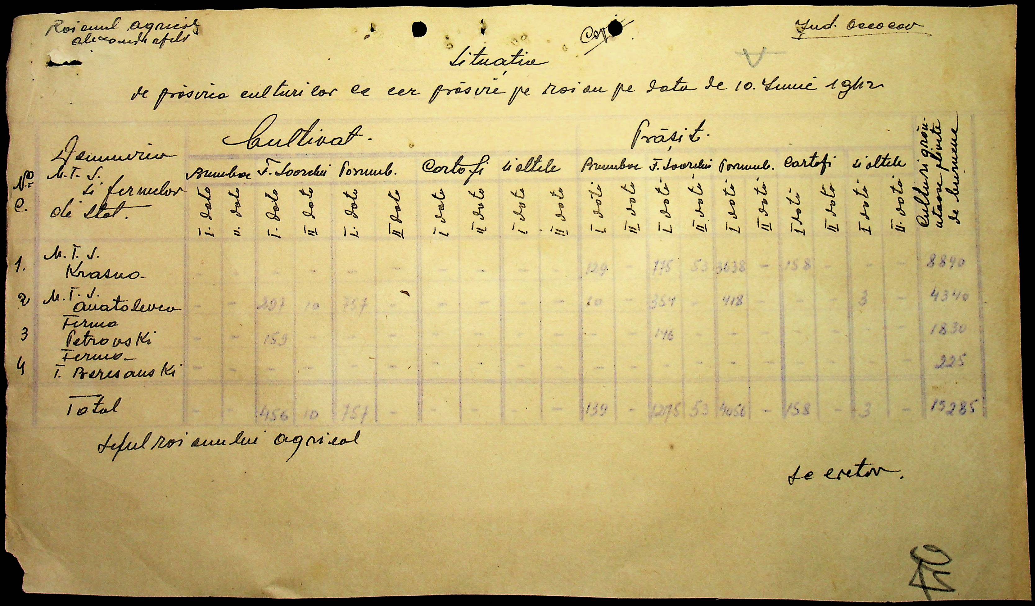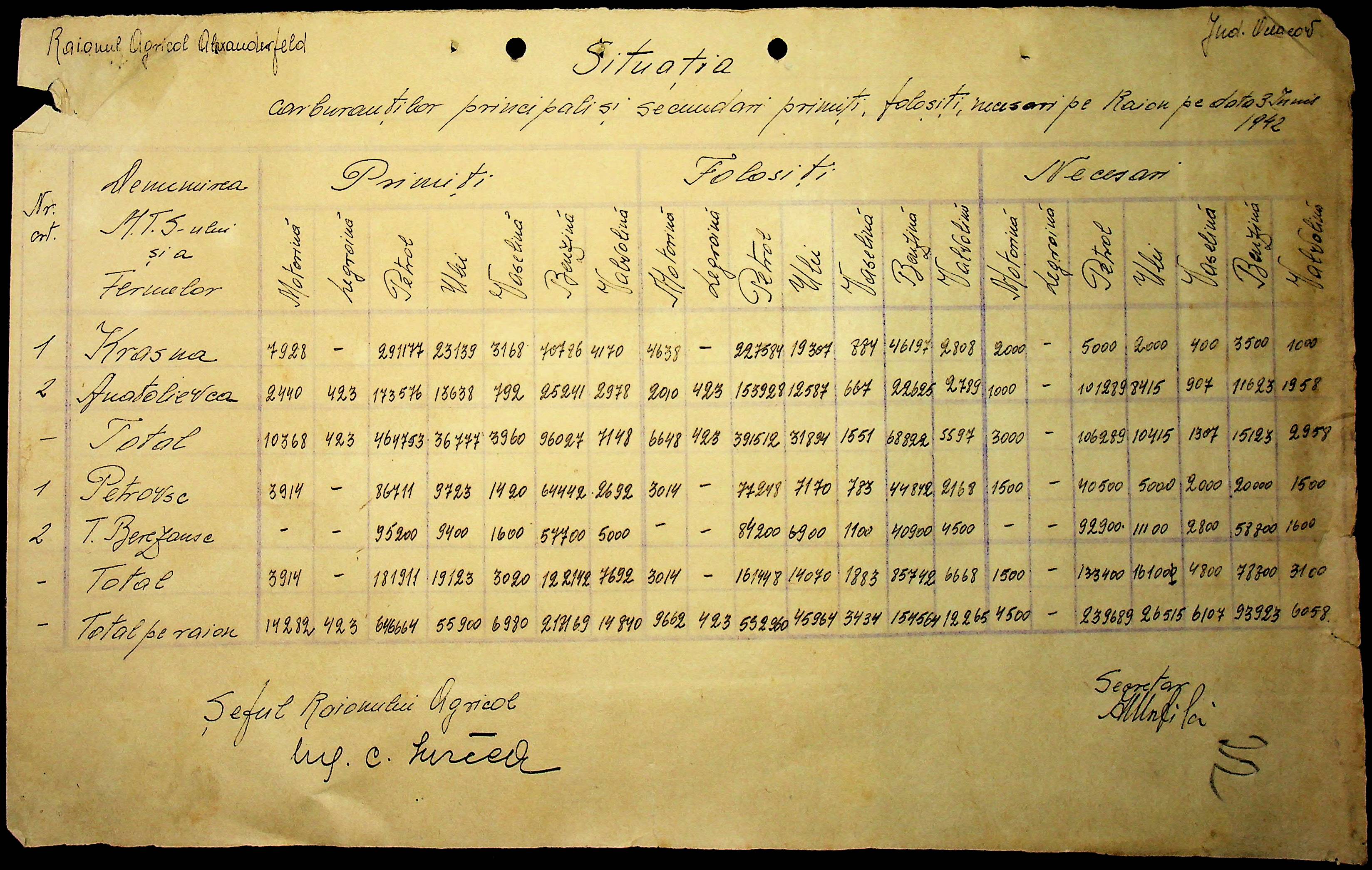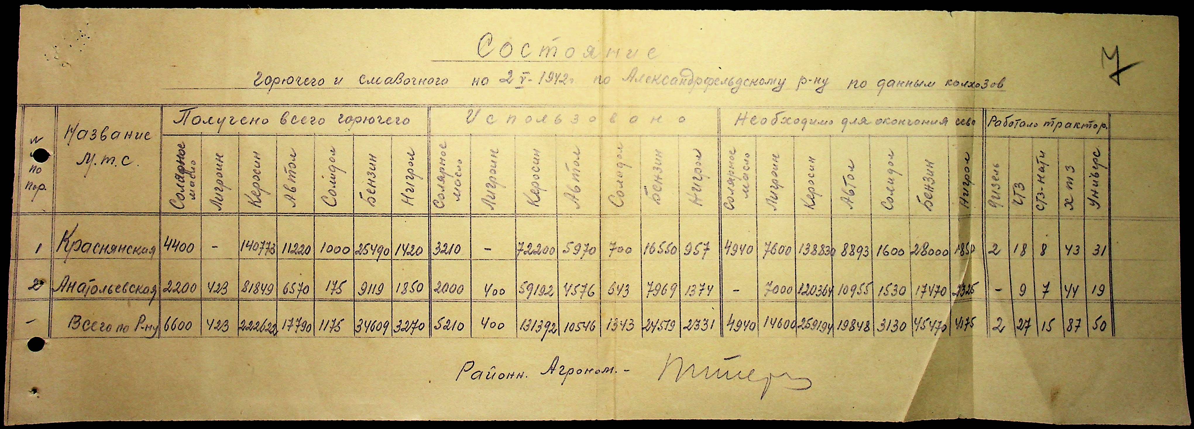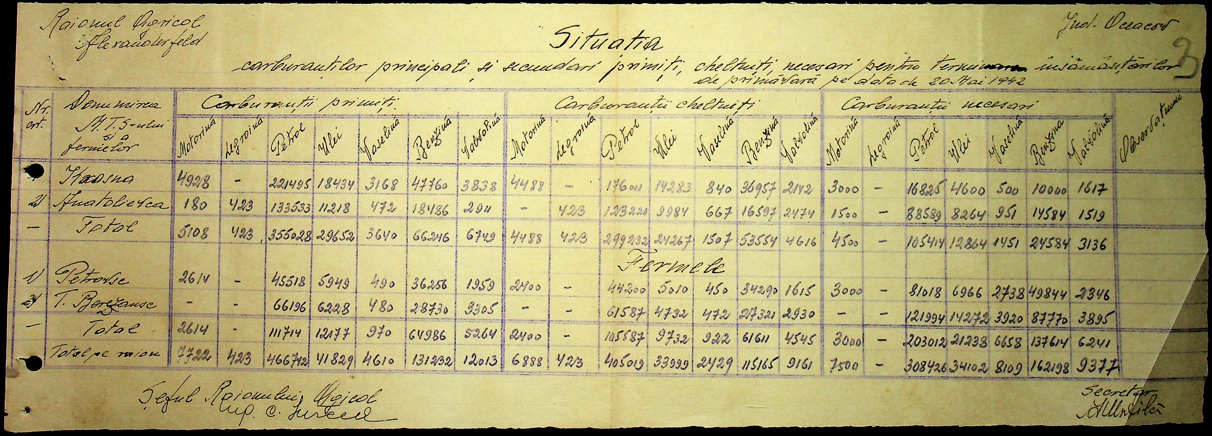 • • • • Справа № 57 “Відомості про кількість пального, витраченого на польових роботах”