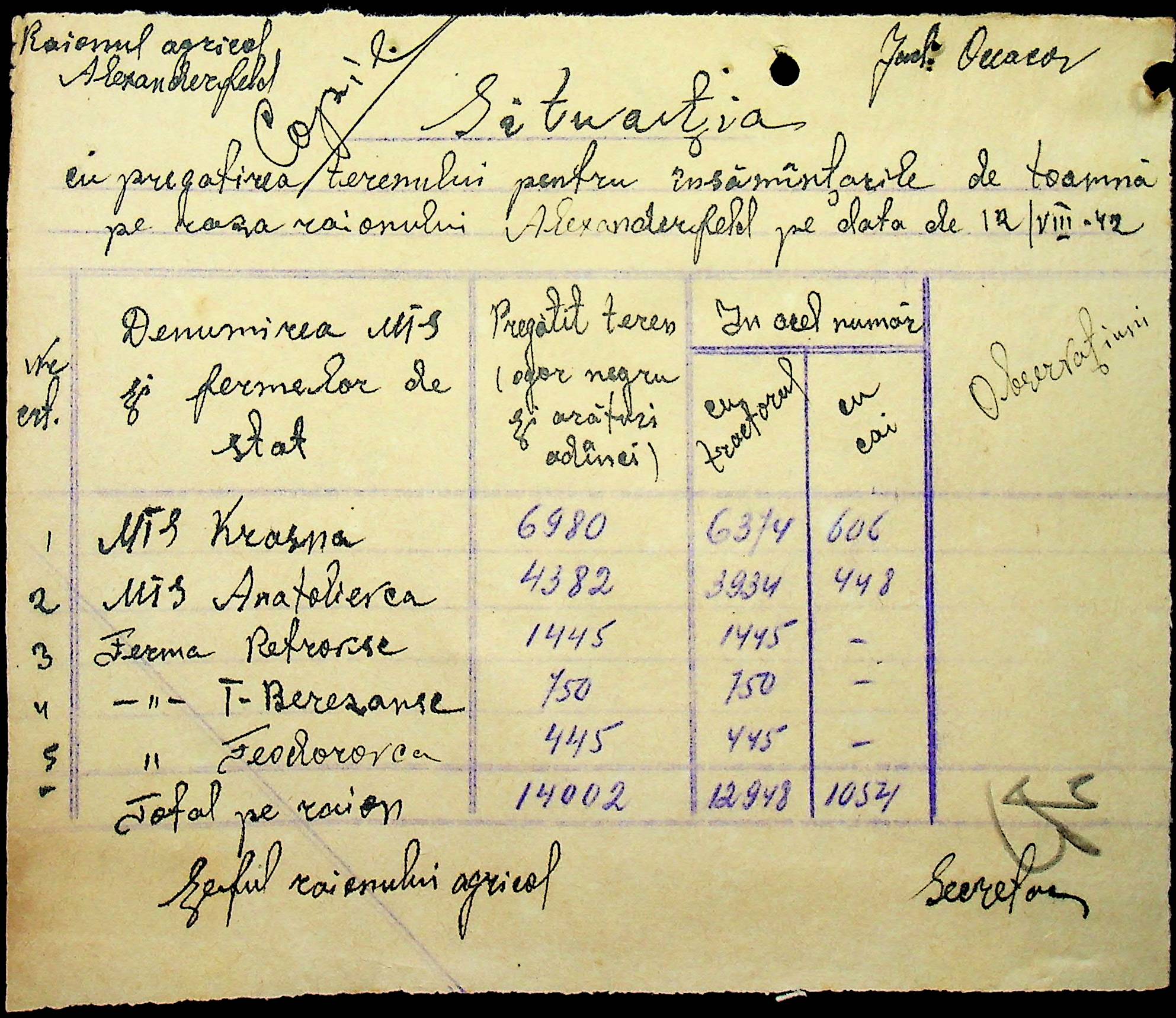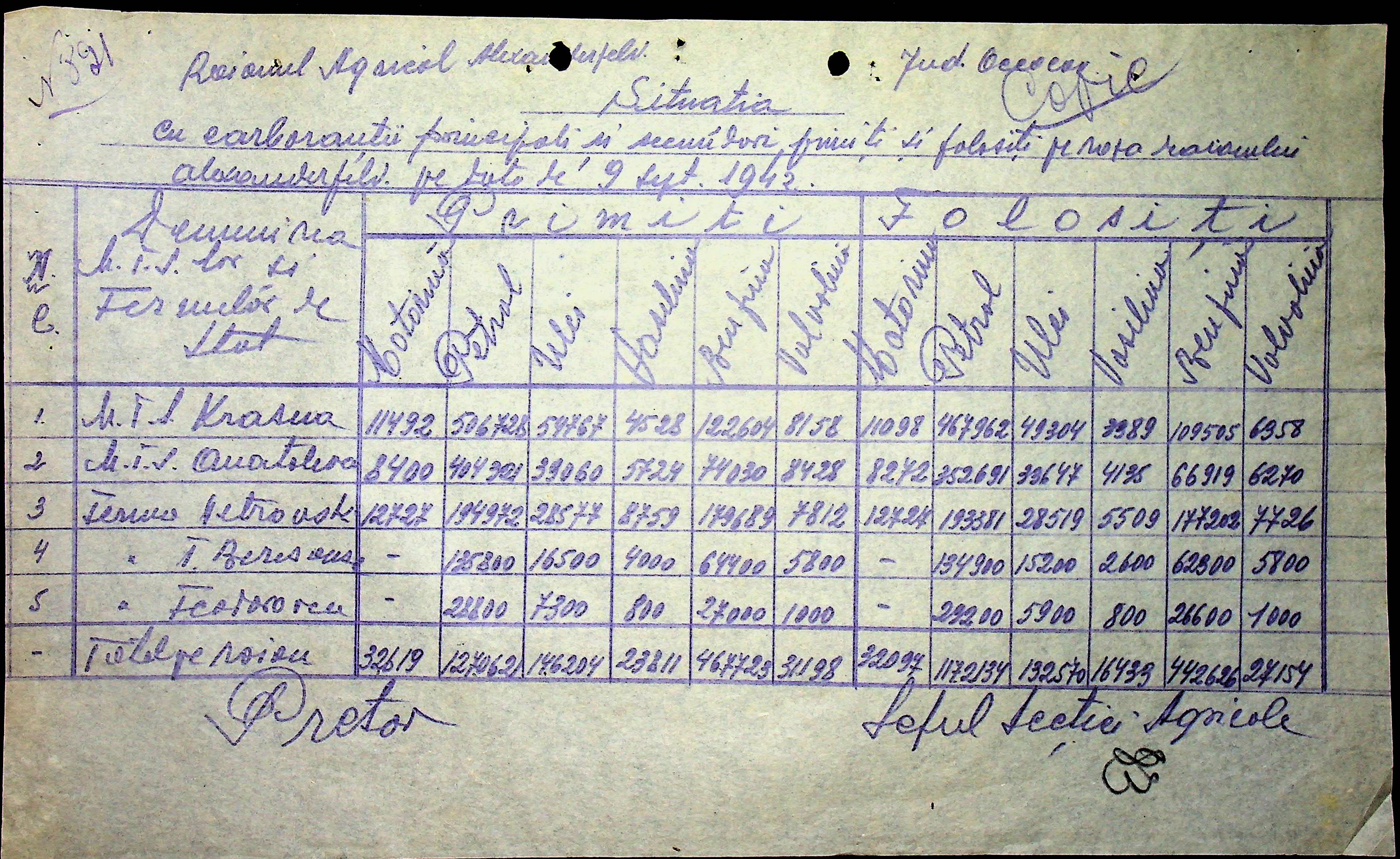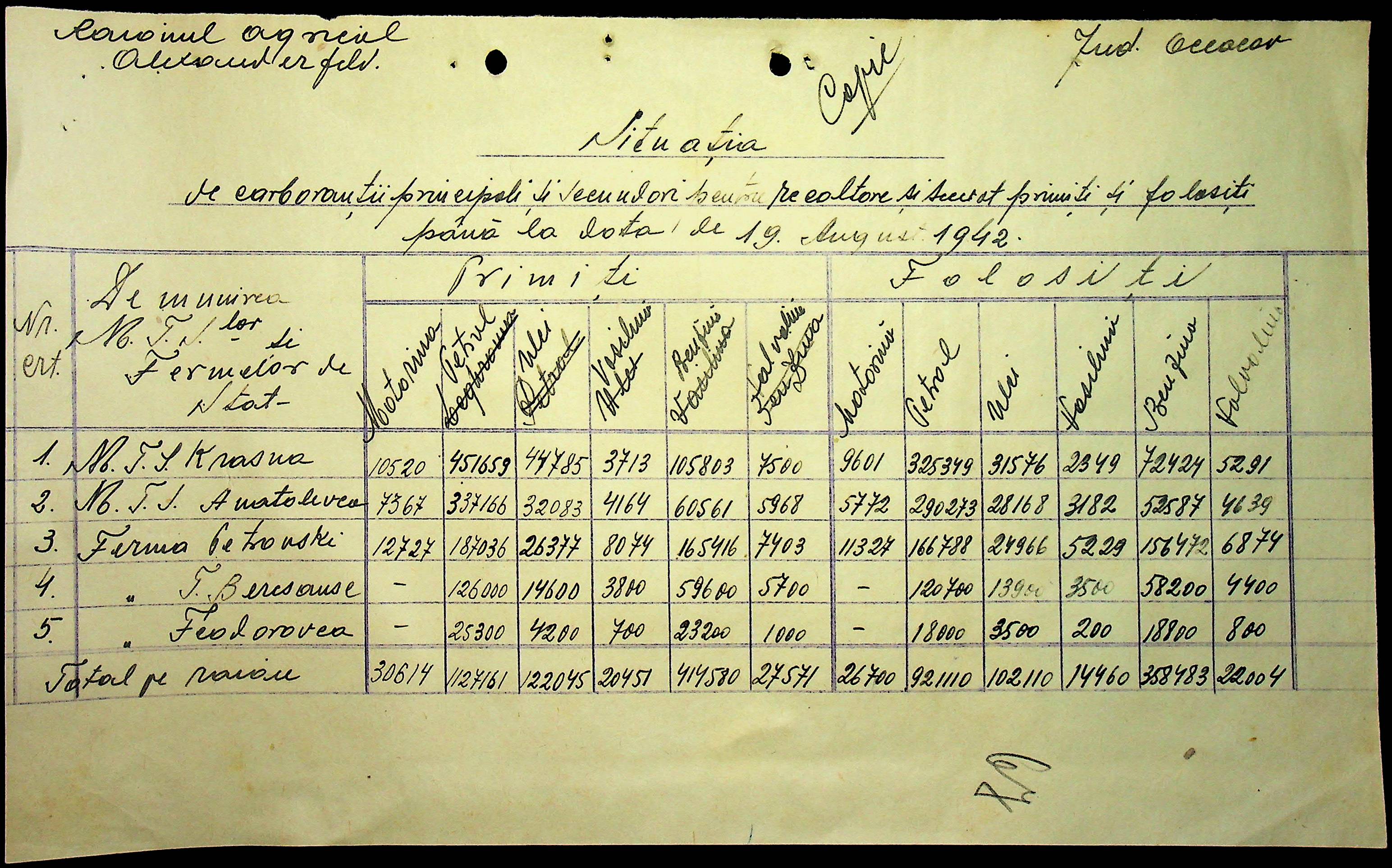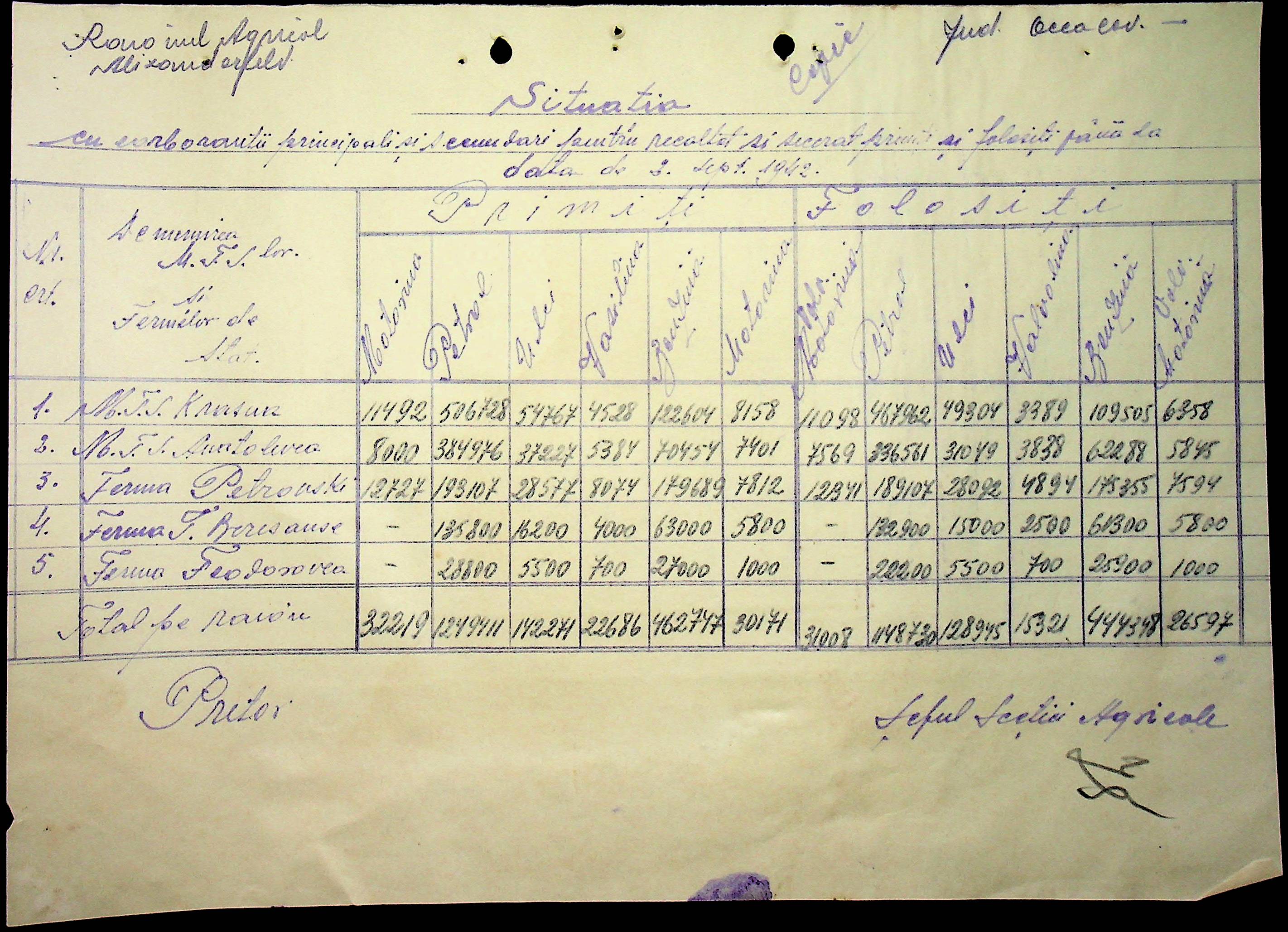 • • • • Справа № 57 “Відомості про кількість пального, витраченого на польових роботах”