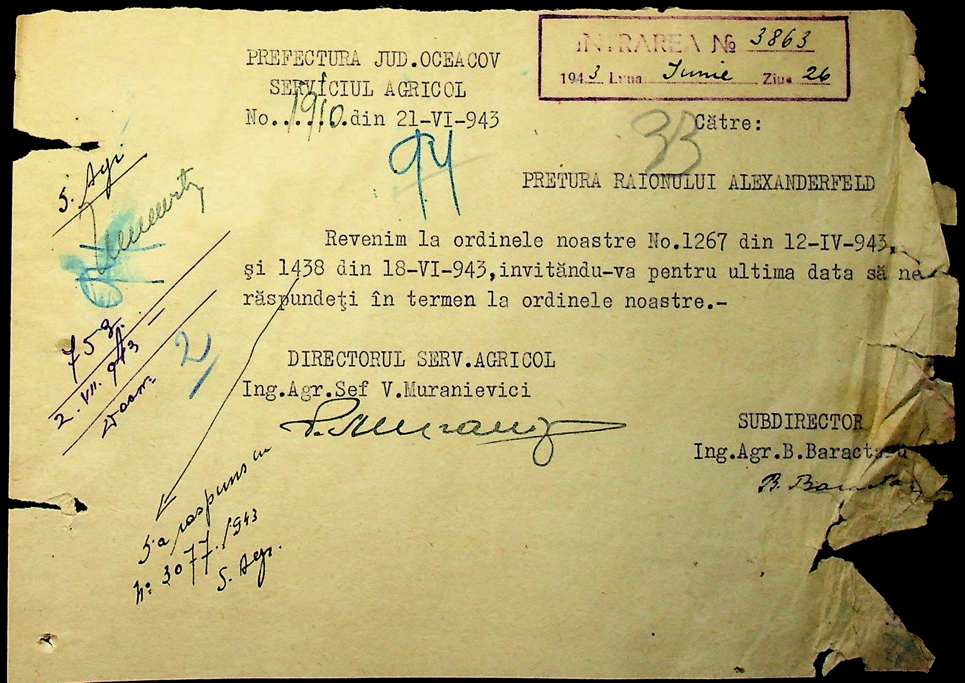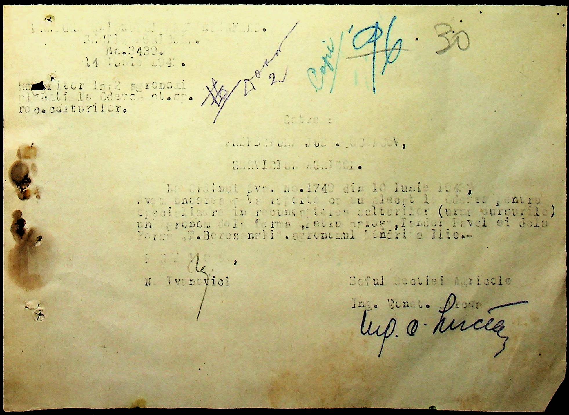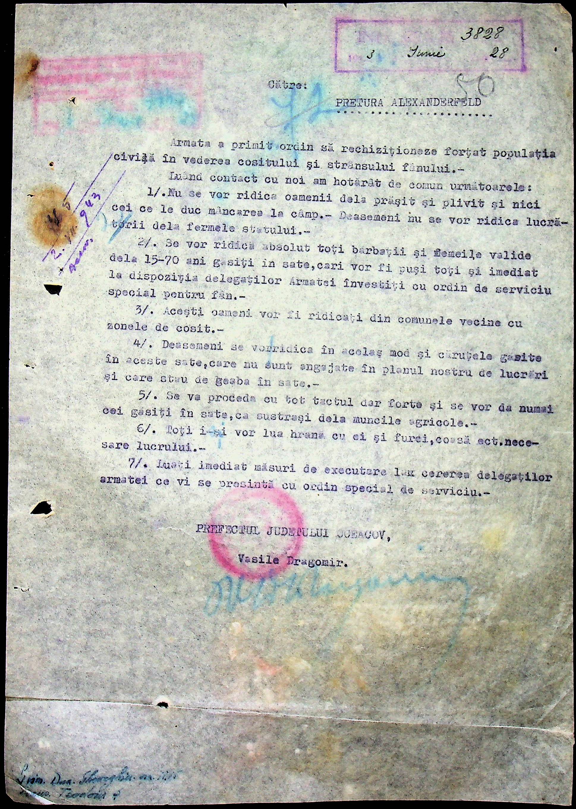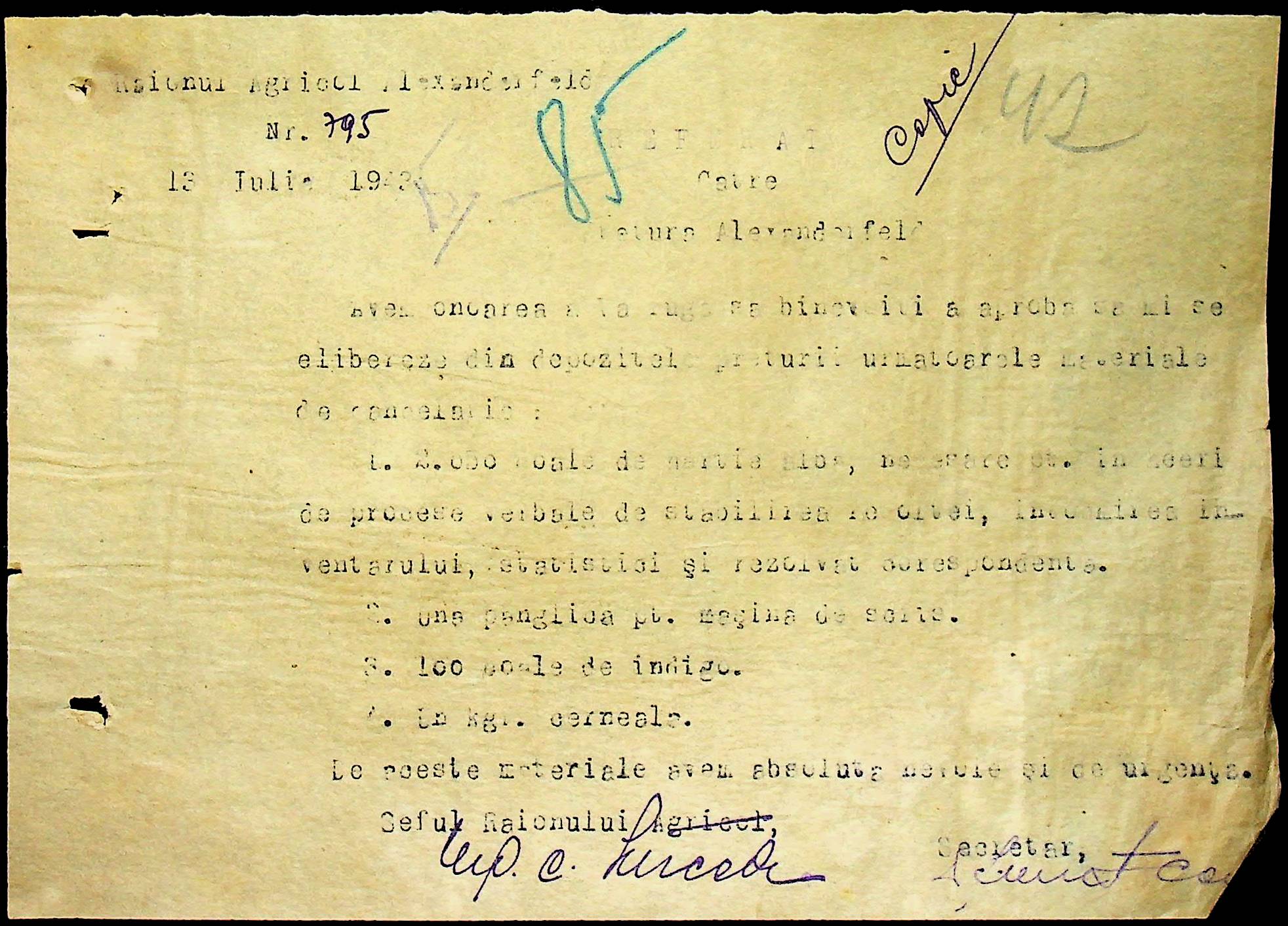 • • • • Справа № 62 “Інструкції, накази дирекції агрокультур губернаторства Трансністрії (копії), листування з сільськогосподарським відділом префектури про вихід на польові роботи учнів та вчителів, мобілізацію населення на військові роботи. Список сільськогосподарських спеціалістів, премійованих румунською адміністрацією під час весняної посівної кампанії 1943 року”