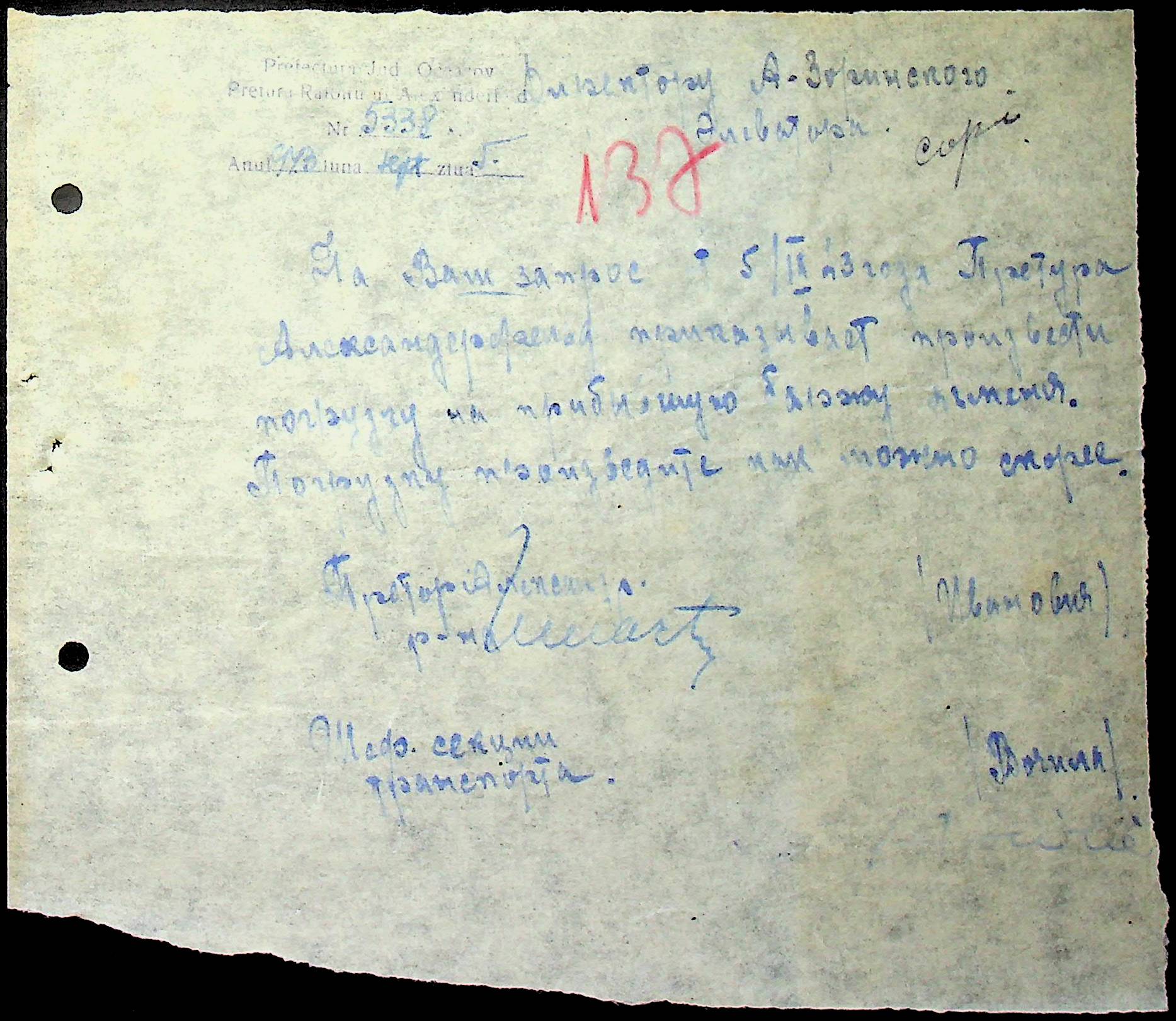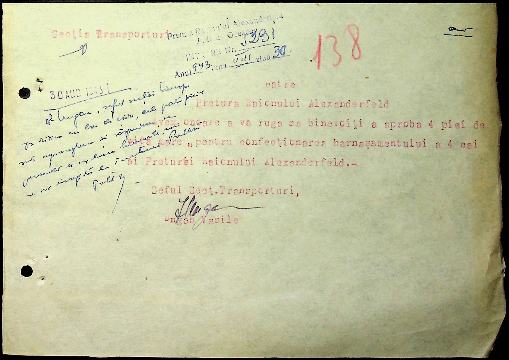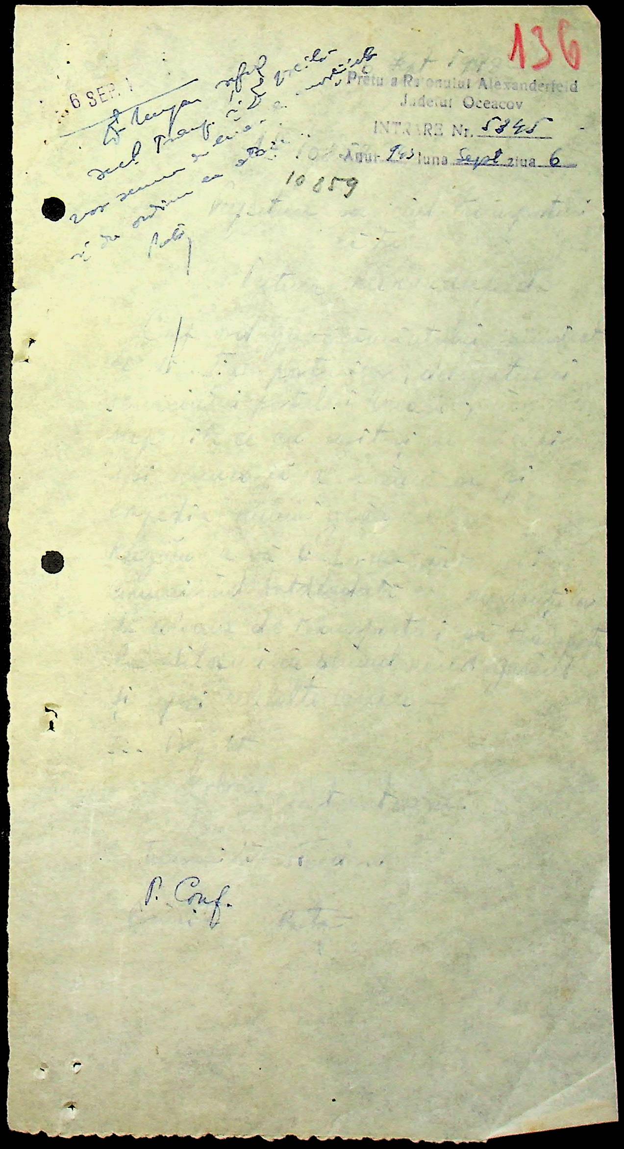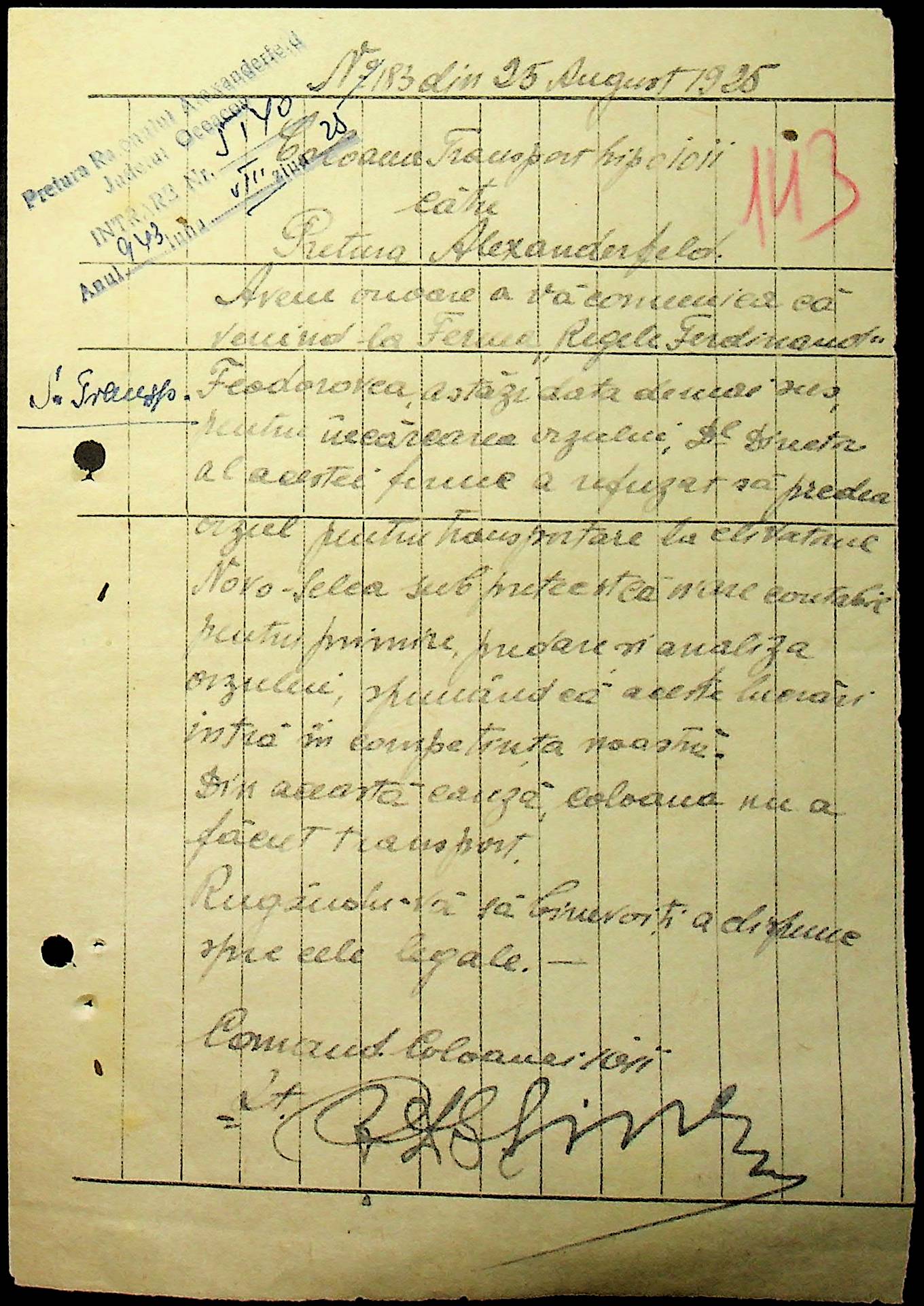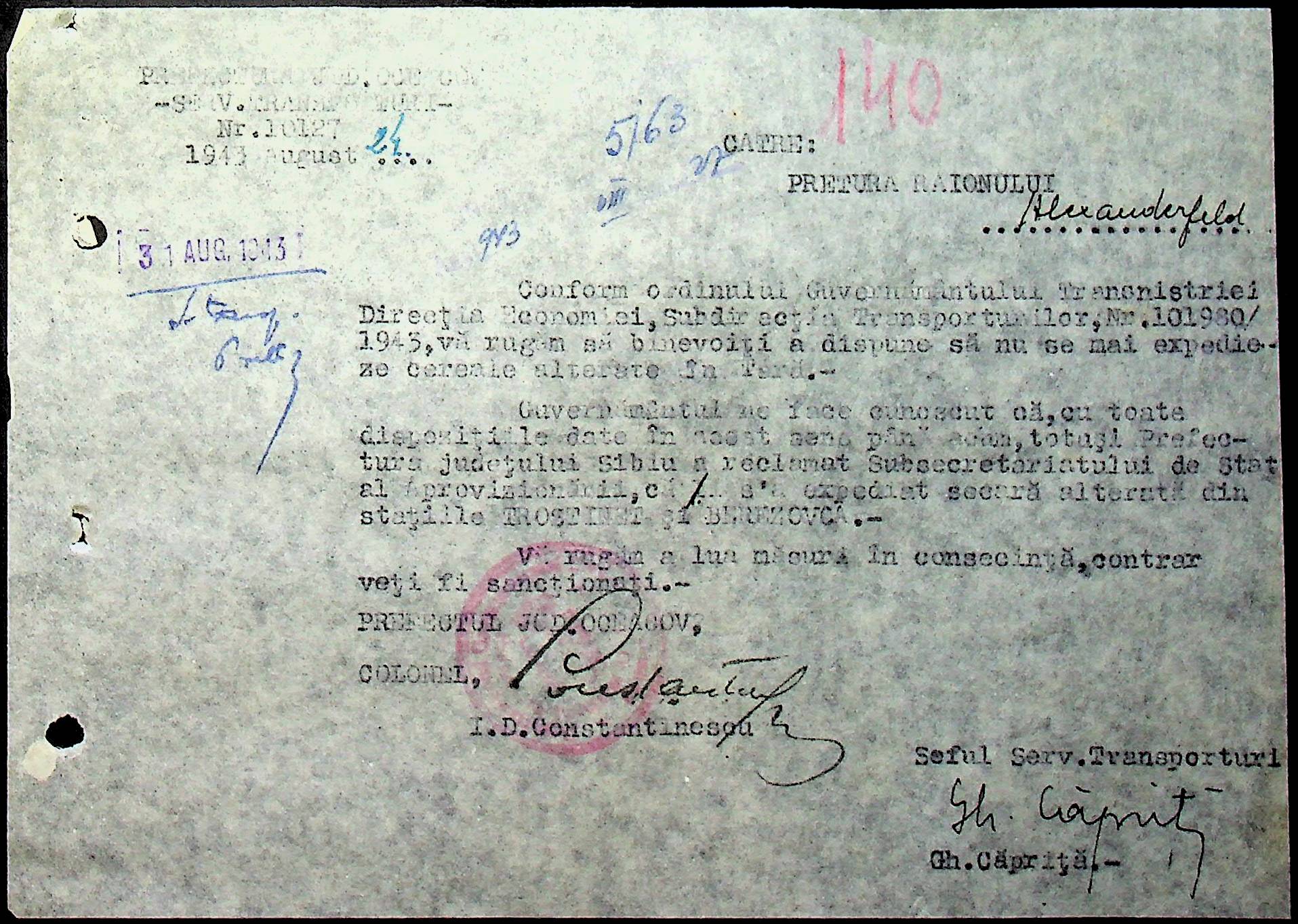 • • • • Справа № 68 “Обіжник, накази та інструкції цивільного губернатора Трансністрії (копії) про використання військово-транспортної колони для транспортування зерна з Трансністрії до Румунії. Листування з транспортним відділом префектури про відправку тракторів з окупованої території до Румунії, навантаження пшениці та ячменю на баржі, видачу військово-транспортній колоні мішків для зерна”