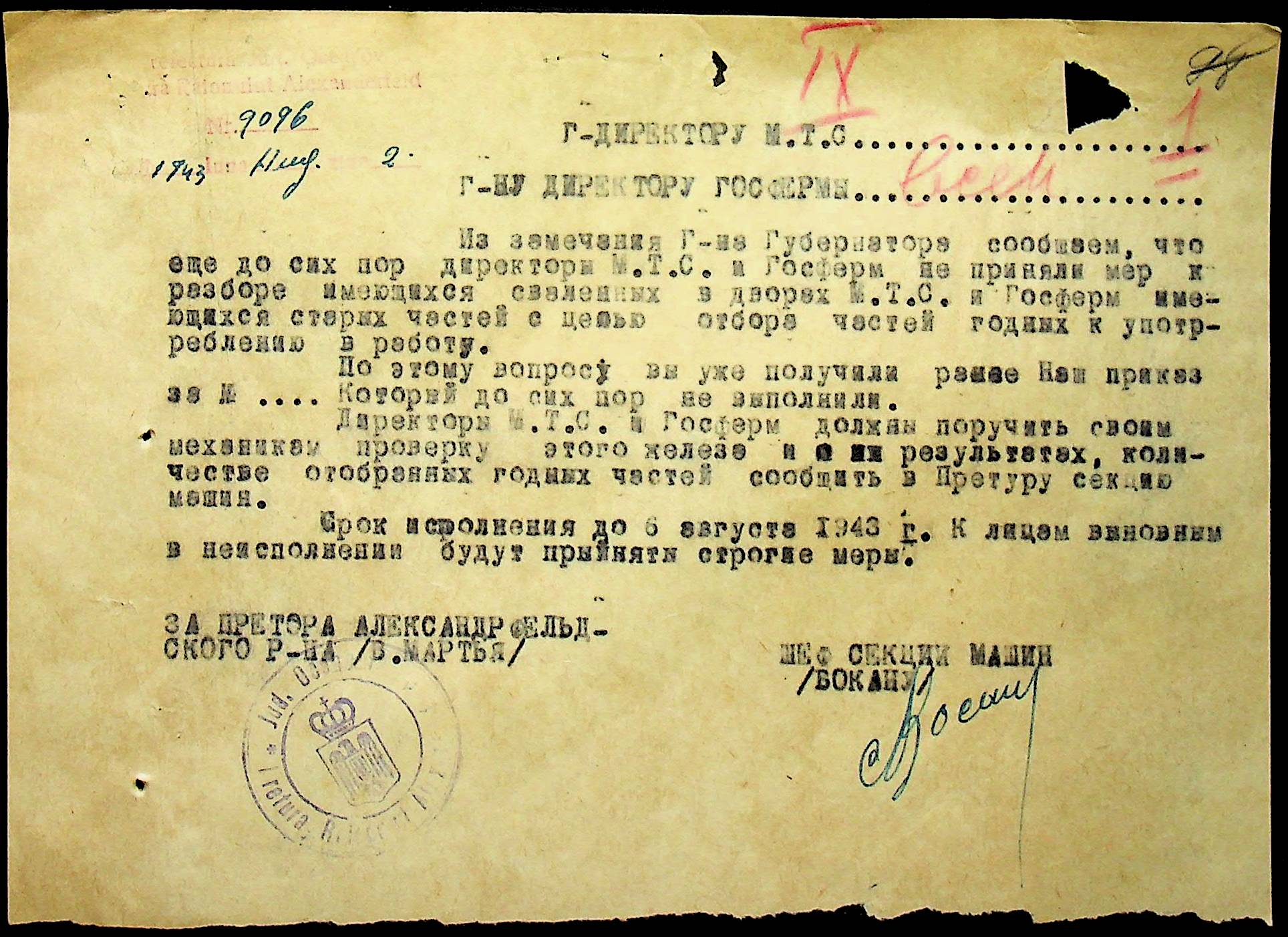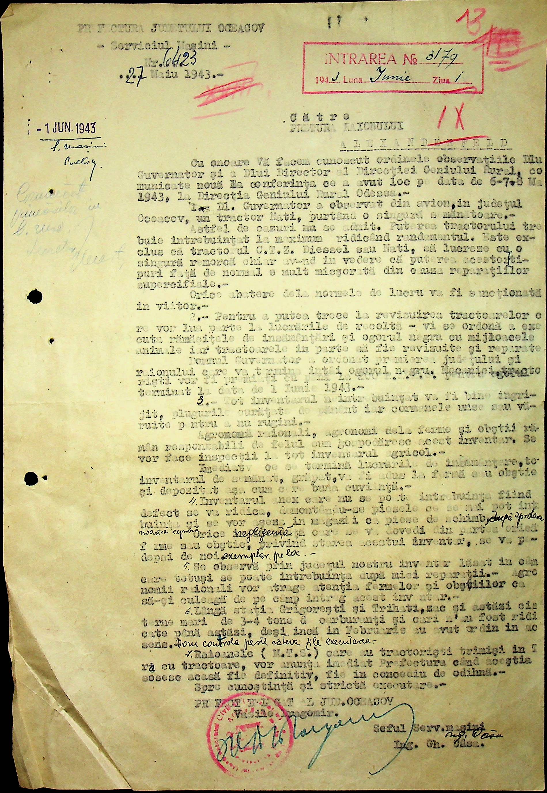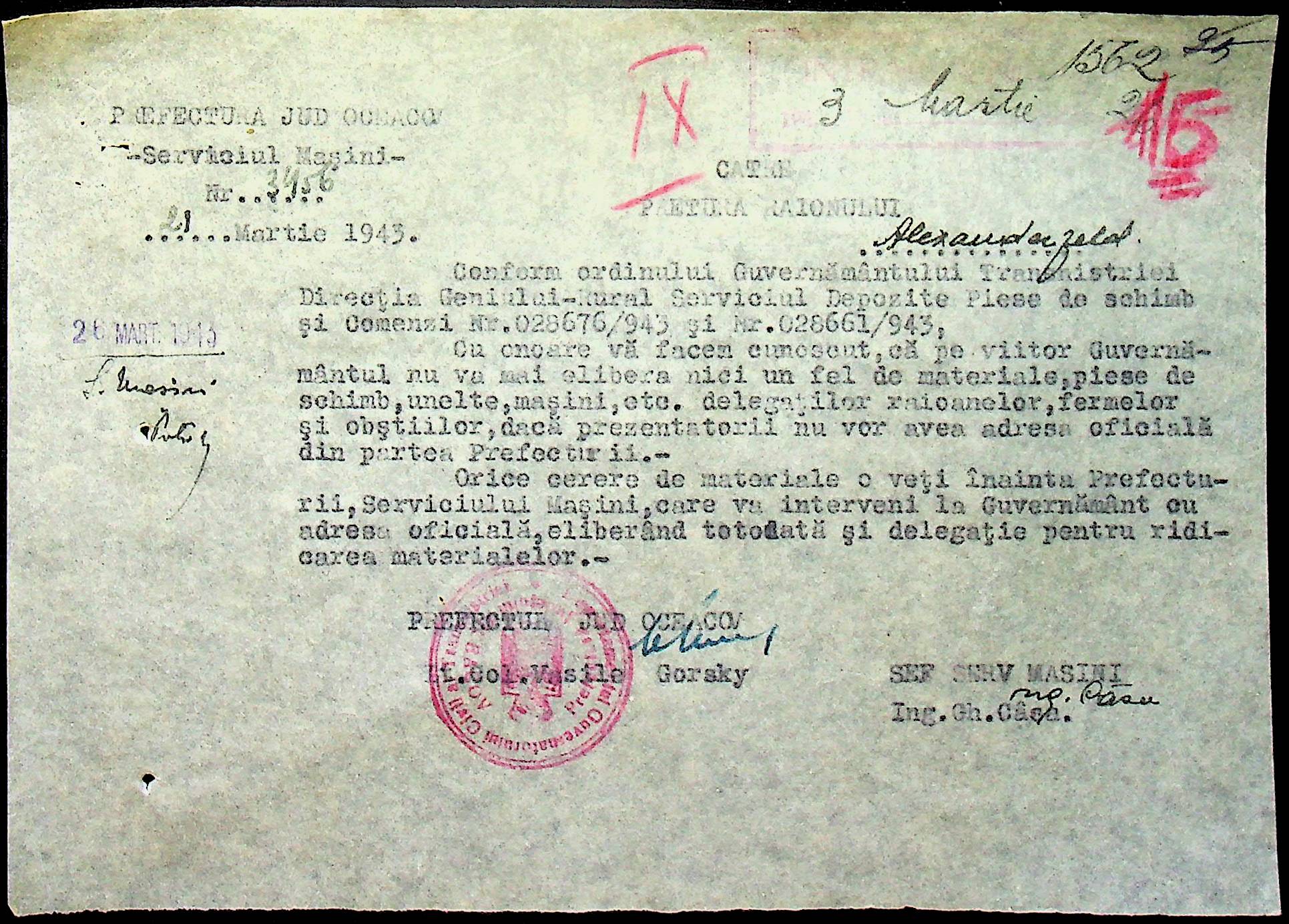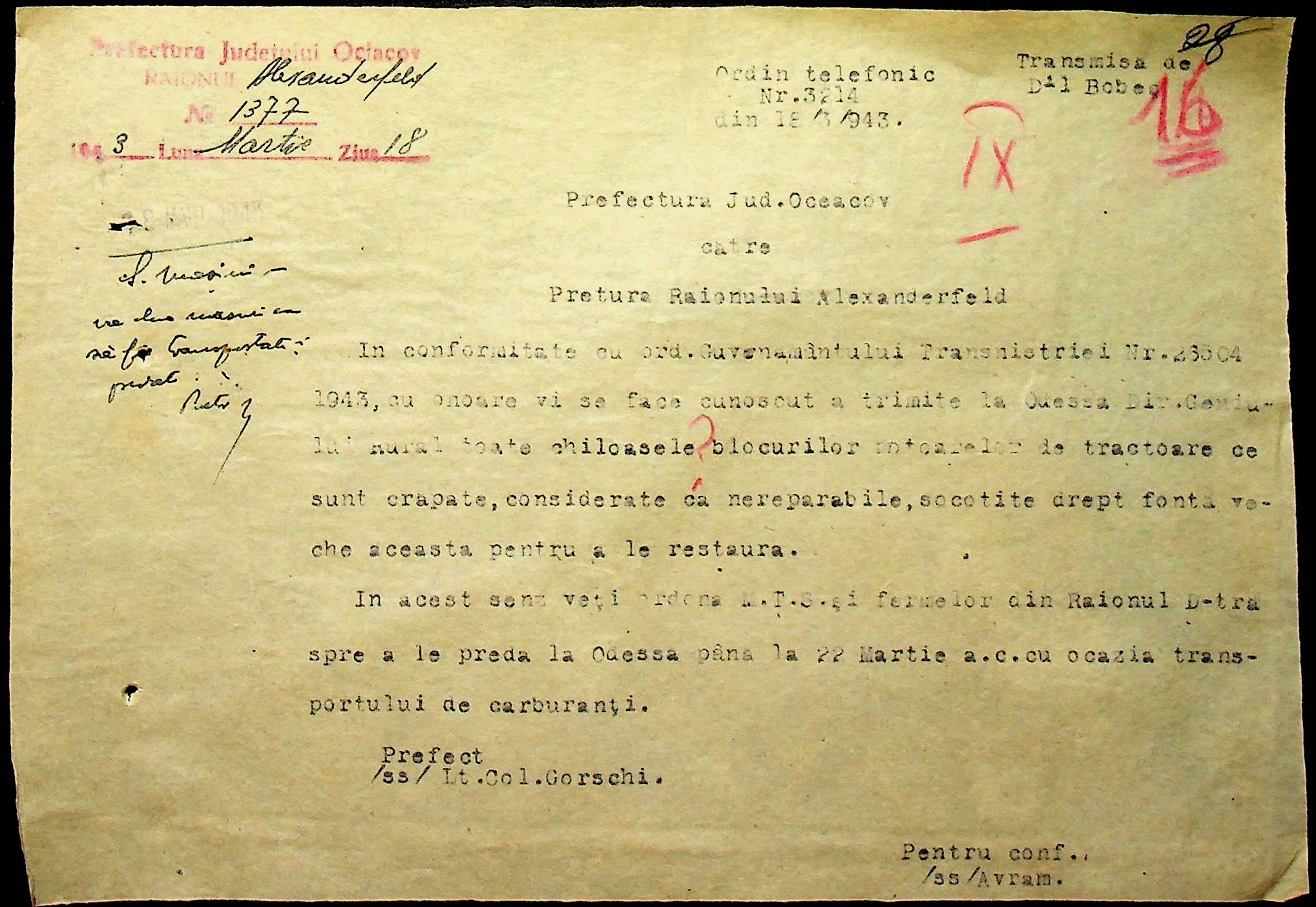 • • • • Справа № 76 “Наказ директора механізації губернаторства Трансністрії (копія) про збирання металобрухту та частин, що не придатні для ремонту тракторів. Листування з машинним відділом префектури про відправку старих запасних частин для реставрації до губернаторства, концентрацію металобрухту району”