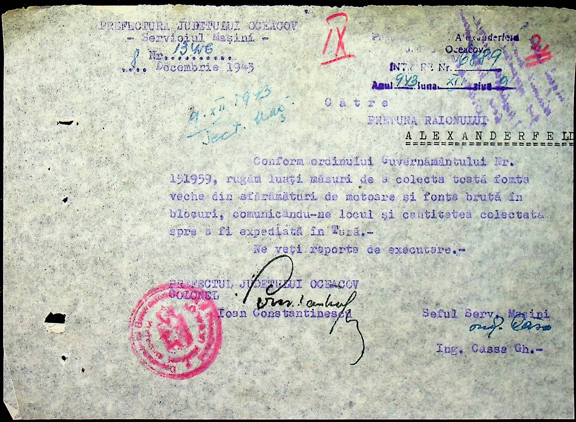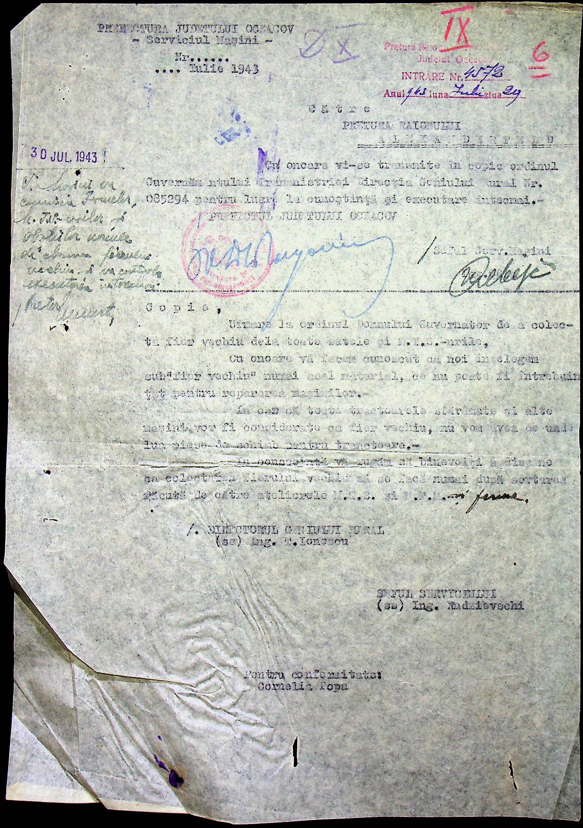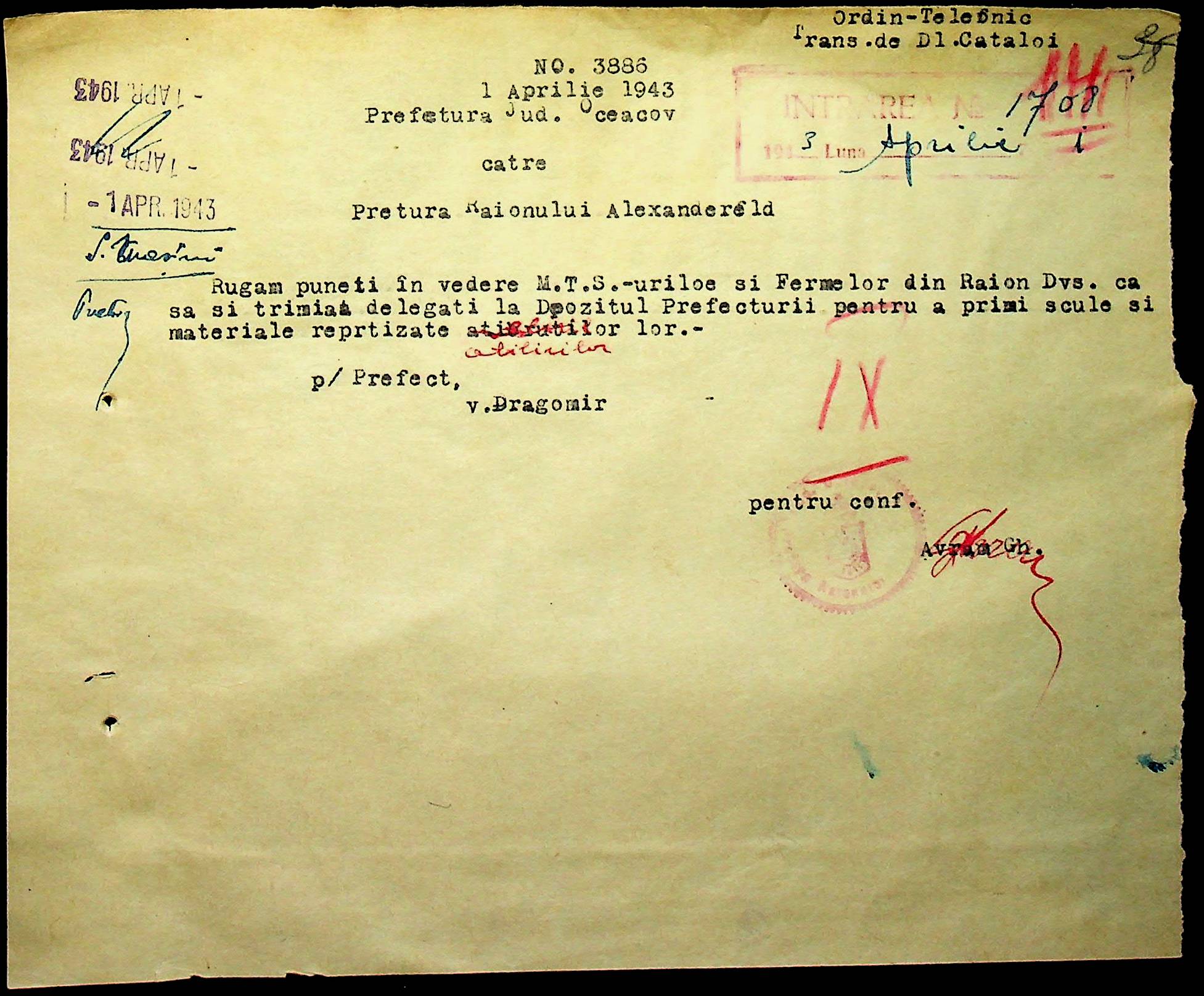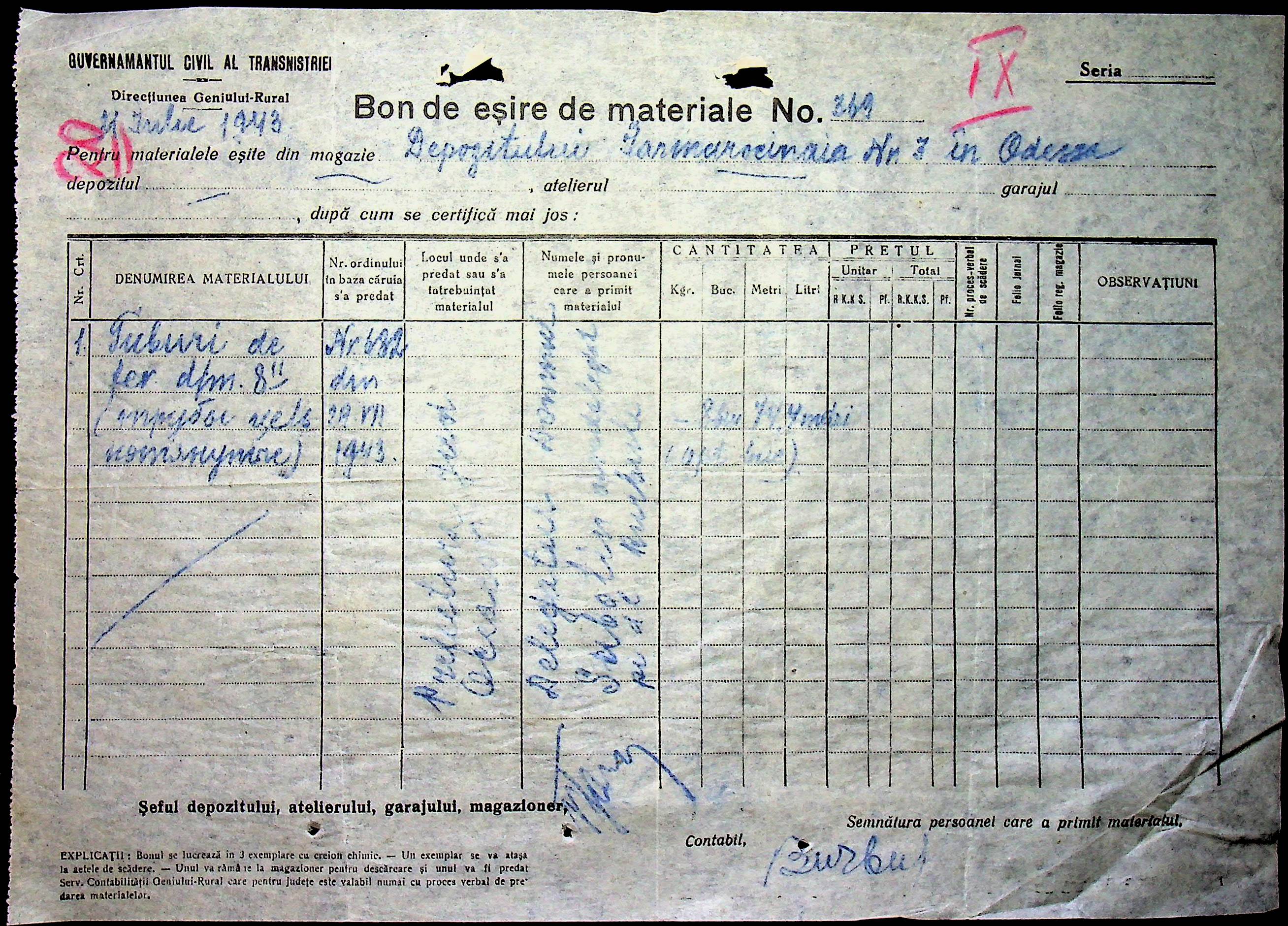 • • • • Справа № 76 “Наказ директора механізації губернаторства Трансністрії (копія) про збирання металобрухту та частин, що не придатні для ремонту тракторів. Листування з машинним відділом префектури про відправку старих запасних частин для реставрації до губернаторства, концентрацію металобрухту району”