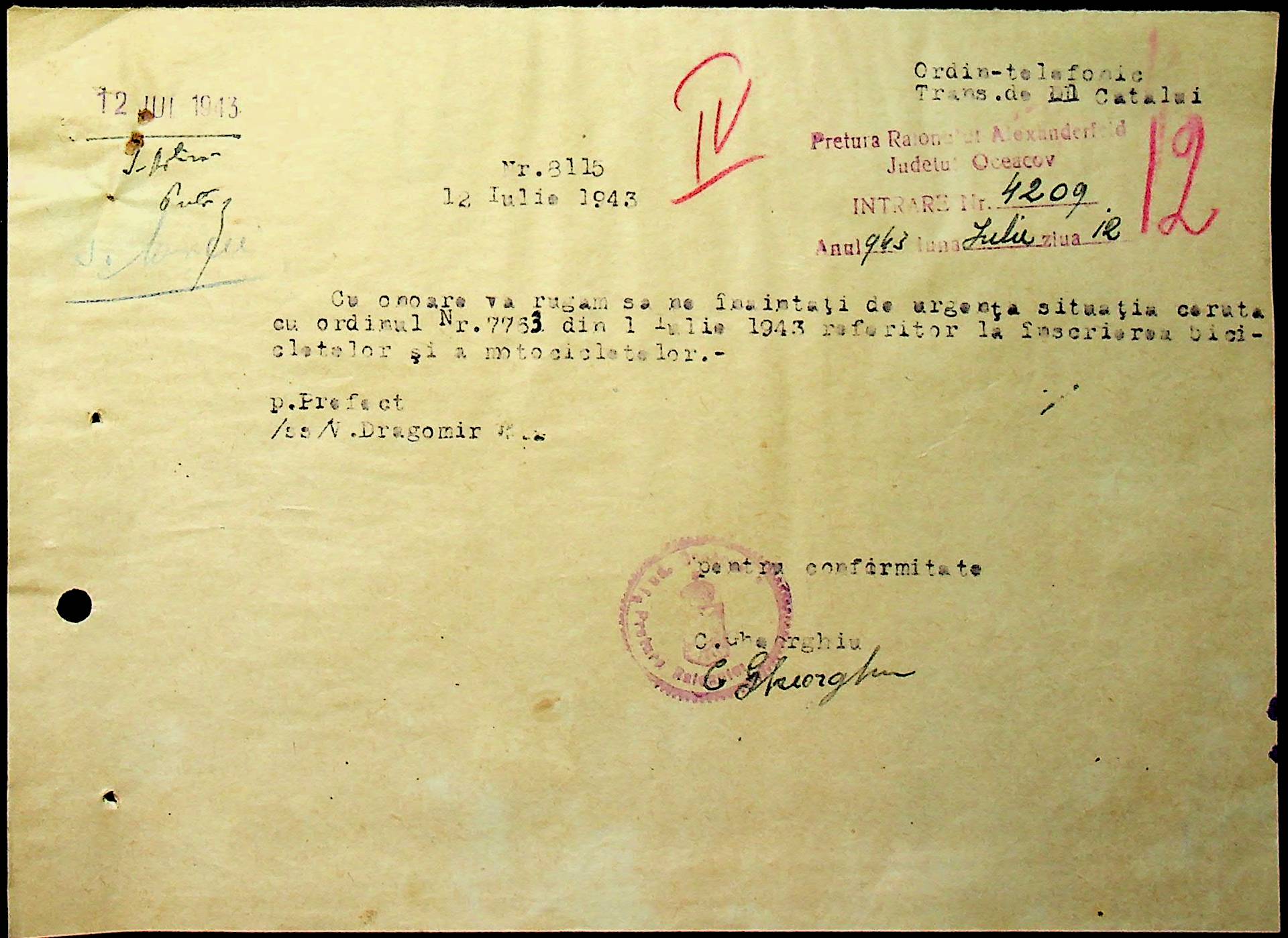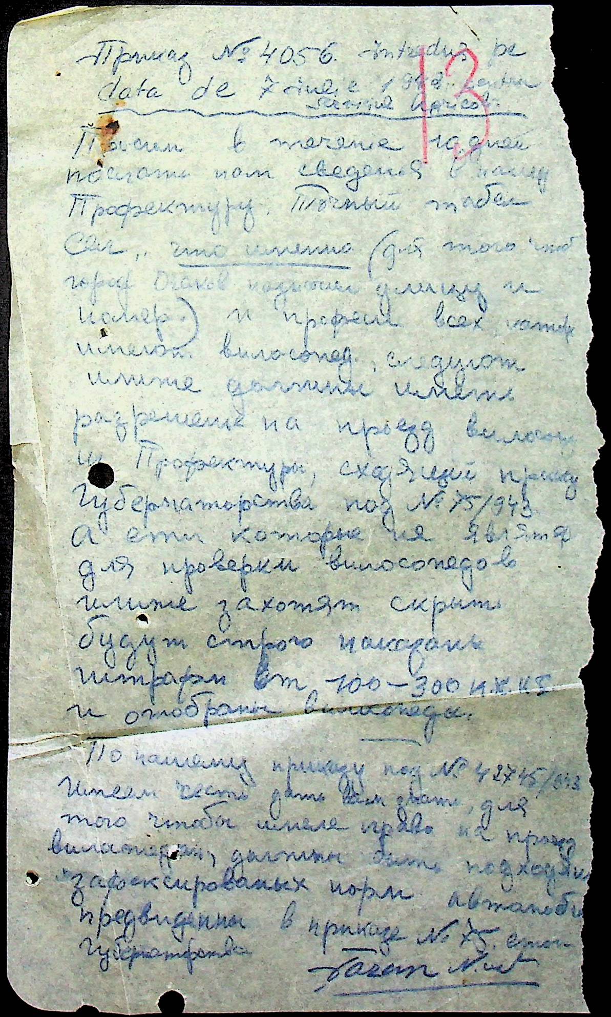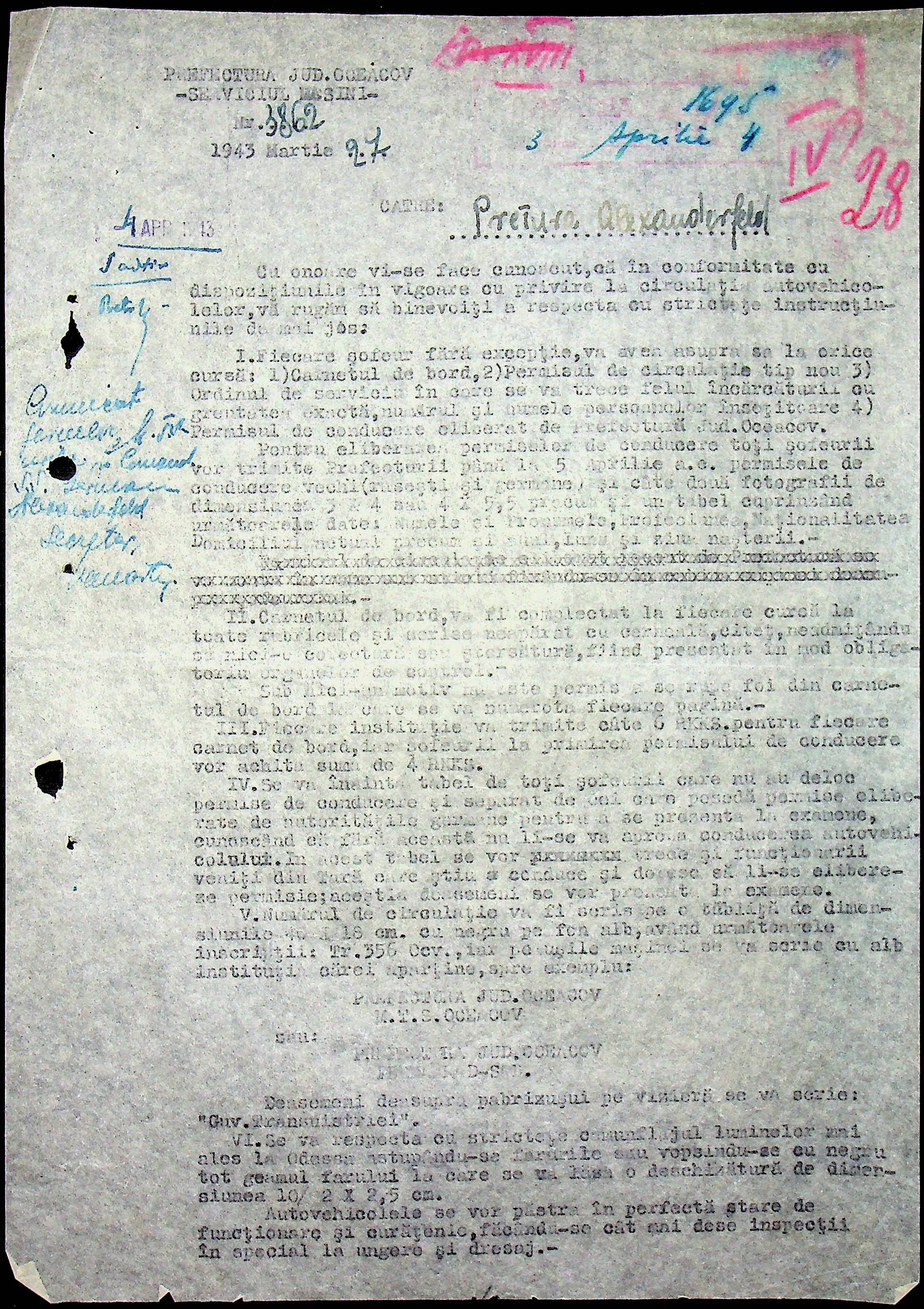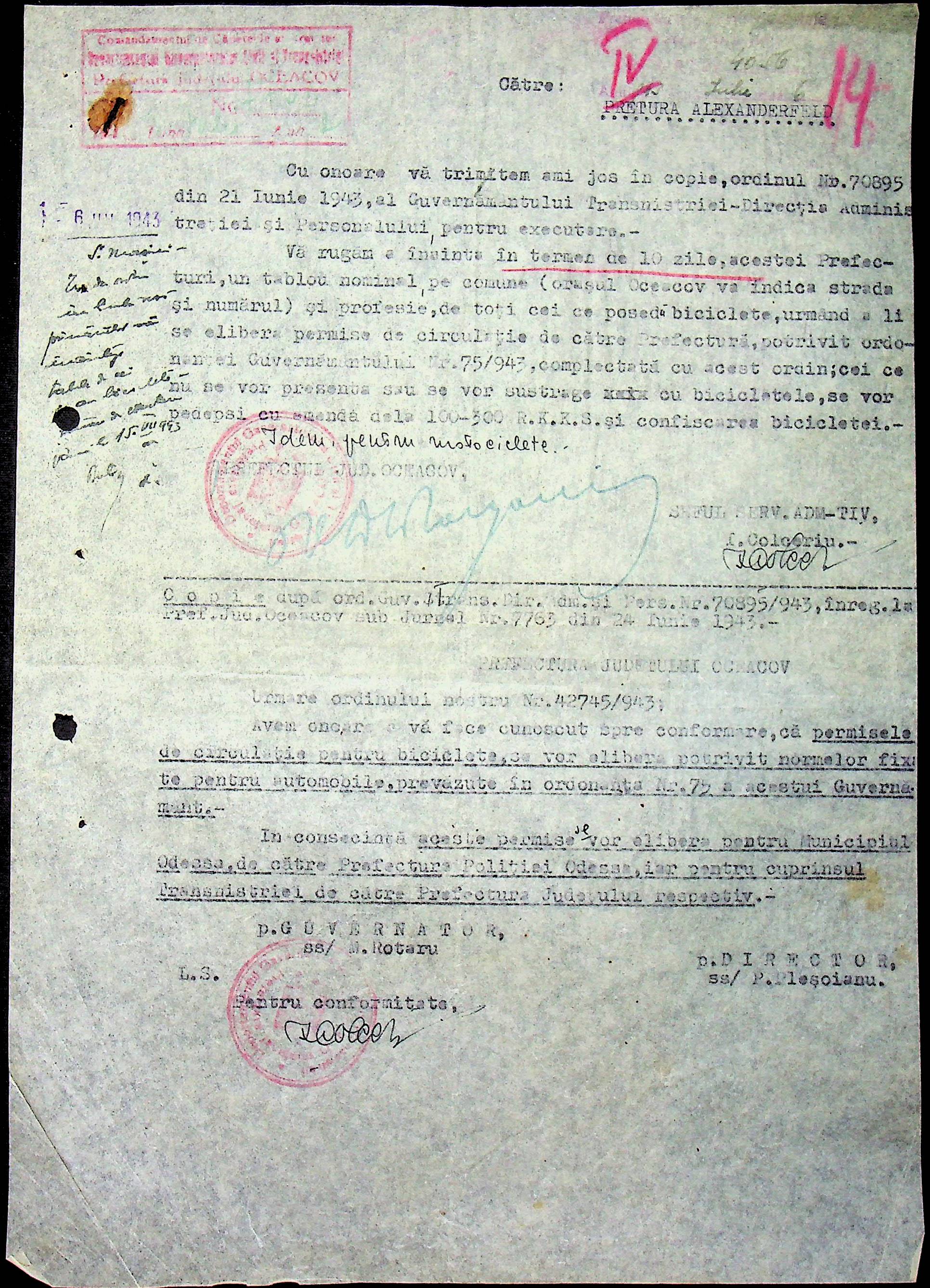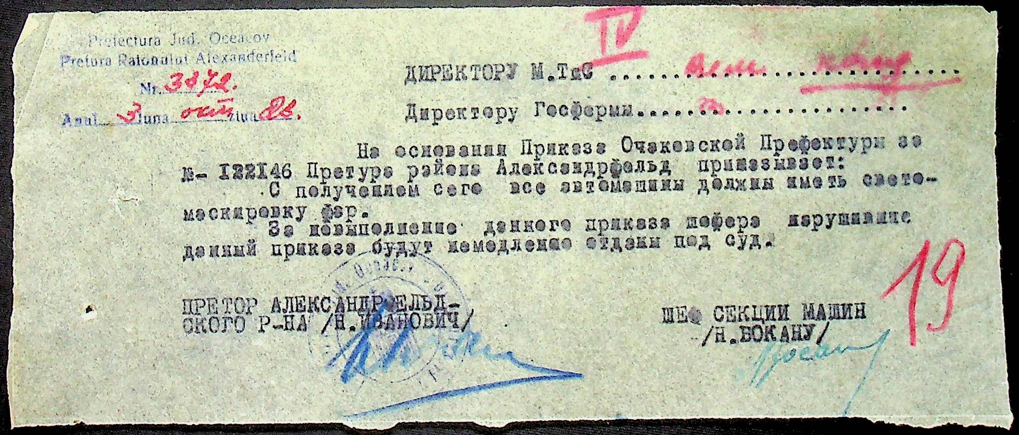 • • • • Справа № 79 “Листування з машинним відділом префектури про заборону водіям перевозити вантаж та пасажирів без дозволу претури, реєстрацію велосипедів та світломаскування фар автомашин”