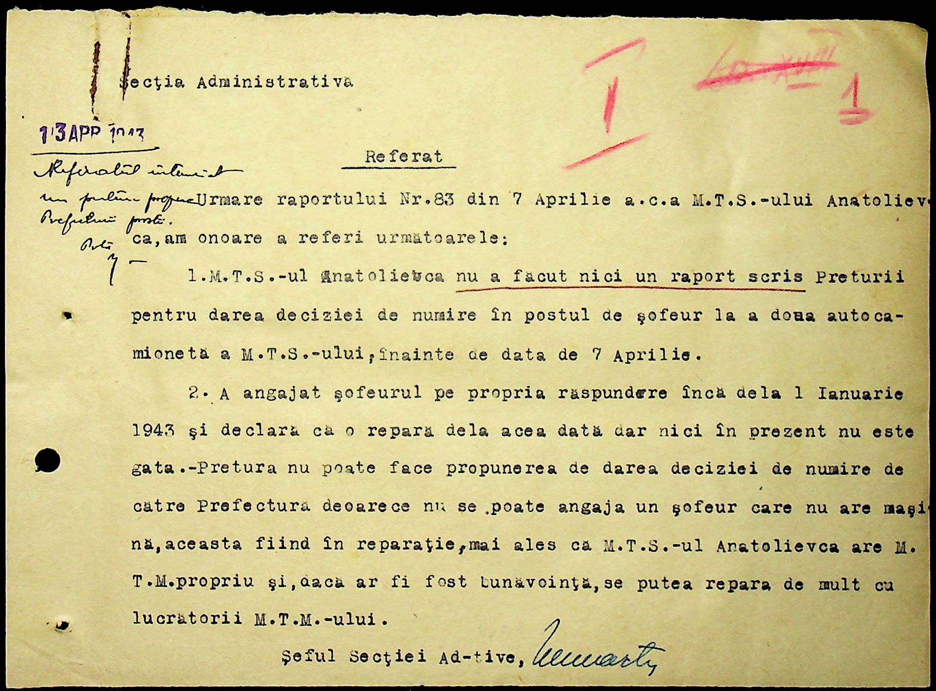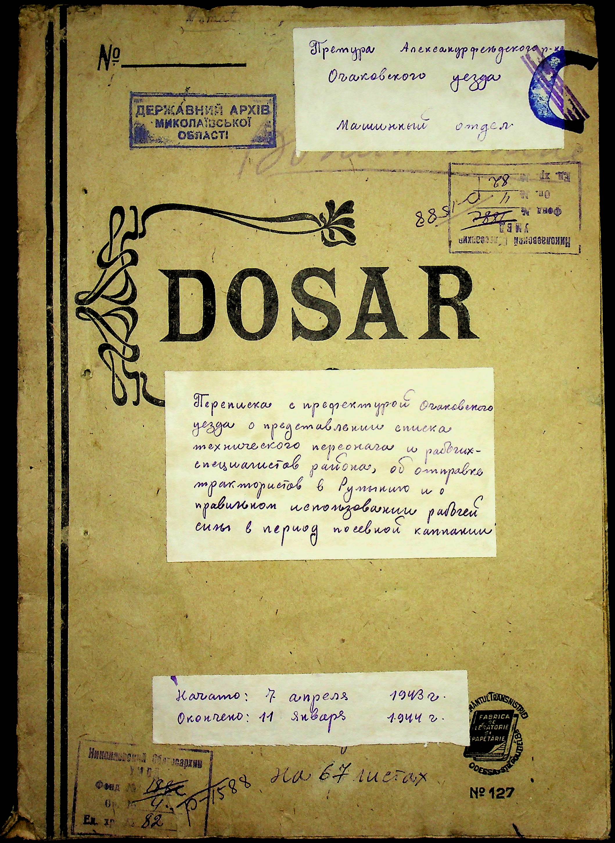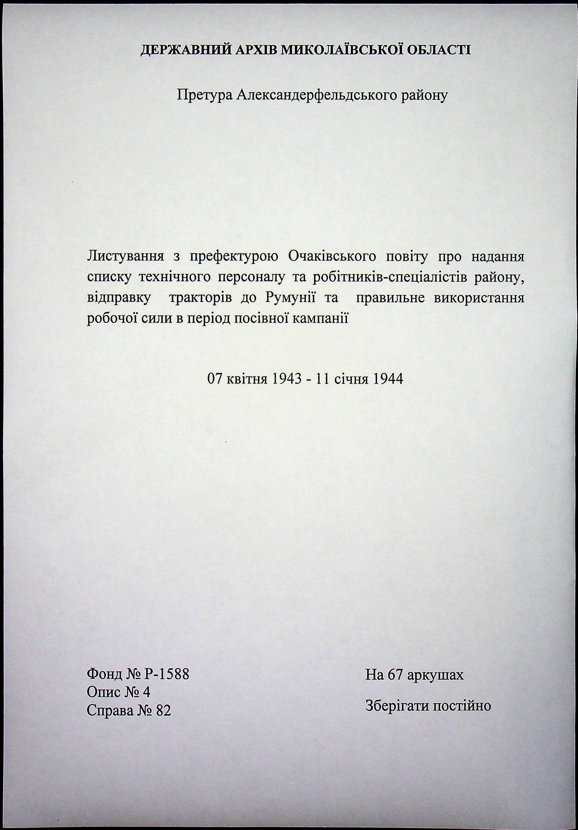 • • • • Справа № 82 “Листування з префектурою Очаківського повіту про надання списку технічного персоналу та робітників-спеціалістів району, відправку тракторів до Румунії та правильне використання робочої сили в період посівної кампанії”