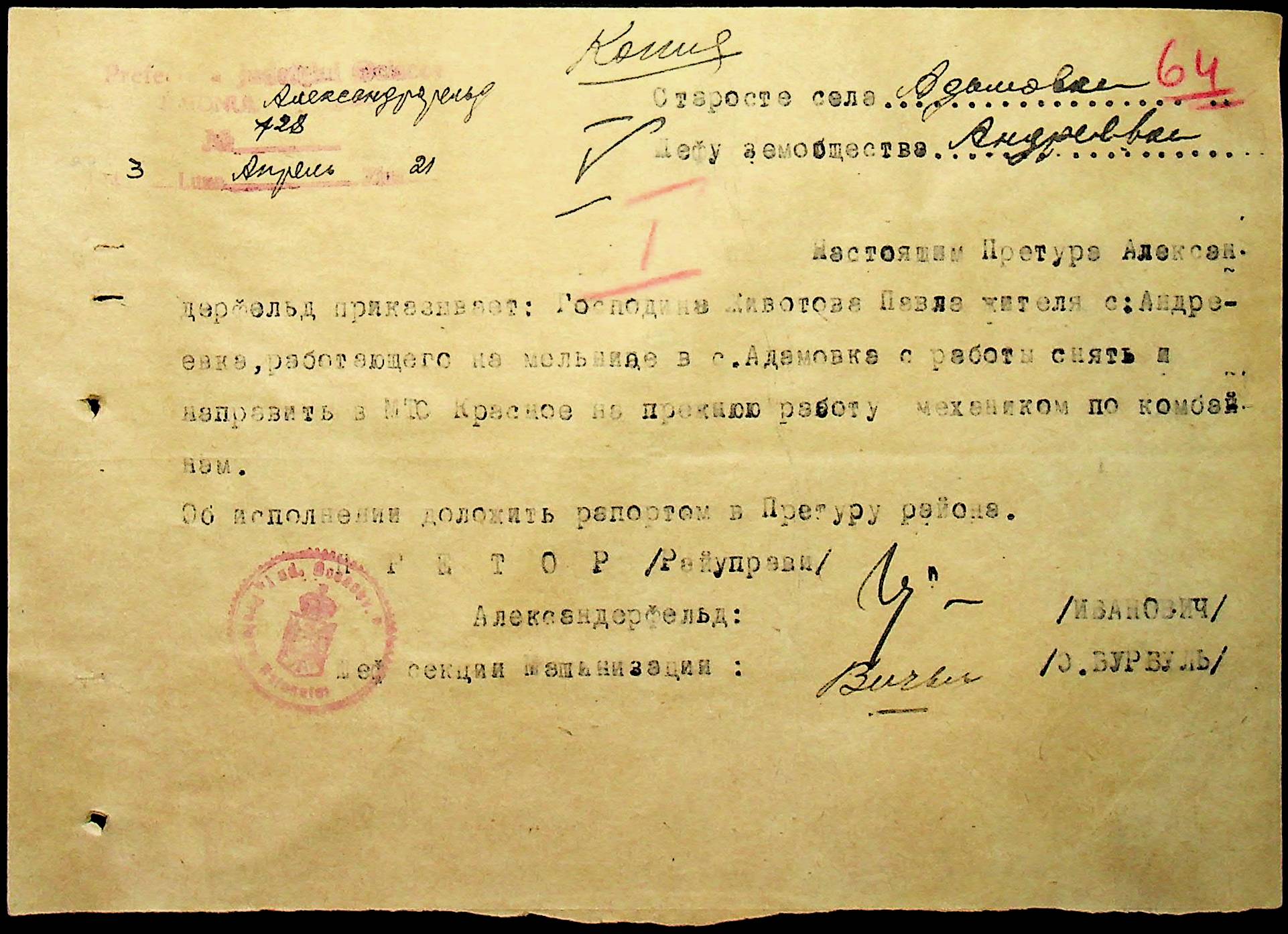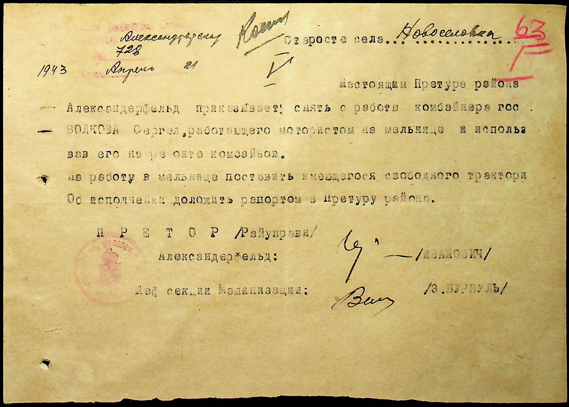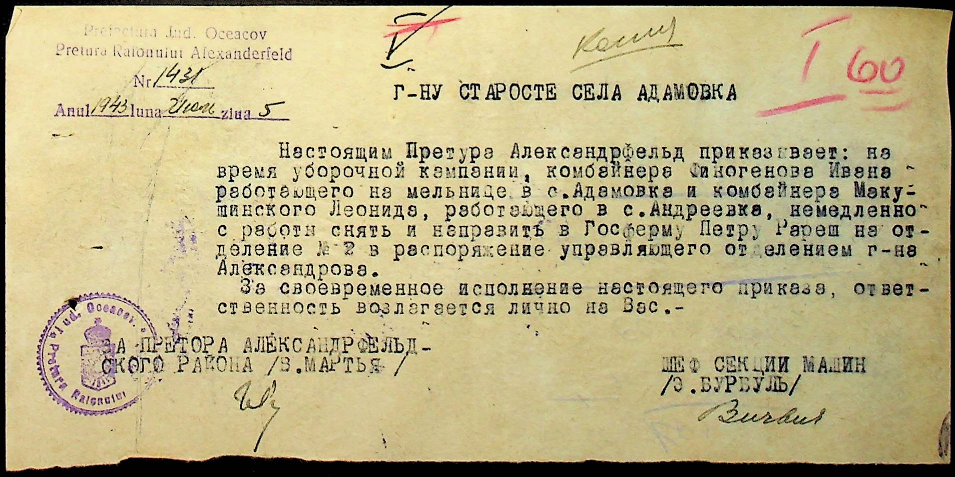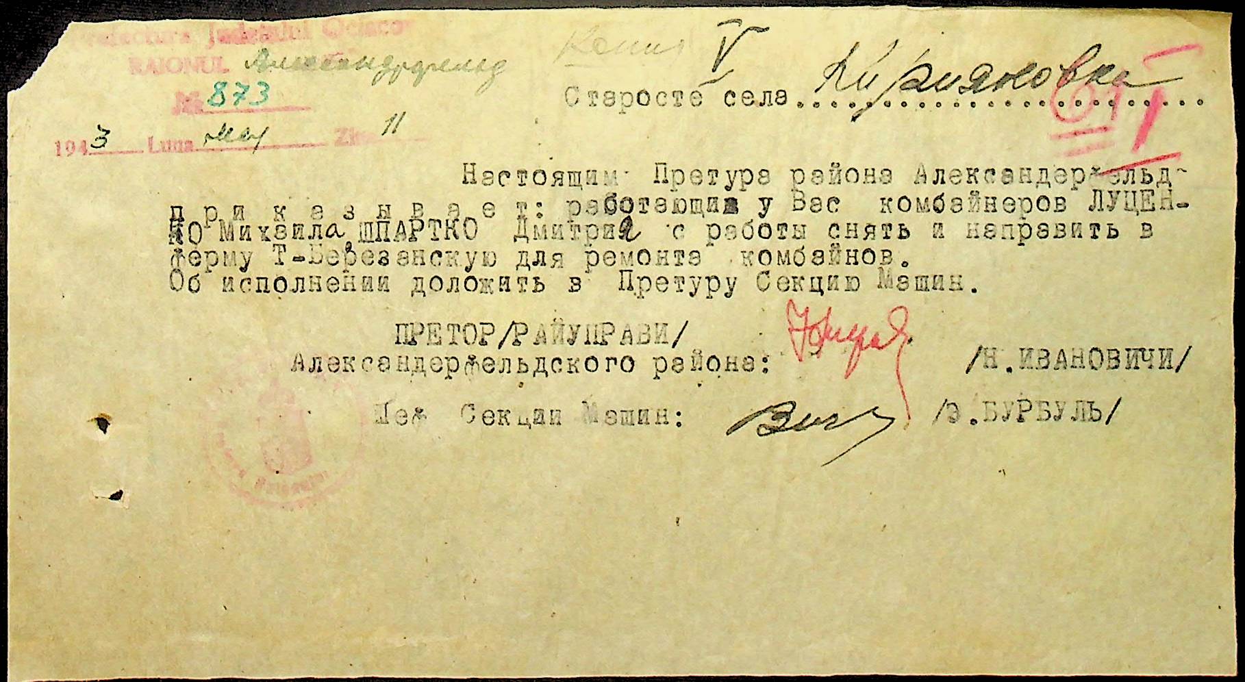 • • • • Справа № 82 “Листування з префектурою Очаківського повіту про надання списку технічного персоналу та робітників-спеціалістів району, відправку тракторів до Румунії та правильне використання робочої сили в період посівної кампанії”