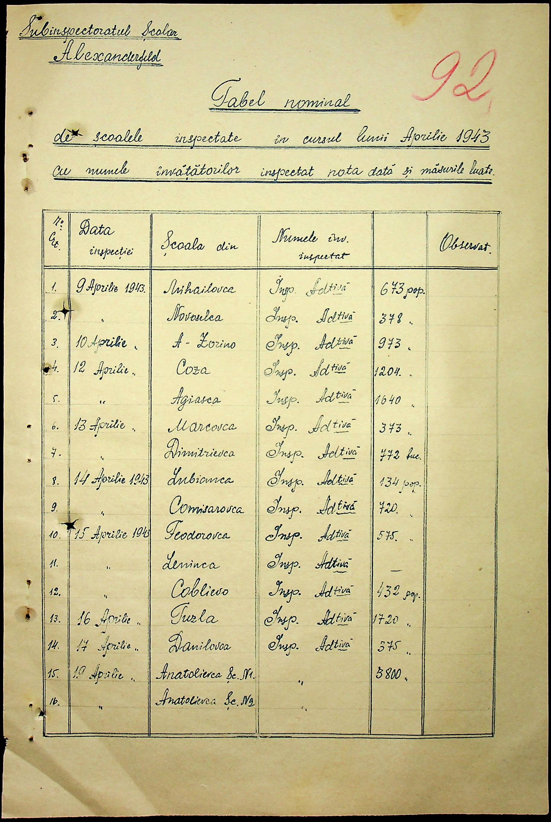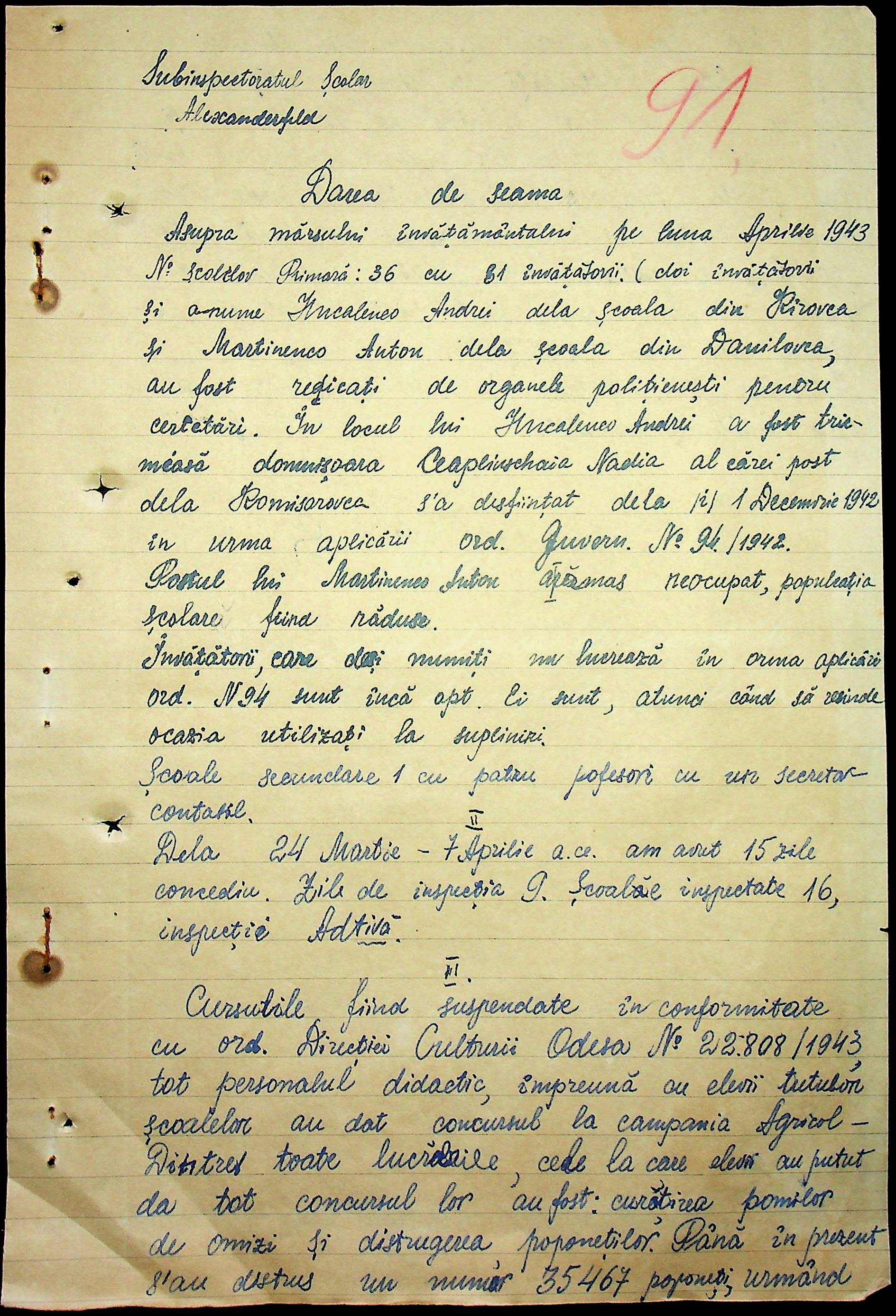 • • • • Справа № 90 “Протоколи помічника шкільного інспектора про обстеження шкіл Александерфельдського району. Список вчителів цих шкіл. Том 2”