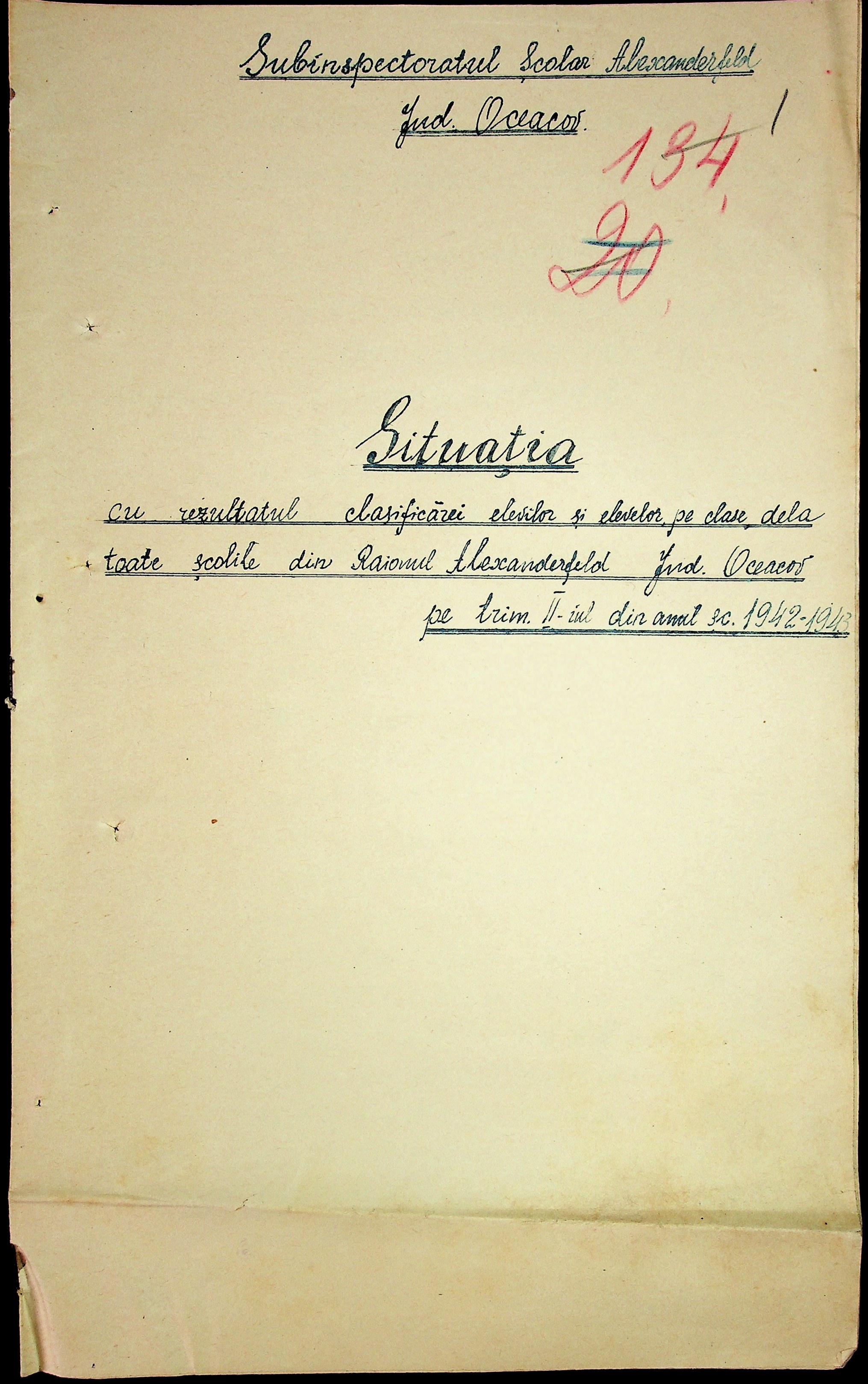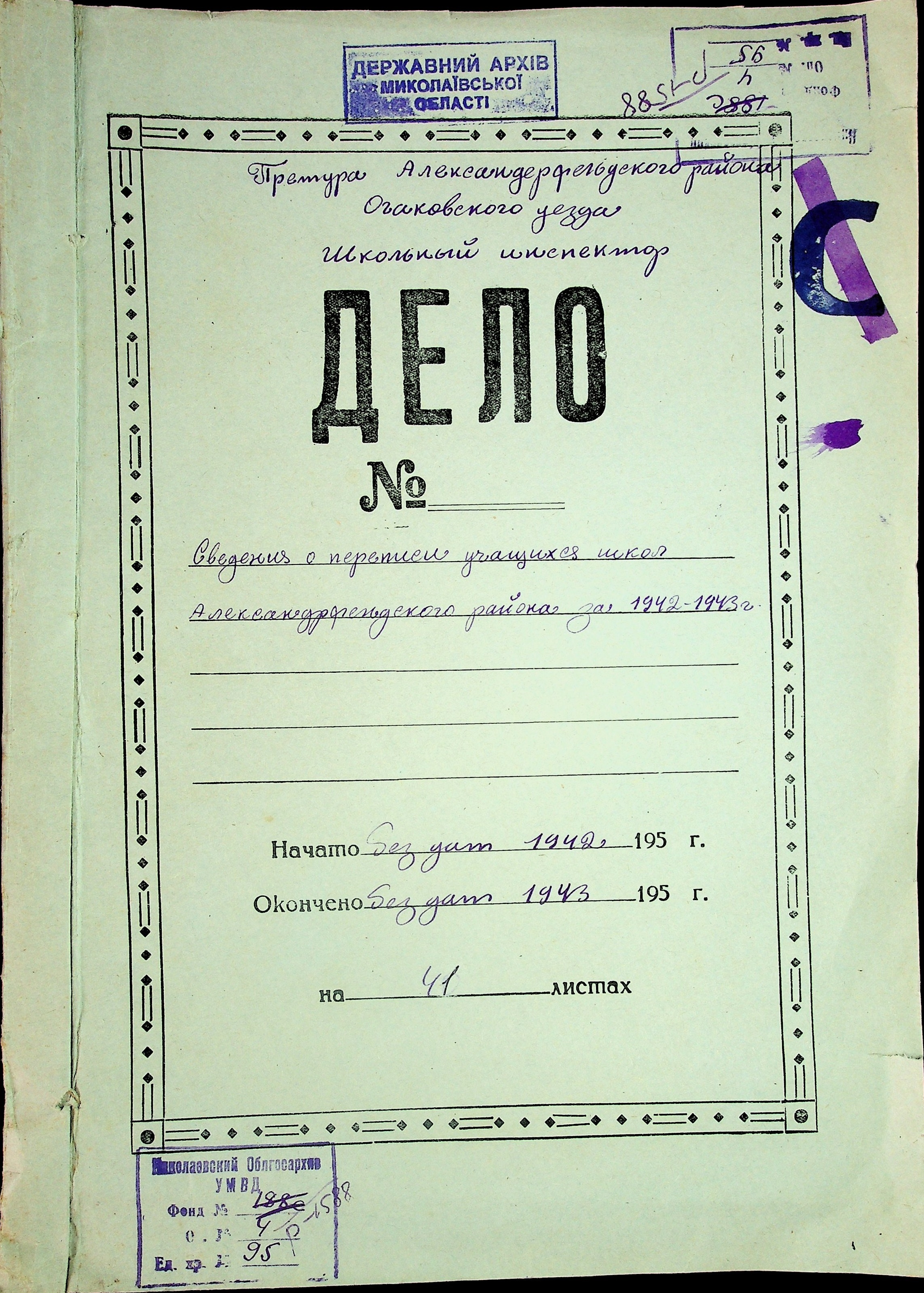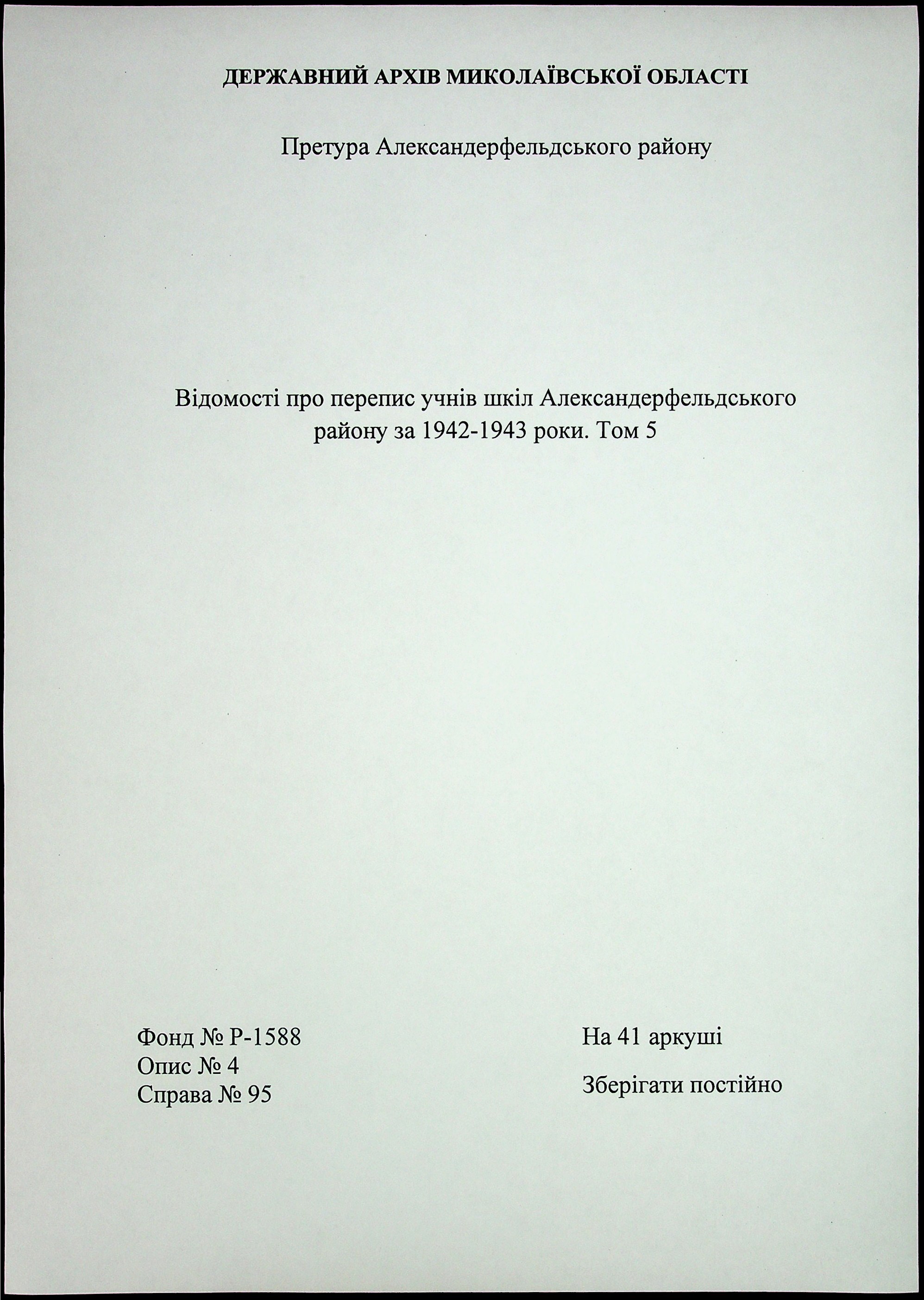 • • • • Справа № 95 “Відомості про перепис учнів шкіл Александерфельдського району за 1942-1943 роки. Том 5”