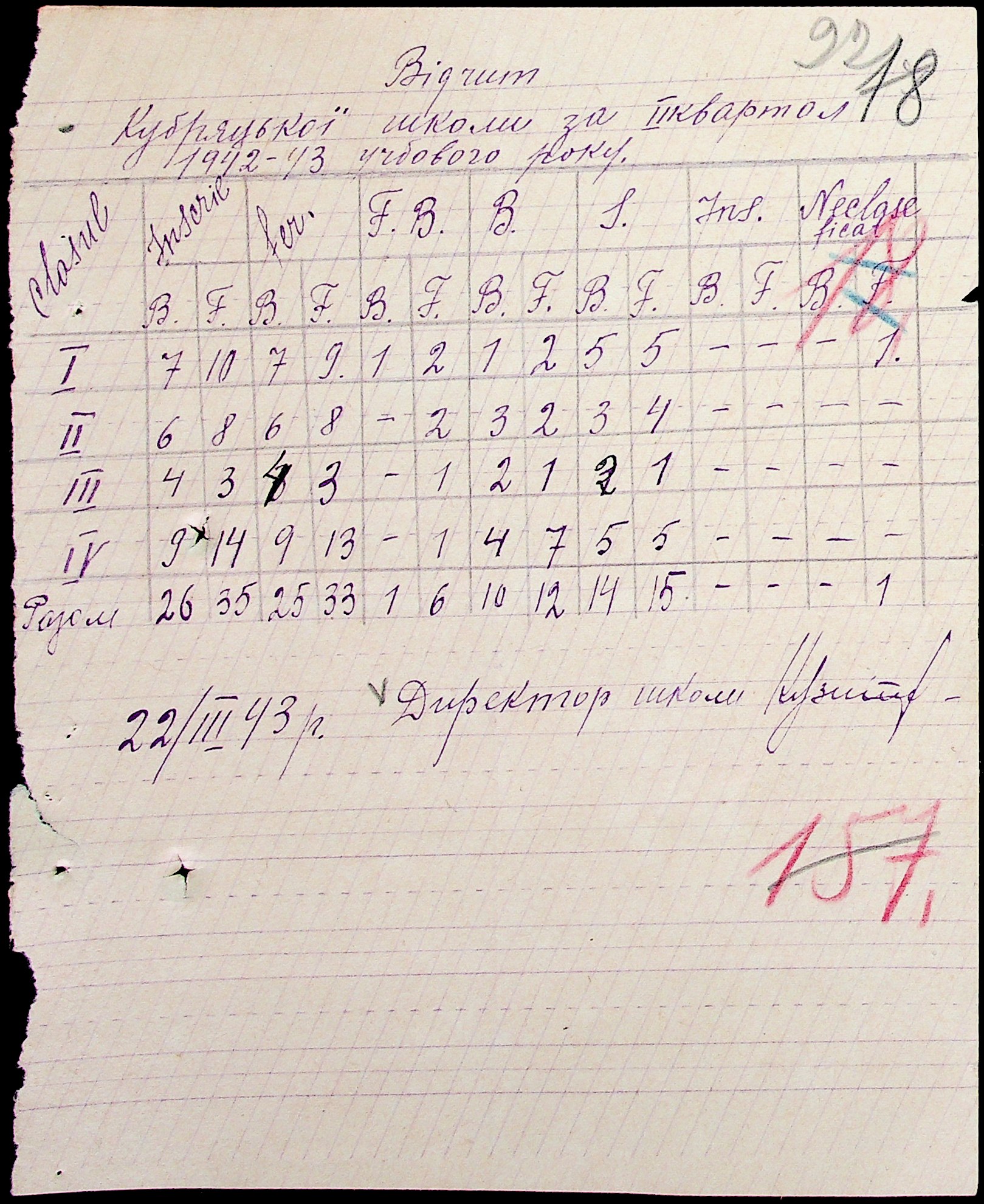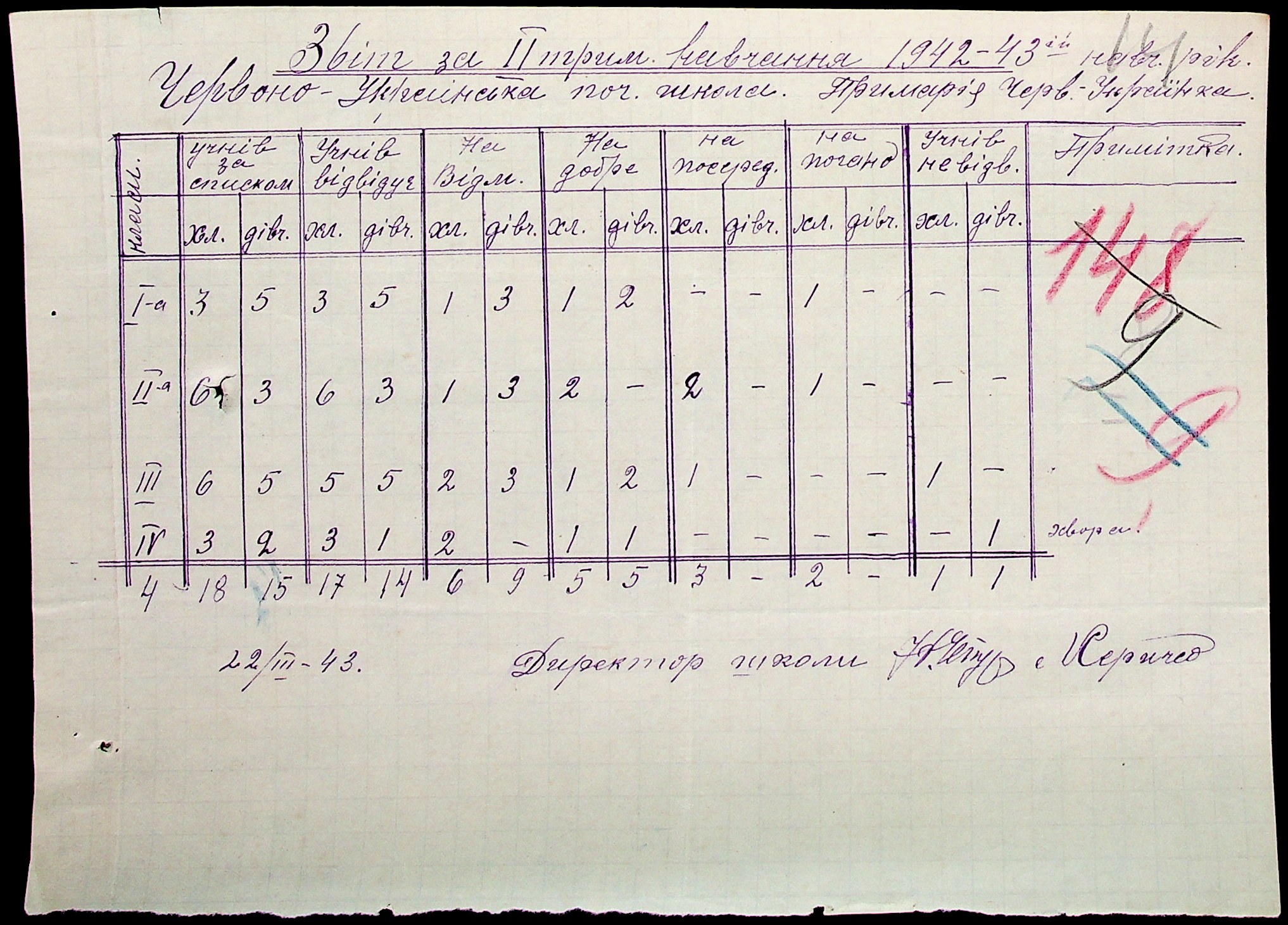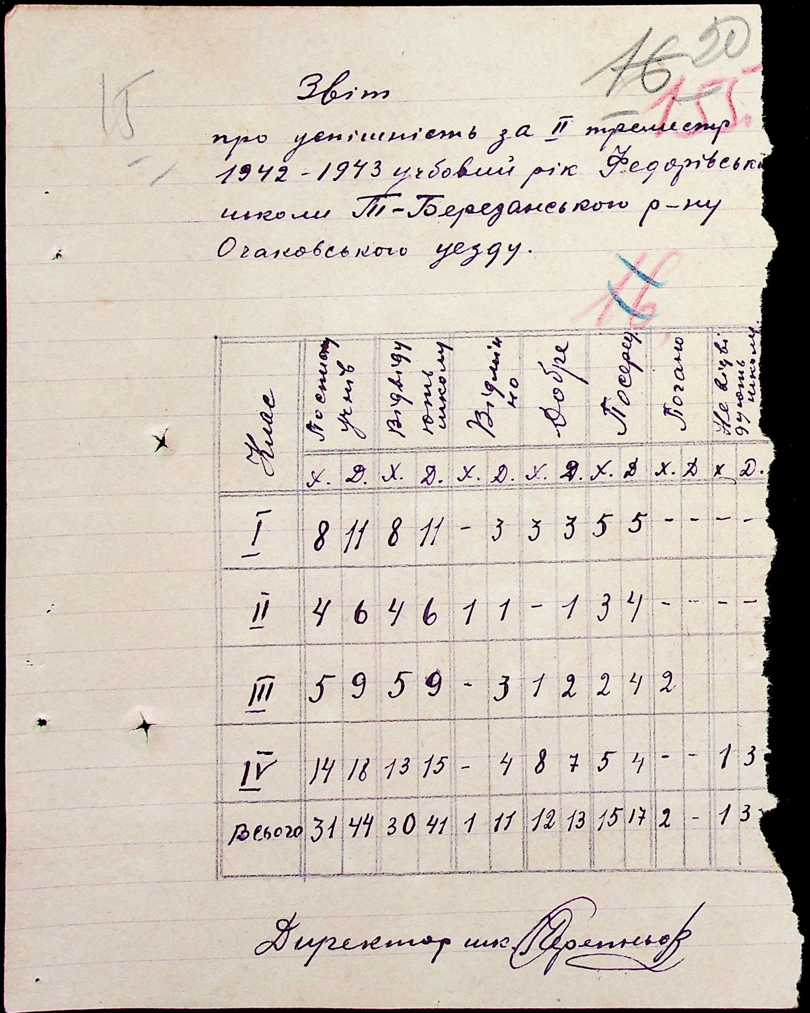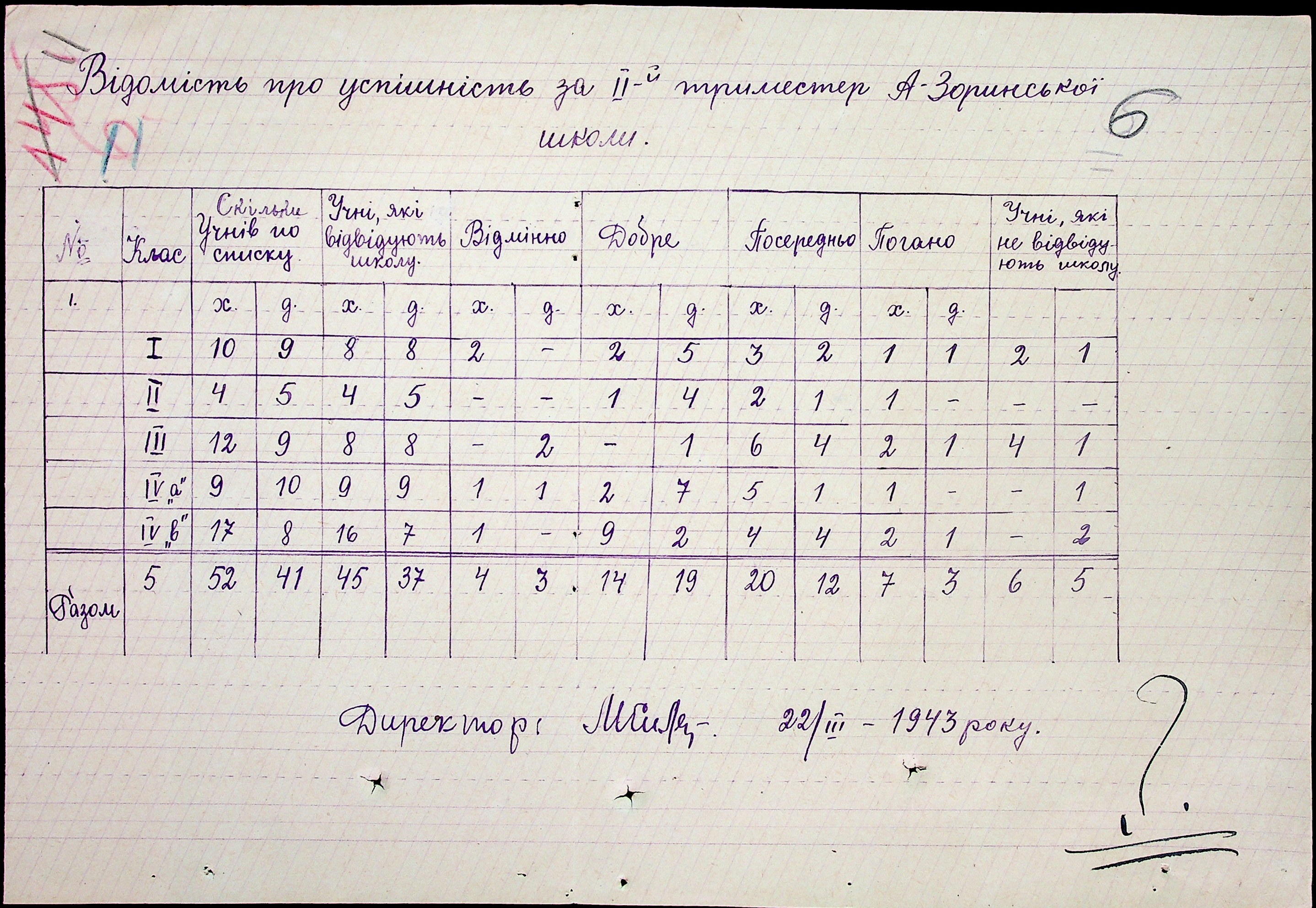 • • • • Справа № 95 “Відомості про перепис учнів шкіл Александерфельдського району за 1942-1943 роки. Том 5”