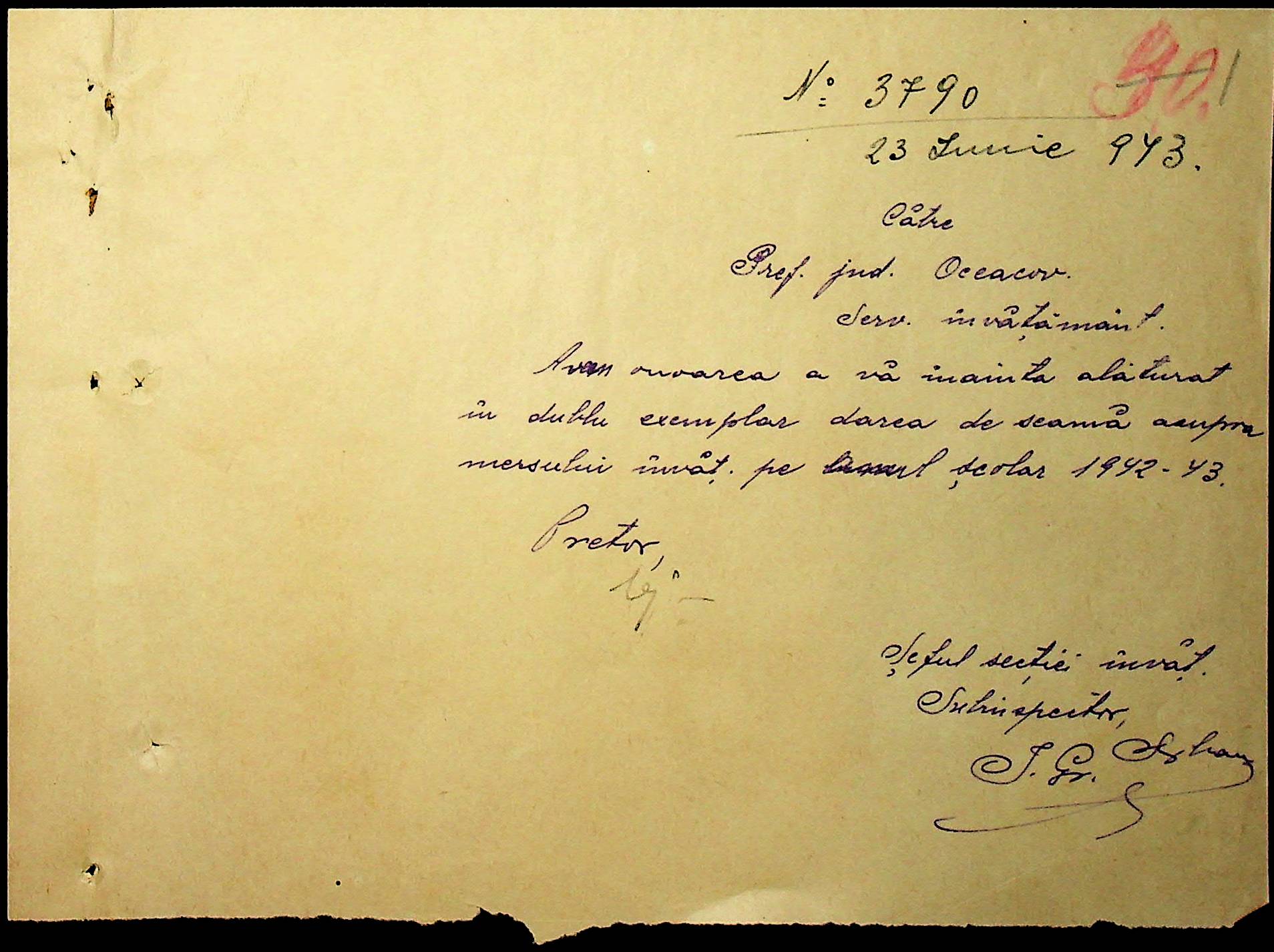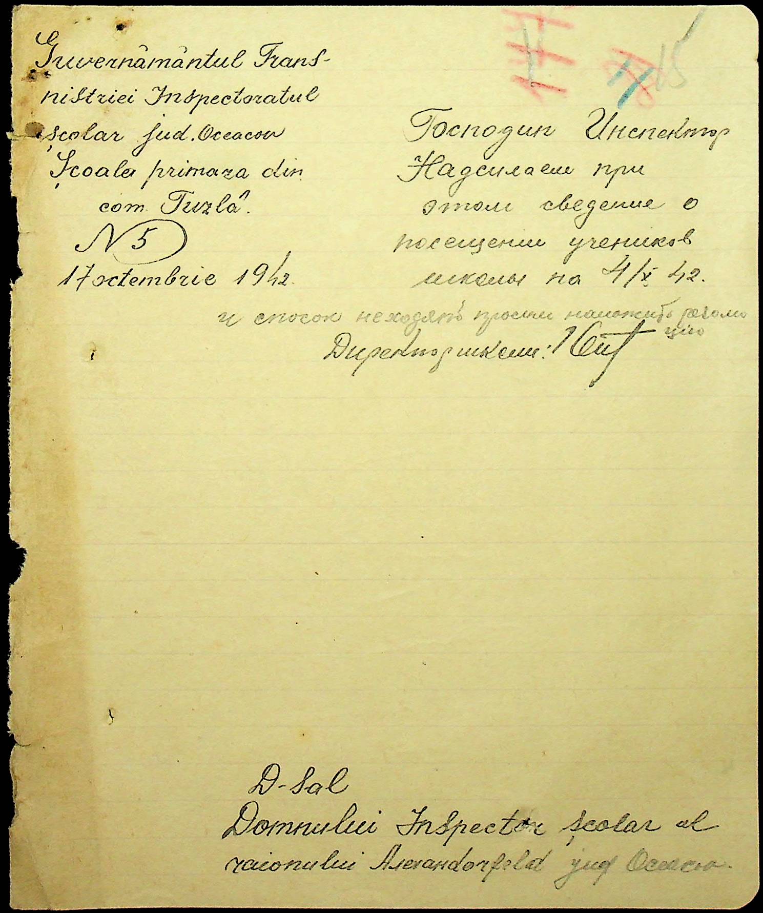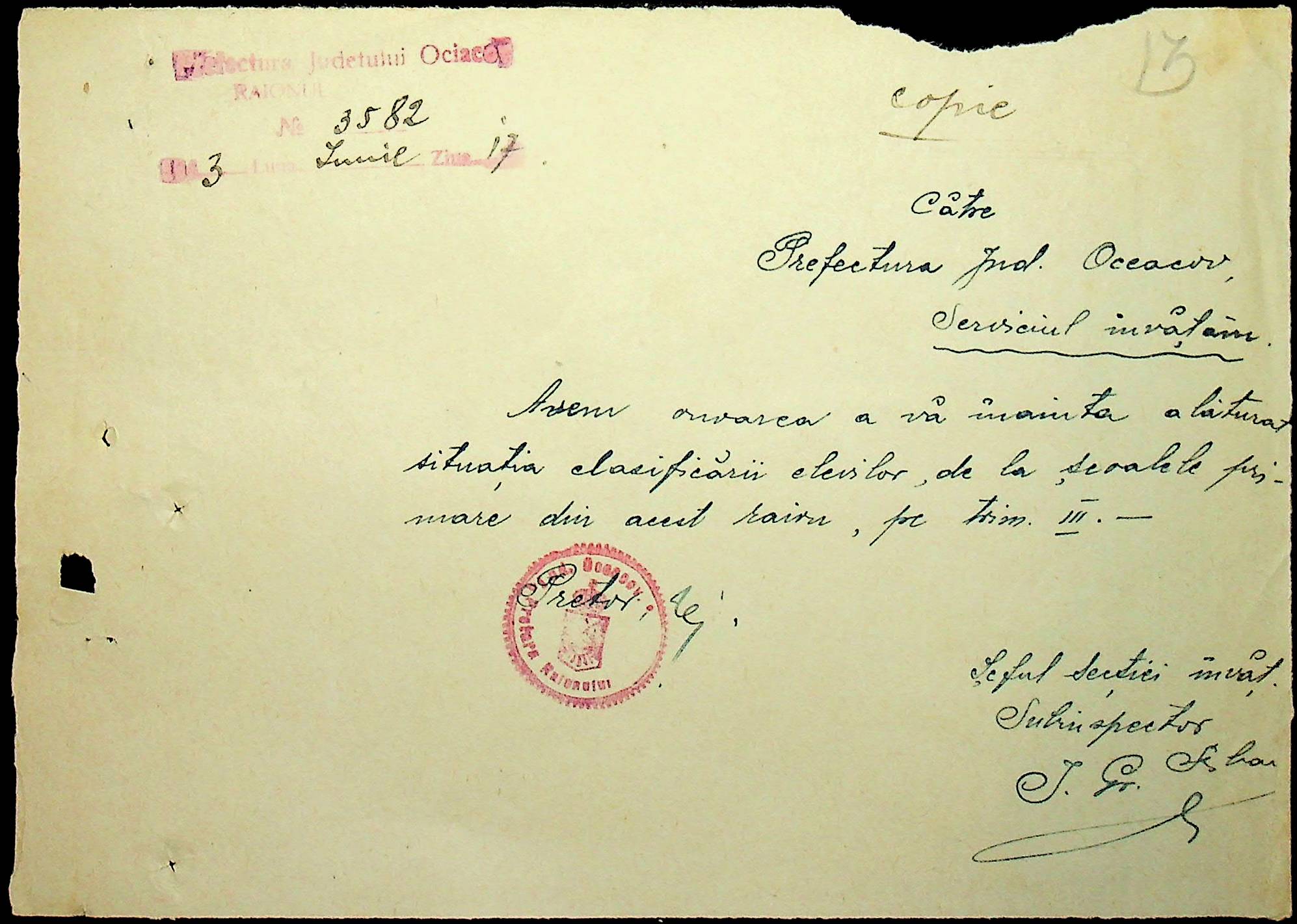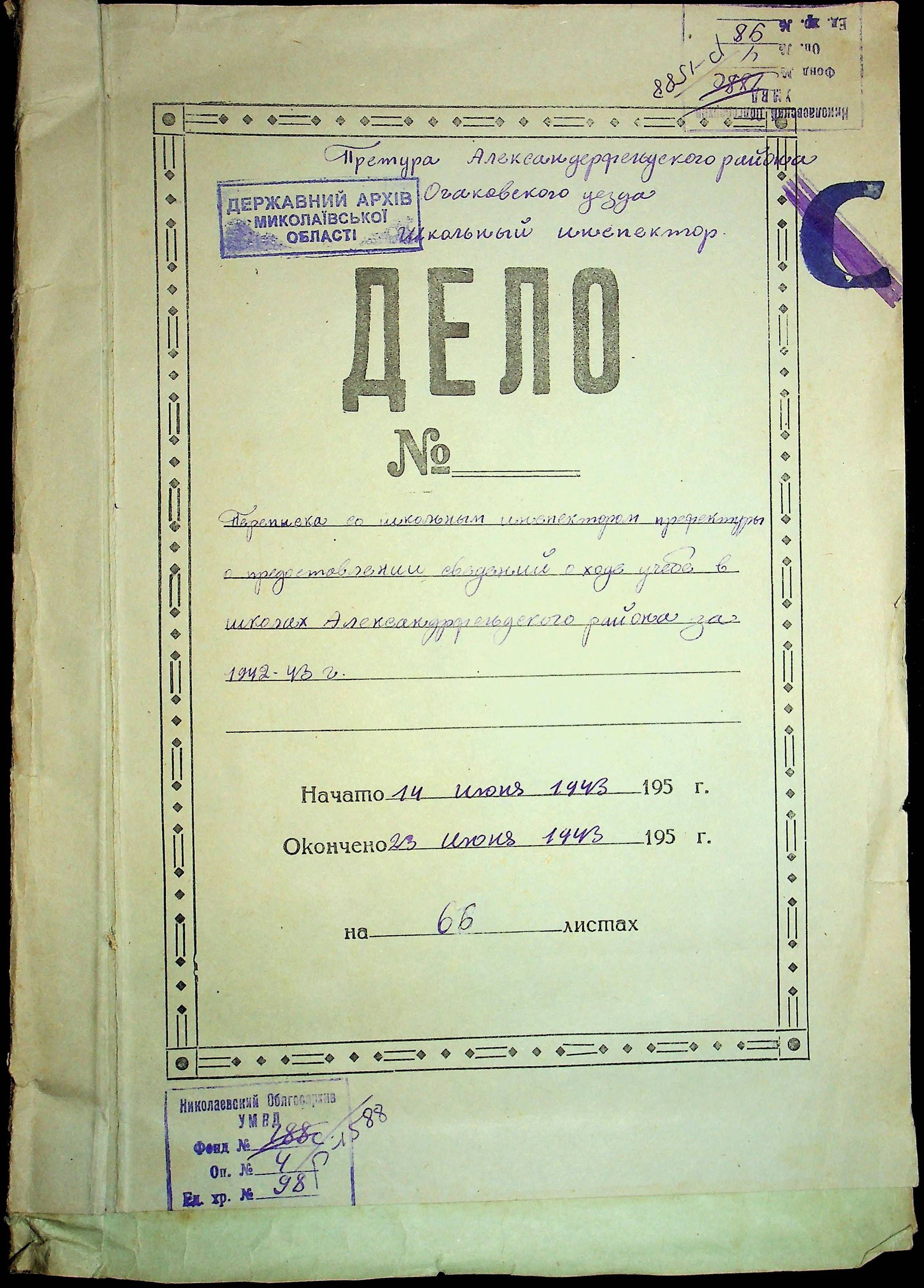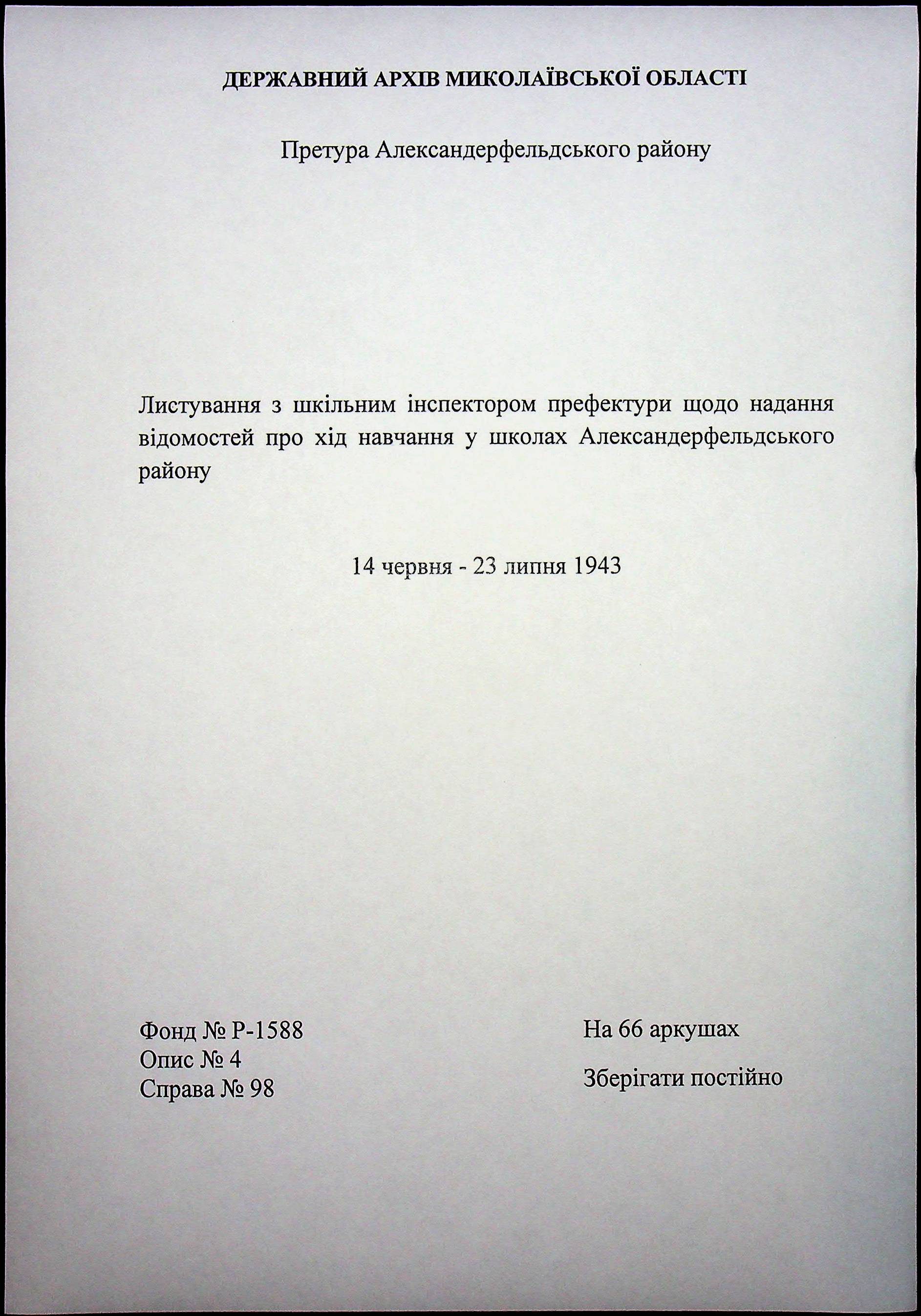 • • • • Справа № 98 “Листування з шкільним інспектором префектури щодо надання відомостей про хід навчання у школах Александерфельдського району”