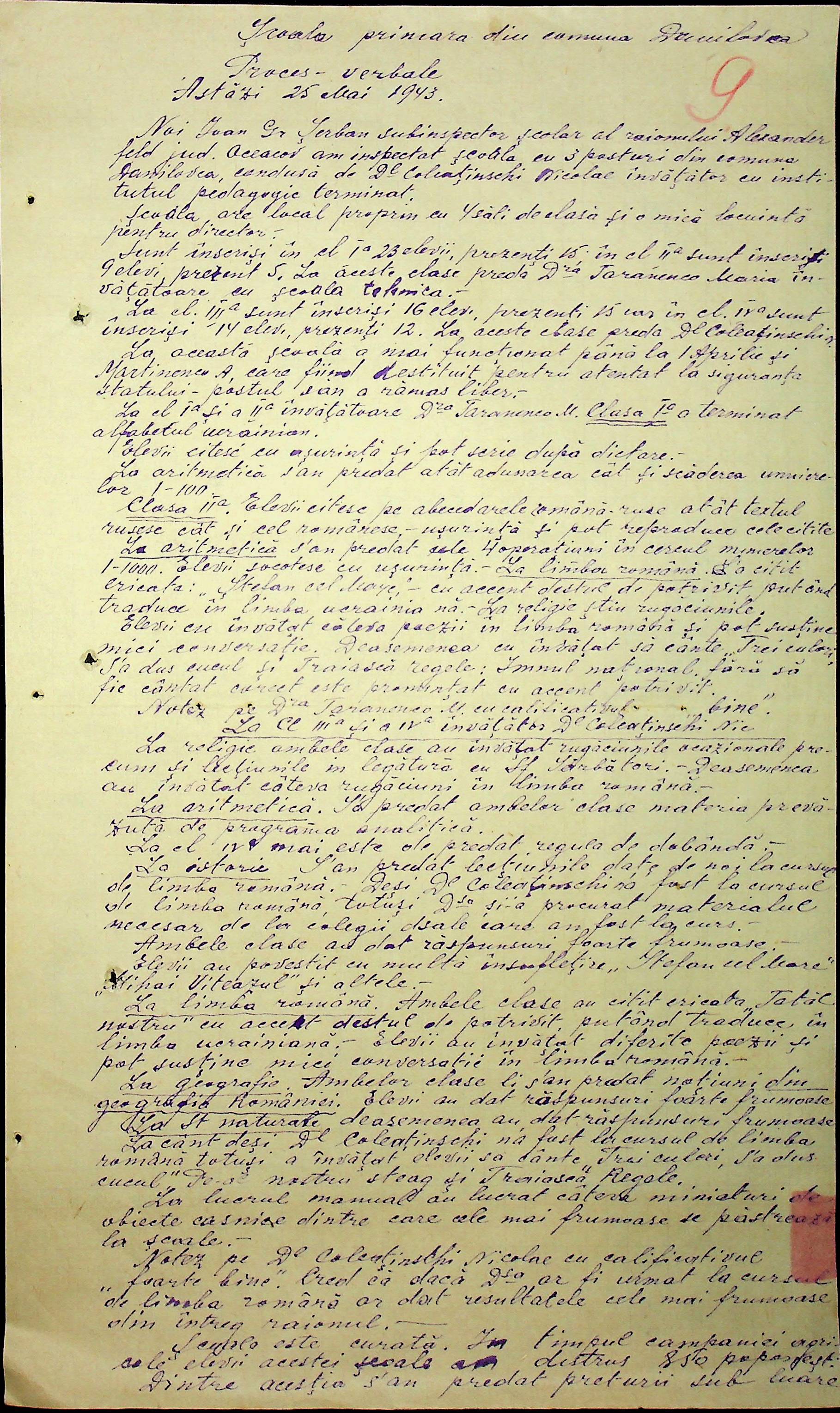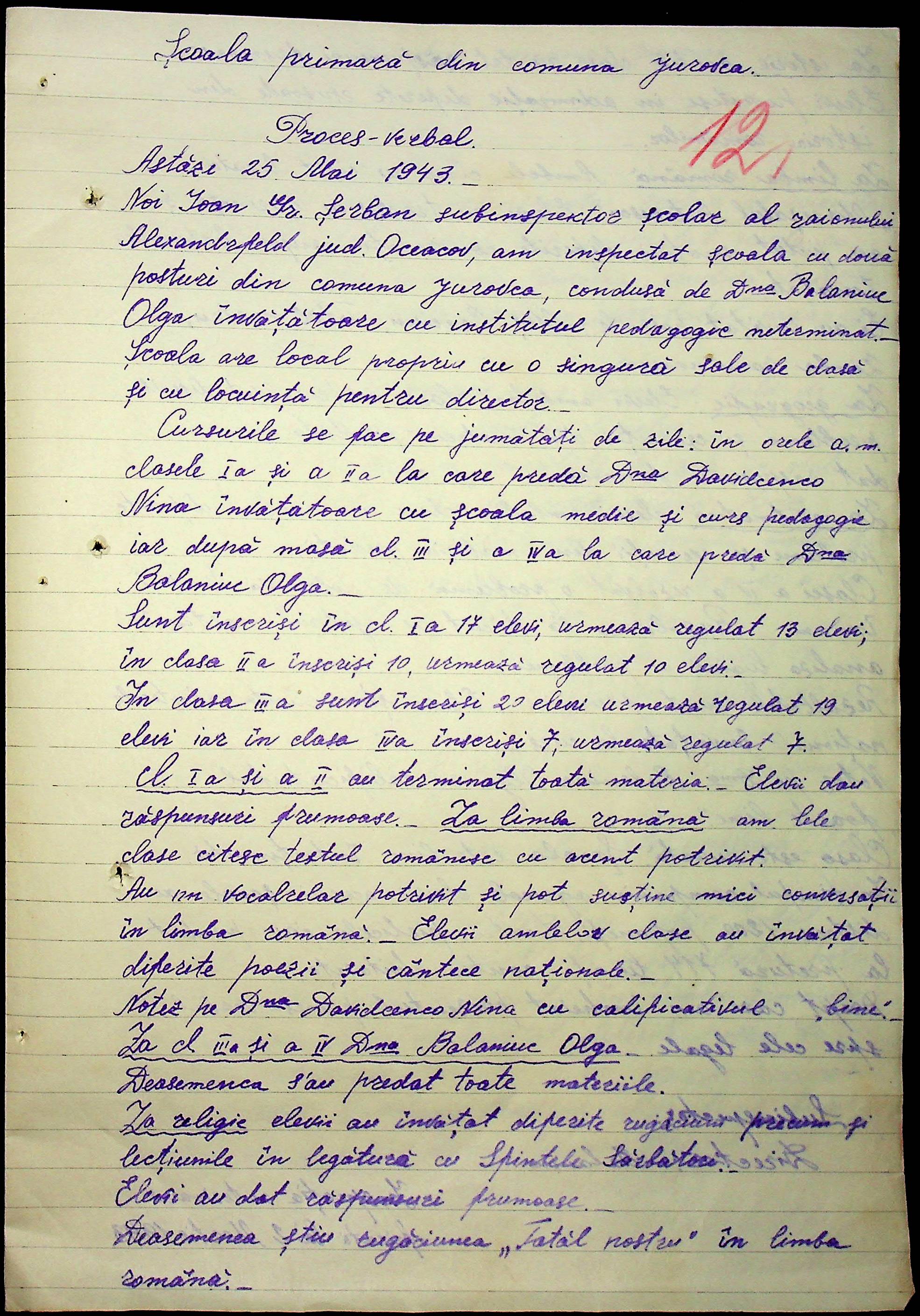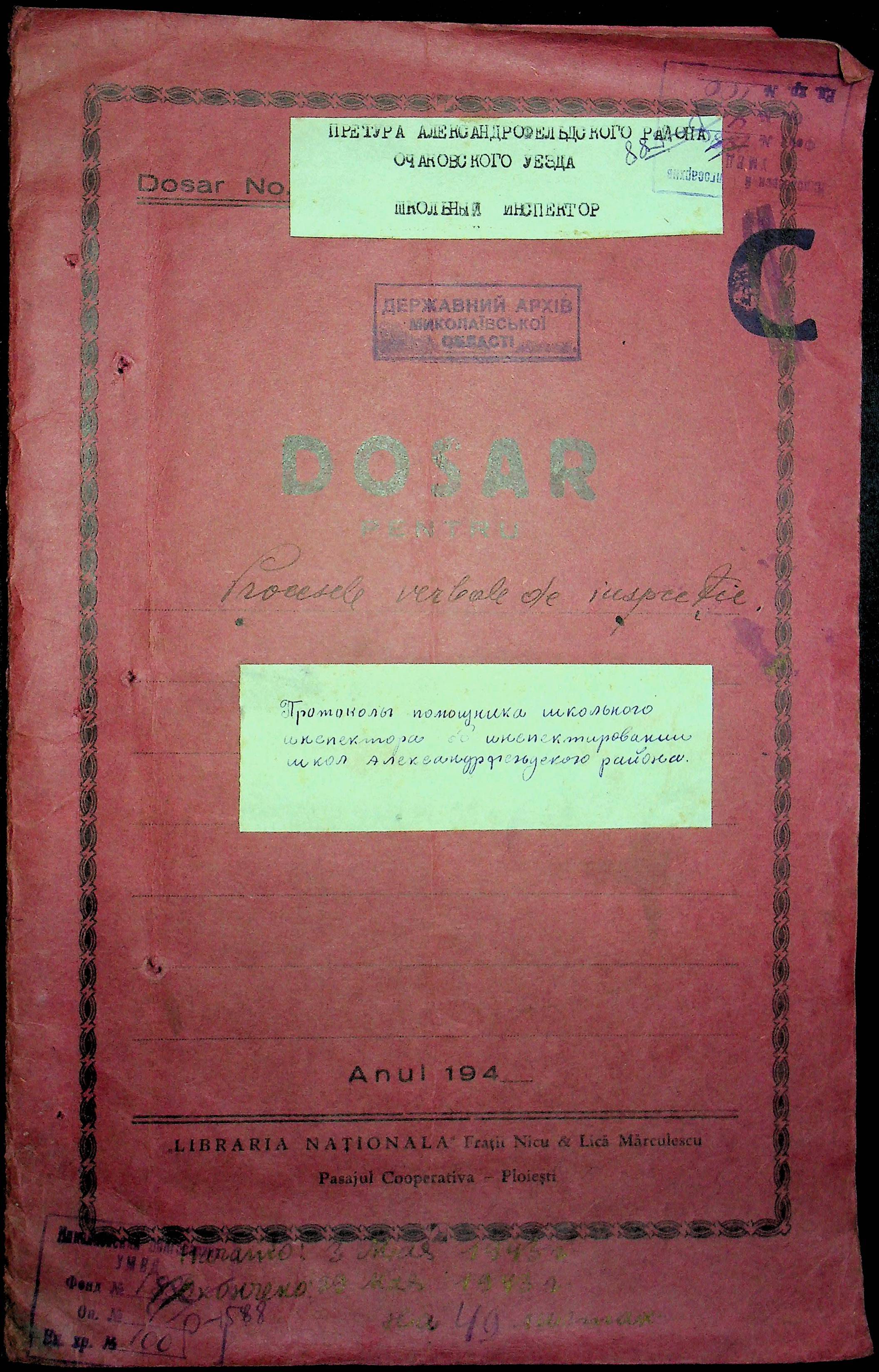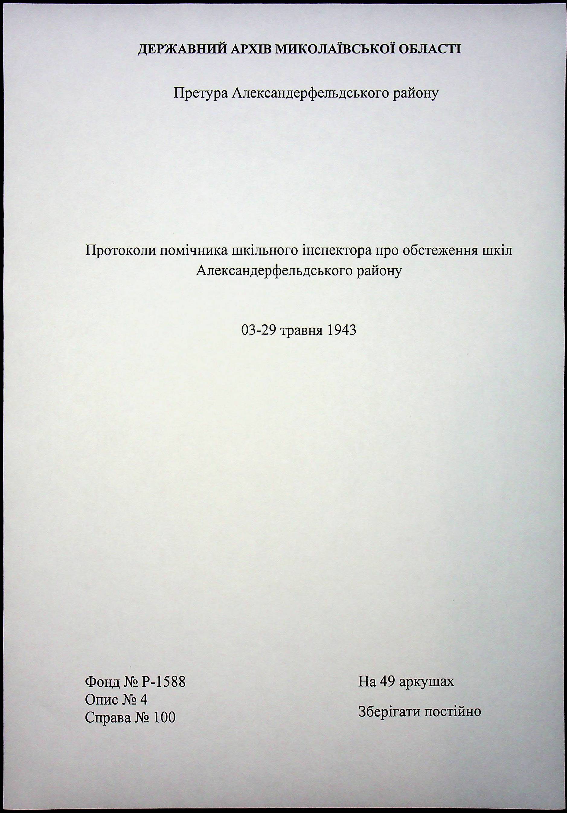 • • • • Справа № 100 “Протоколи помічника шкільного інспектора про обстеження шкіл Александерфельдського району”