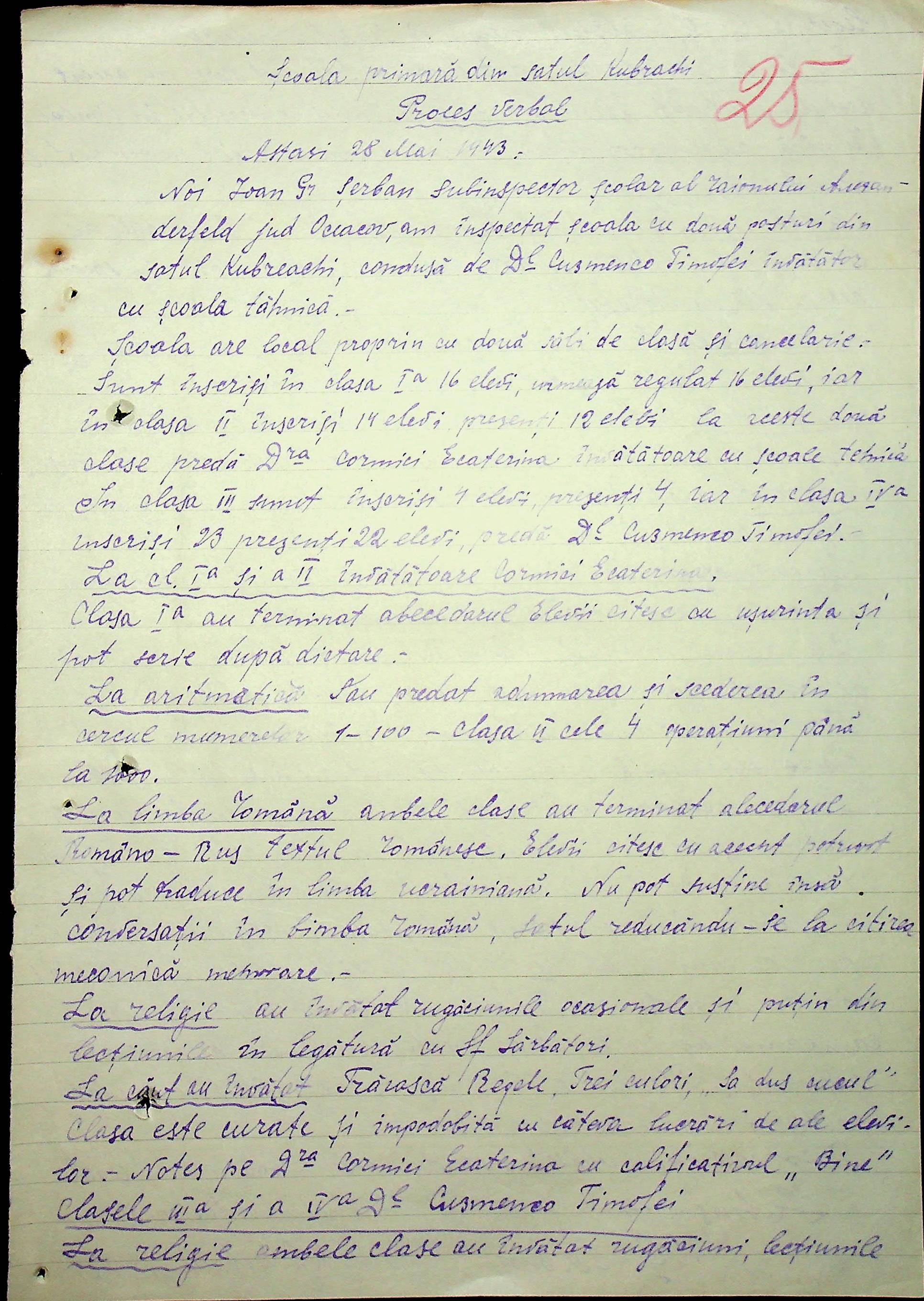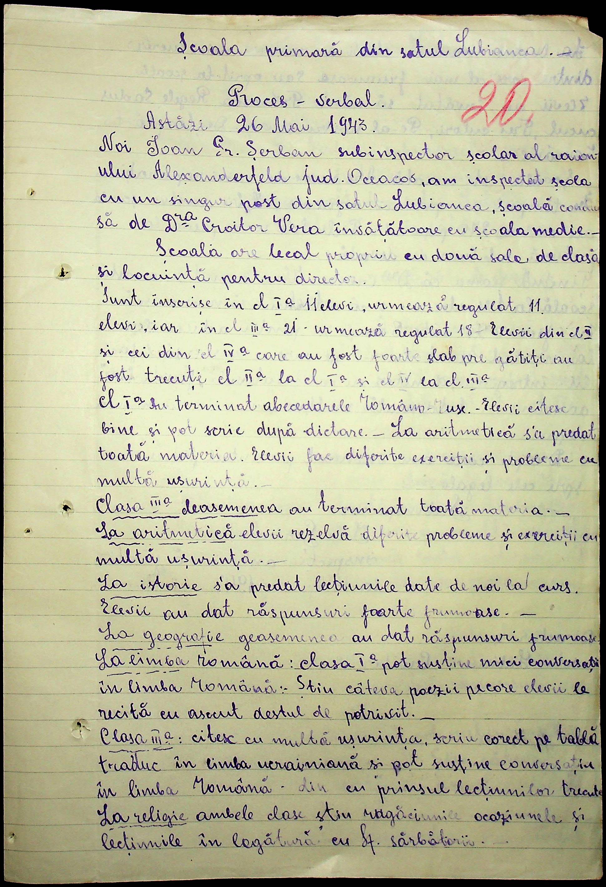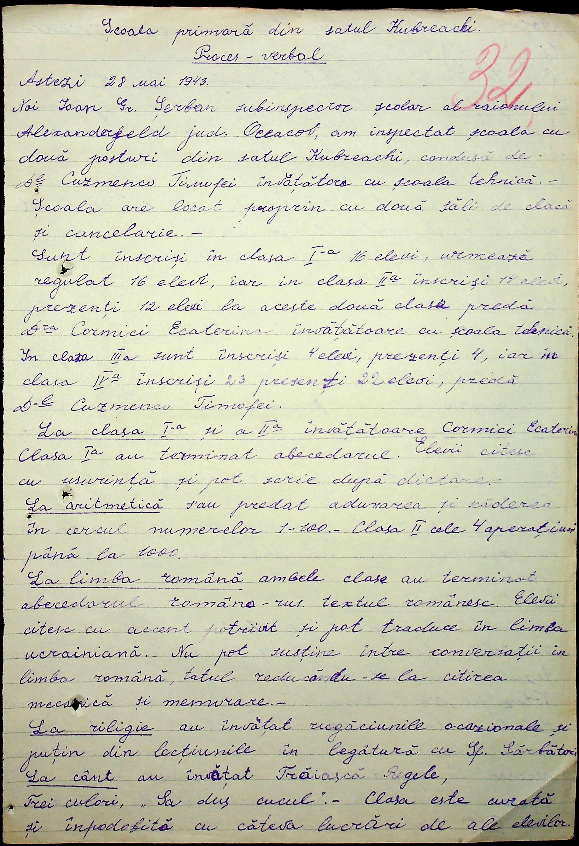 • • • • Справа № 100 “Протоколи помічника шкільного інспектора про обстеження шкіл Александерфельдського району”
