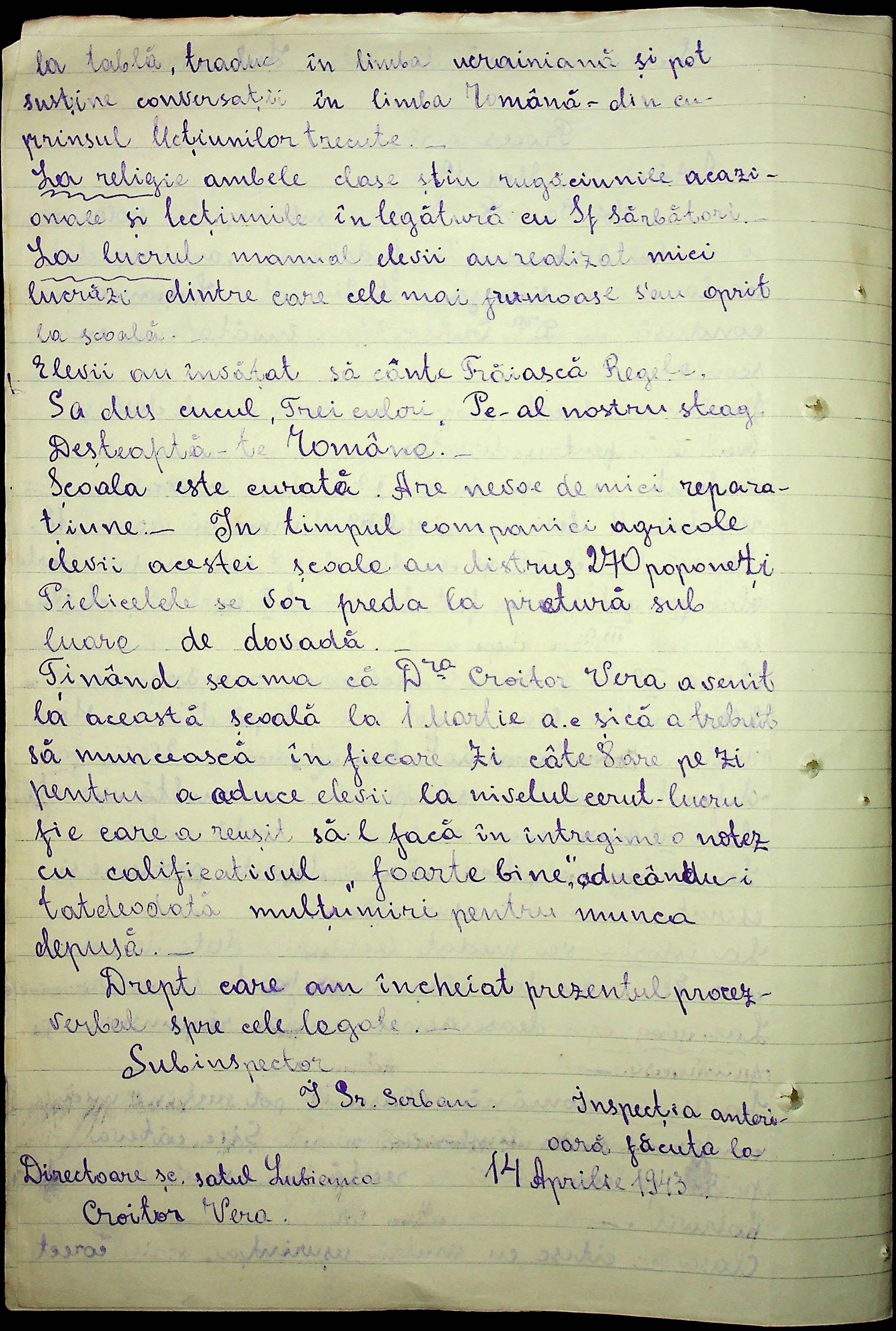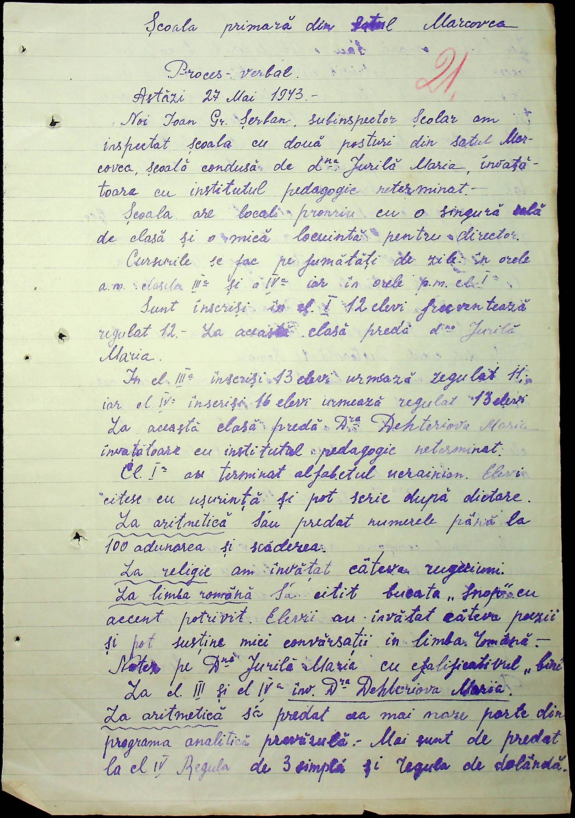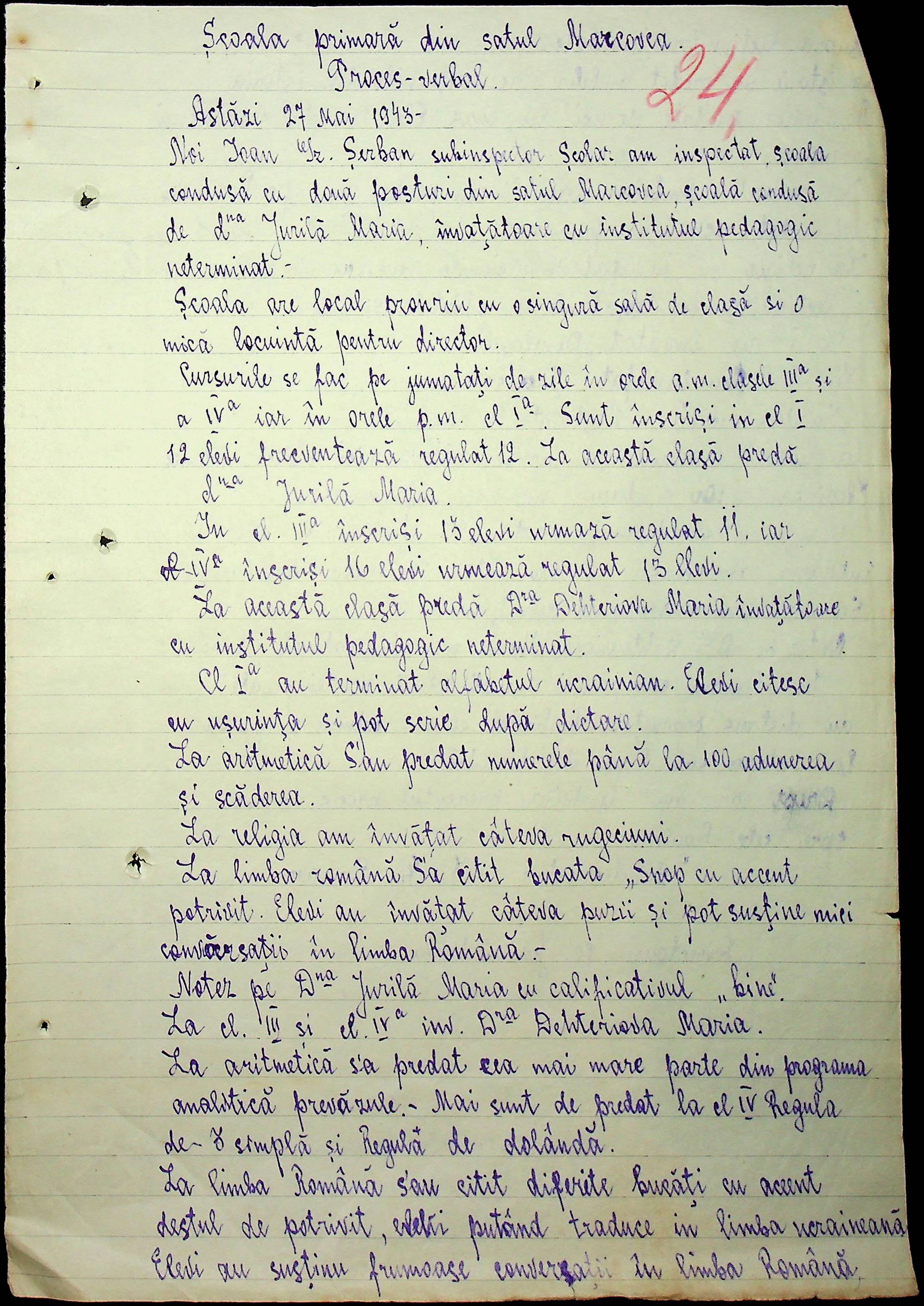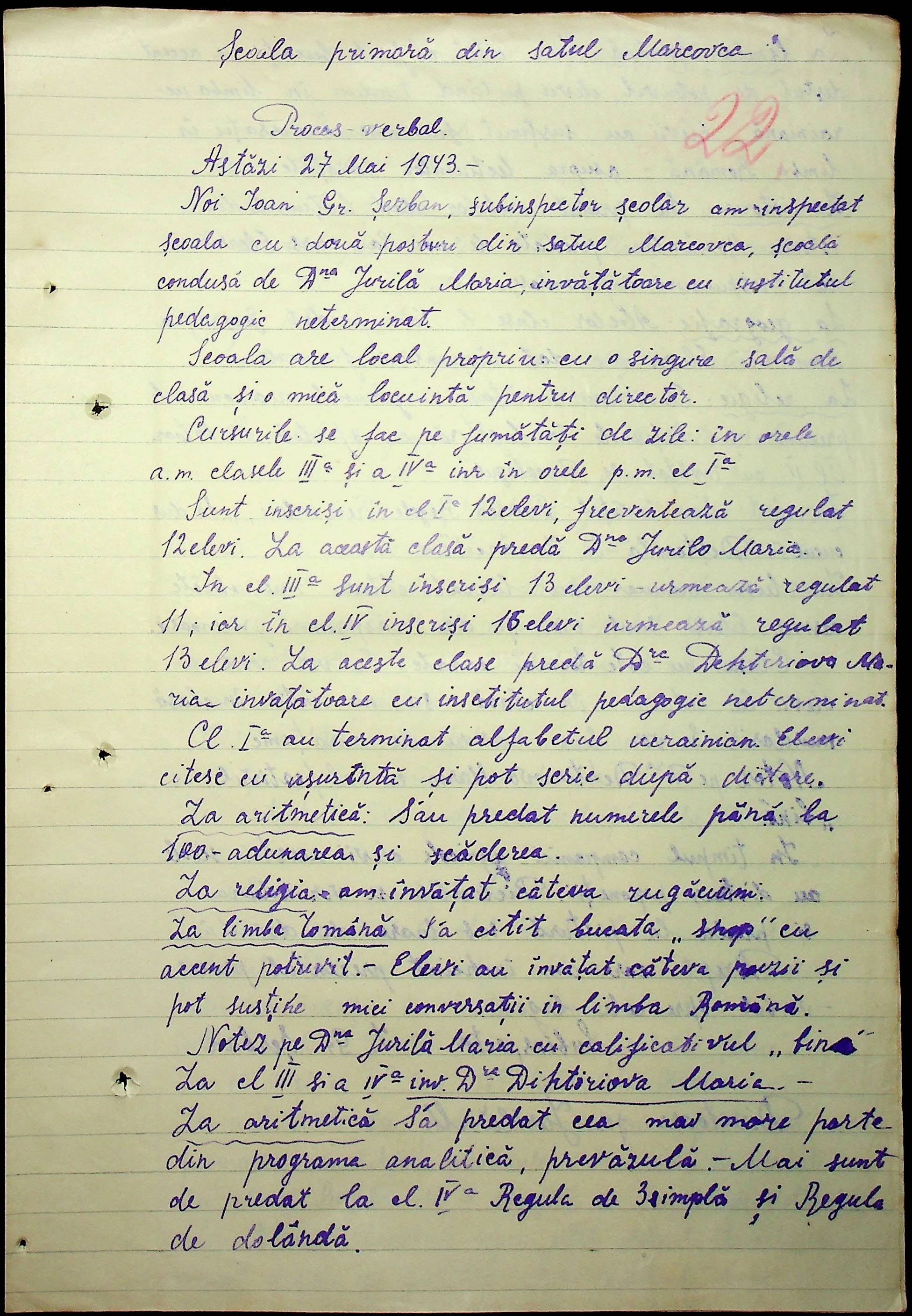 • • • • Справа № 100 “Протоколи помічника шкільного інспектора про обстеження шкіл Александерфельдського району”
