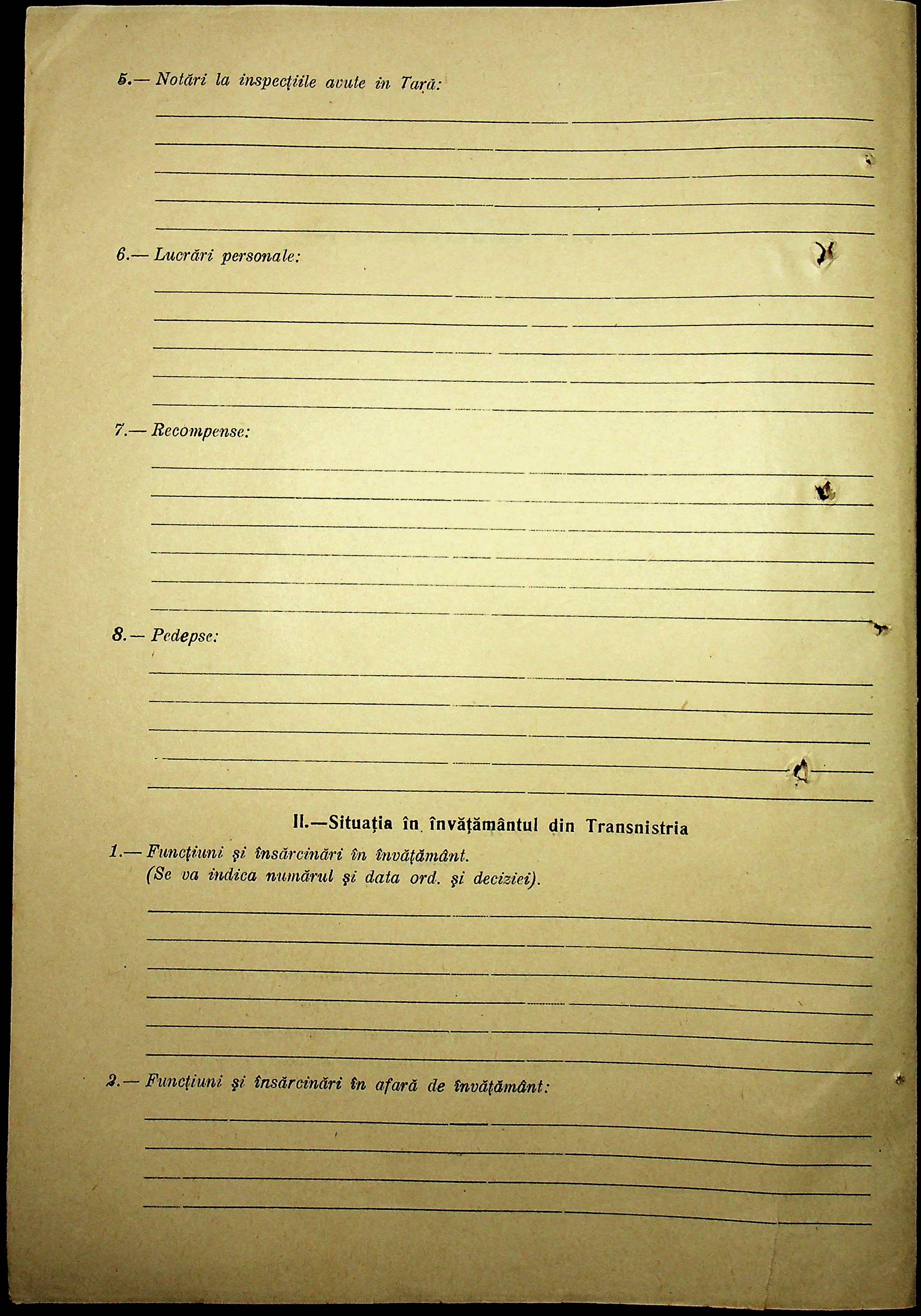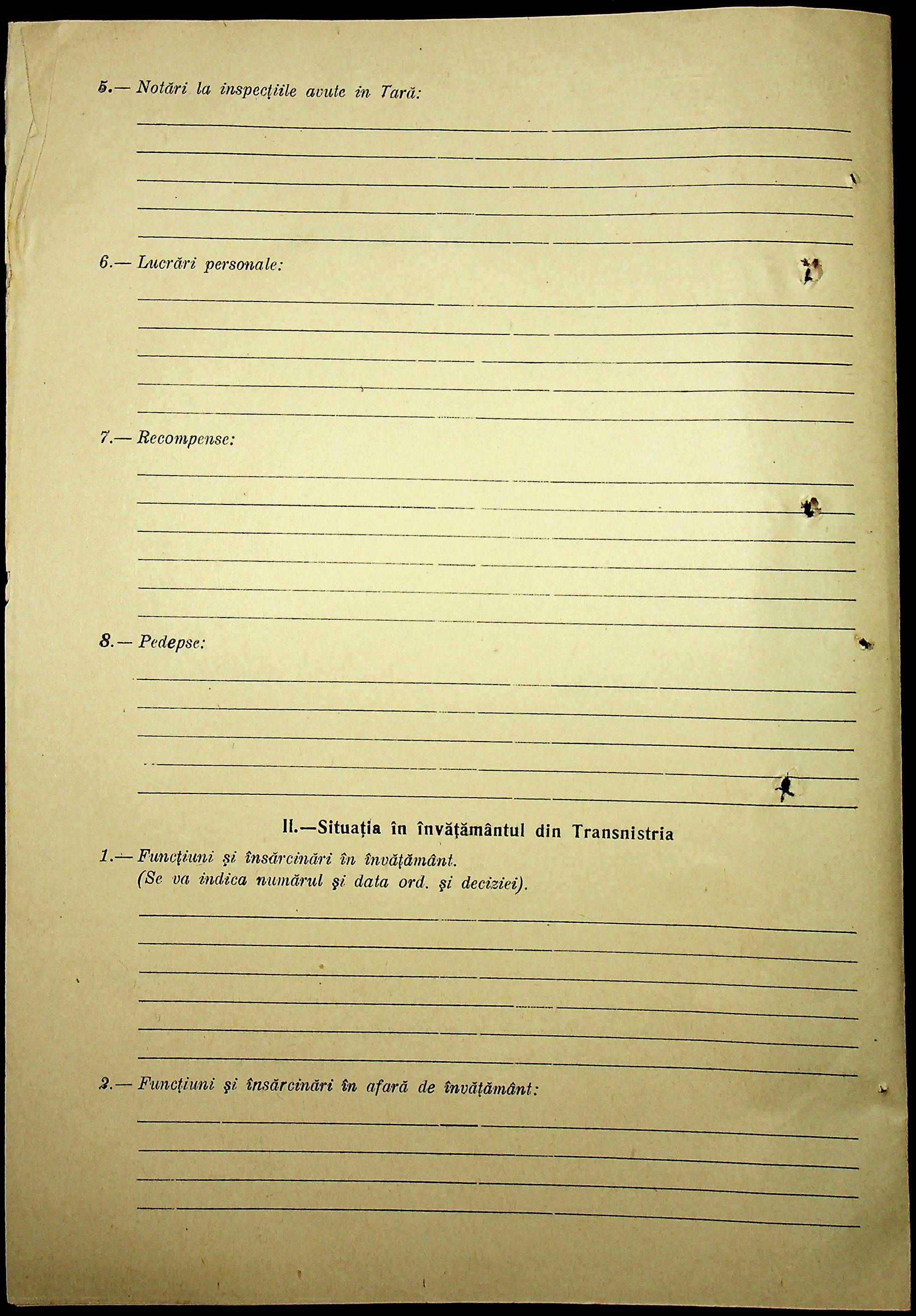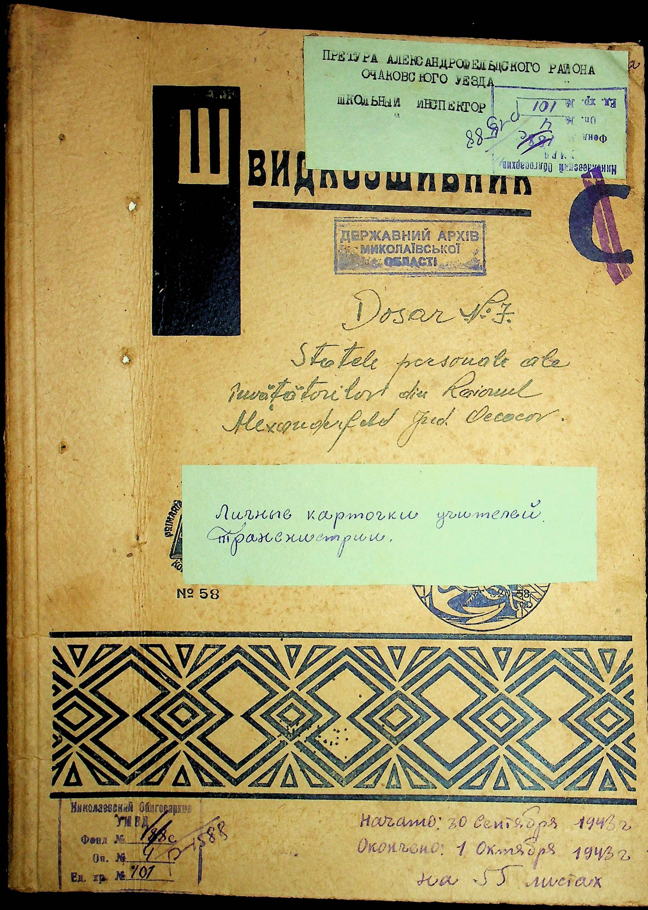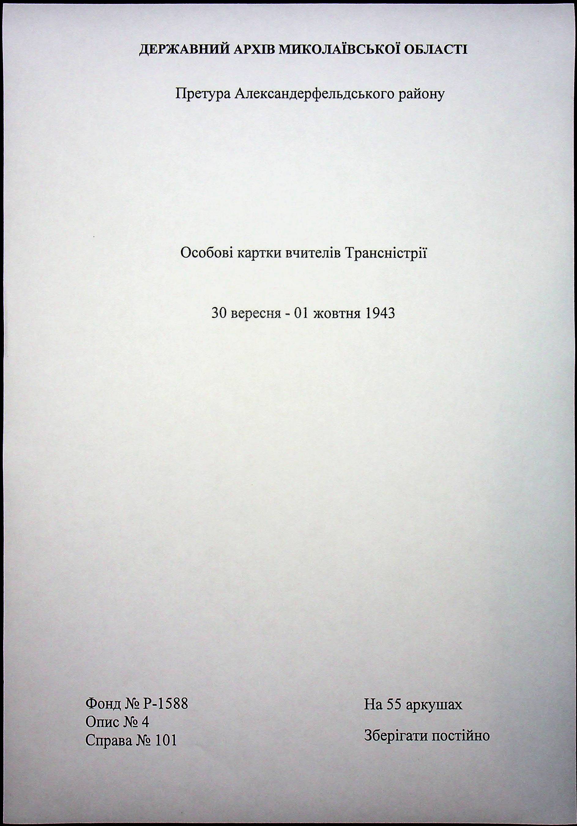 • • • • Справа № 101 “Особові картки вчителів Трансністрії”