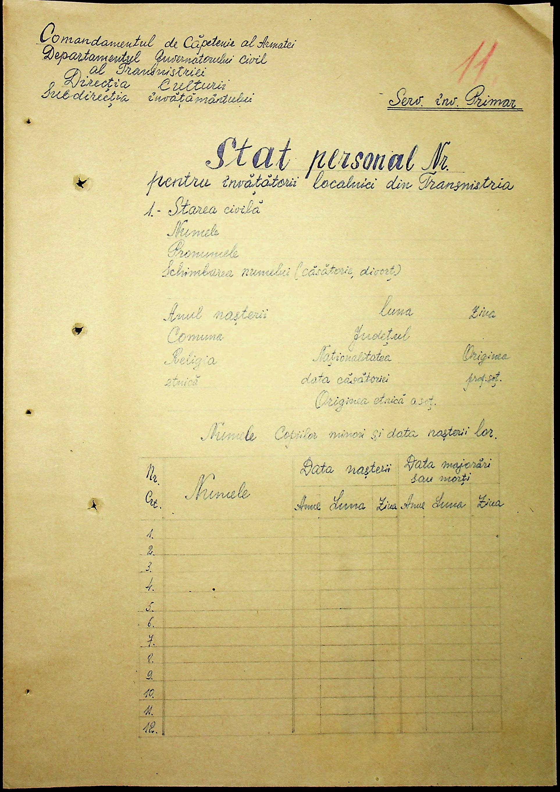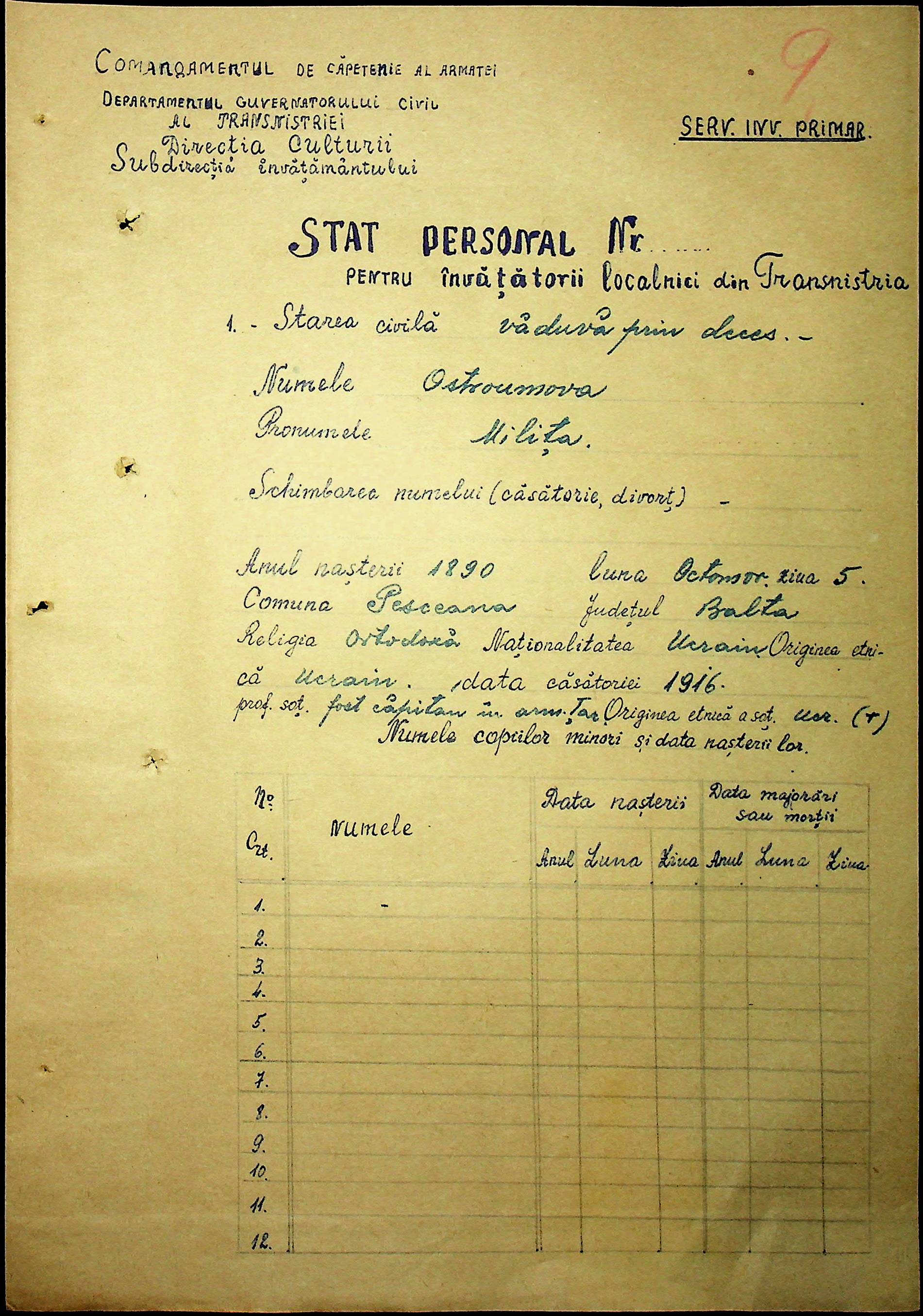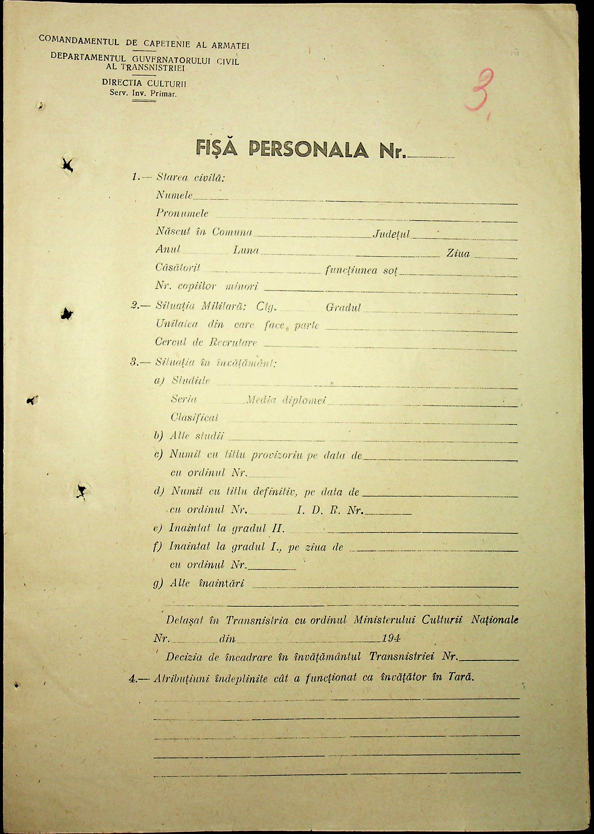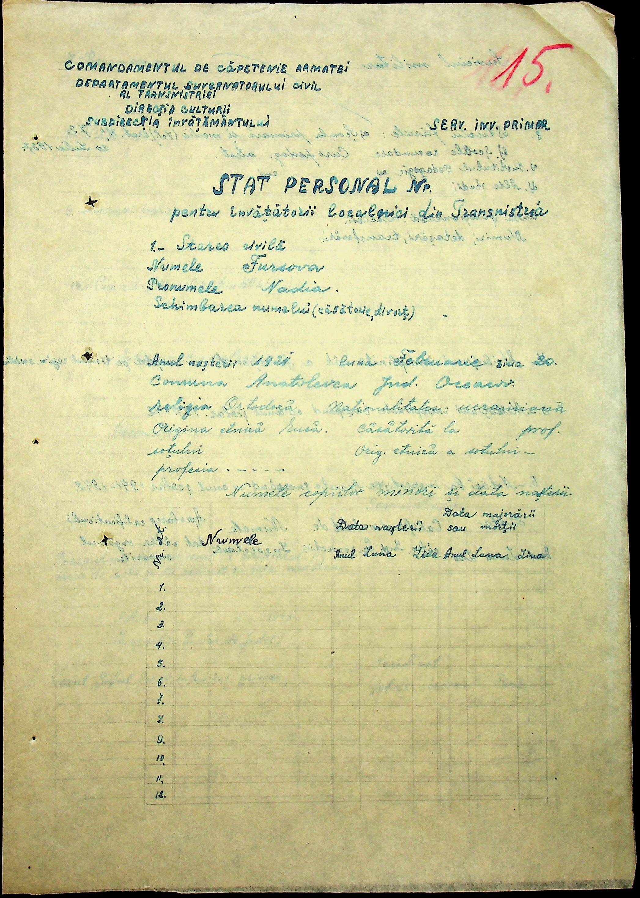 • • • • Справа № 101 “Особові картки вчителів Трансністрії”