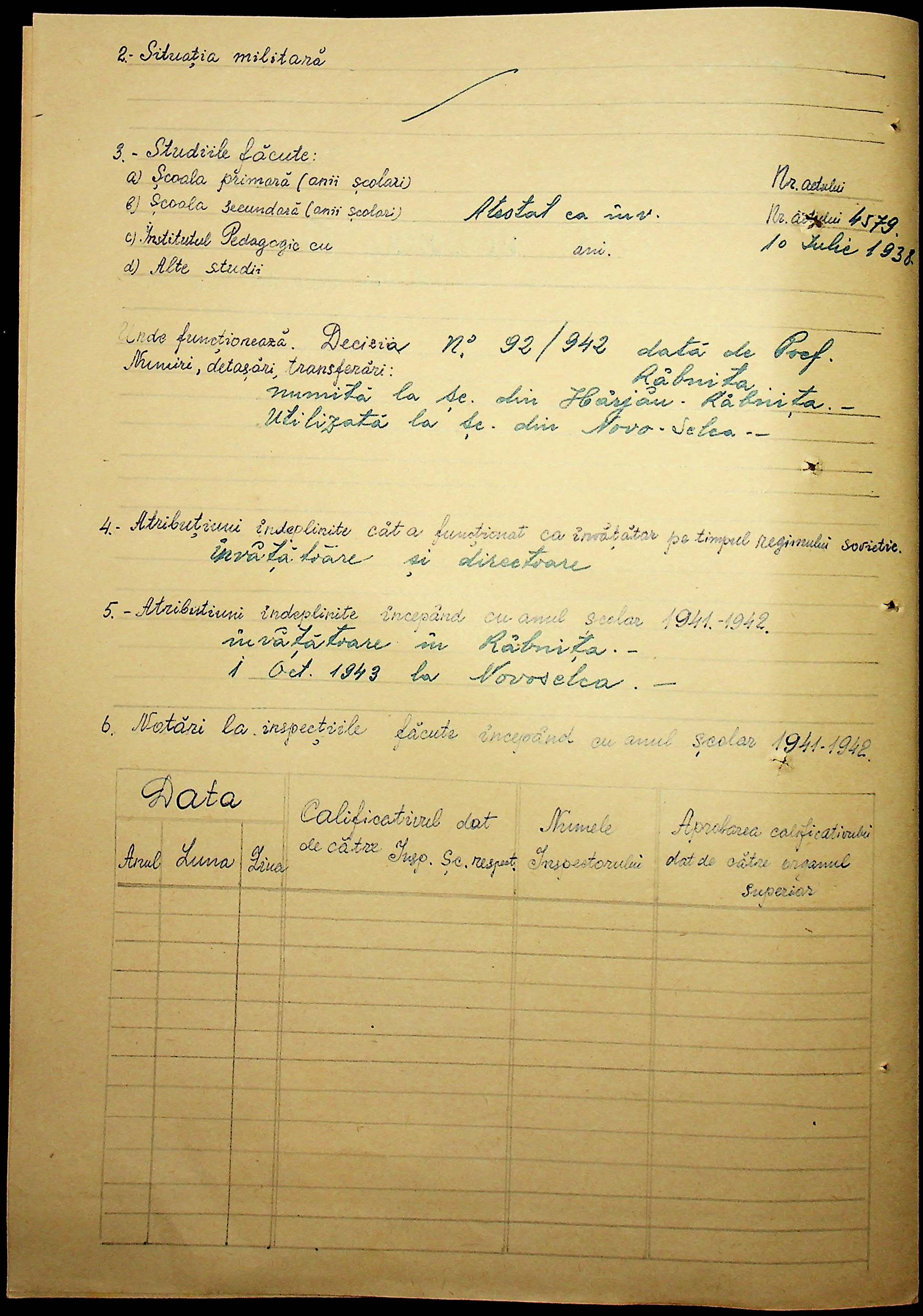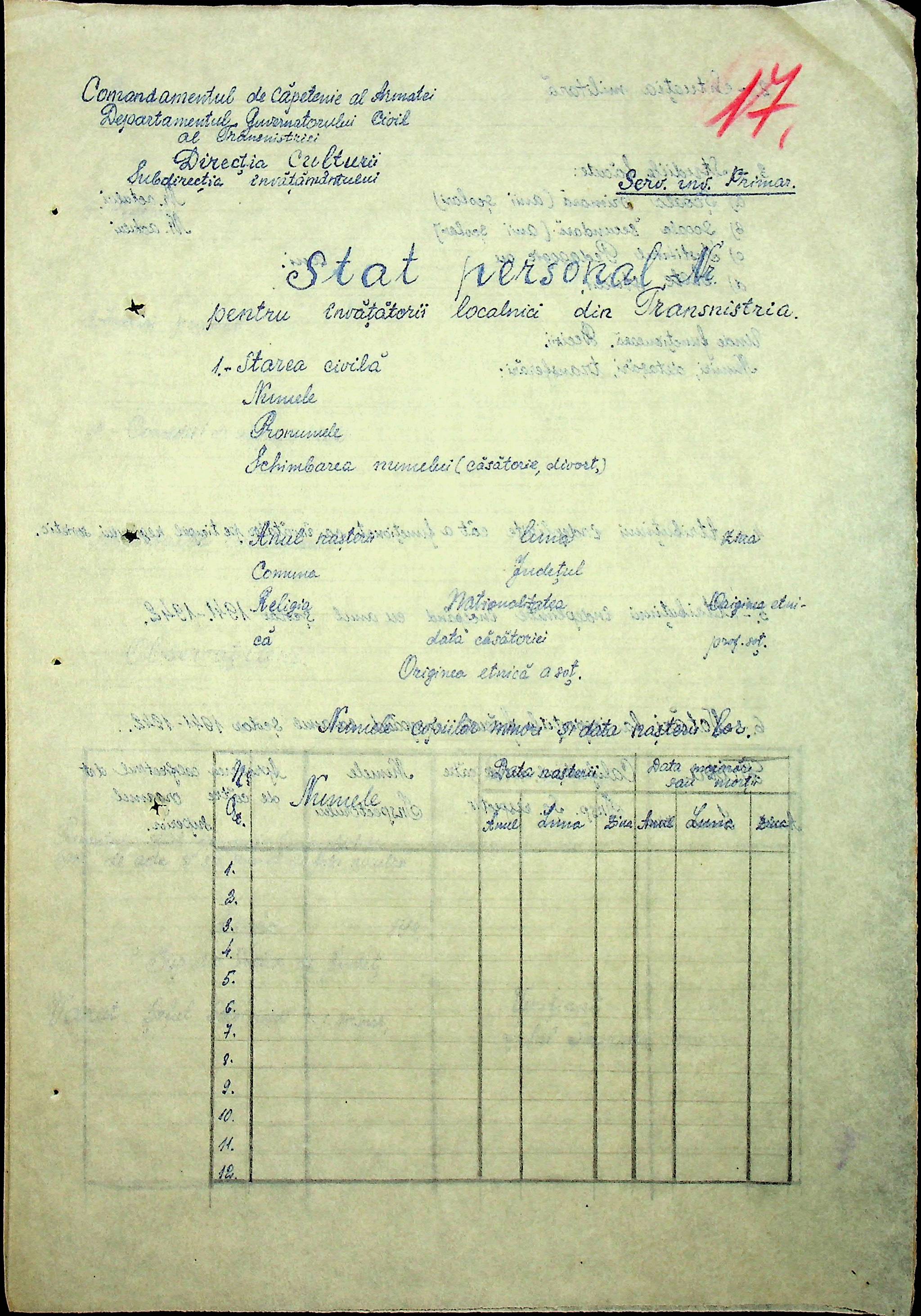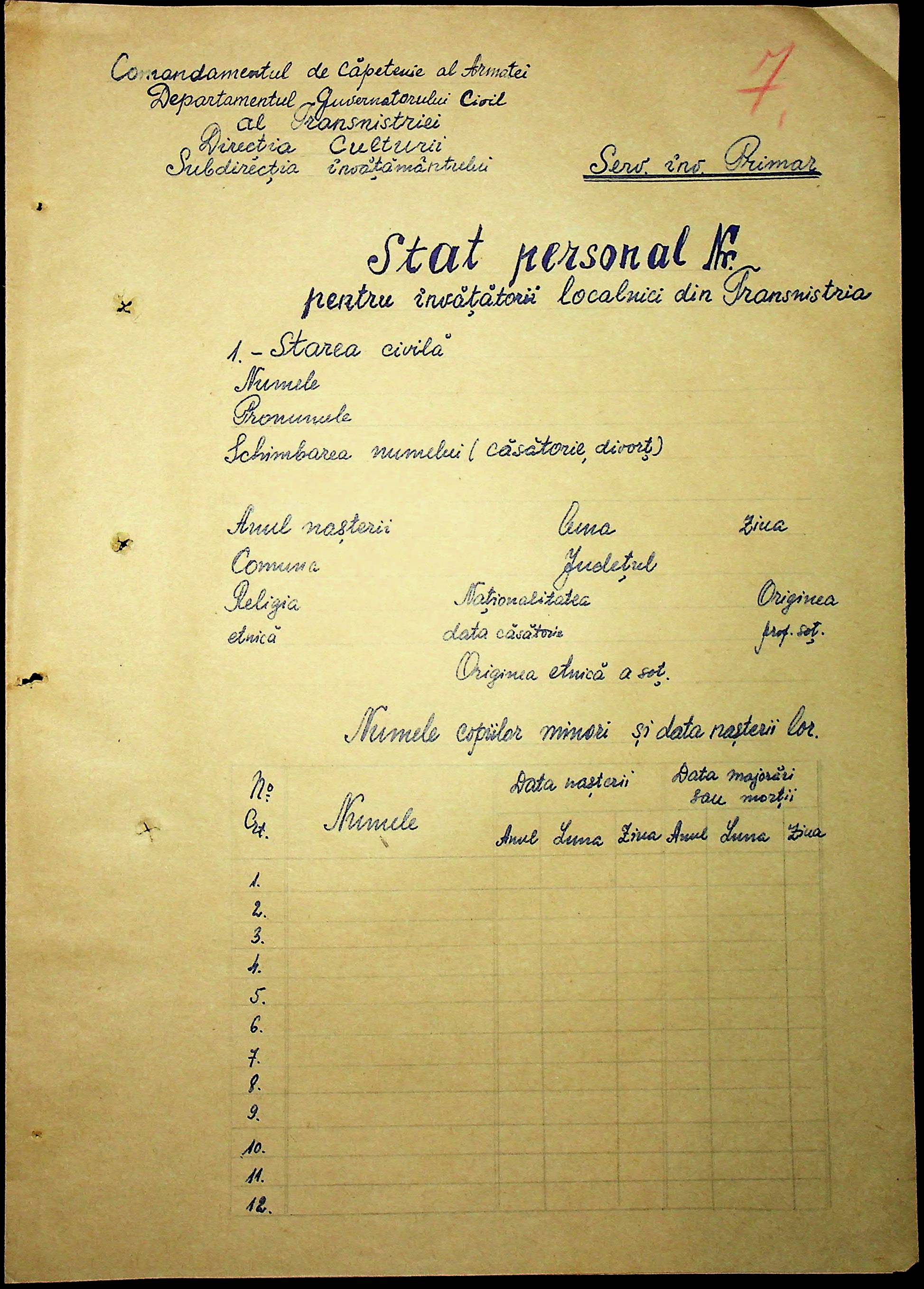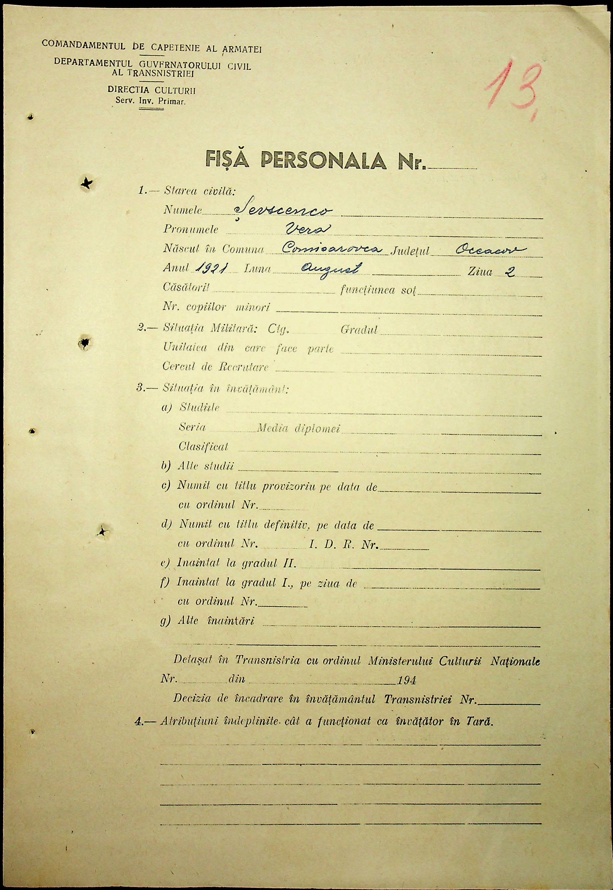 • • • • Справа № 101 “Особові картки вчителів Трансністрії”