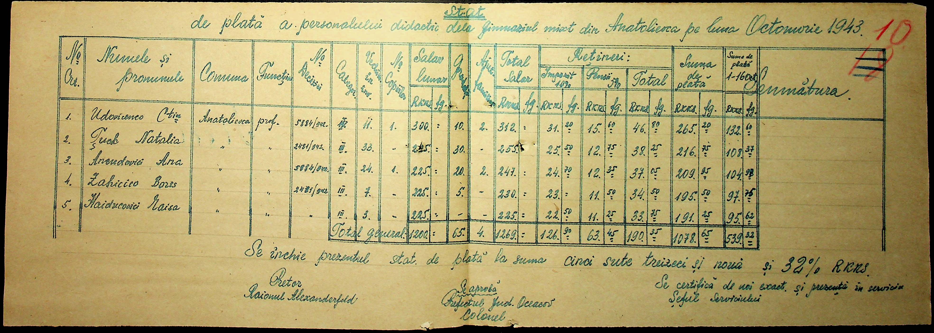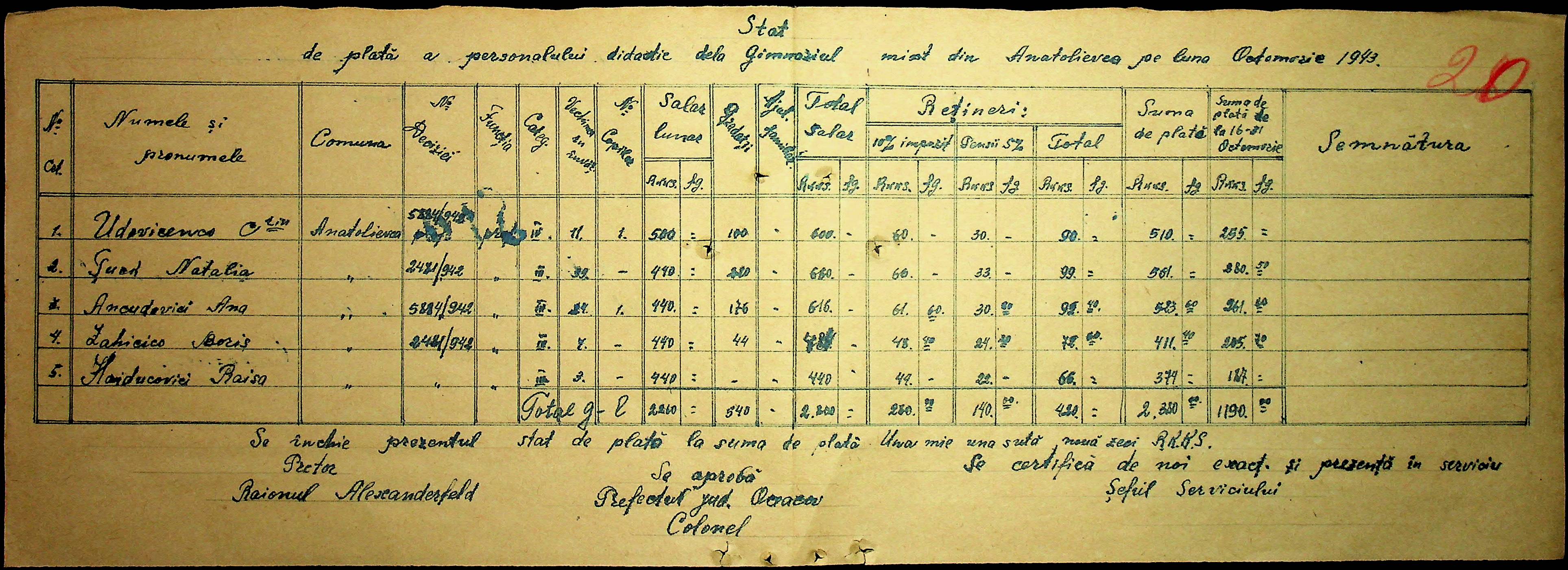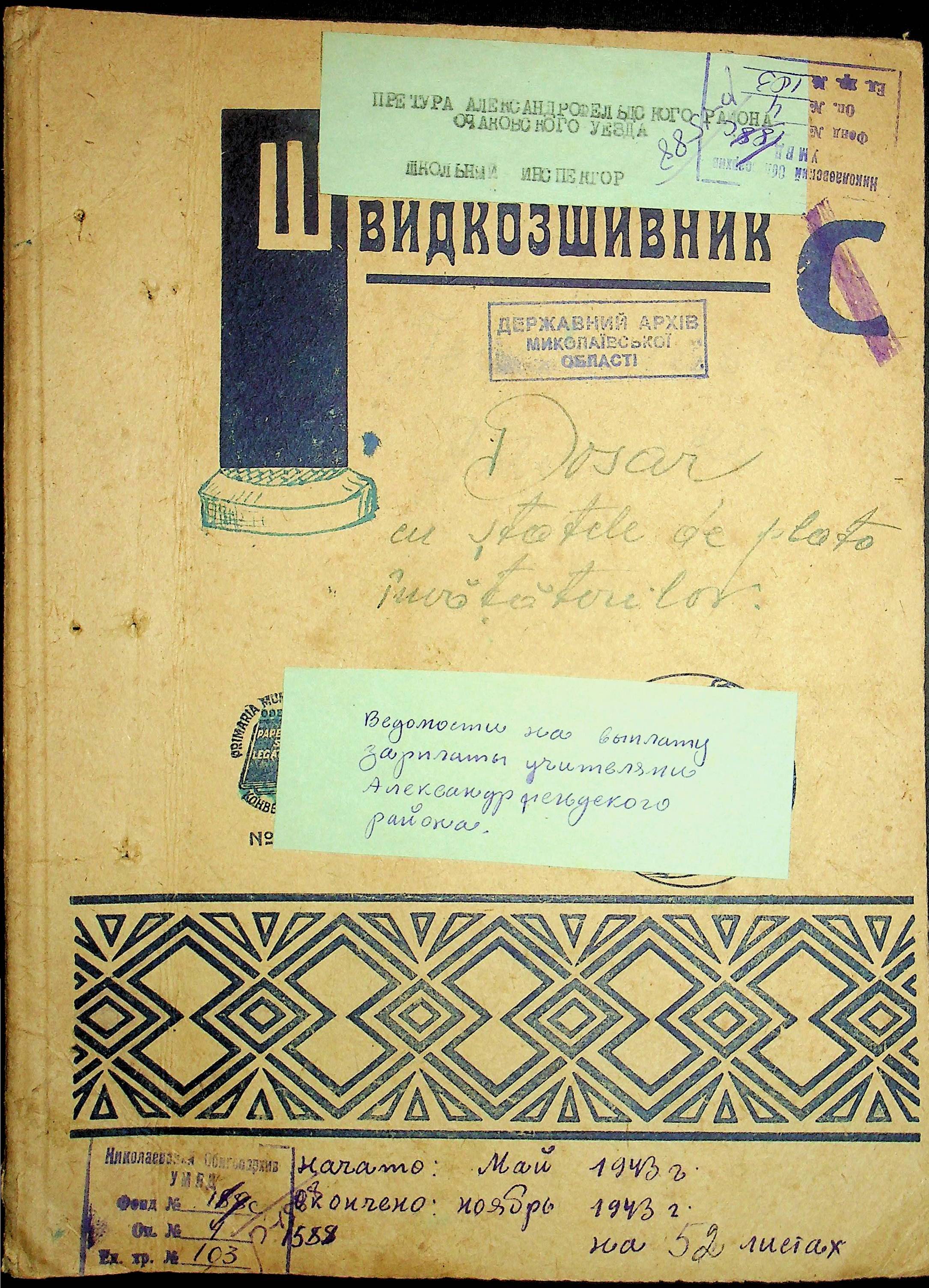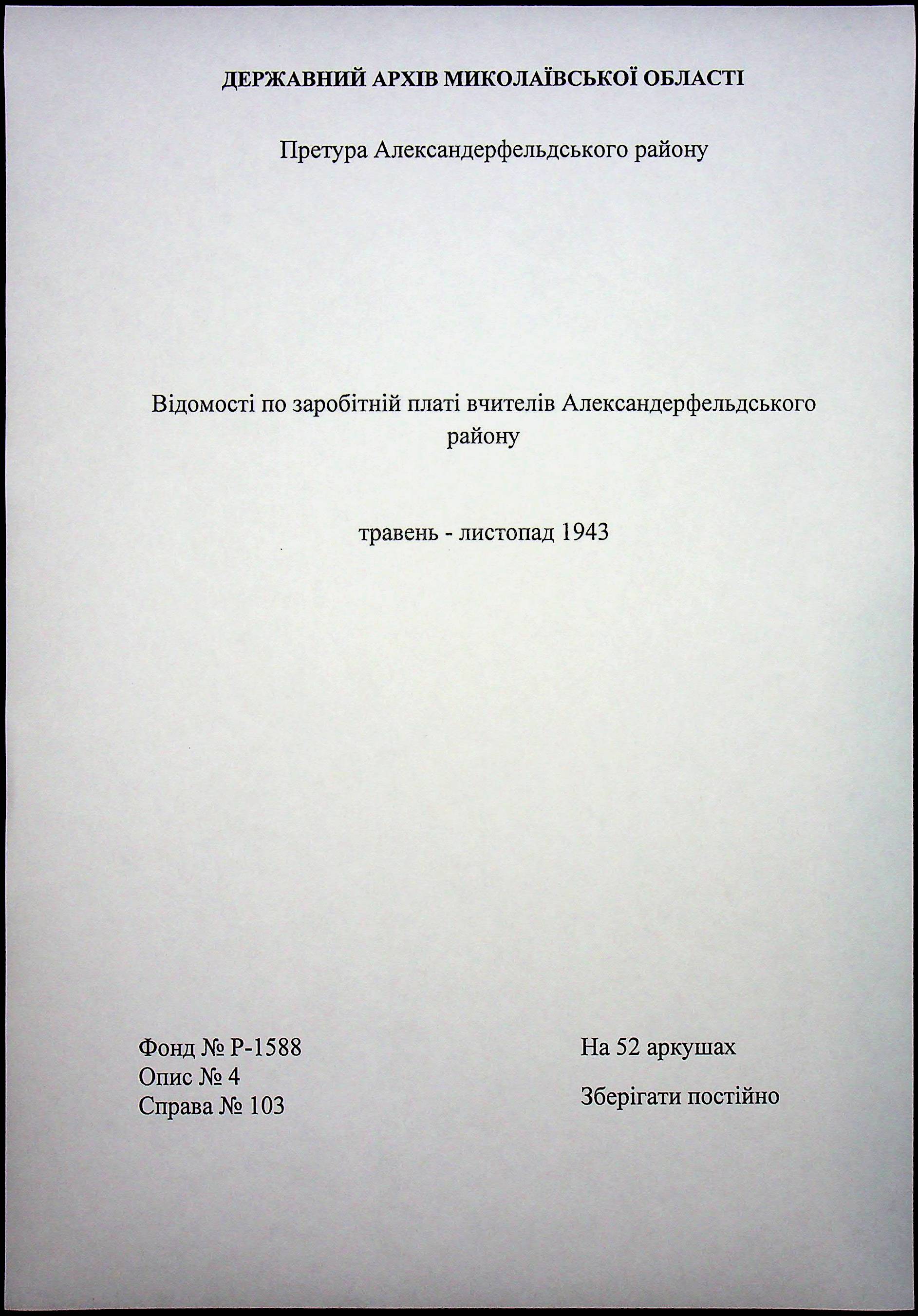 • • • • Справа № 103 “Відомості по заробітній платі вчителів Александерфельдського району”