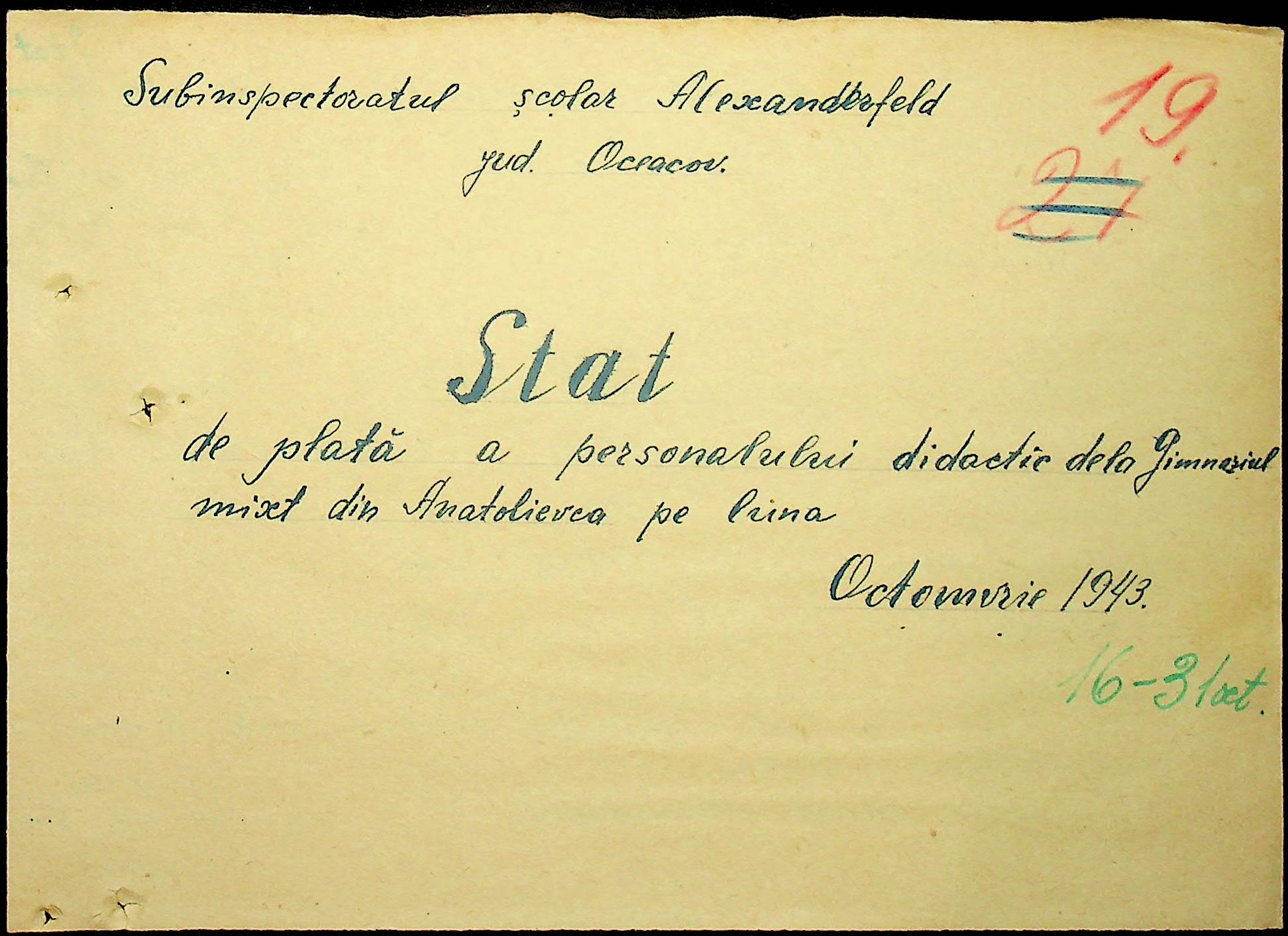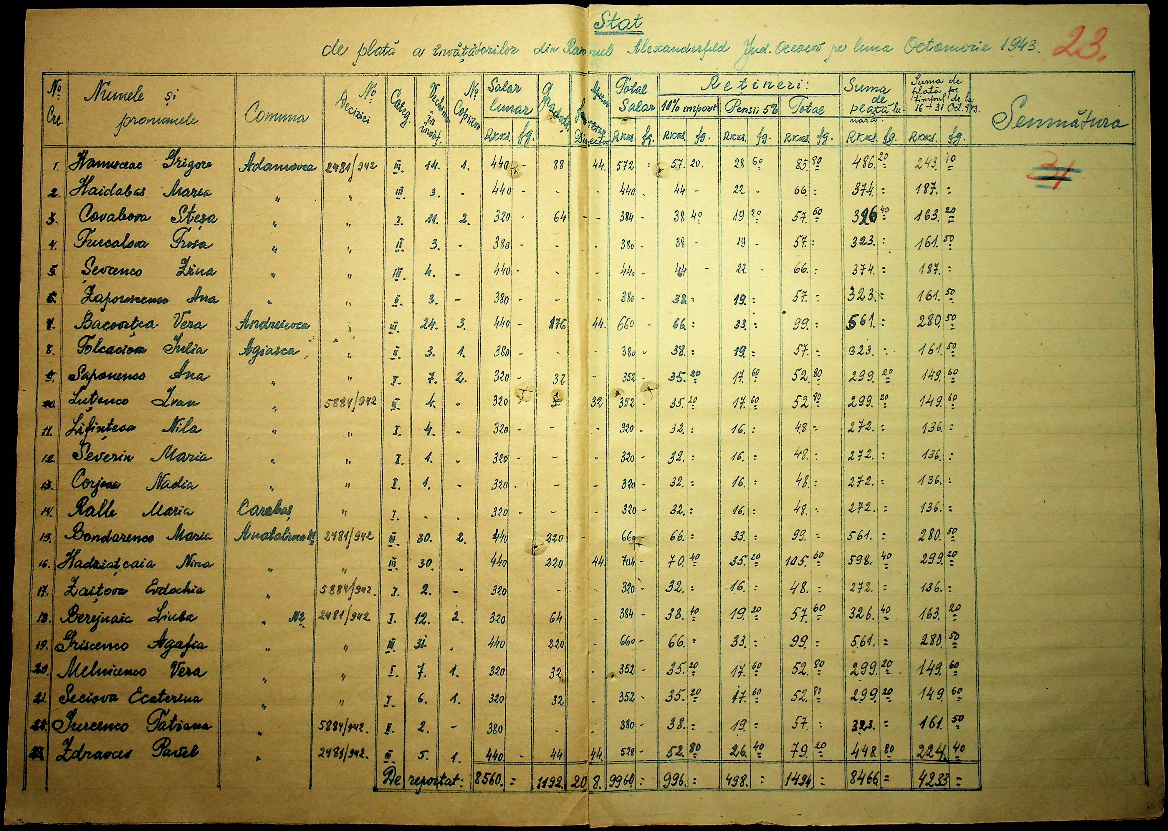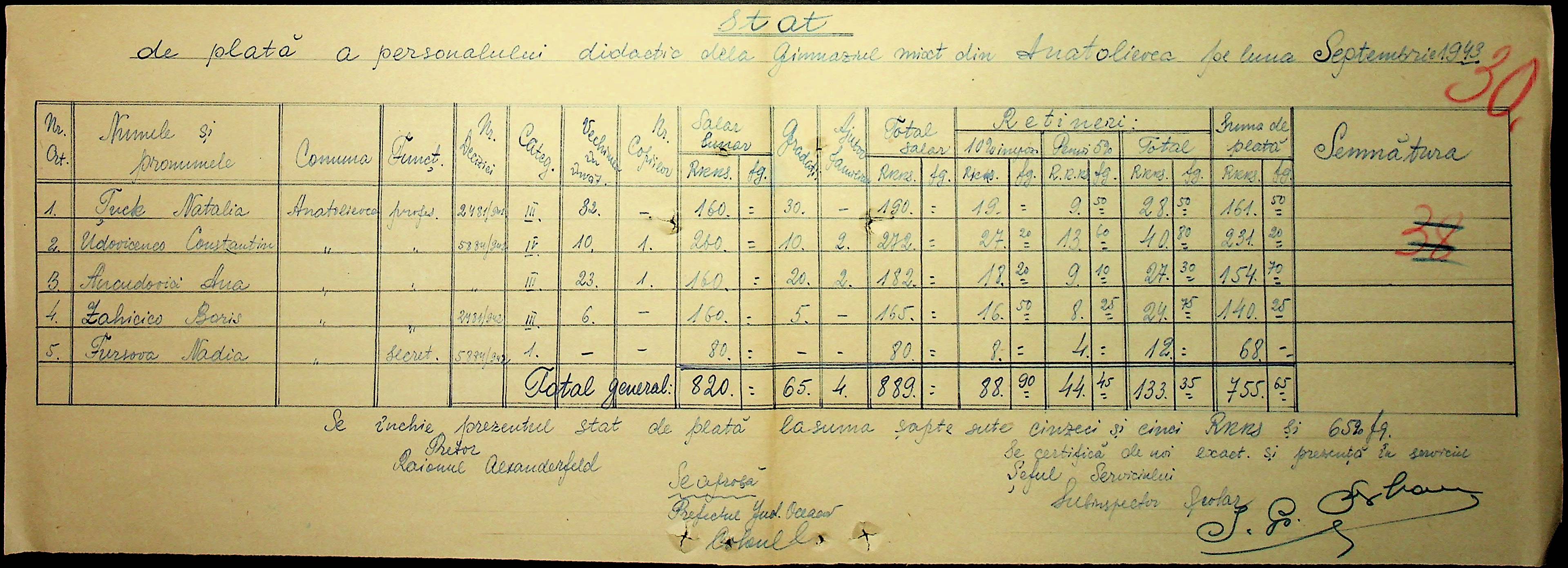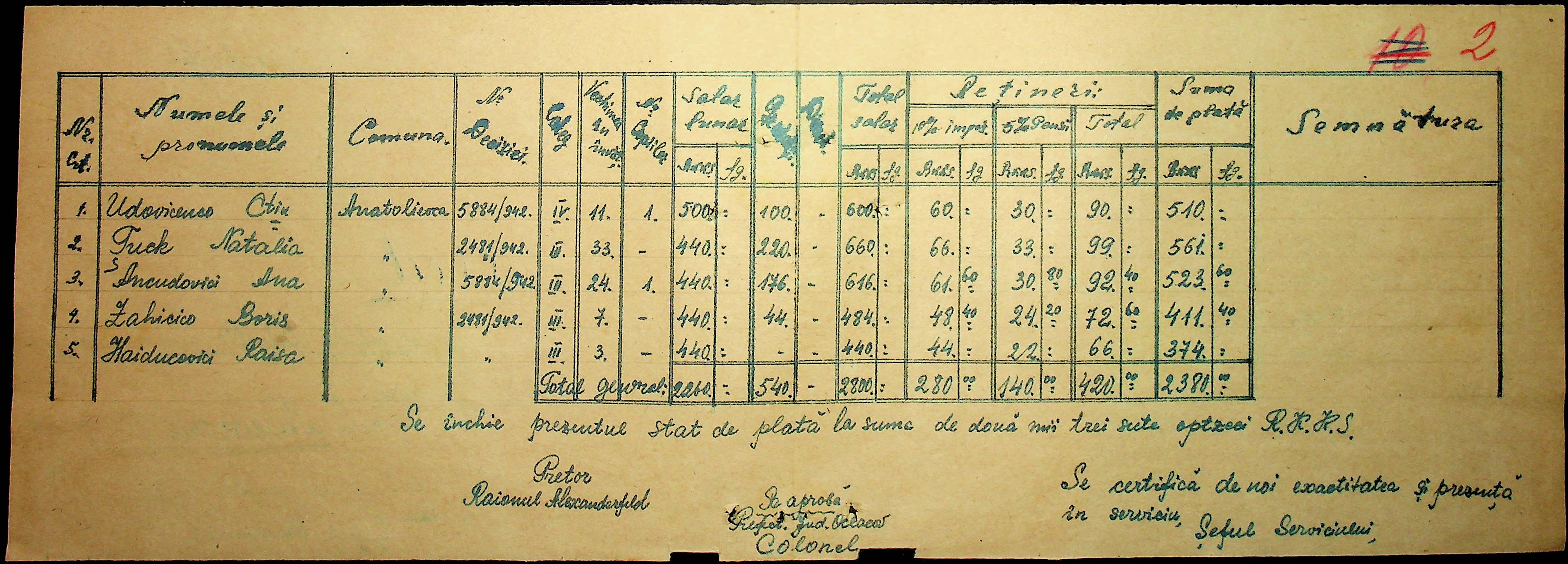• • • • Справа № 103 “Відомості по заробітній платі вчителів Александерфельдського району”