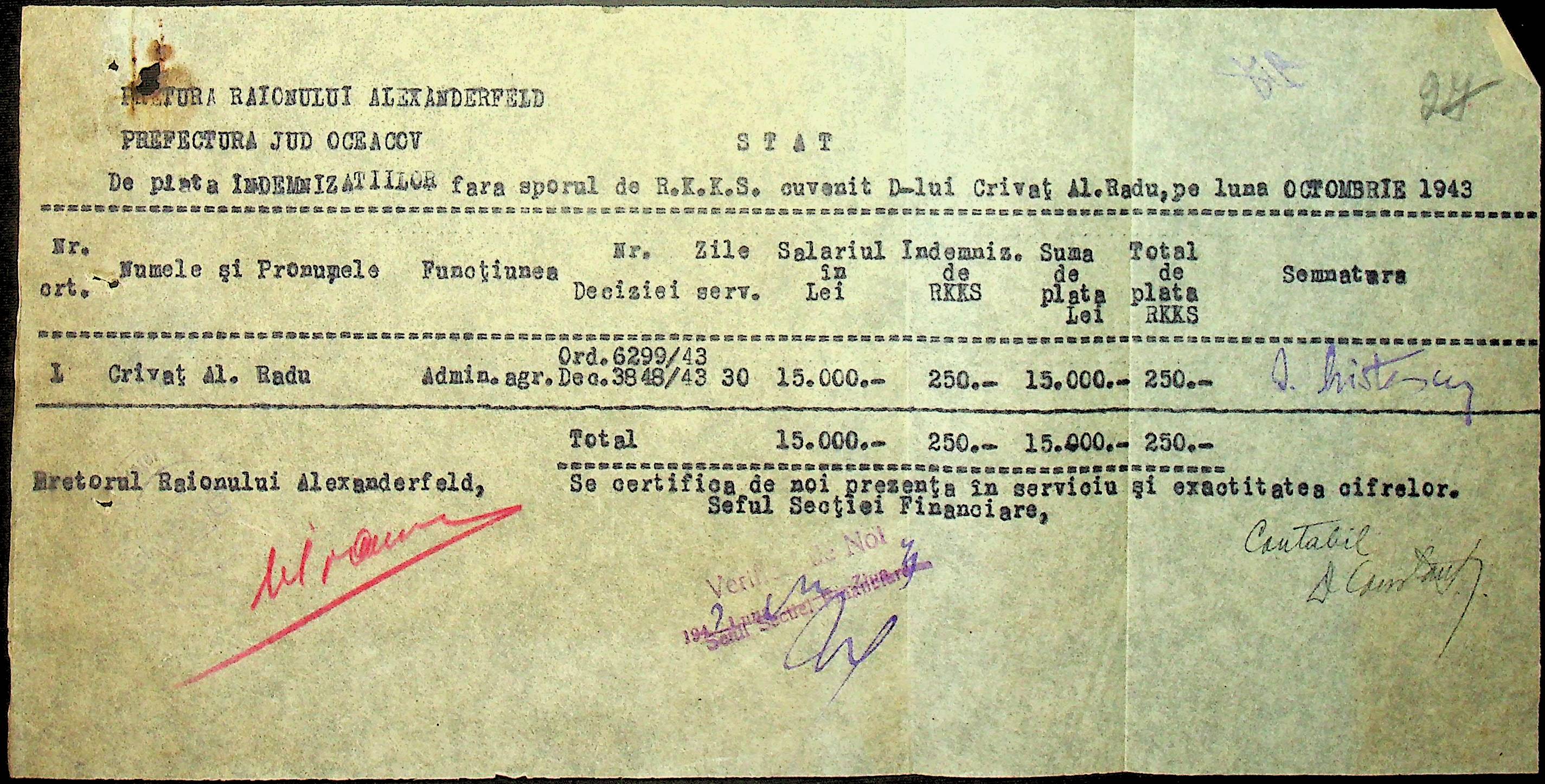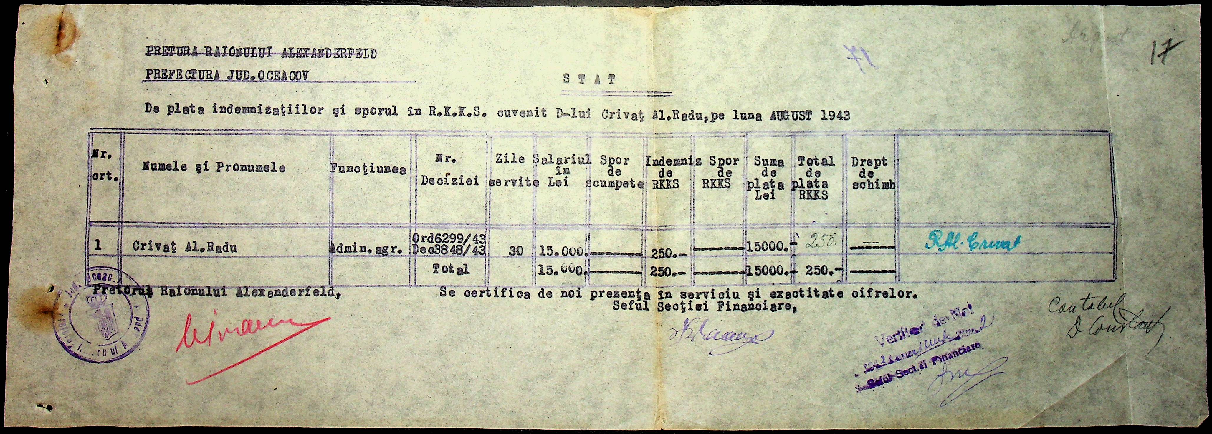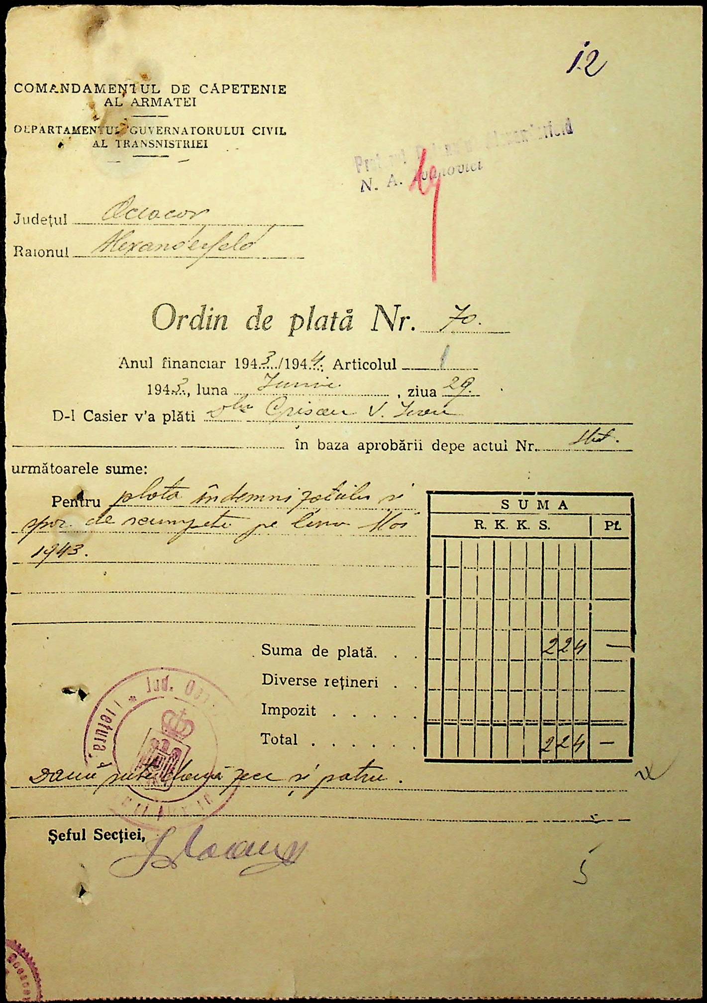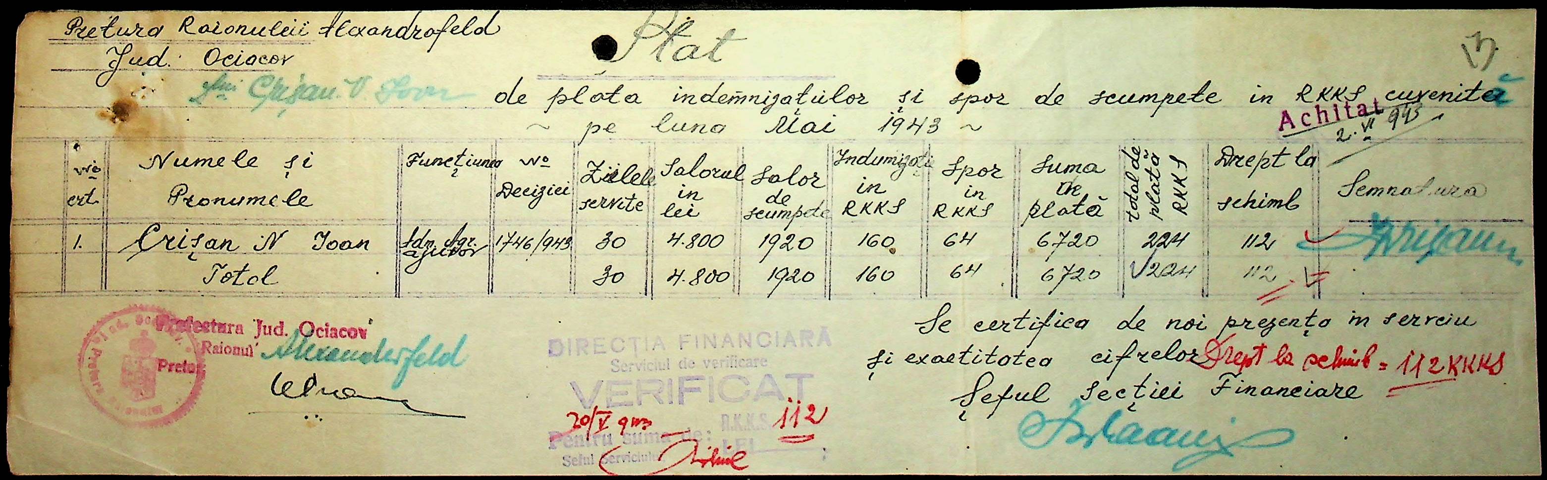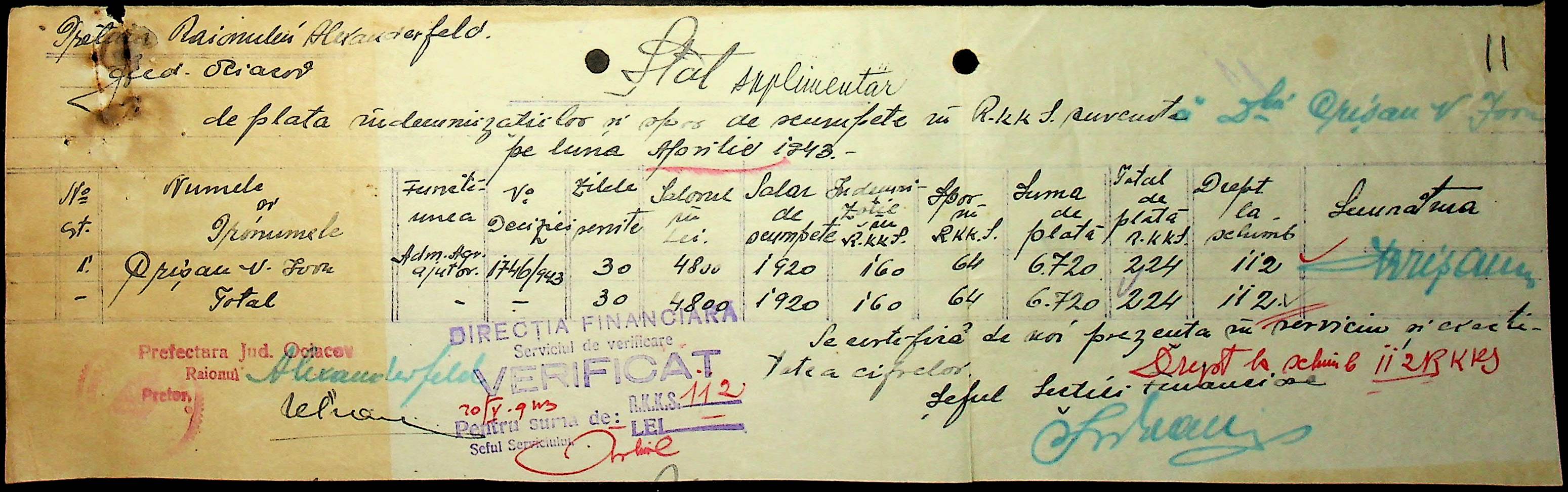 • • • • Справа № 110 “Касові ордери, відомості на виплату зарплати співробітникам Александерфельдської претури”