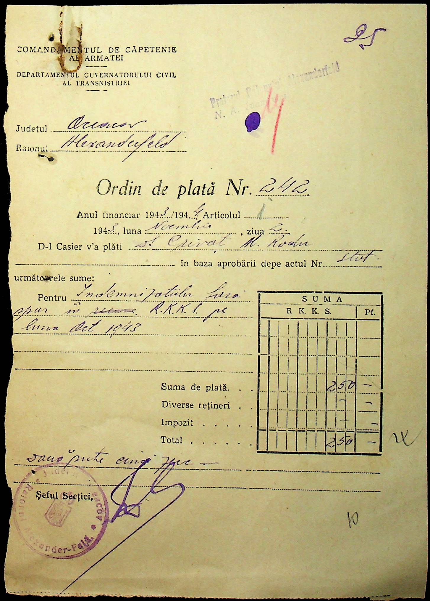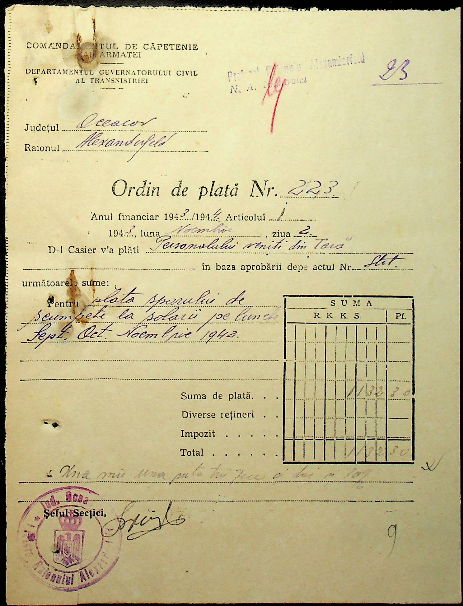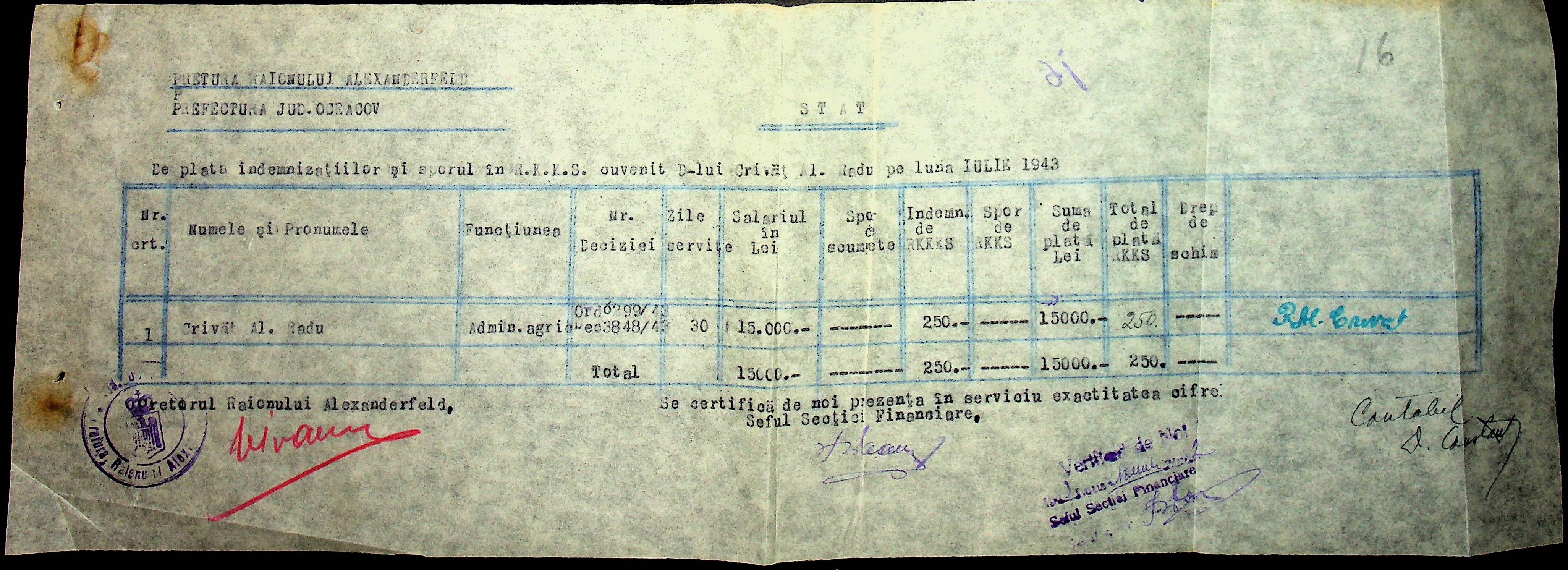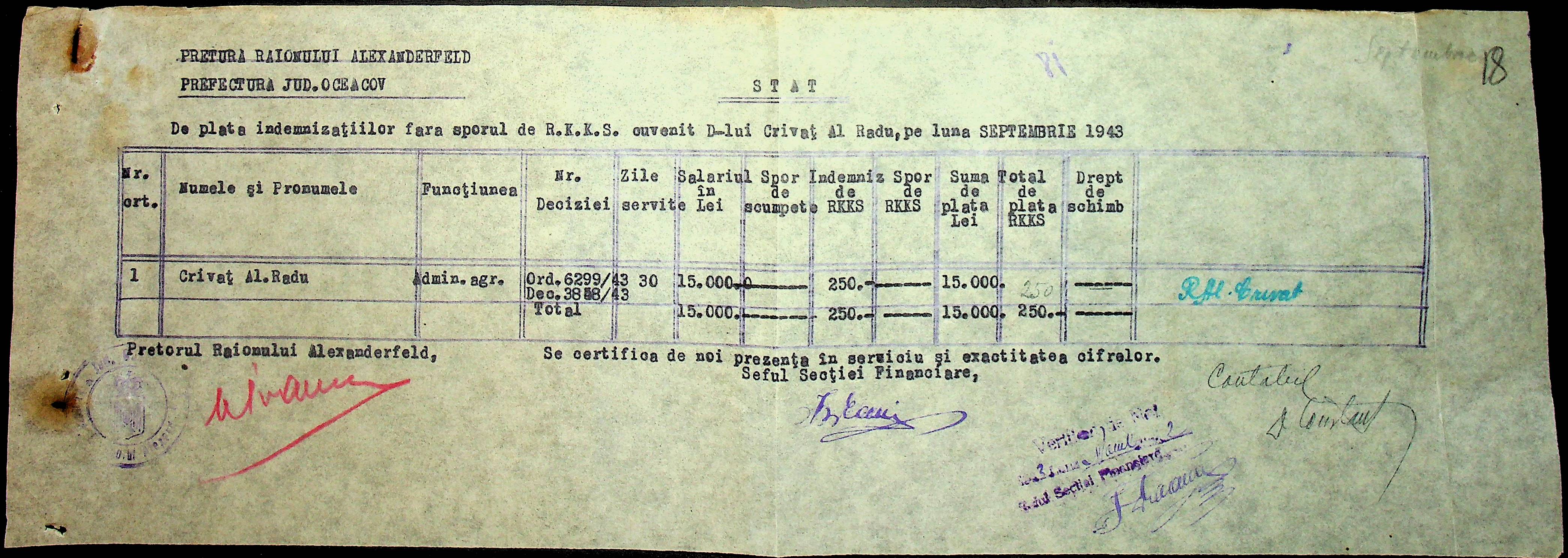 • • • • Справа № 110 “Касові ордери, відомості на виплату зарплати співробітникам Александерфельдської претури”