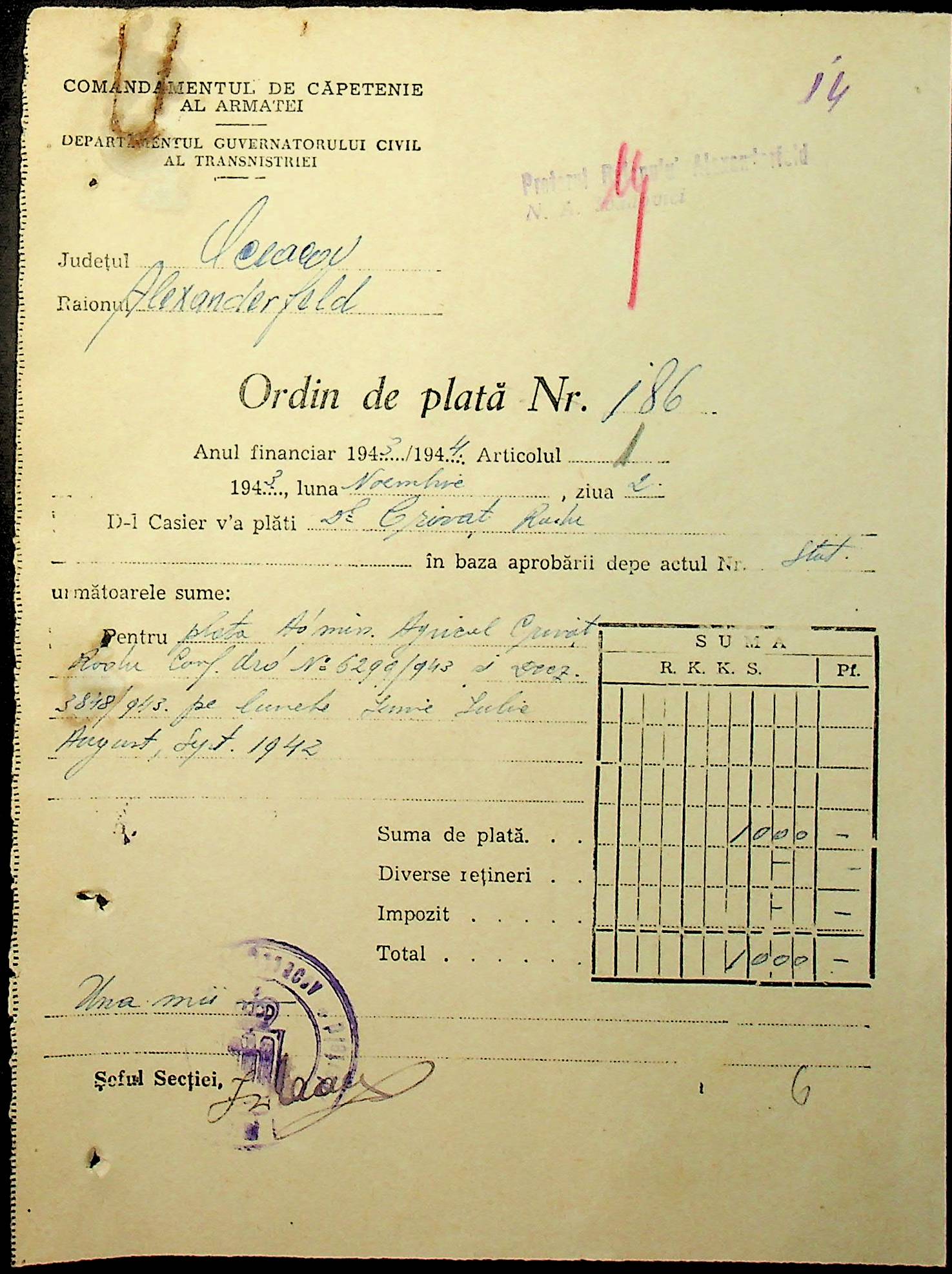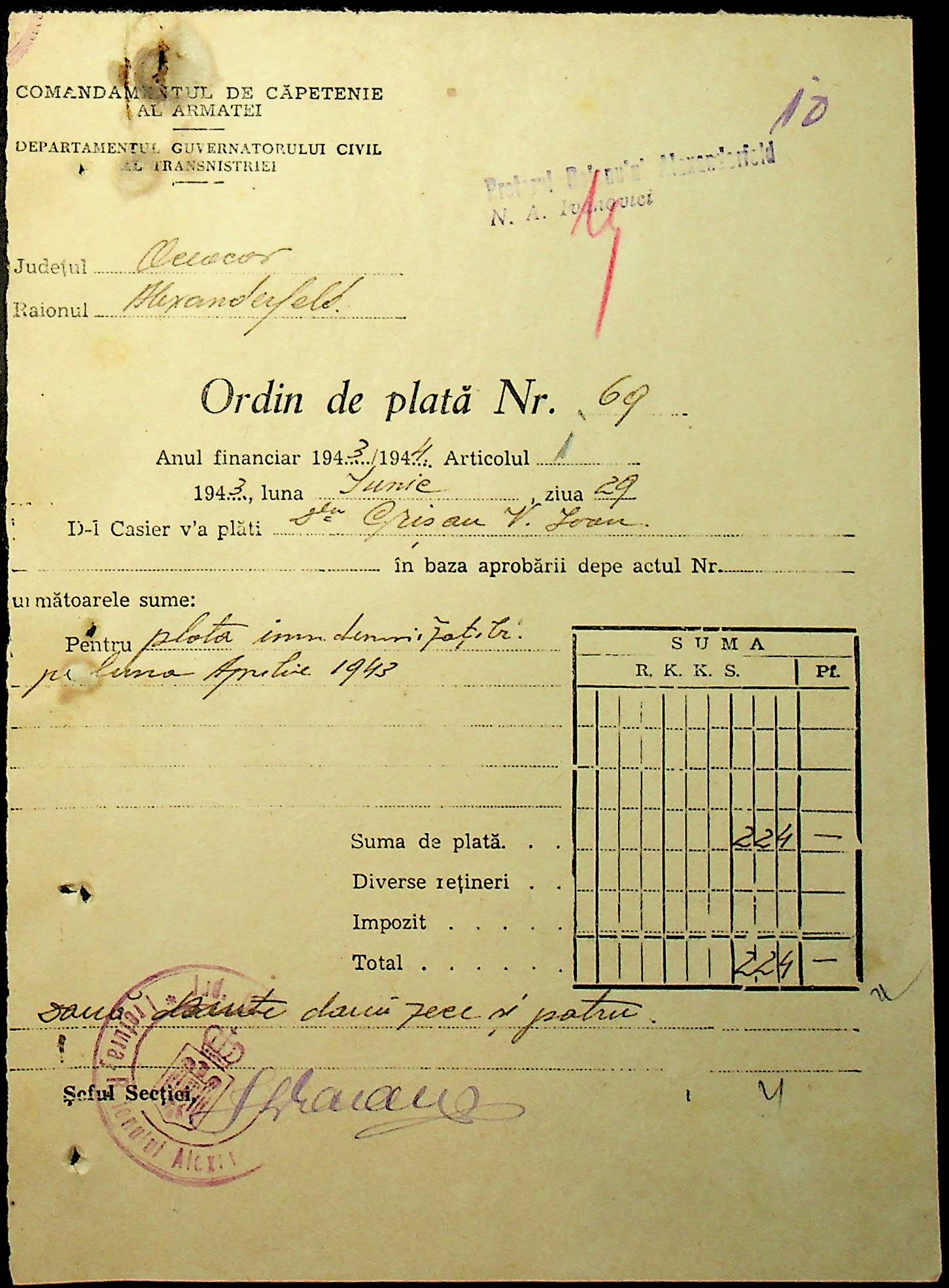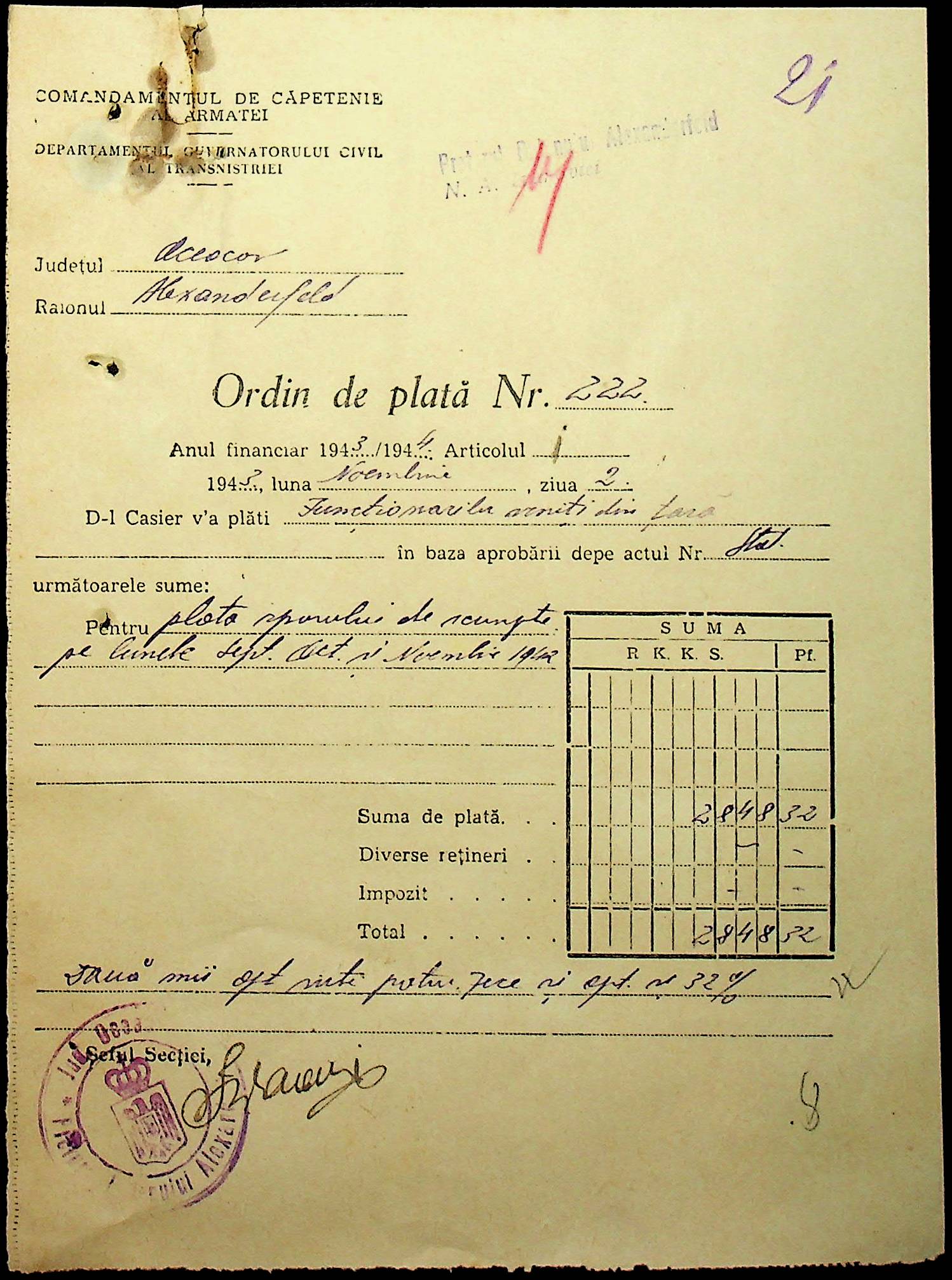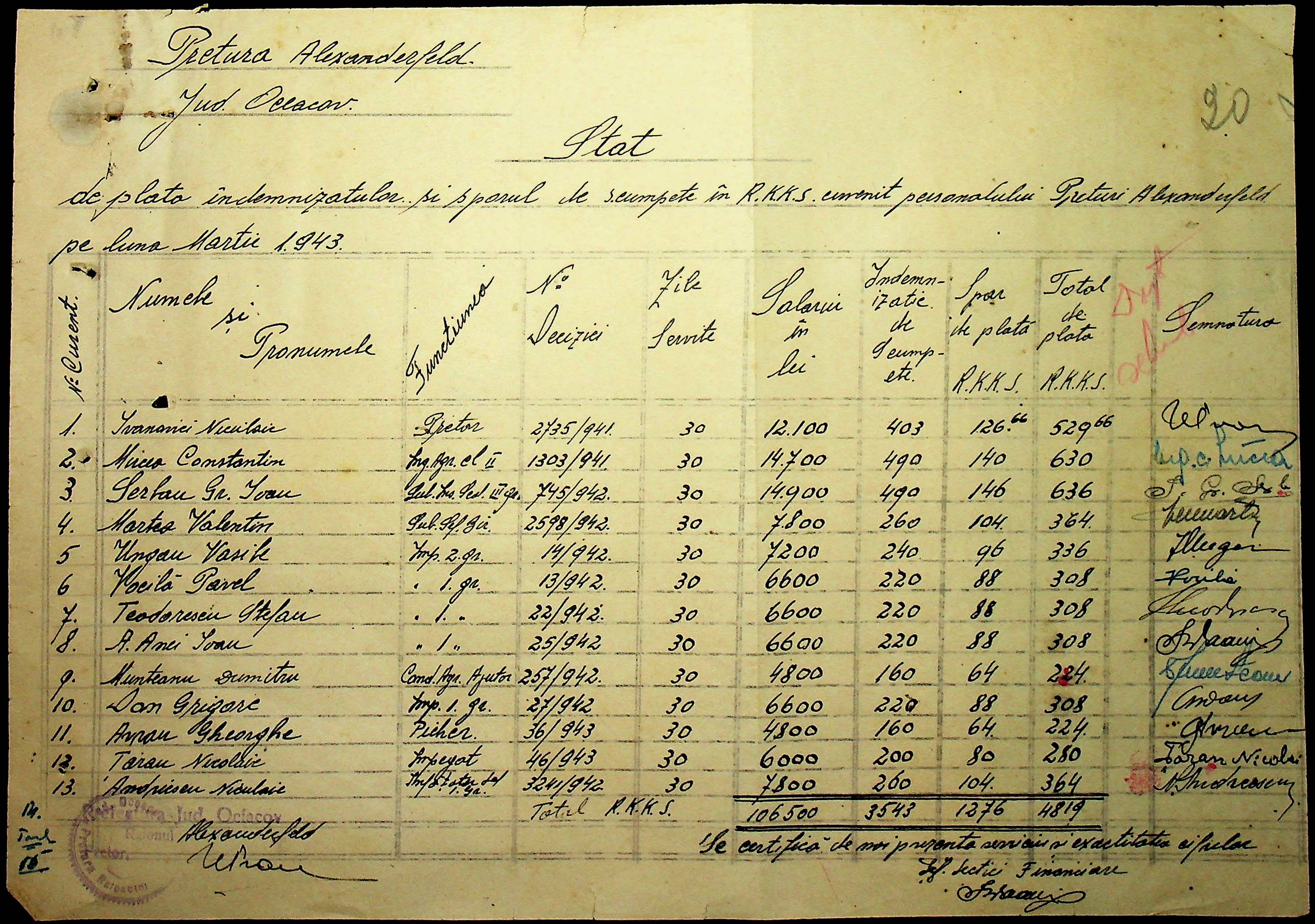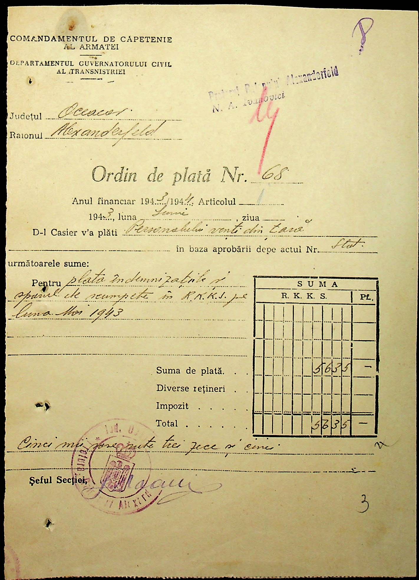 • • • • Справа № 110 “Касові ордери, відомості на виплату зарплати співробітникам Александерфельдської претури”