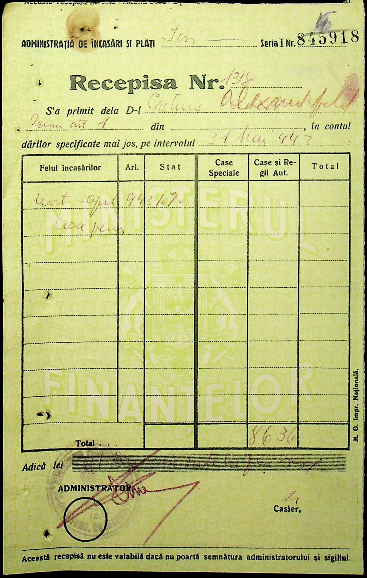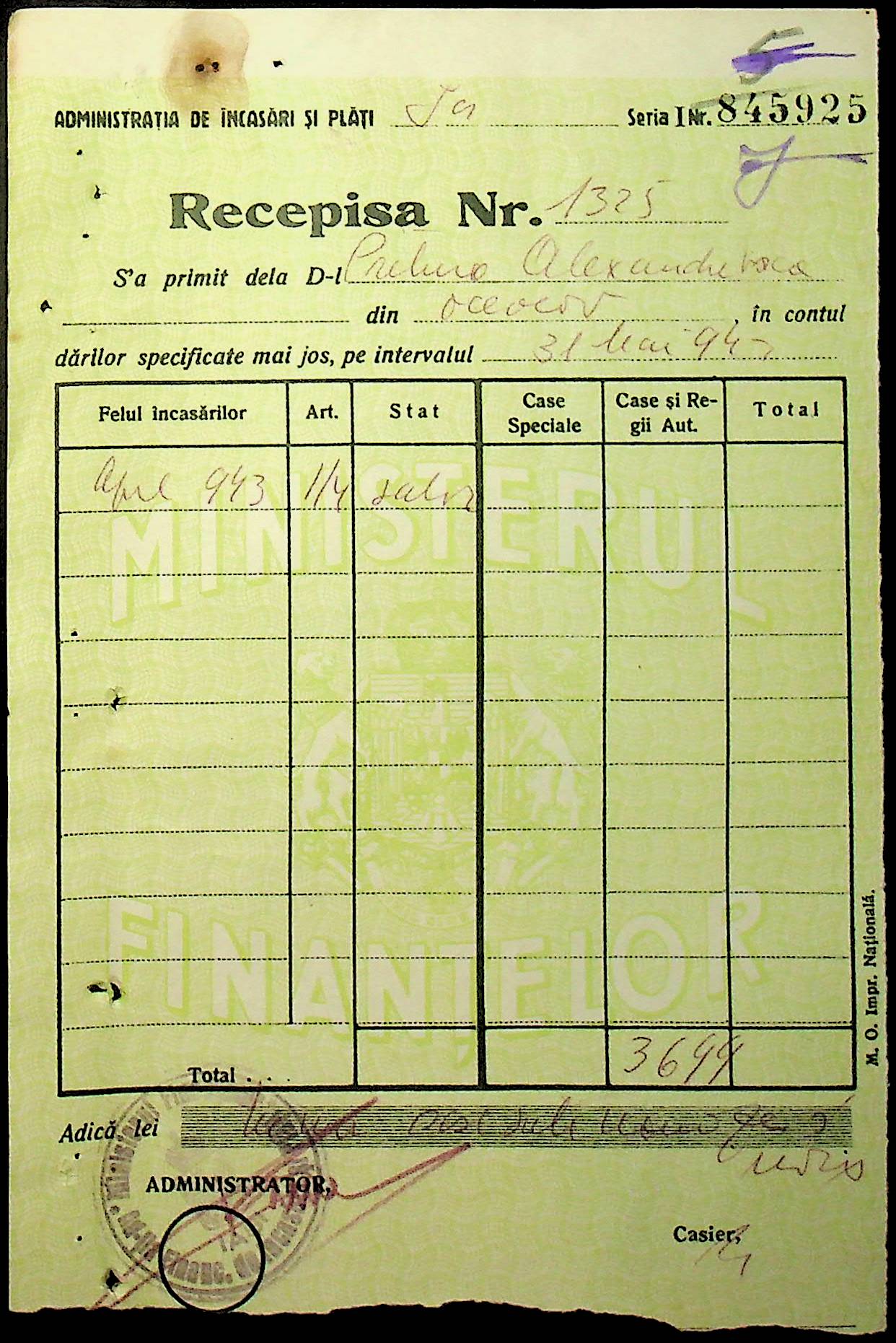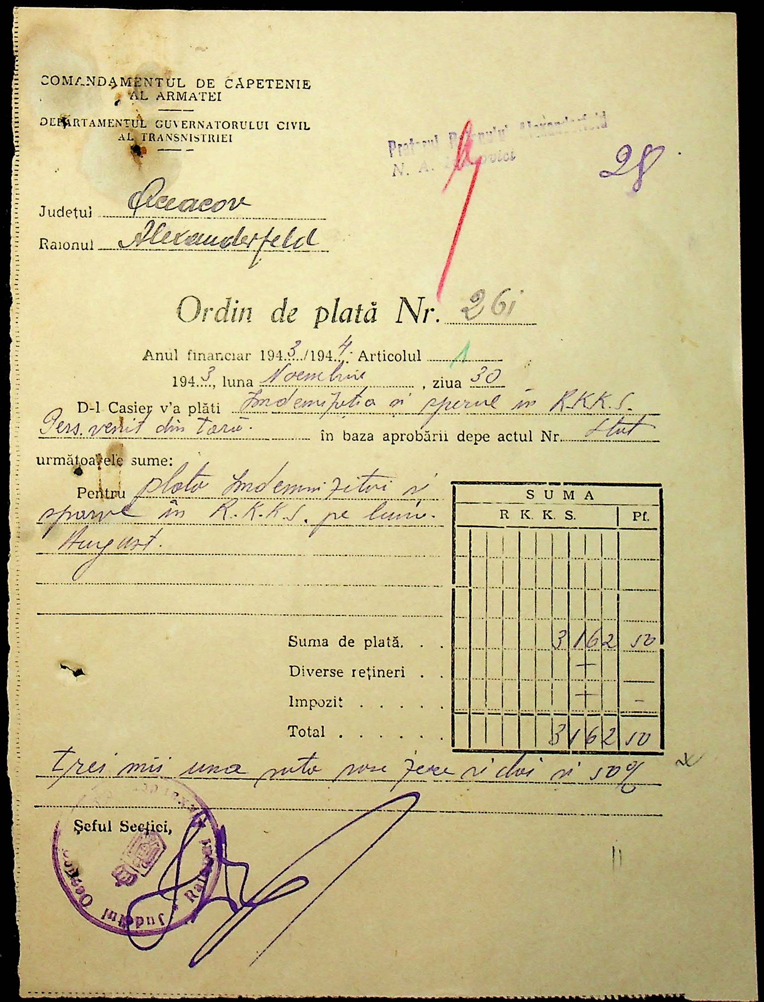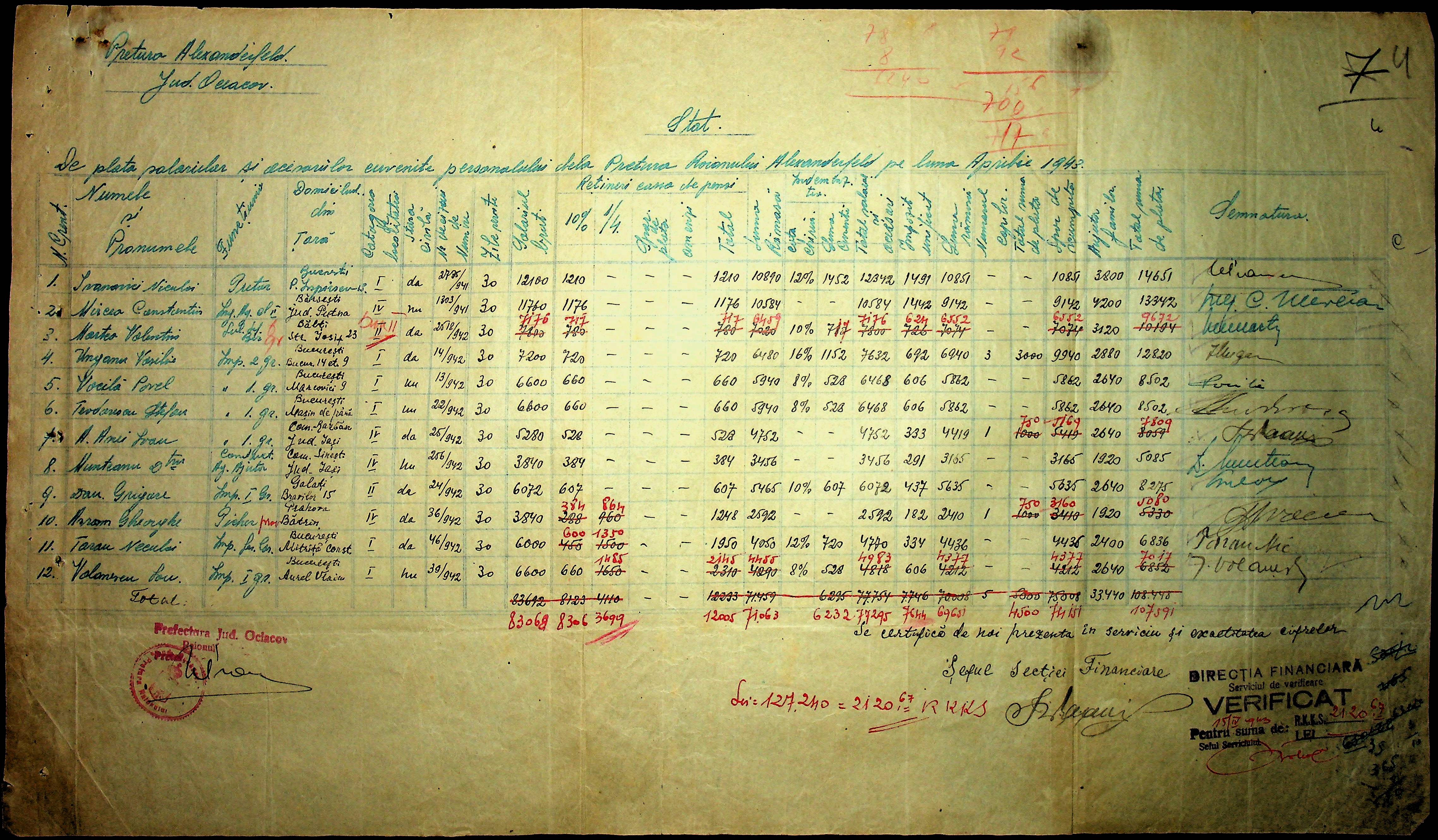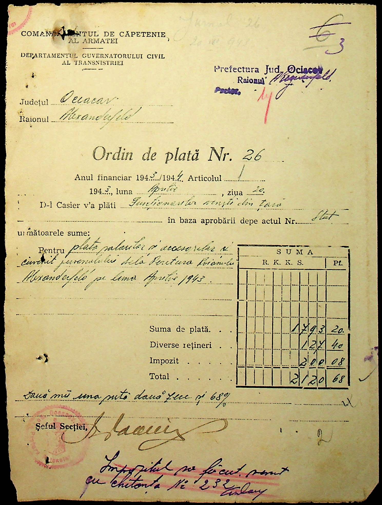 • • • • Справа № 110 “Касові ордери, відомості на виплату зарплати співробітникам Александерфельдської претури”