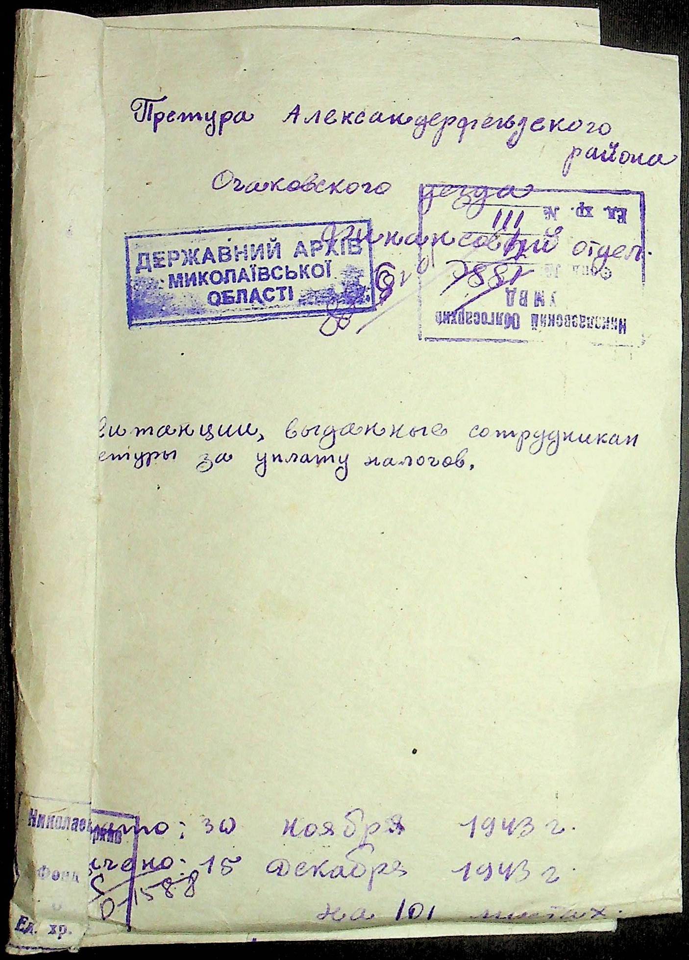 ◦ ◦ Фонд № Н-1588 “Претура Александерфельдського району Очаківського повіту”