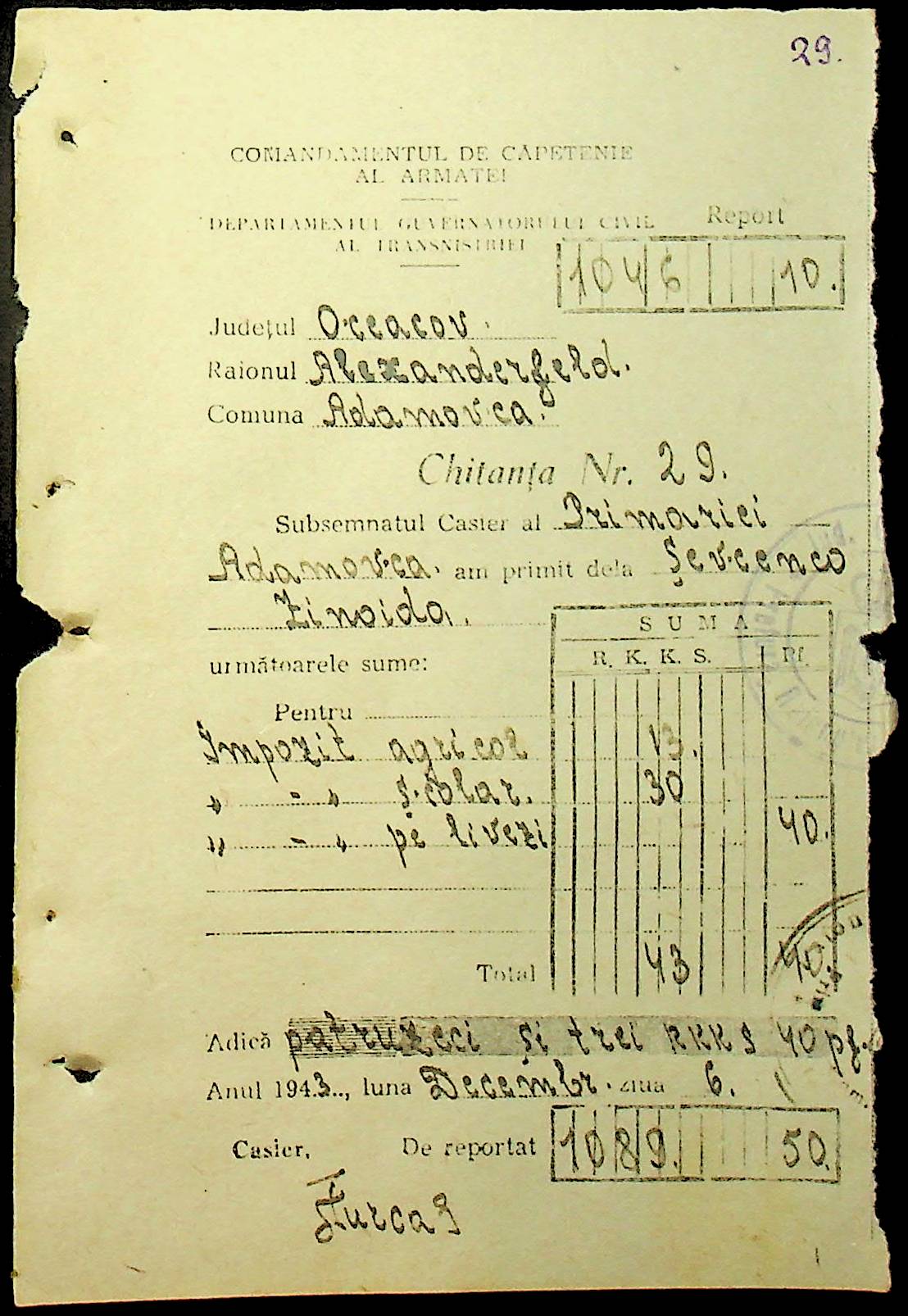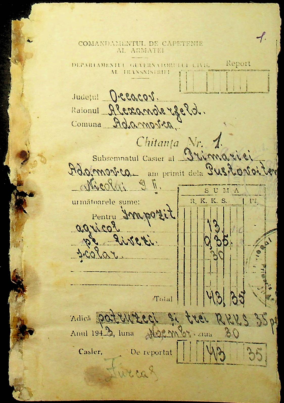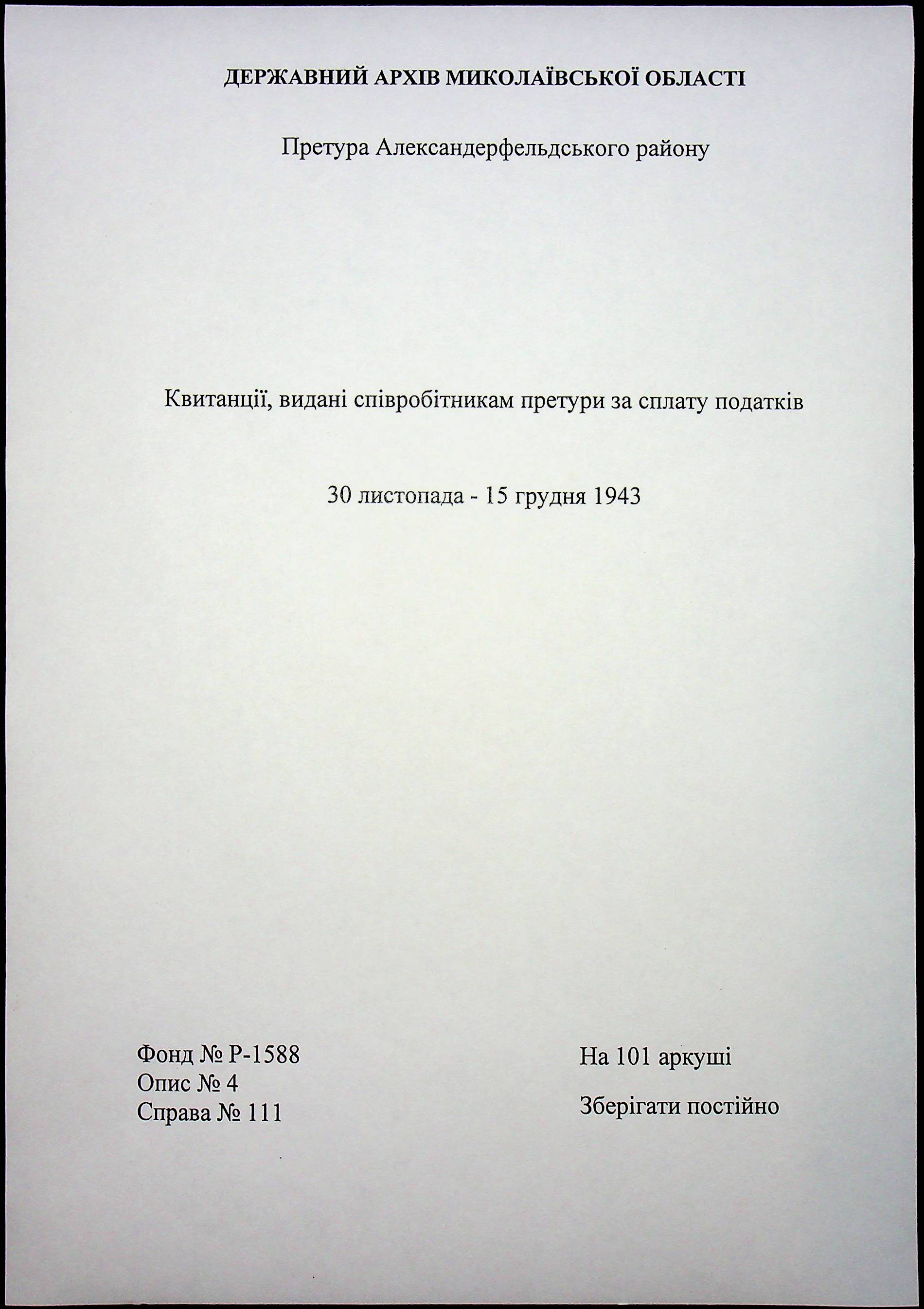 • • • • Справа № 111 “Квитанції, видані співробітникам претури за сплату податків”