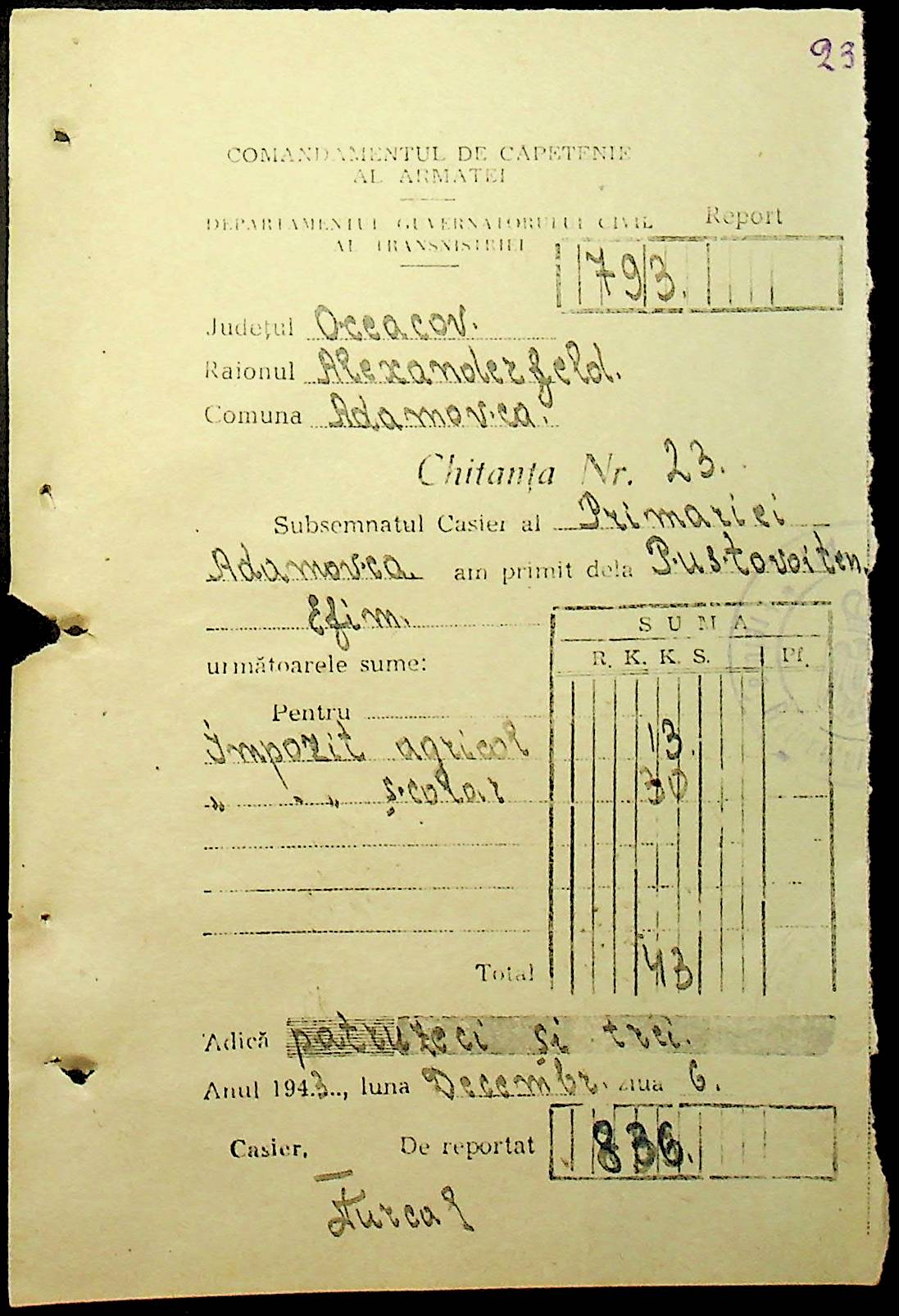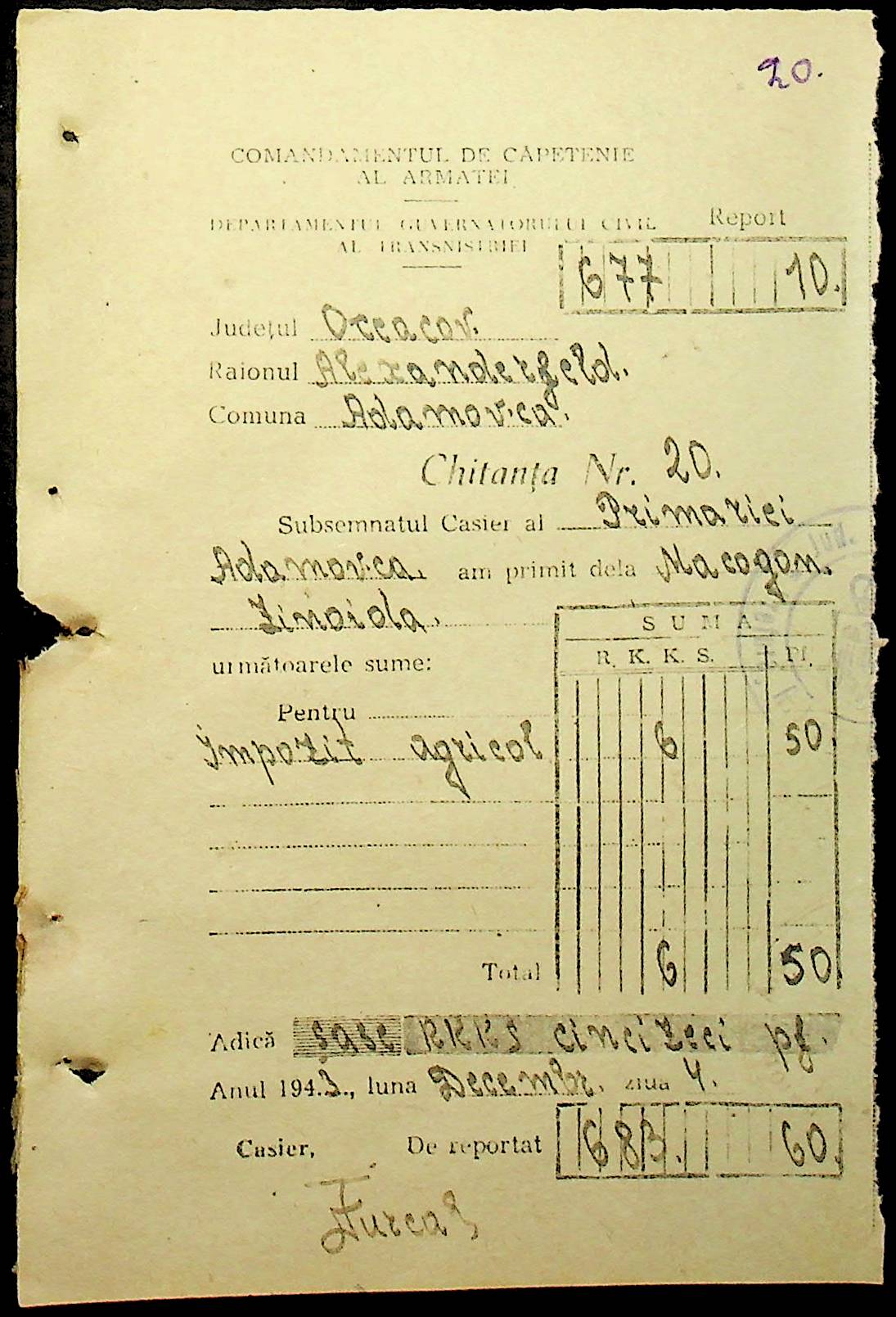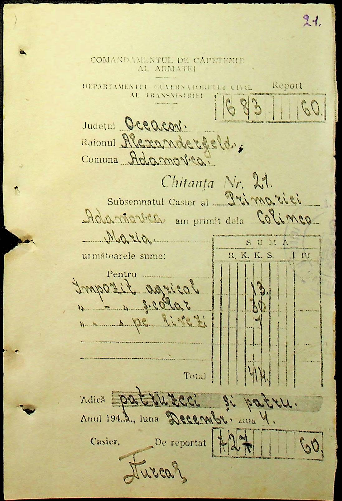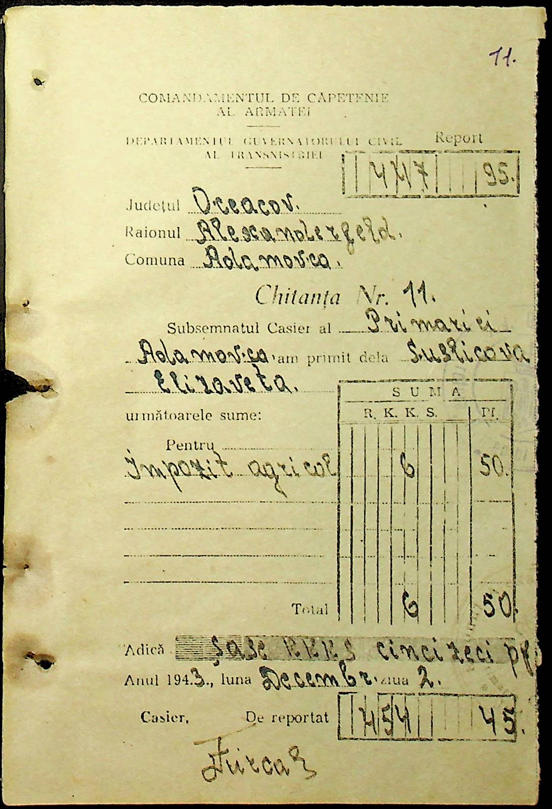 • • • • Справа № 111 “Квитанції, видані співробітникам претури за сплату податків”