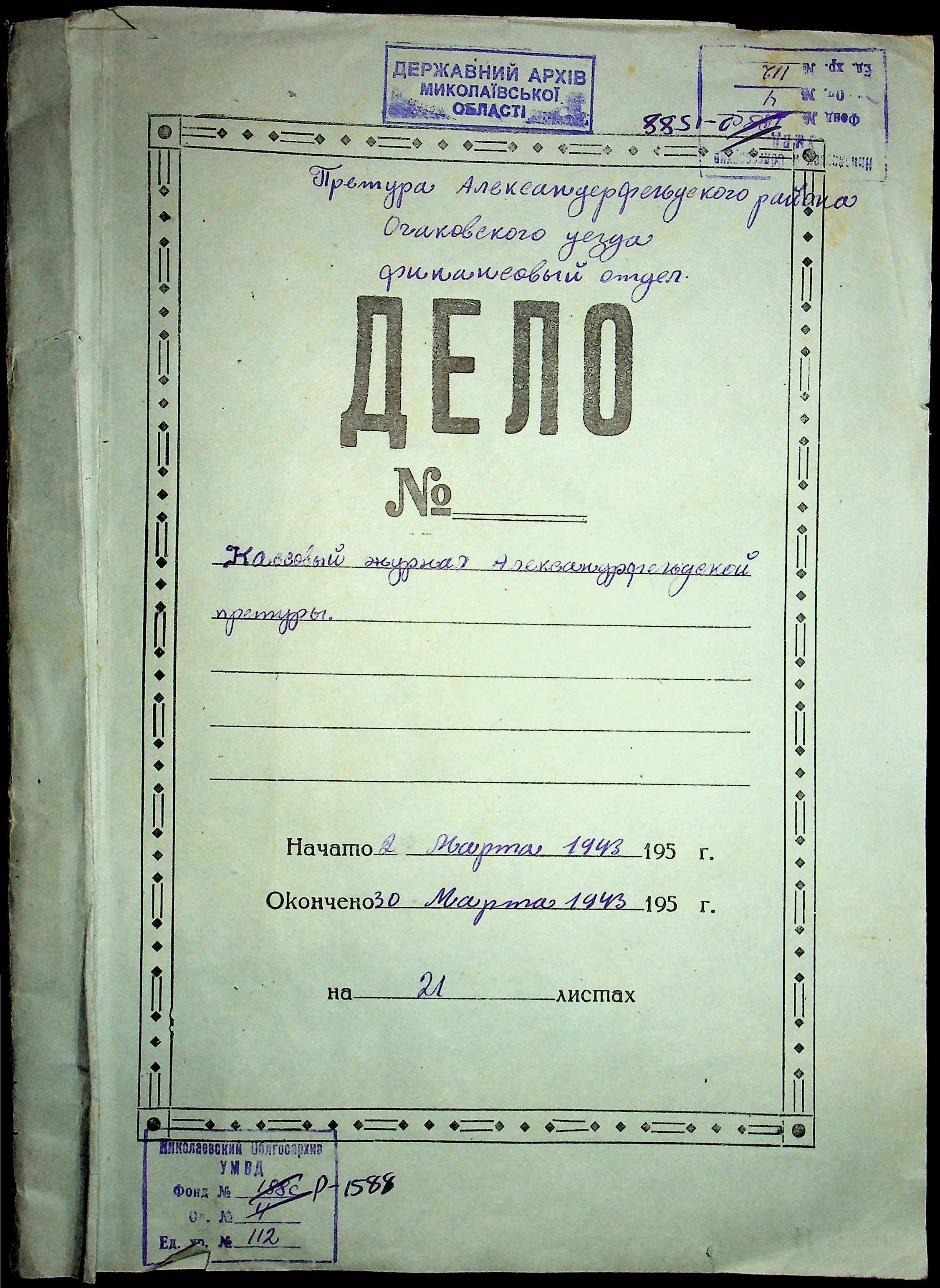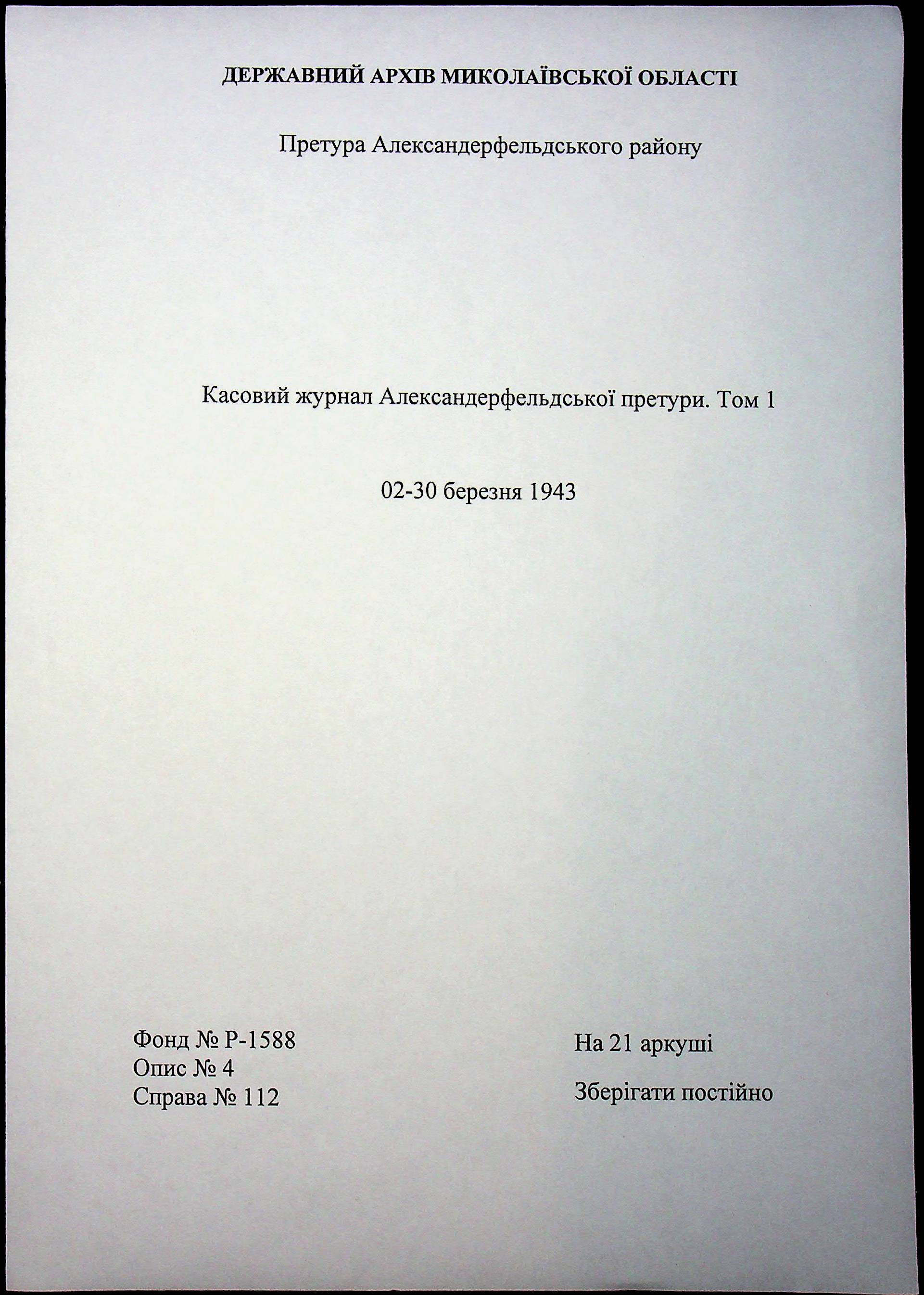 • • • • Справа № 112 “Касовий журнал Александерфельдської претури. Том 1”