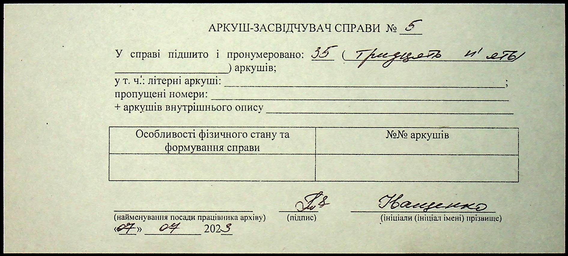 Фонд Н-1588 / Опис 5 / Справа 005