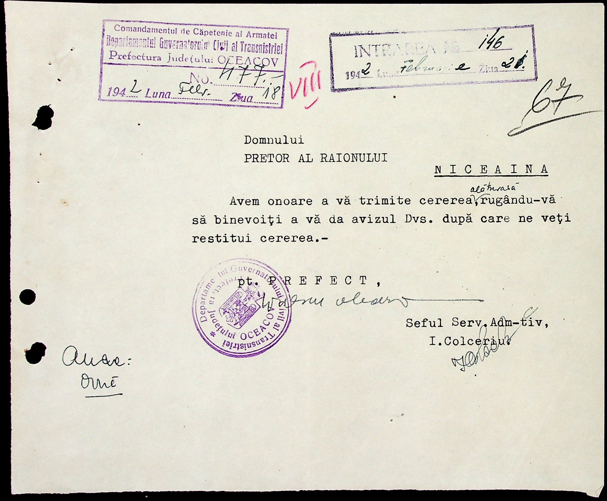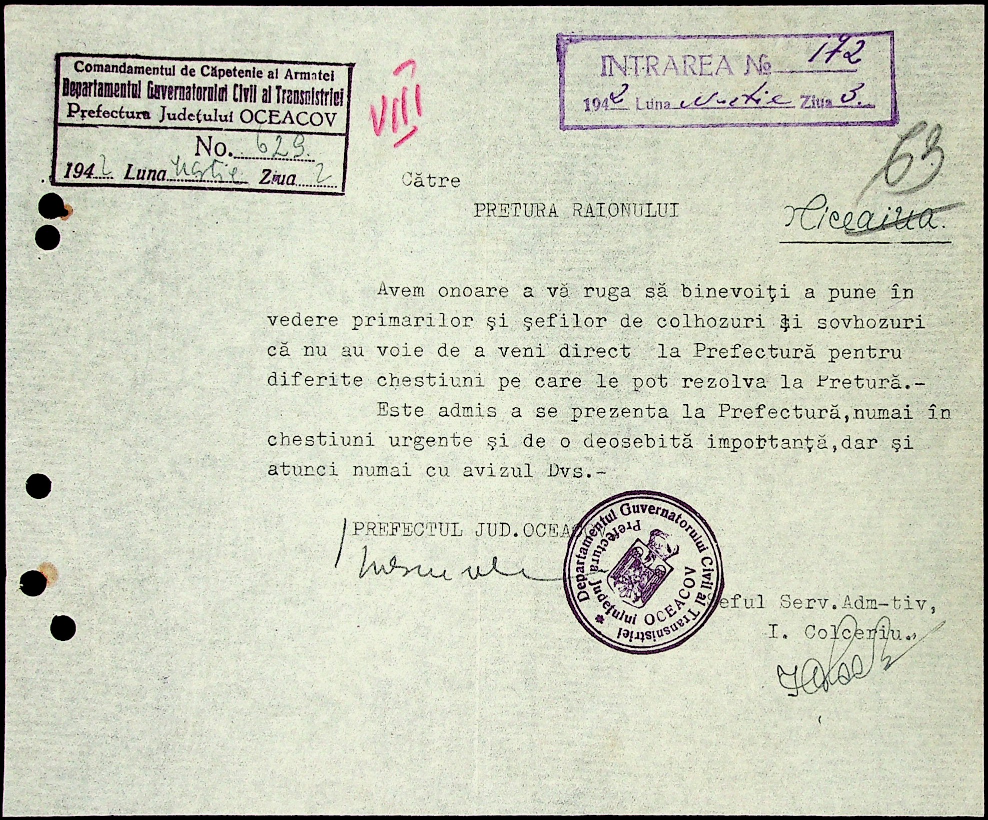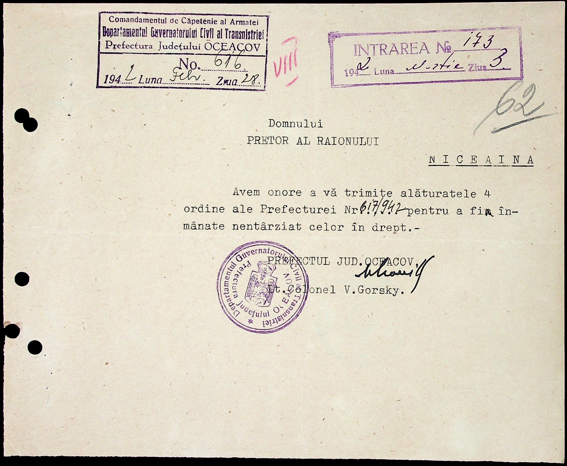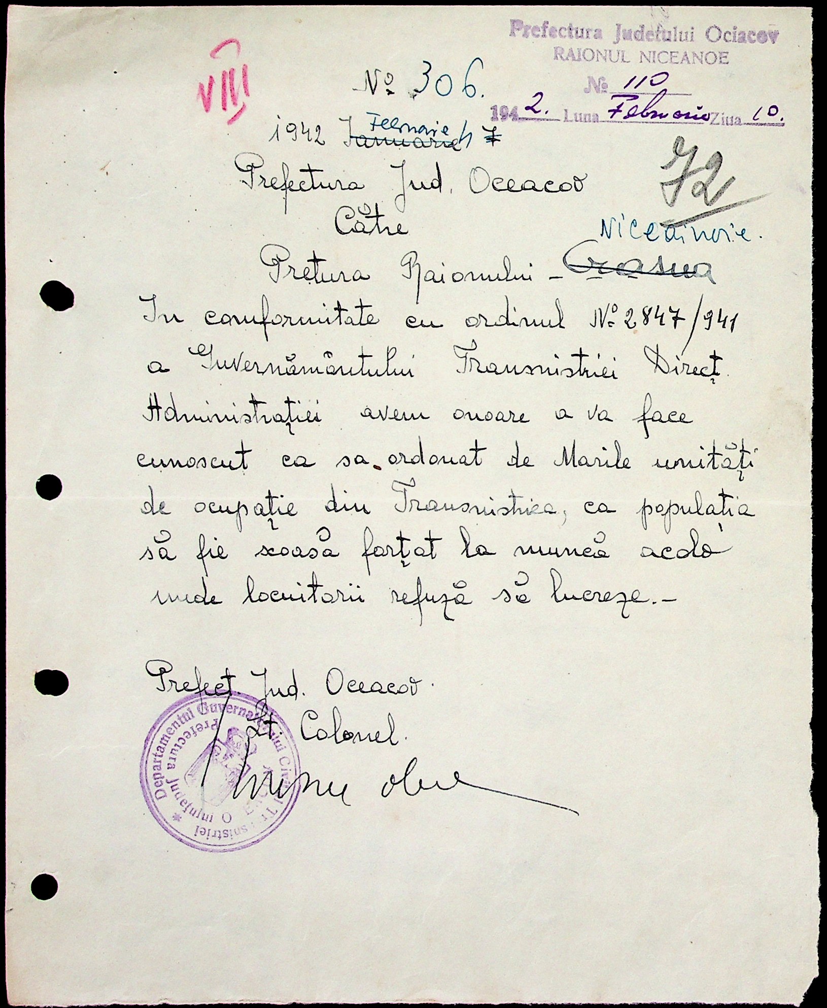 • • • • Справа № 6 “Накази цивільного губернатора Трансністрії (копії), листування з префектурою Очаківського повіту з адміністративних питань”