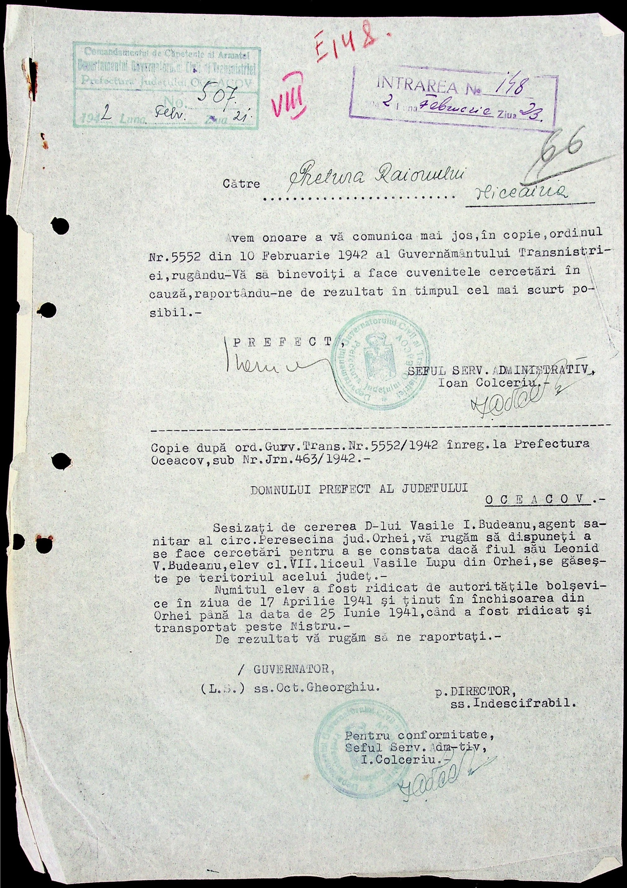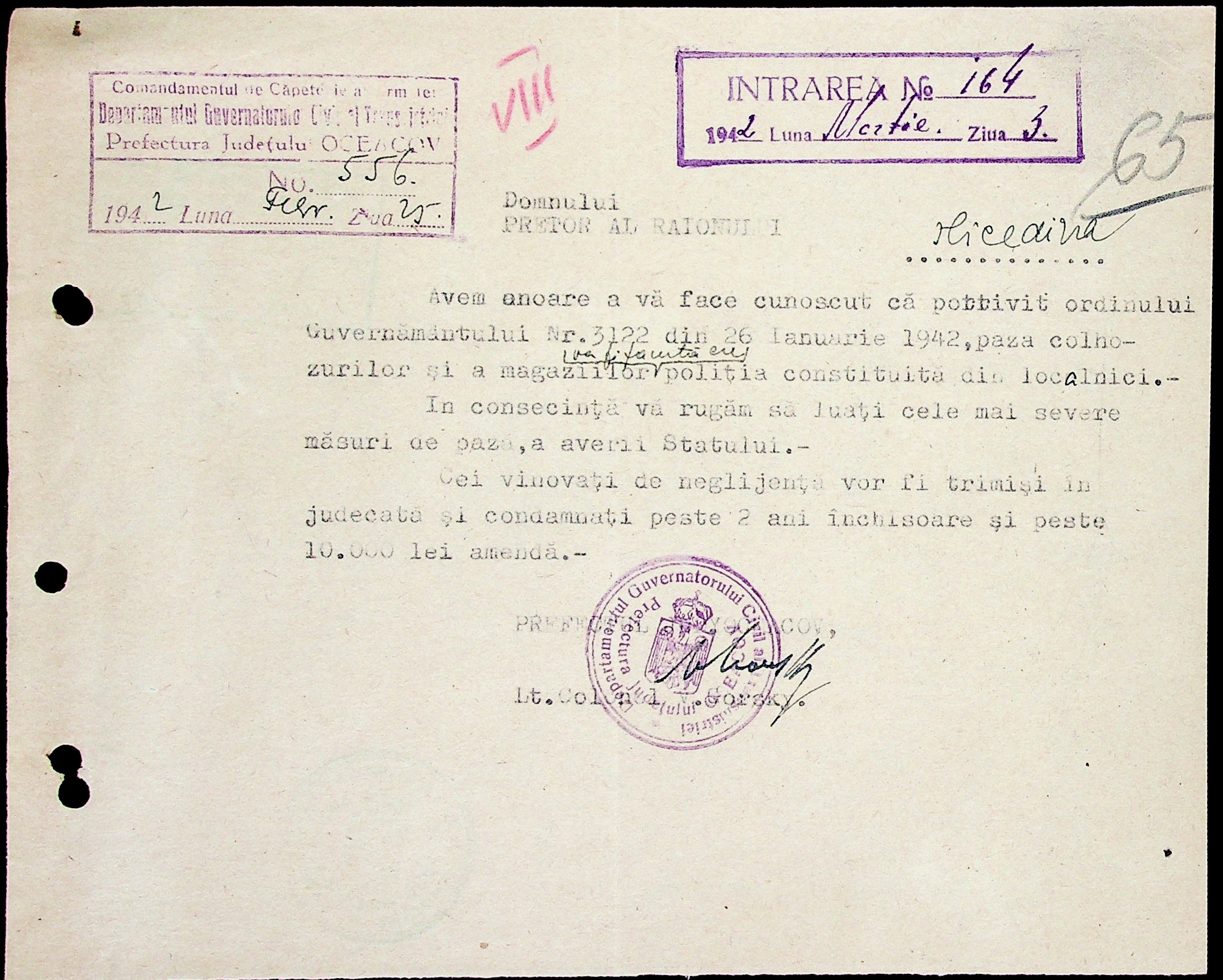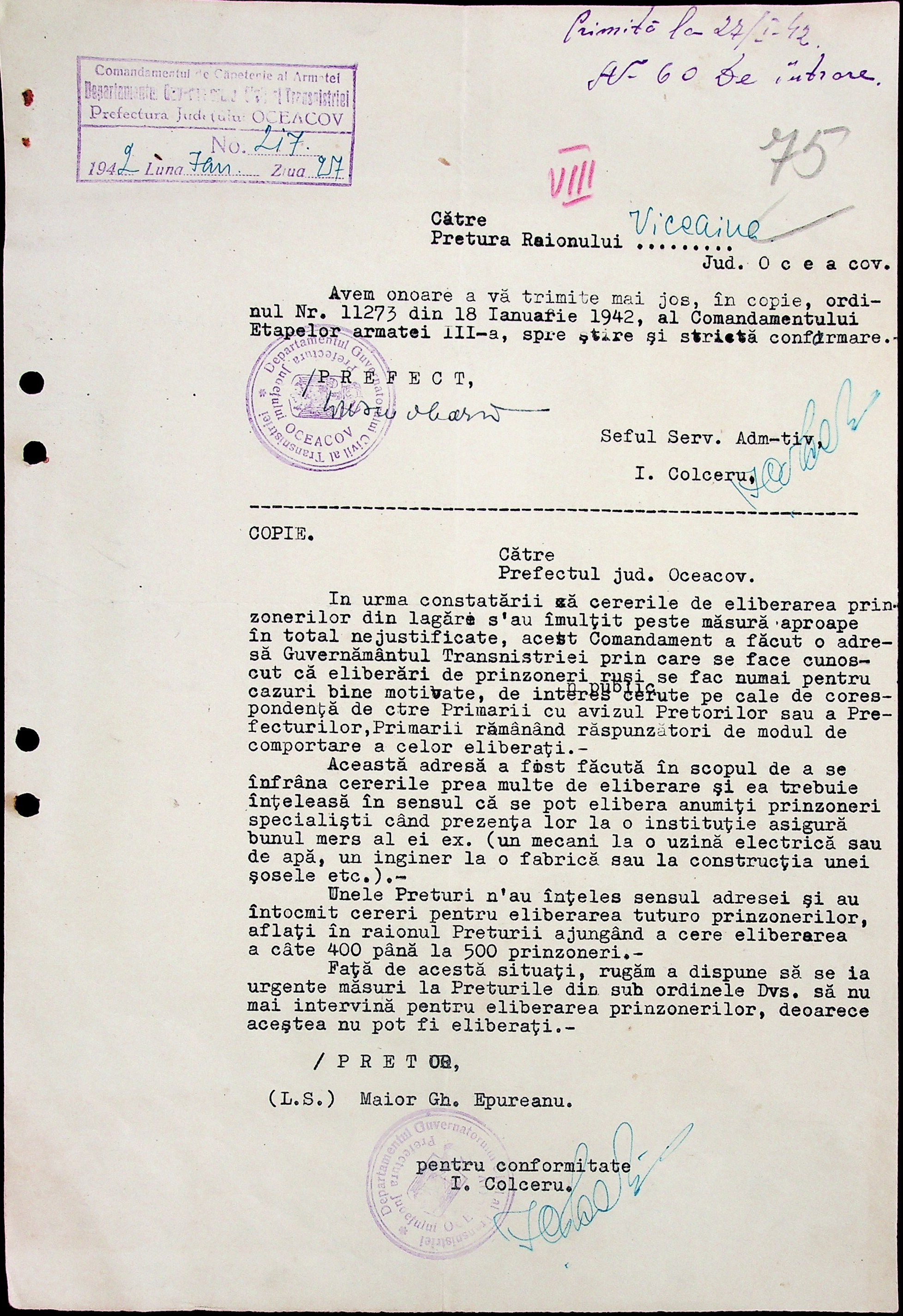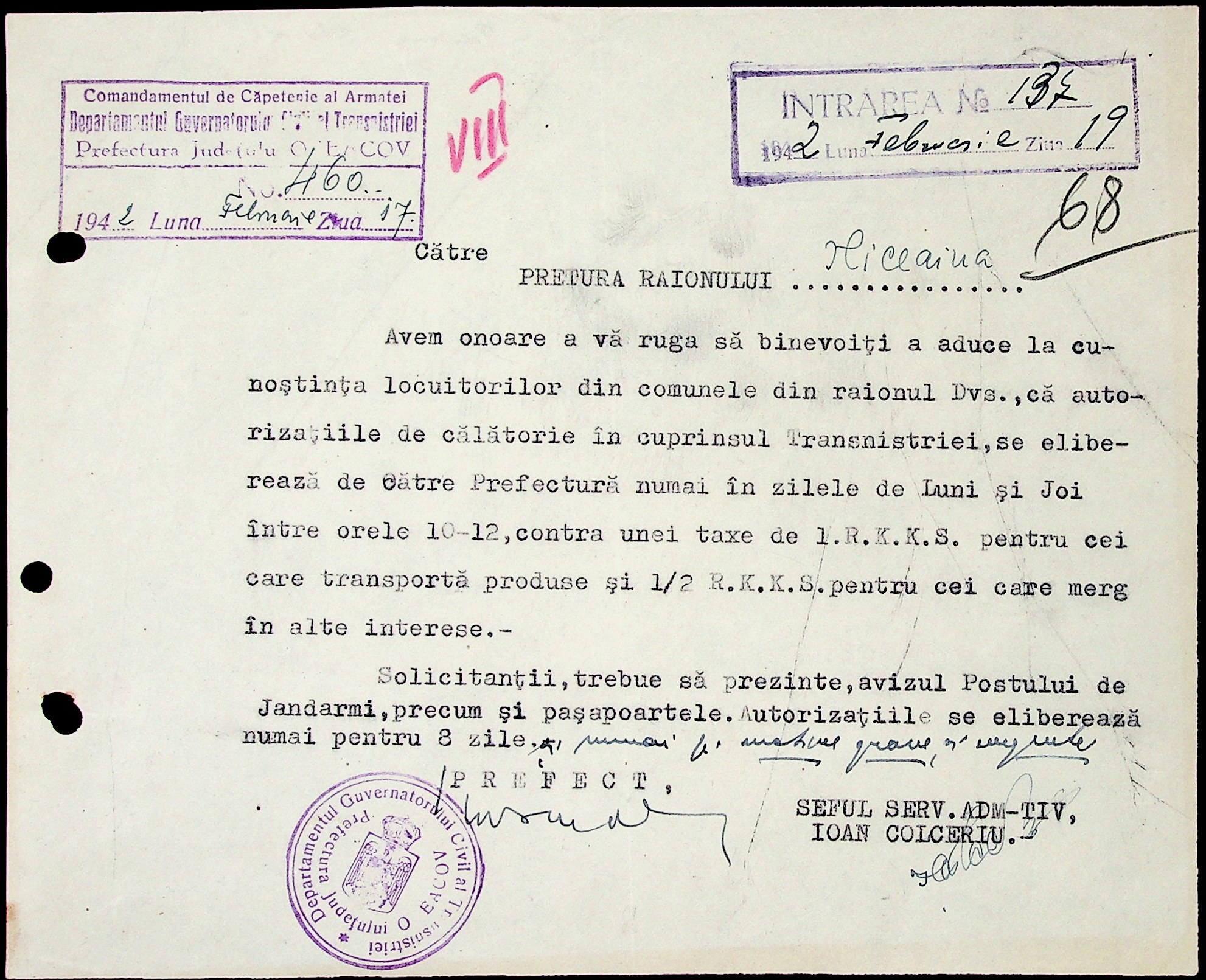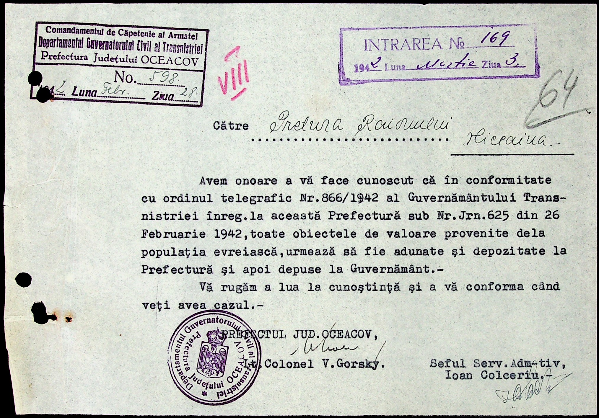 • • • • Справа № 6 “Накази цивільного губернатора Трансністрії (копії), листування з префектурою Очаківського повіту з адміністративних питань”