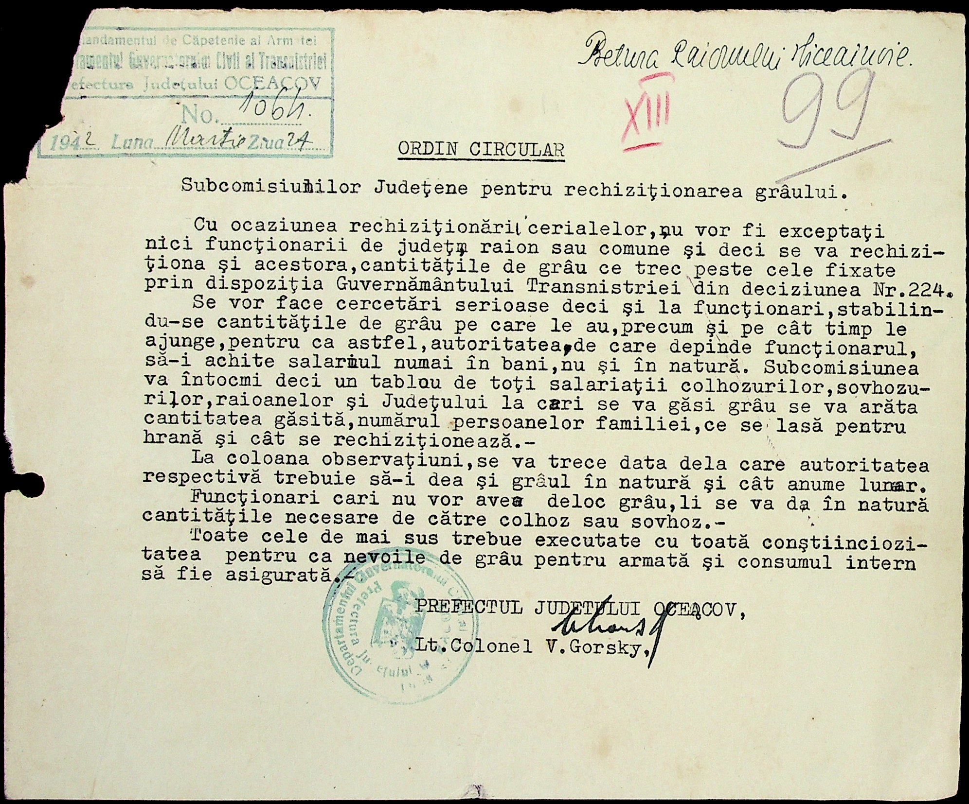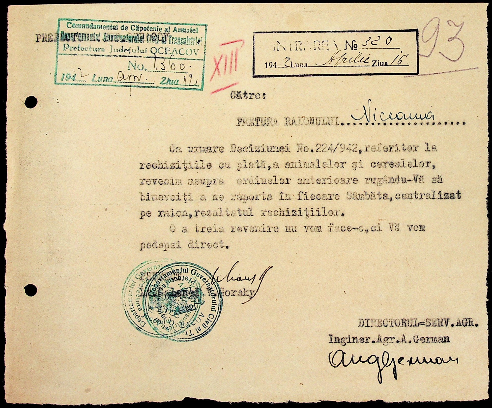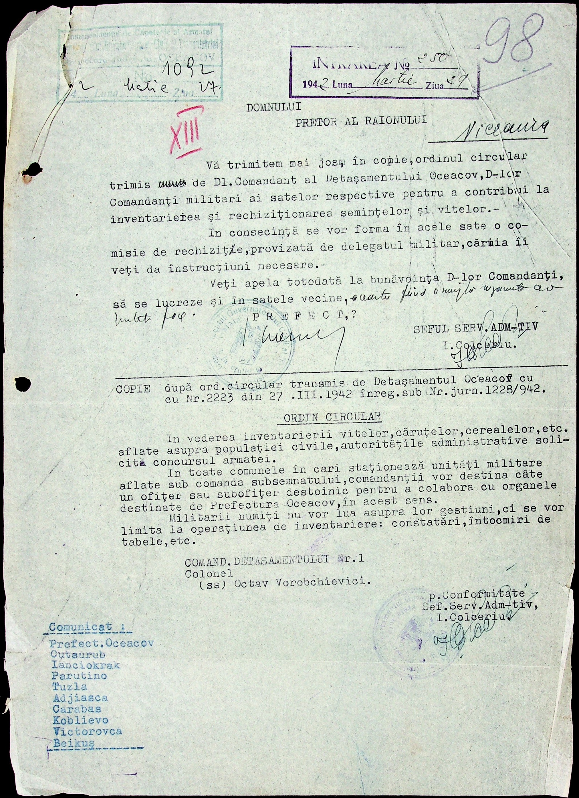 • • • • Справа № 7 “Накази, обіжники цивільного губернатора Трансністрії (копії), листування з префектурою Очаківського повіту про реквізицію худоби, вовни, металу, шкір, зерна у населення”