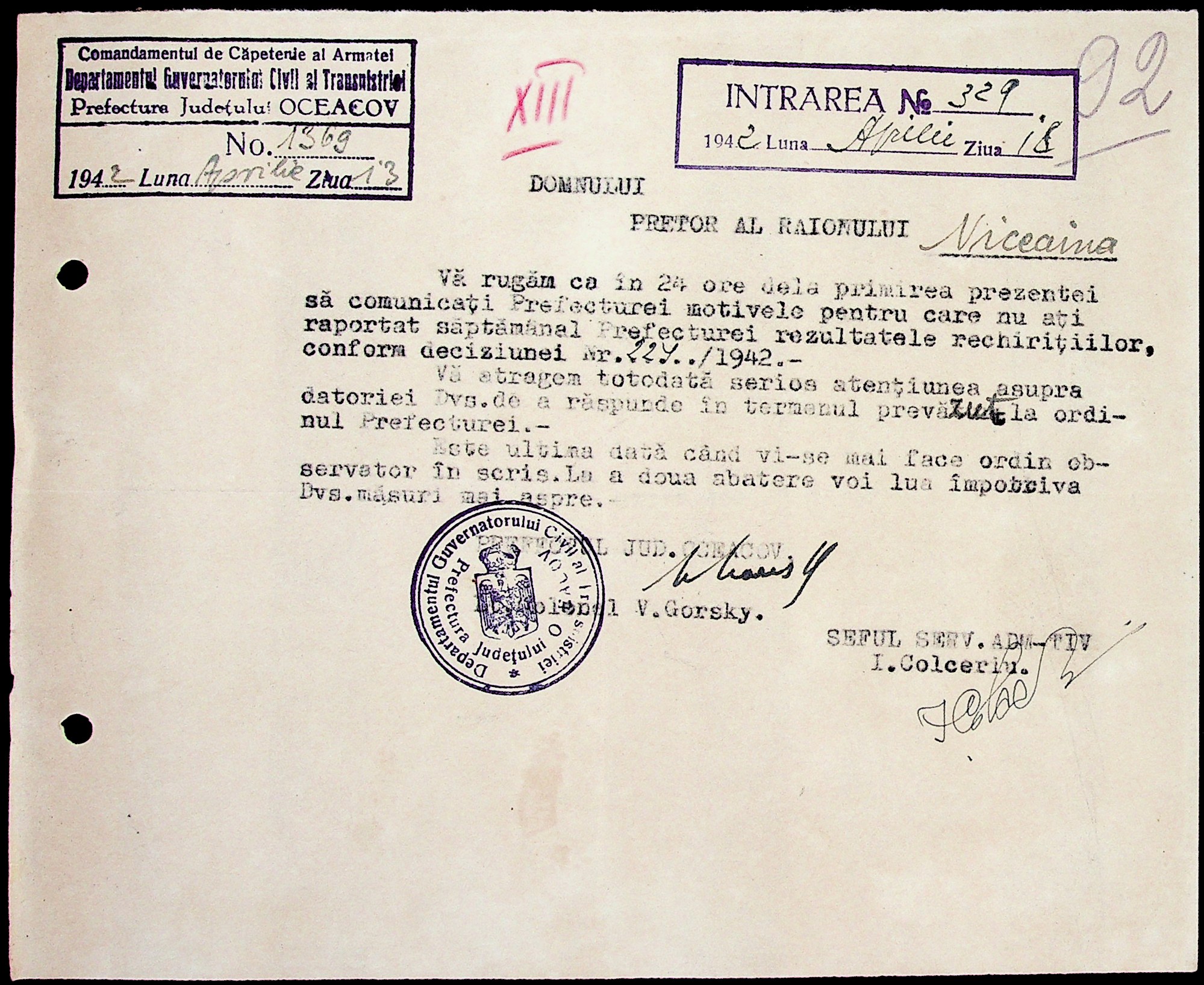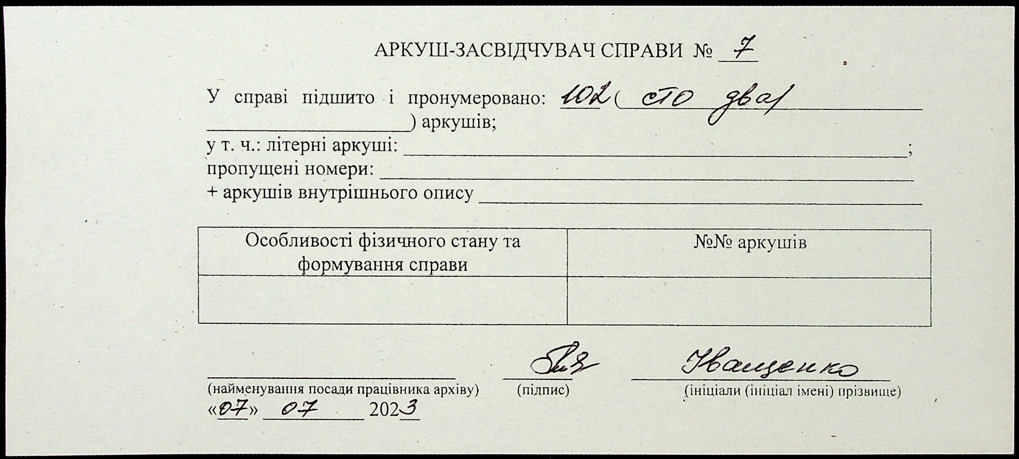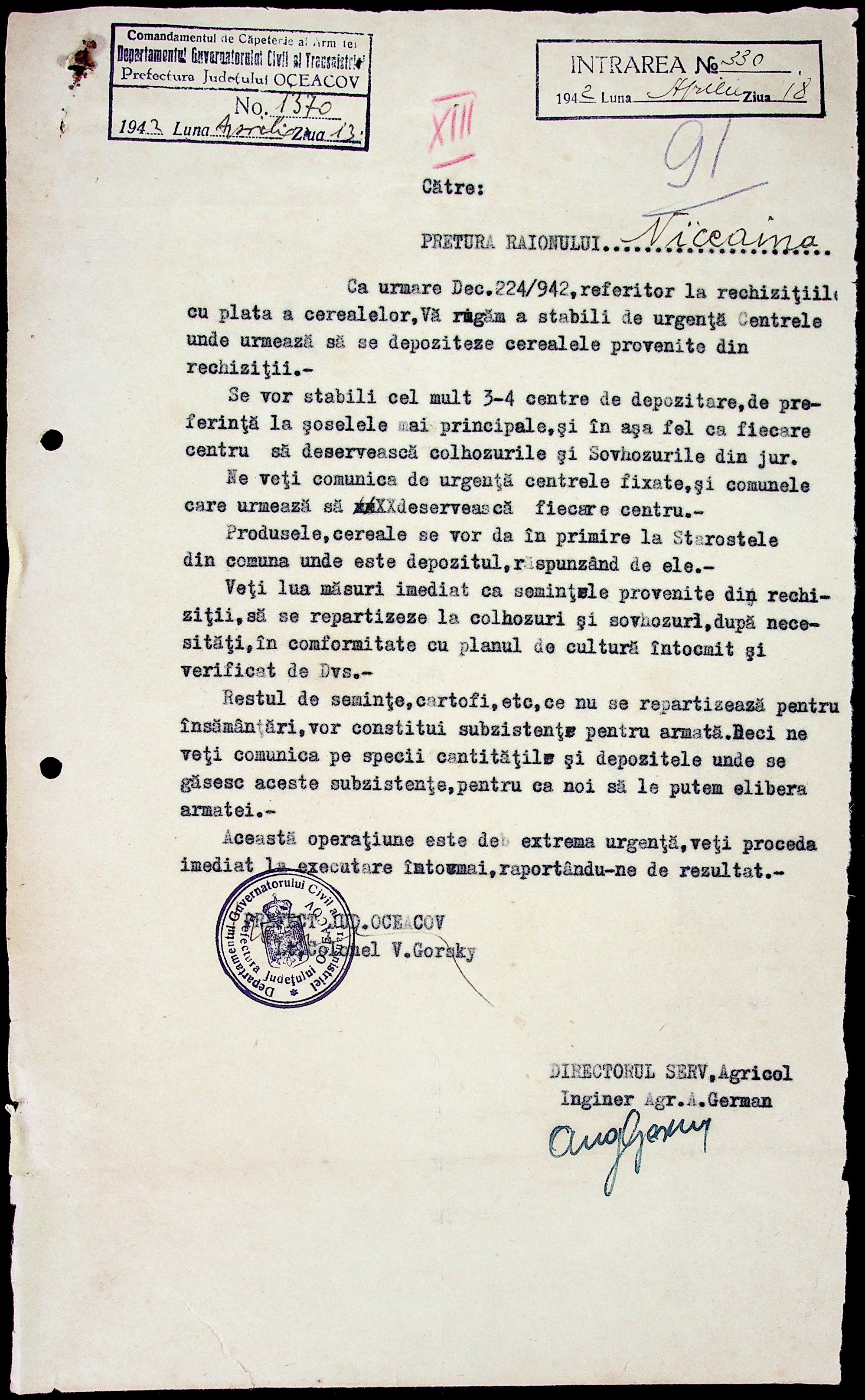 • • • • Справа № 7 “Накази, обіжники цивільного губернатора Трансністрії (копії), листування з префектурою Очаківського повіту про реквізицію худоби, вовни, металу, шкір, зерна у населення”