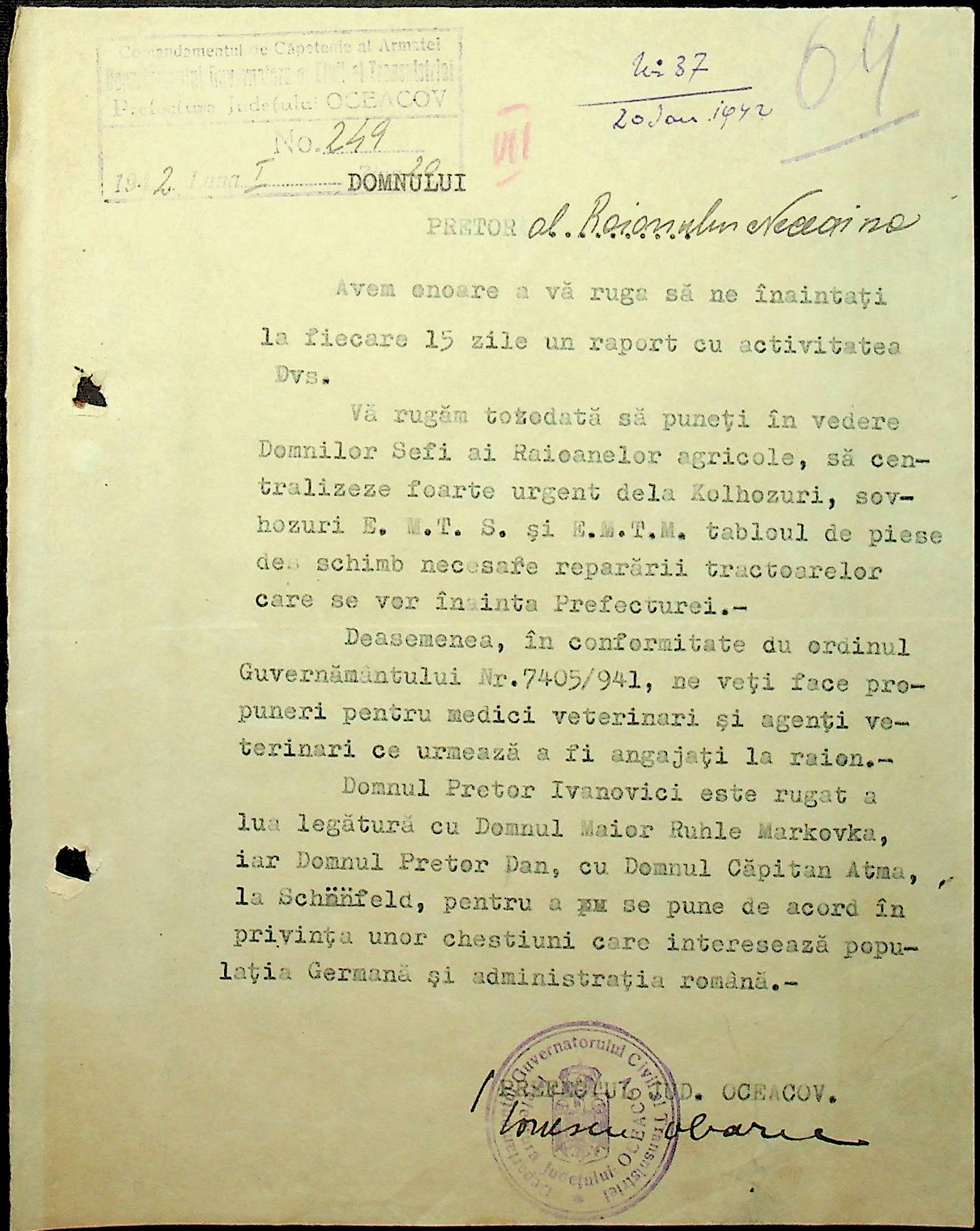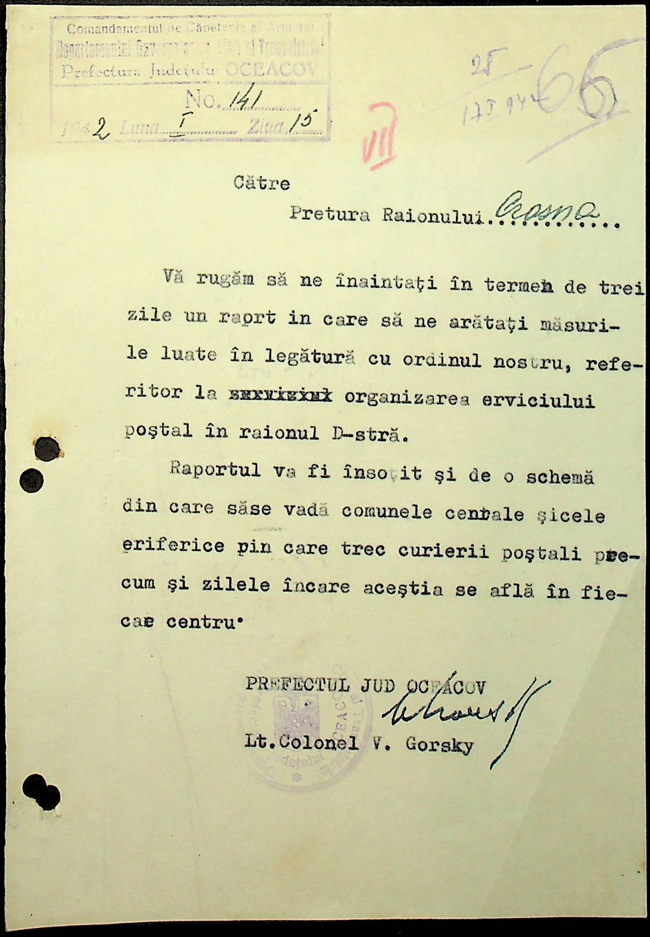 • • • • Справа № 9 “Накази цивільного губернатора Трансністрії (копії), інструкції префектури про організацію роботи пошти, телеграфу, телефону”