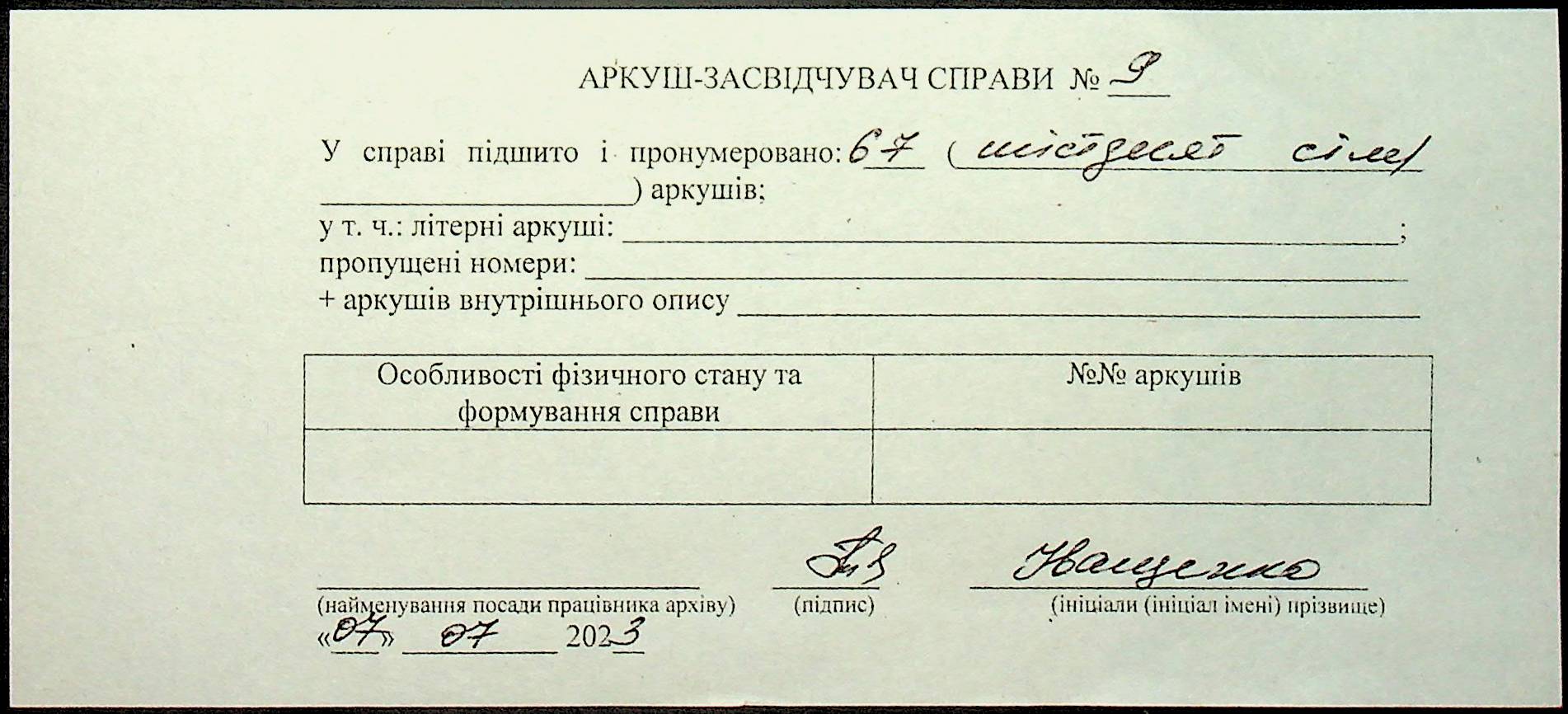 ◦ ◦ ◦ Опис № 5 справ постійного зберігання за 1942–1943 роки