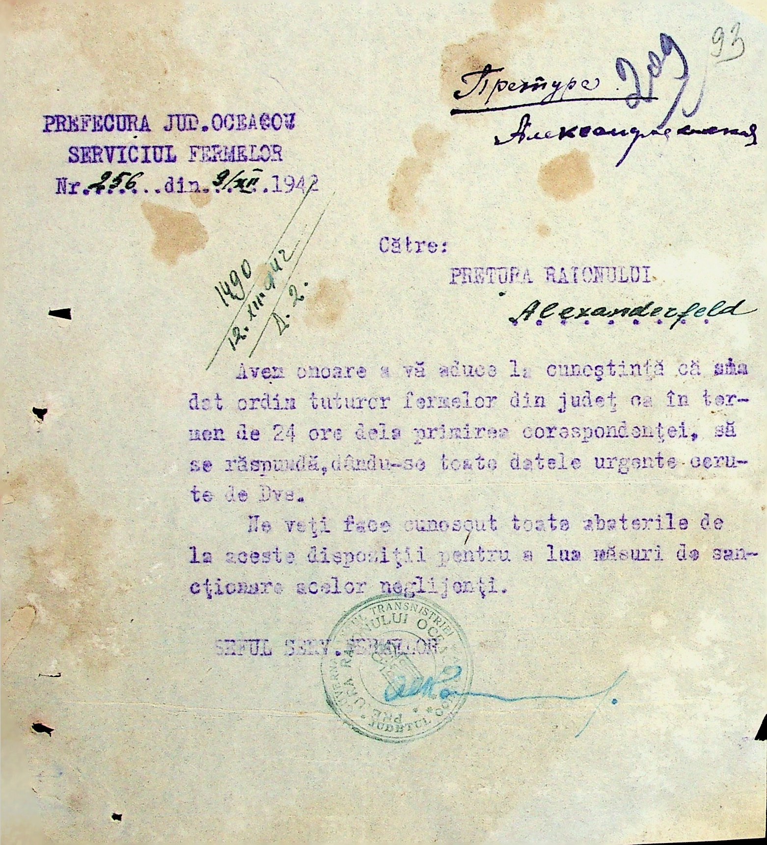 ◦ ◦ Фонд № Н-1588 “Претура Александерфельдського району Очаківського повіту”
