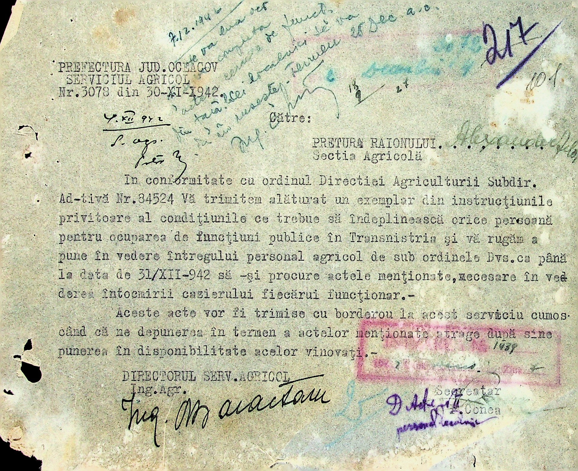 • • • • Справа № 13 “Накази цивільного губернатора Трансністрії (копії),обіжники, інструкції дирекції агрокультур щодо проведення сільськогосподарських робіт. Списки робітників та службовців агрономічного відділу”