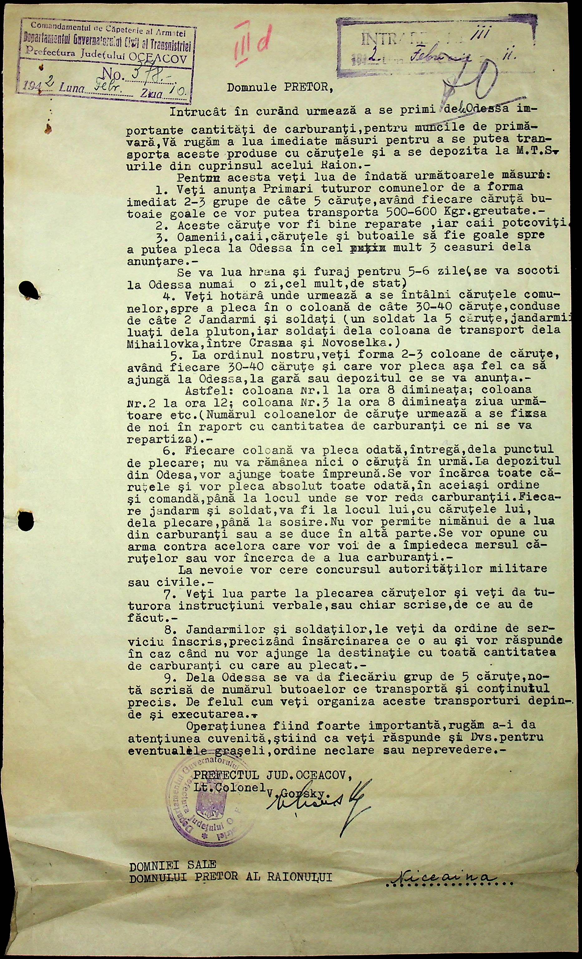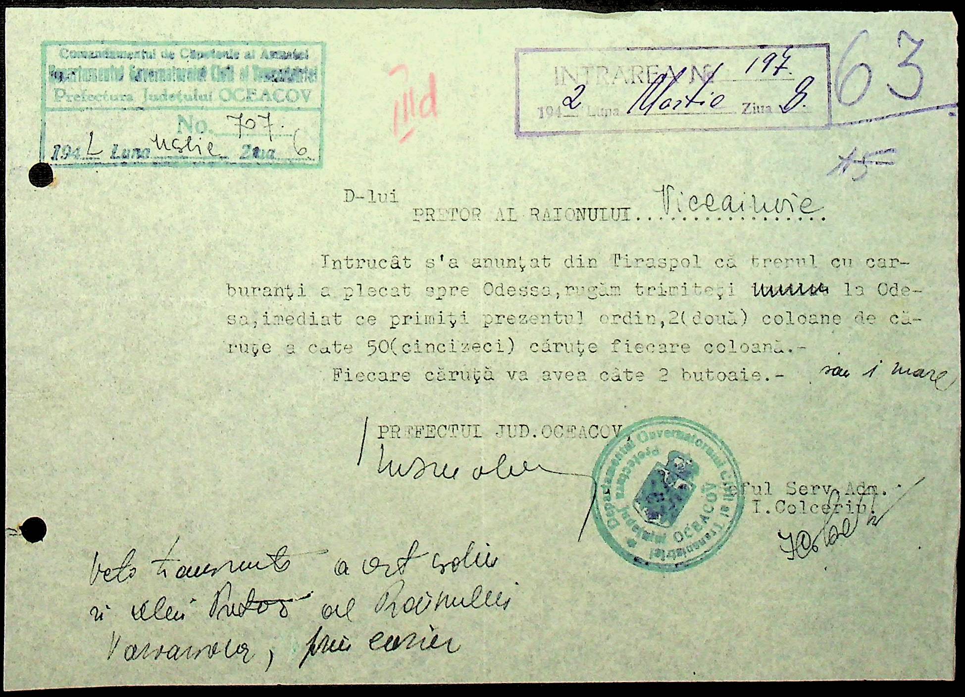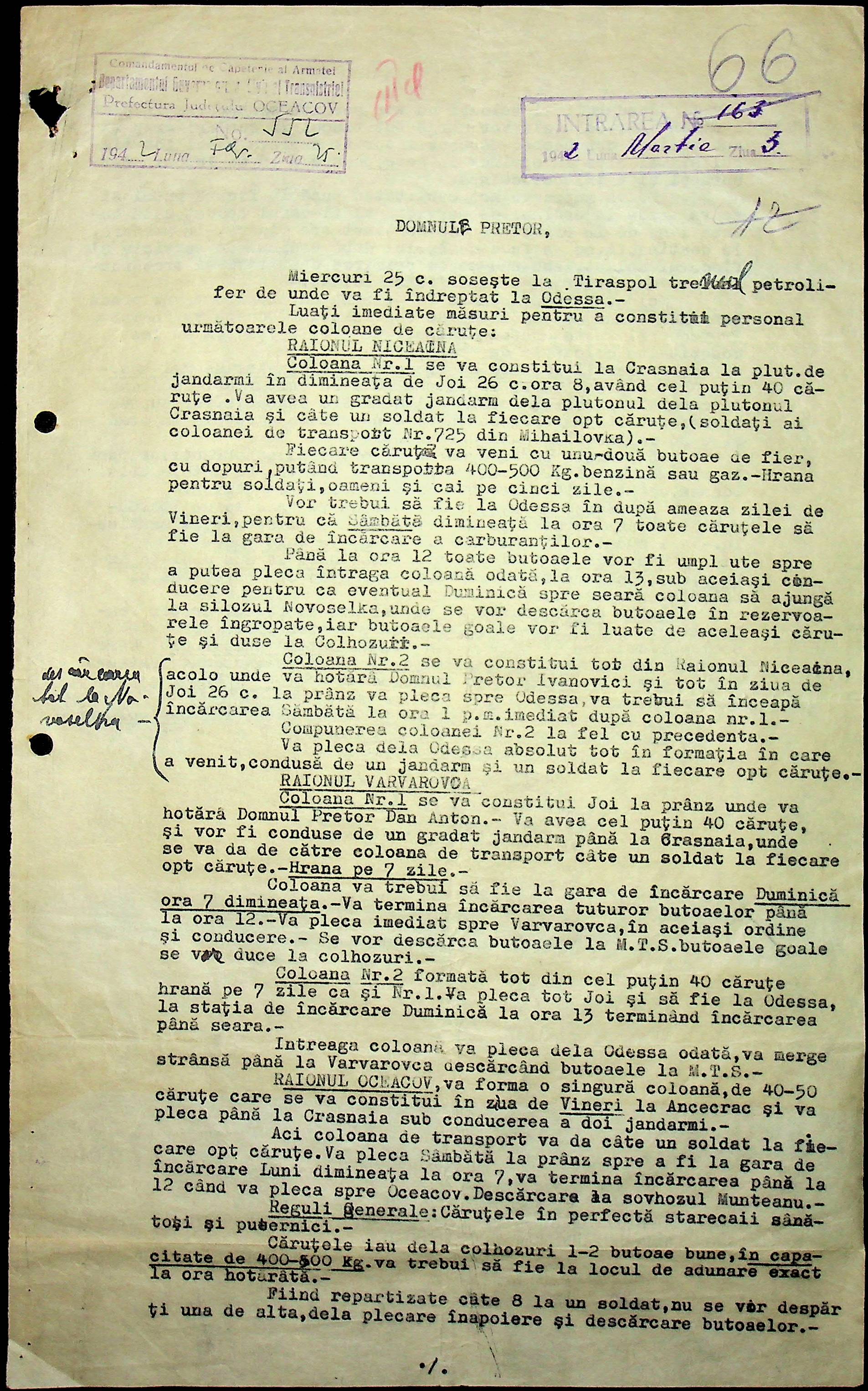 • • • • Справа № 15 “Обіжники, інструкції дирекції залізниць Трансністрії, розпорядження префектури Очаківського повіту про правила оформлення та транспортування товарів залізницею”
