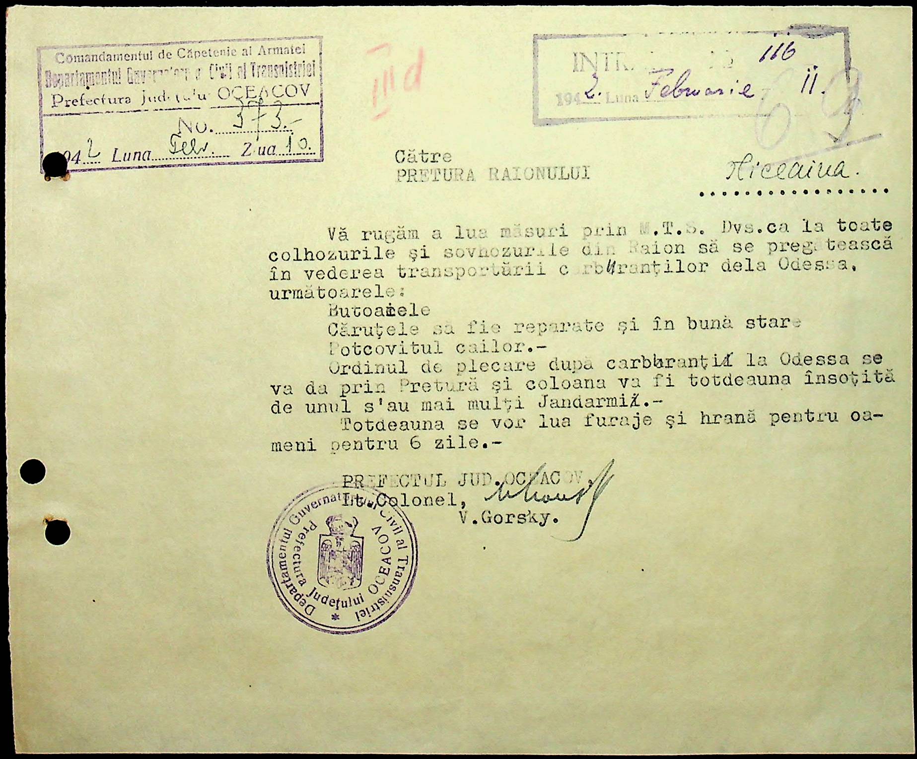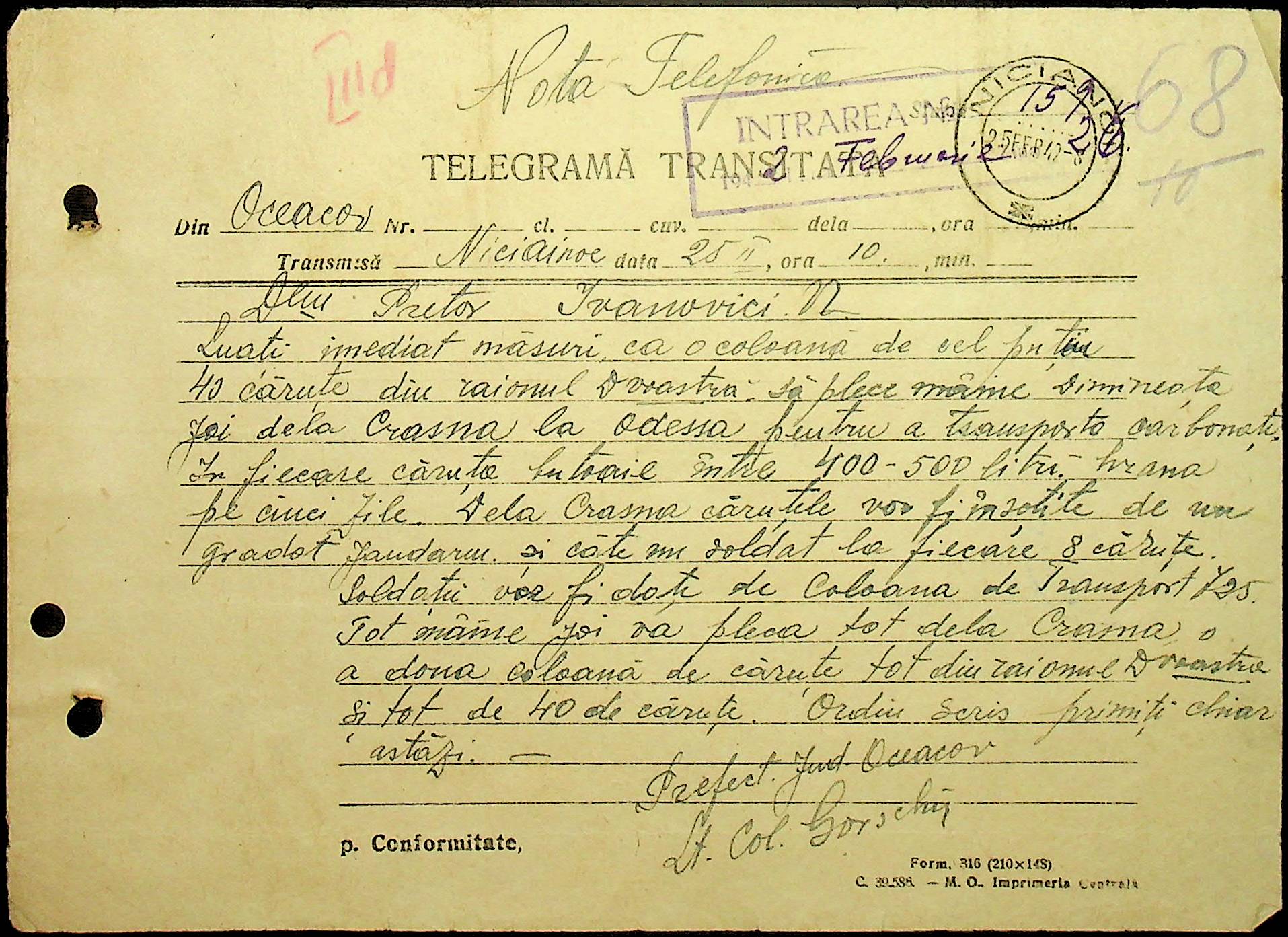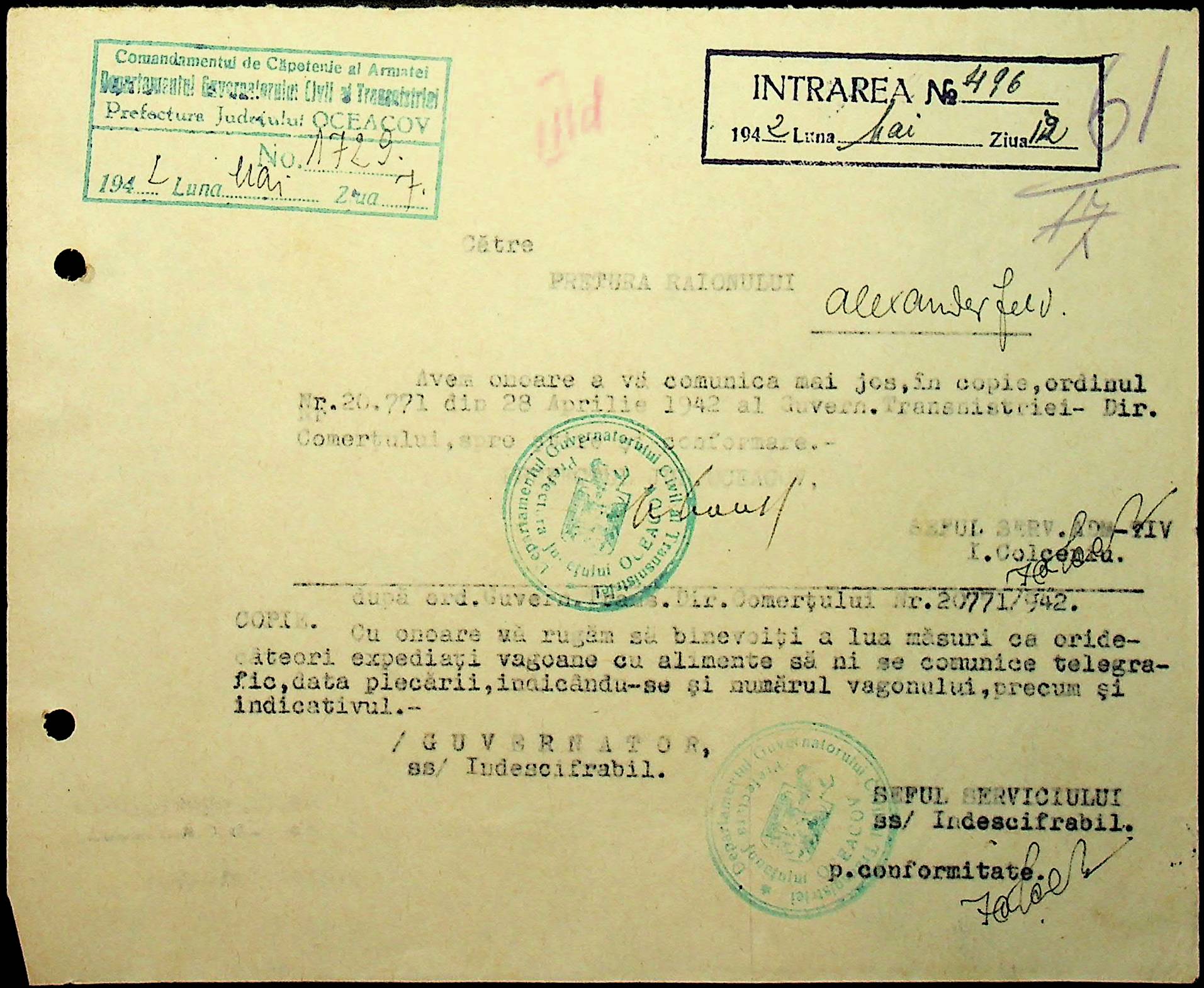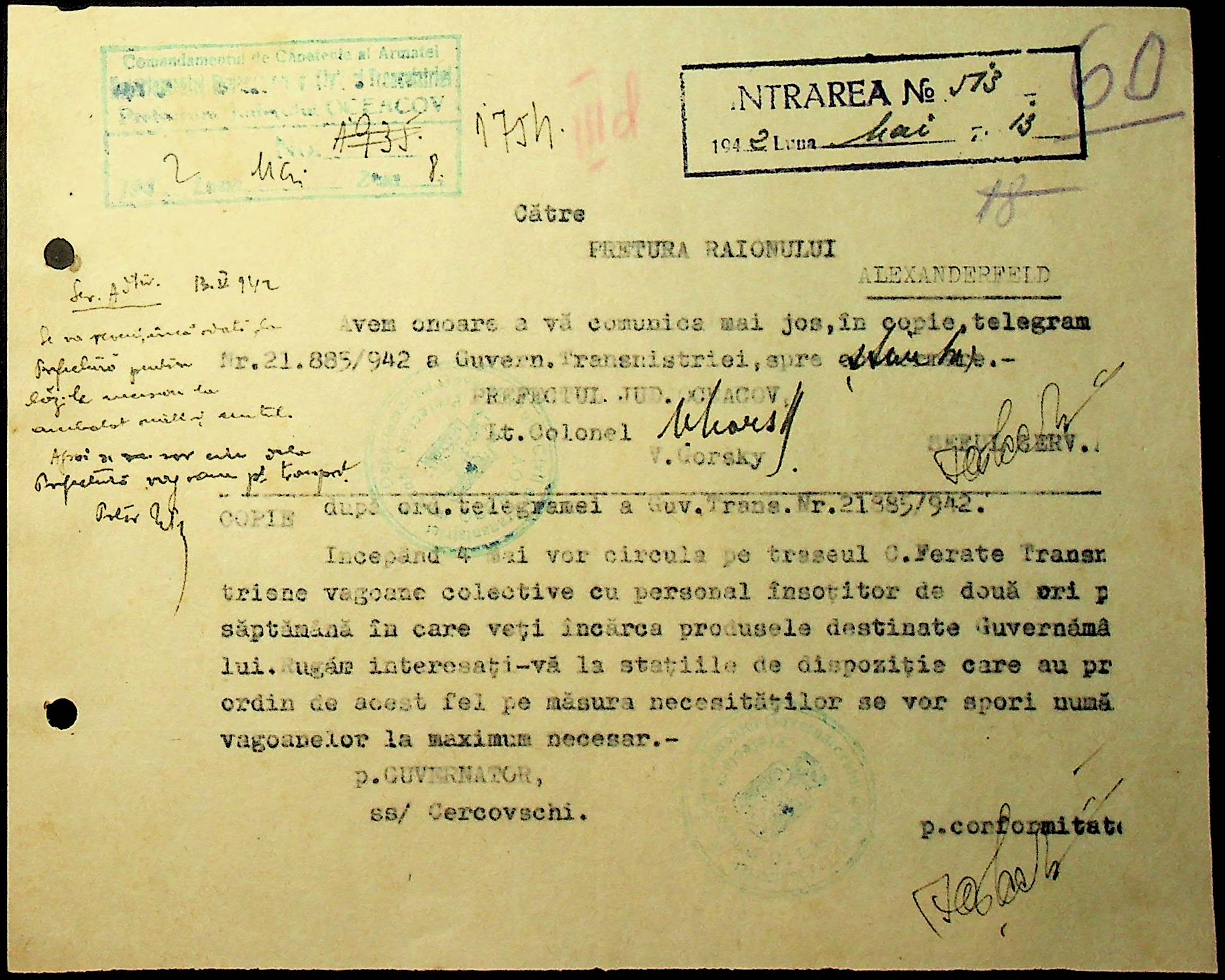 • • • • Справа № 15 “Обіжники, інструкції дирекції залізниць Трансністрії, розпорядження префектури Очаківського повіту про правила оформлення та транспортування товарів залізницею”