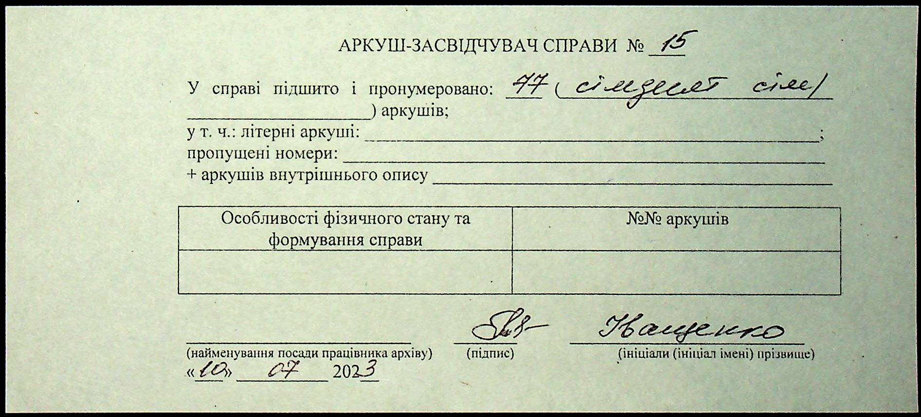 Фонд Н-1588 / Опис 5 / Справа 015