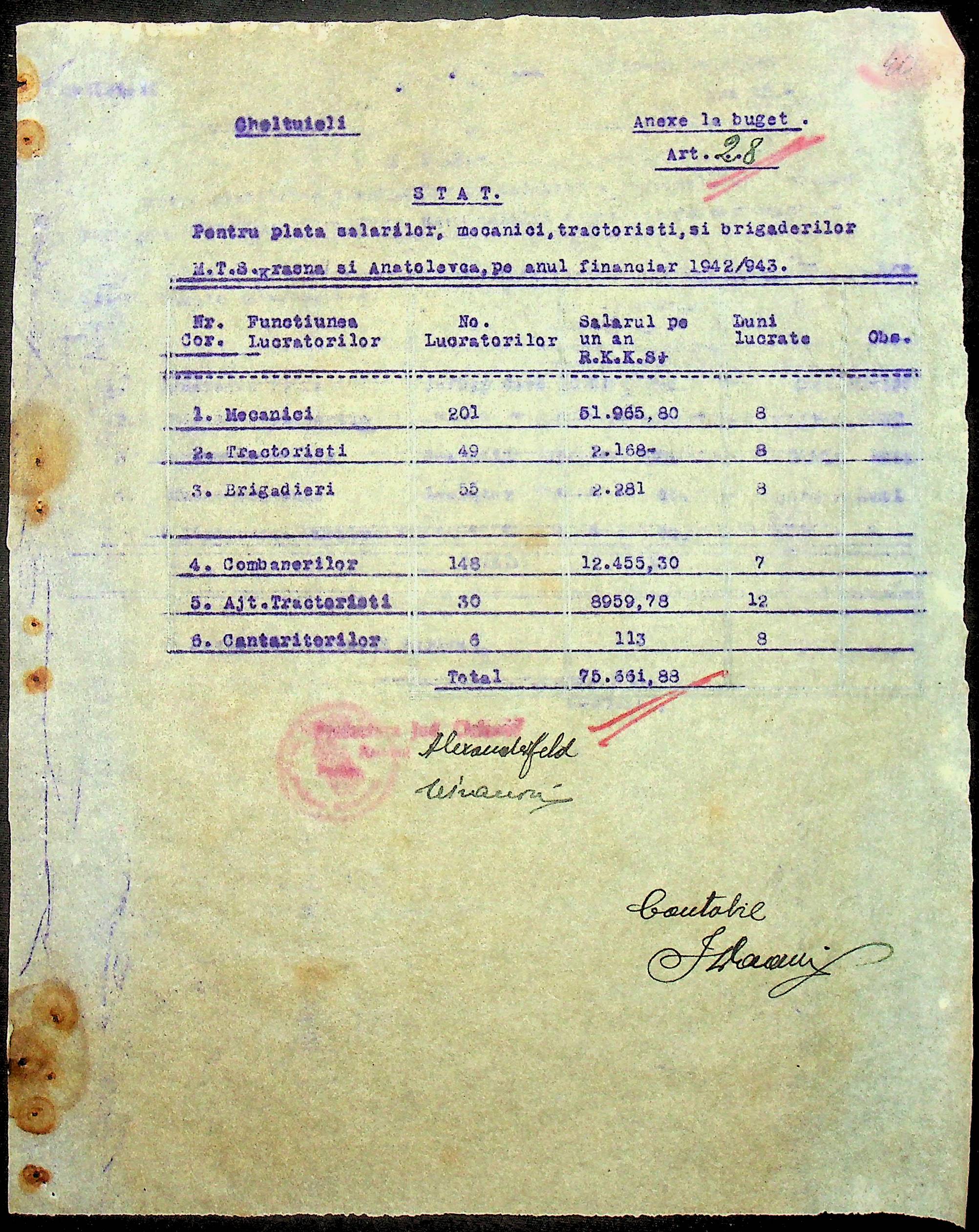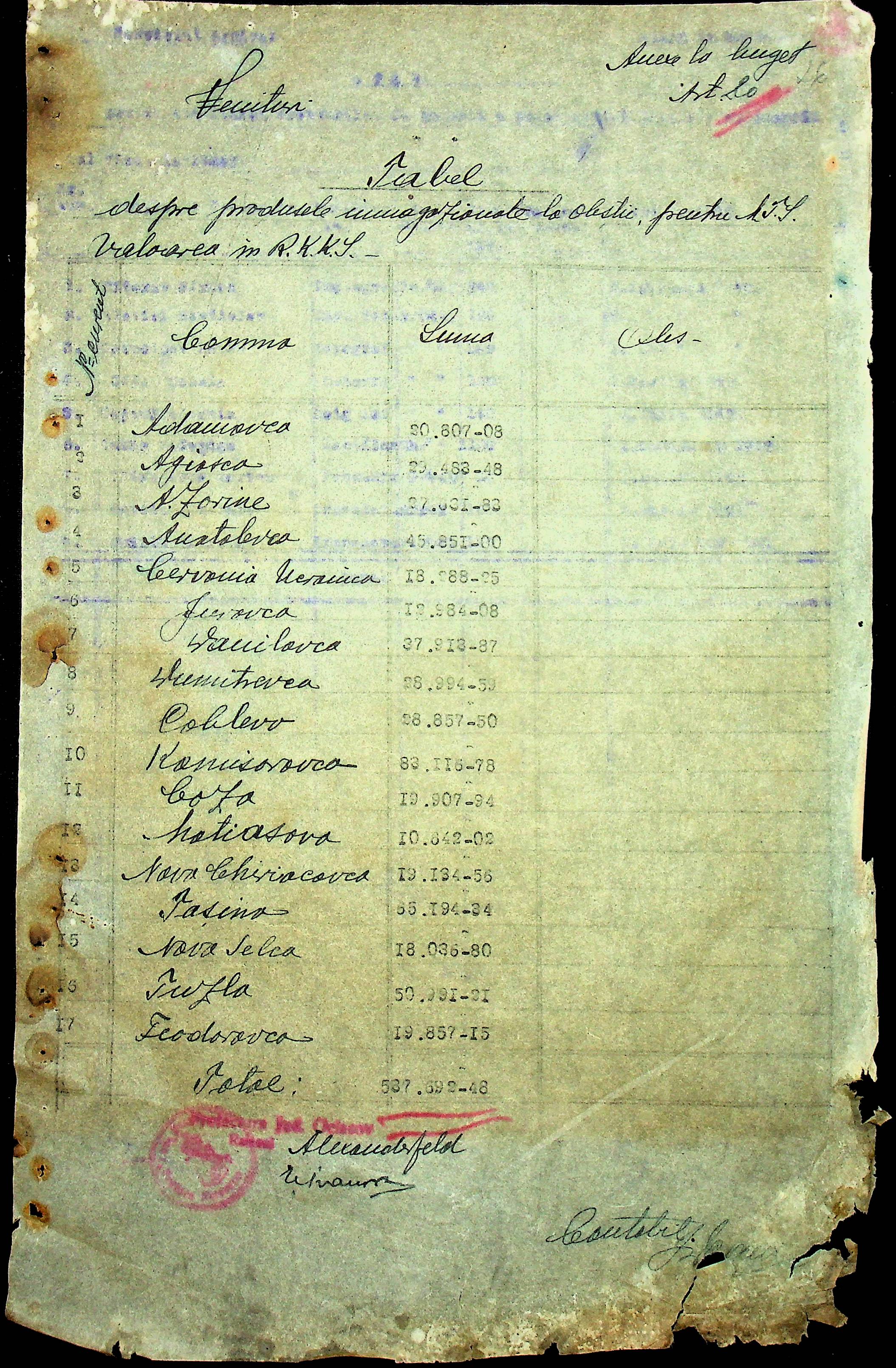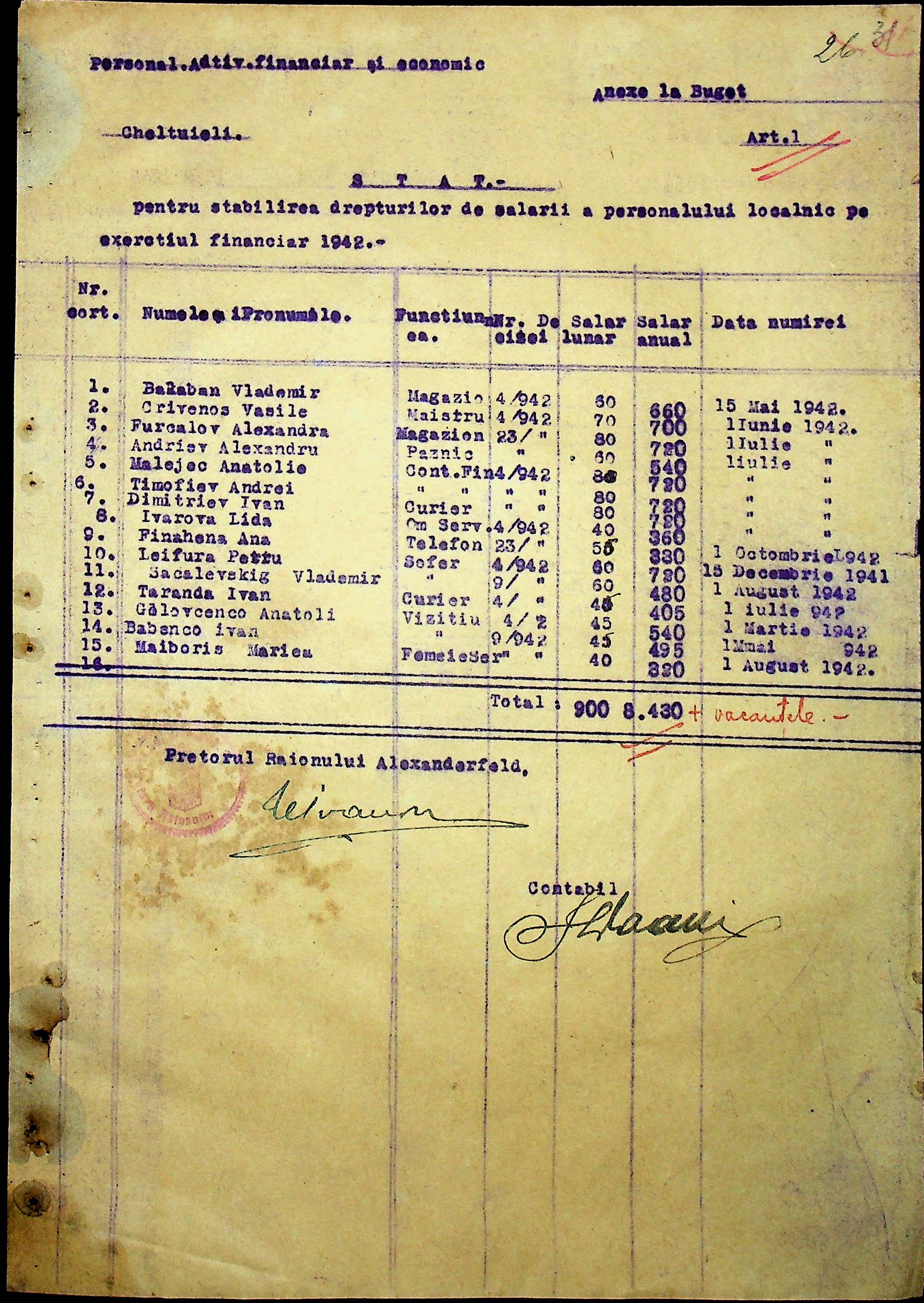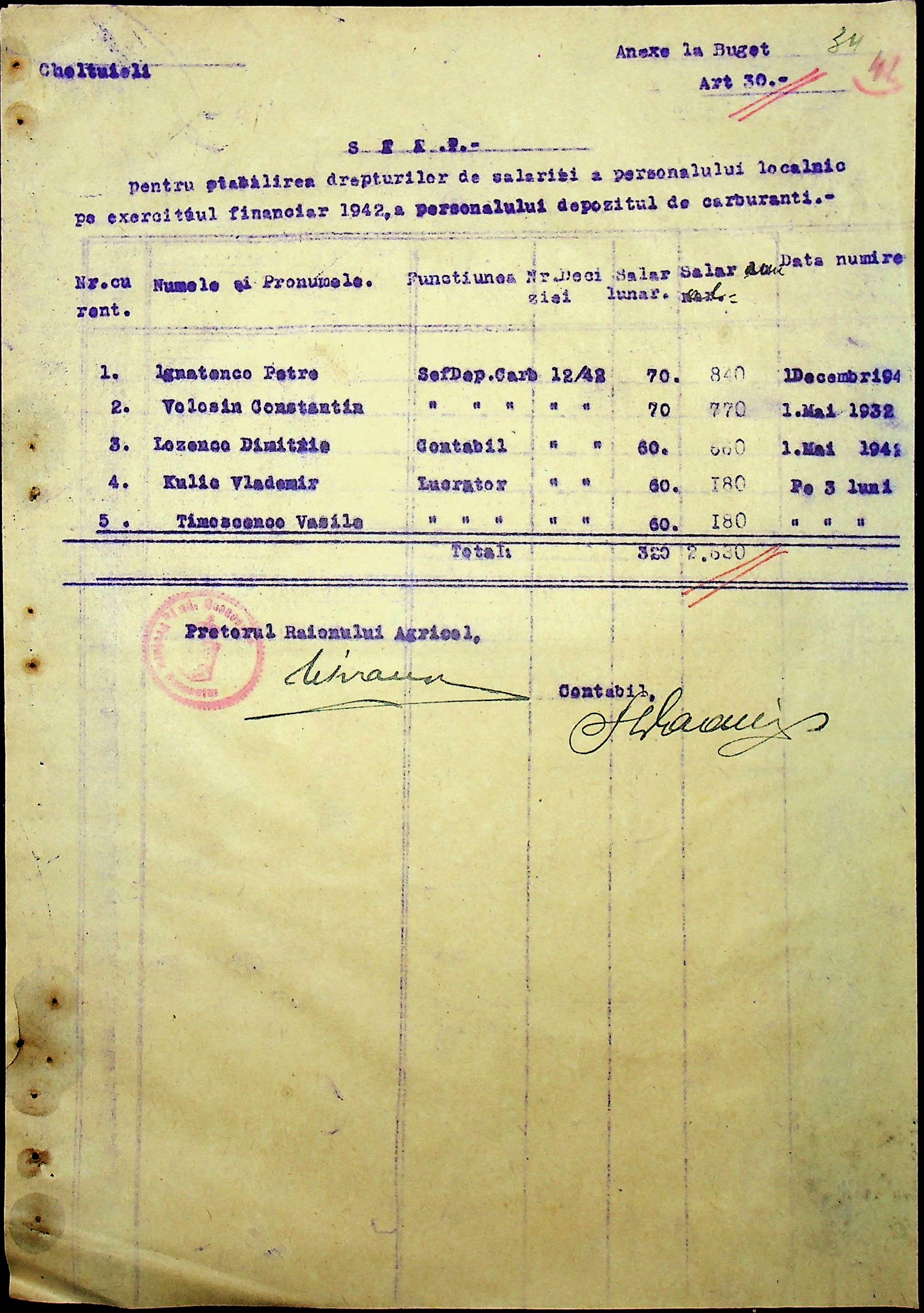 • • • • Справа № 16 “Фінансовий бюджет, штатний розпис установ району на 1942-1943 роки”